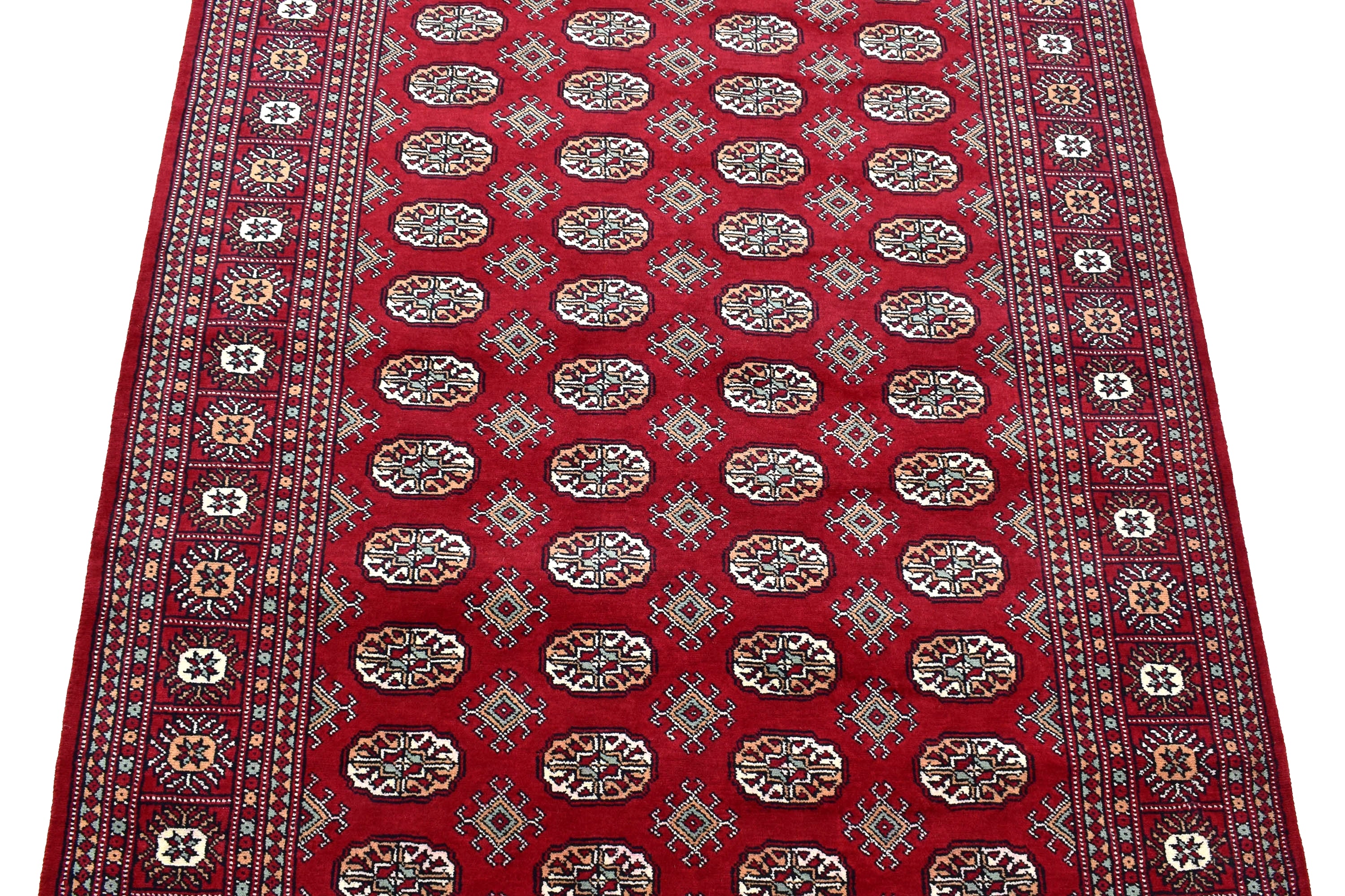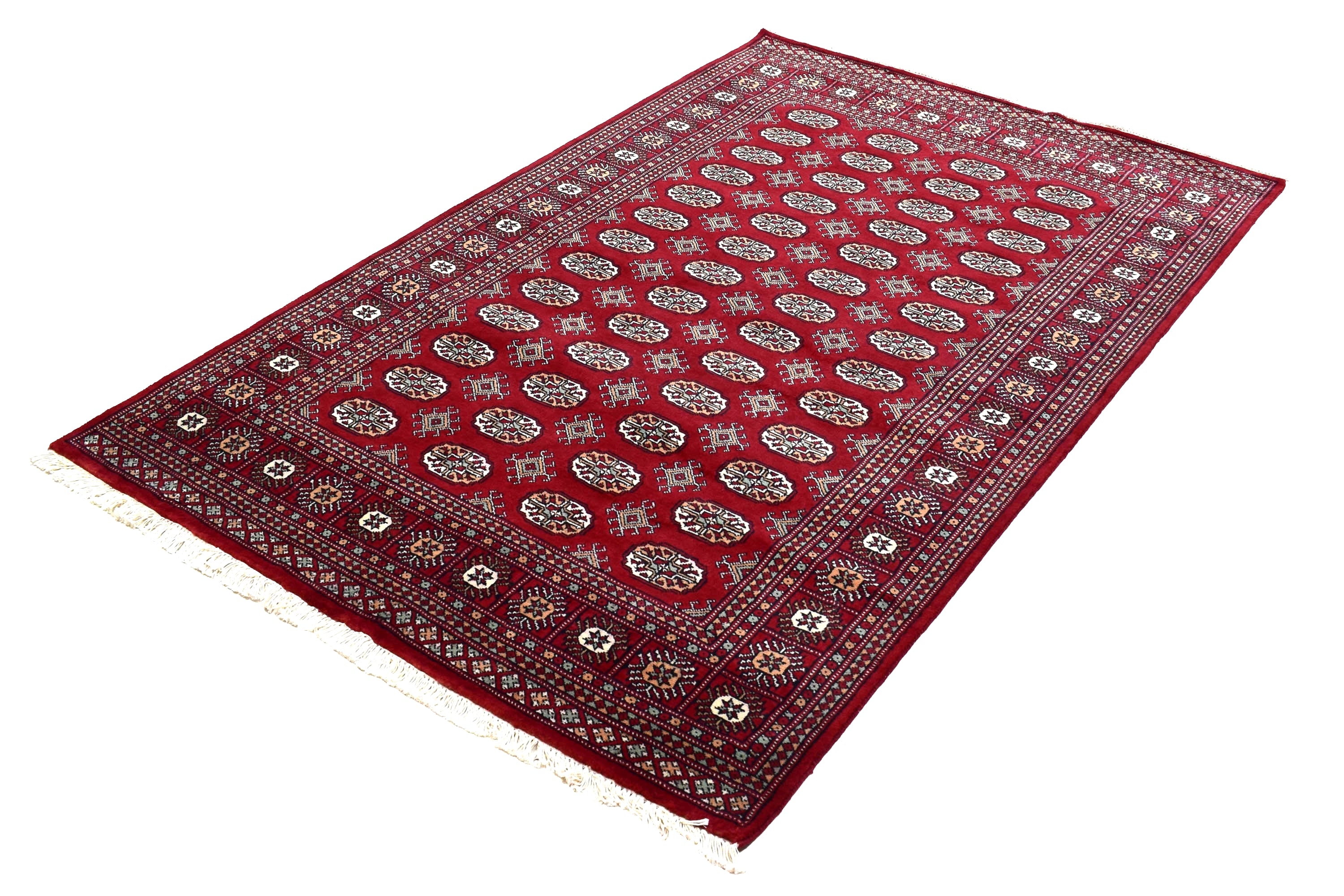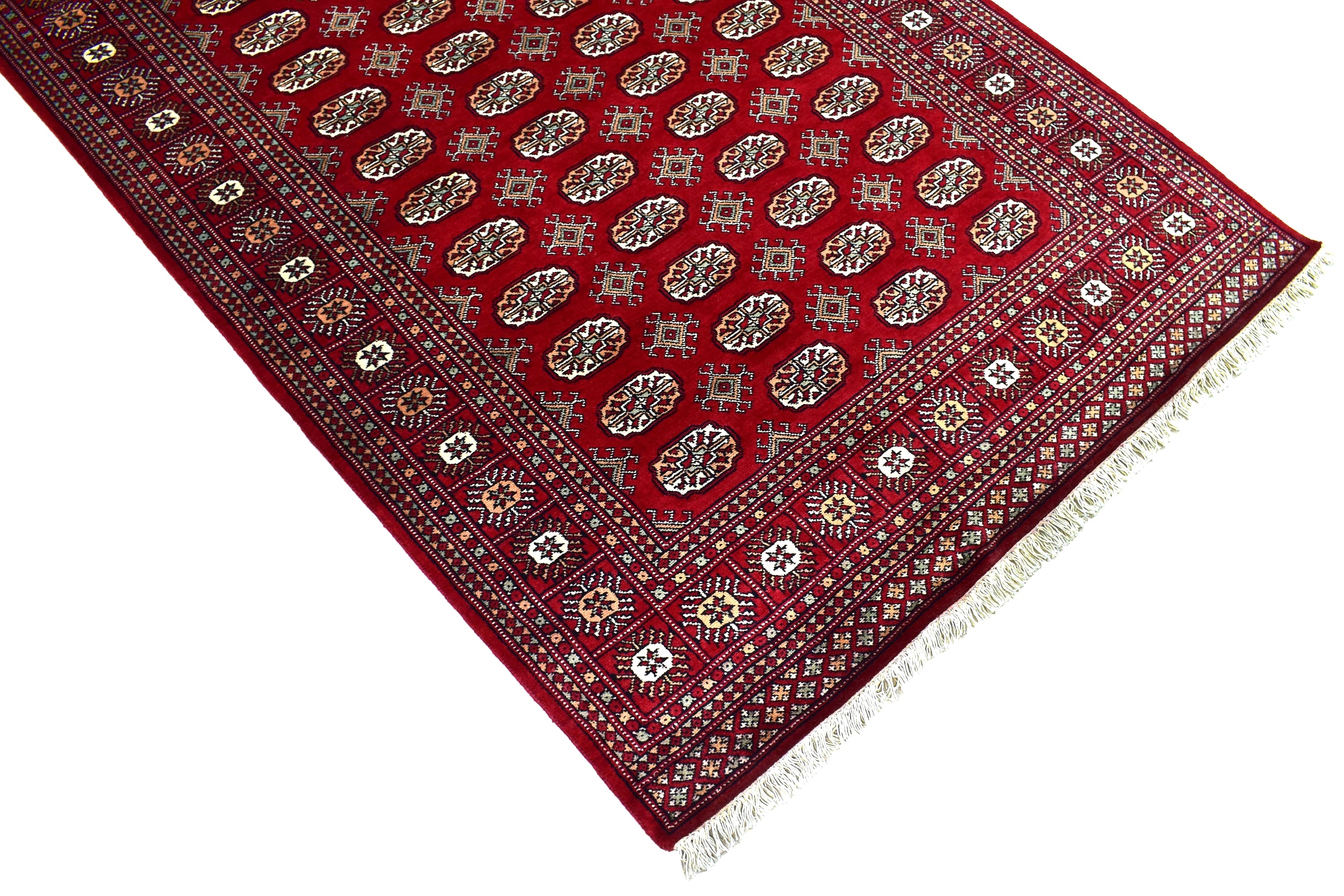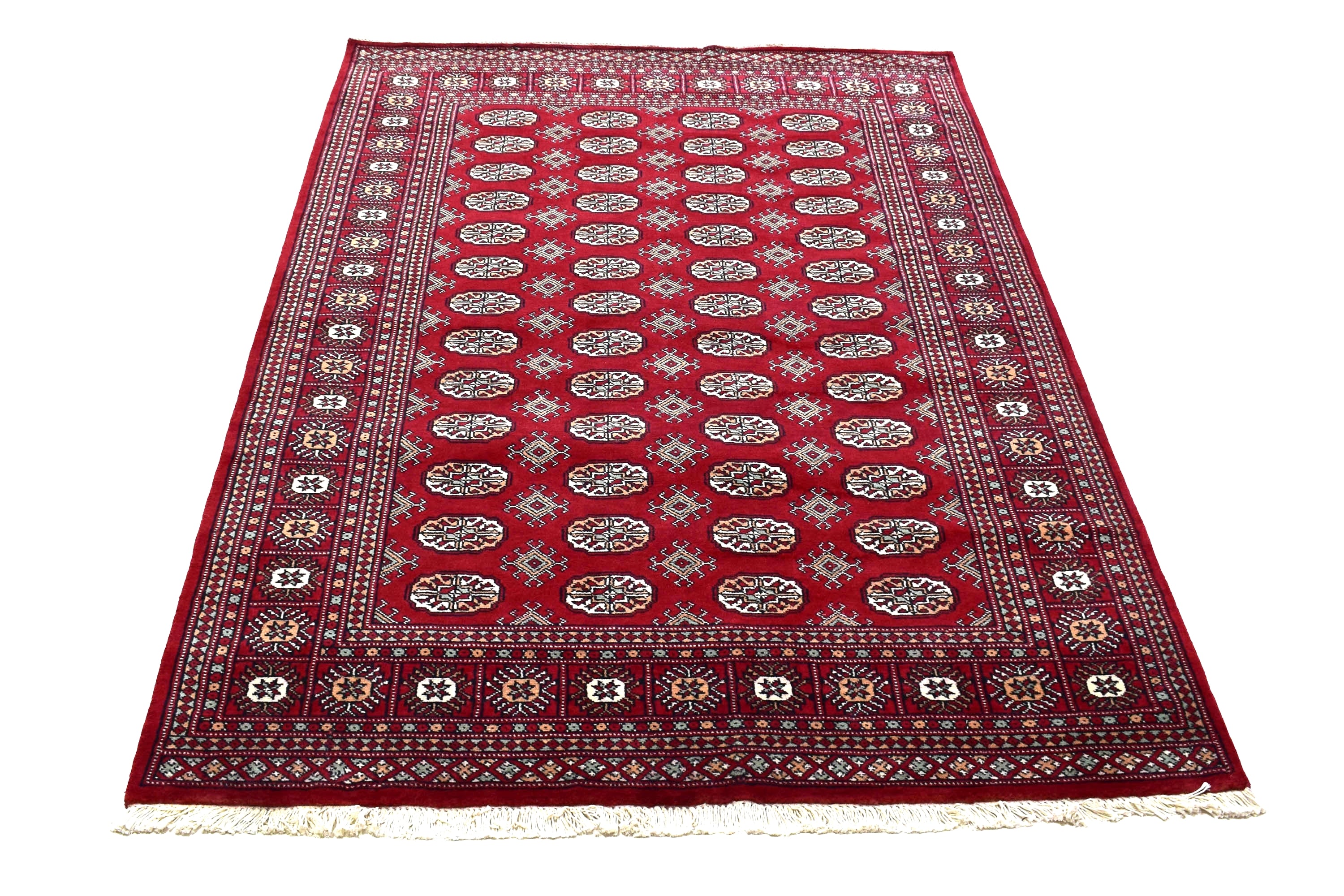 About Bukhara Rug: This beautiful rug has been hand-knotted in the Kashmir/Peshawar region by skilled artisan weavers. Bokhara rugs are some of the finest rugs manufactured in Pakistan. Using a combination of NZ and local Pakistani wool on a cotton base, the Pakistani Bokhara has an incredibly soft and thick pile with average high knot count (approx. 150~200 KPSI). These stunning Bokhara rugs have small, repeating geometric designs