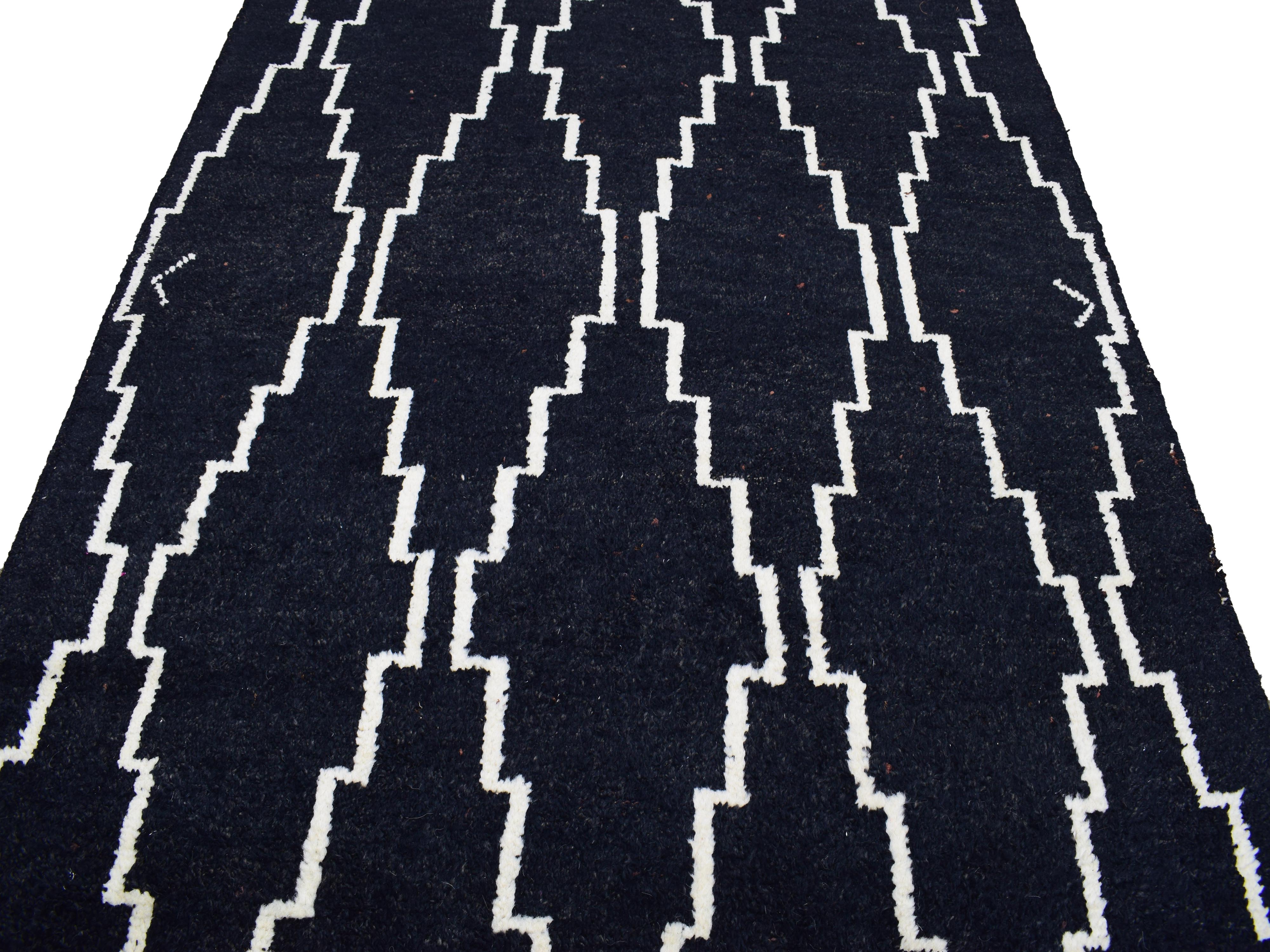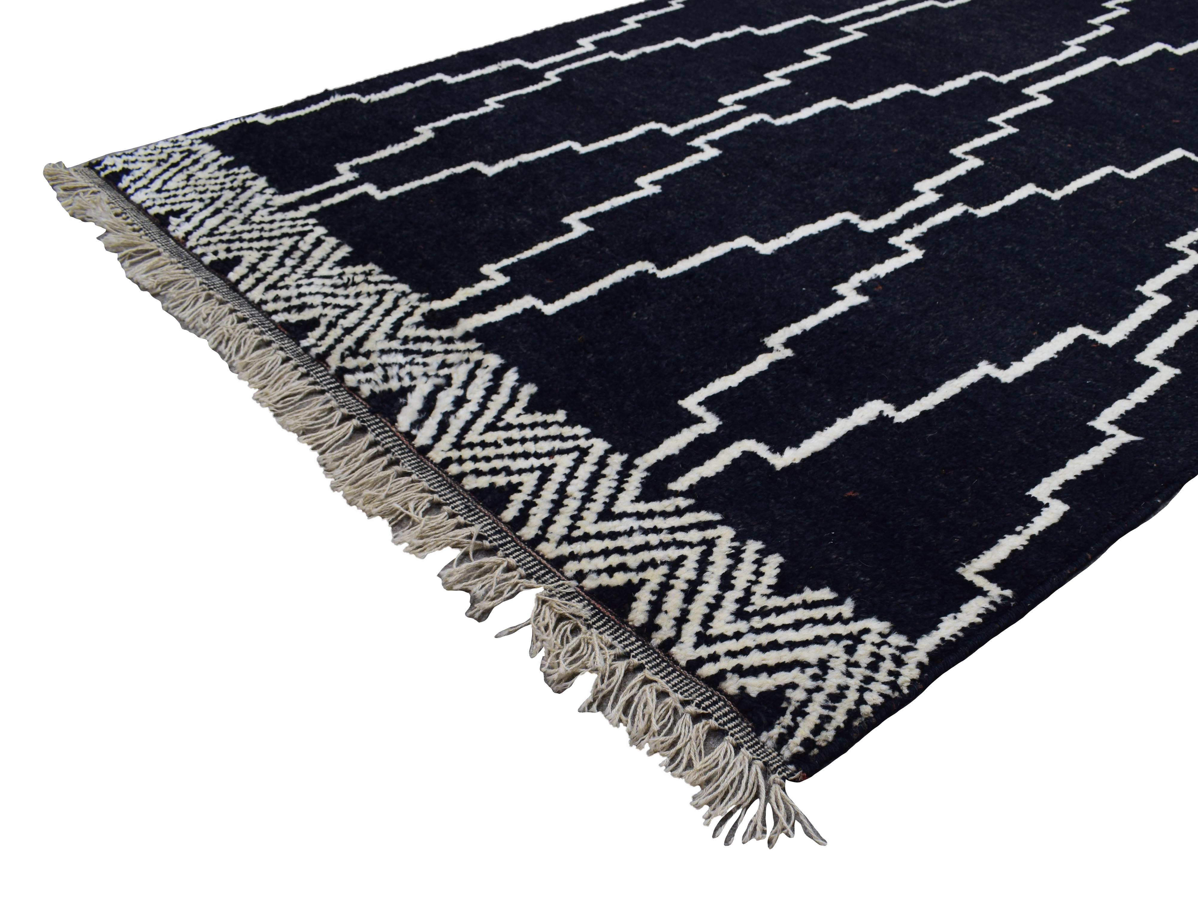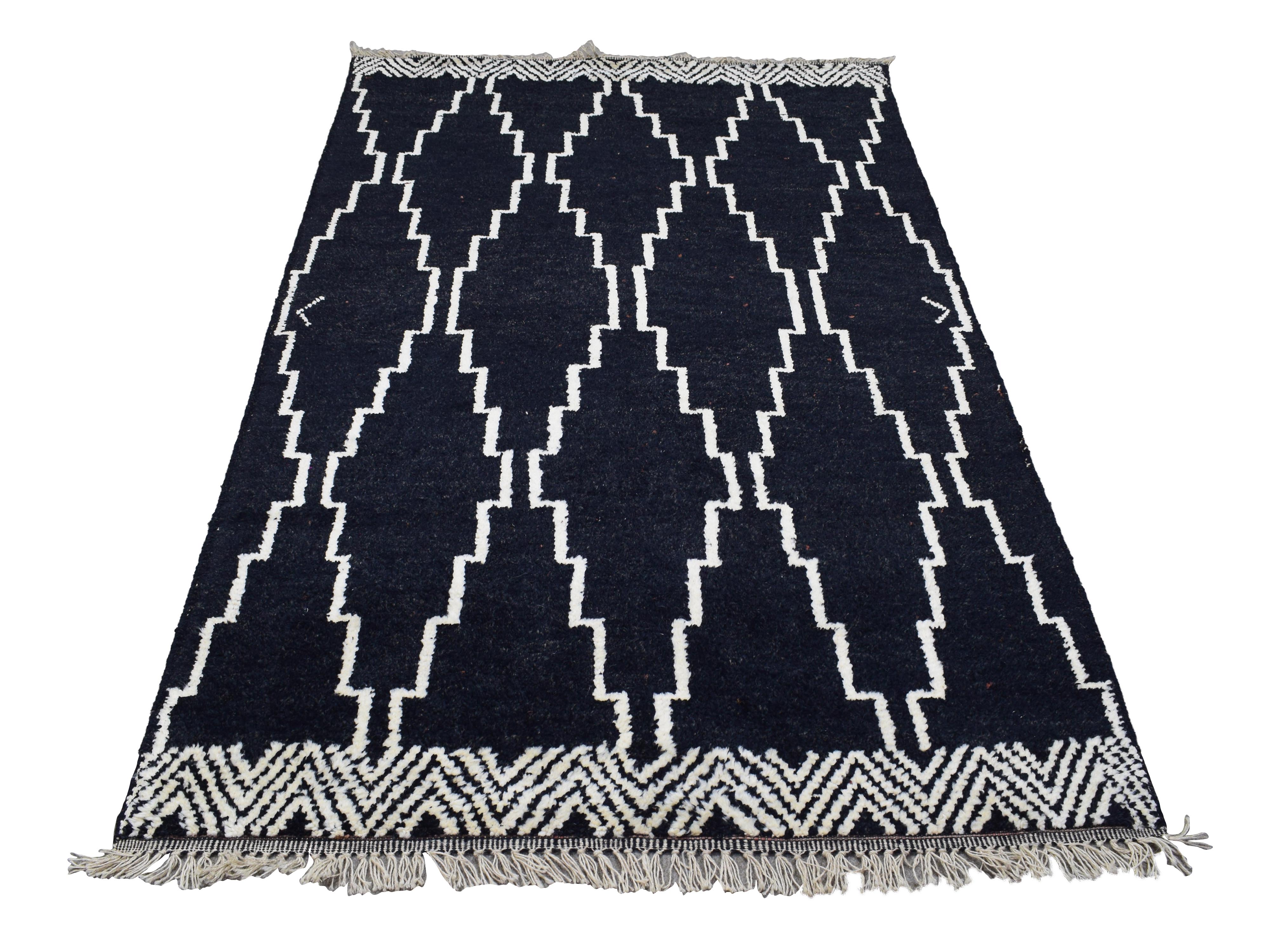 About Moroccan Rug: This Moroccan-style rug has been hand-knotted with New Zealand wool in Pakistan. Notoriously distinct for its geometric designs, the Moroccan rug features bold designs that differ from traditional Persian rugs adding an element of timelessness. Each piece is a sliver of history, a slice of true folk art, and an heirloom that may be passed down for generations.
