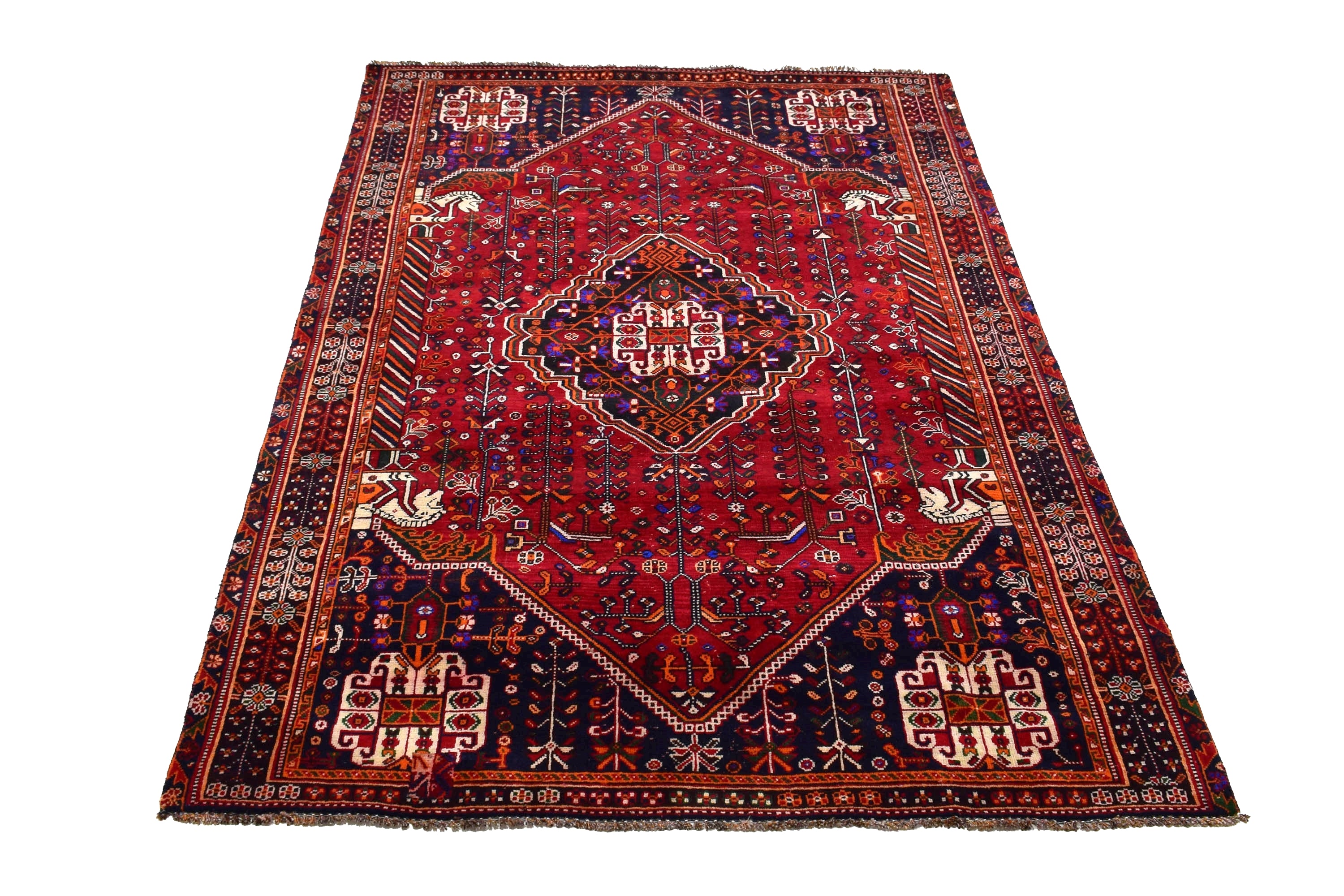 Hand Knotted Vintage Persian Shiraz Wool Rug!