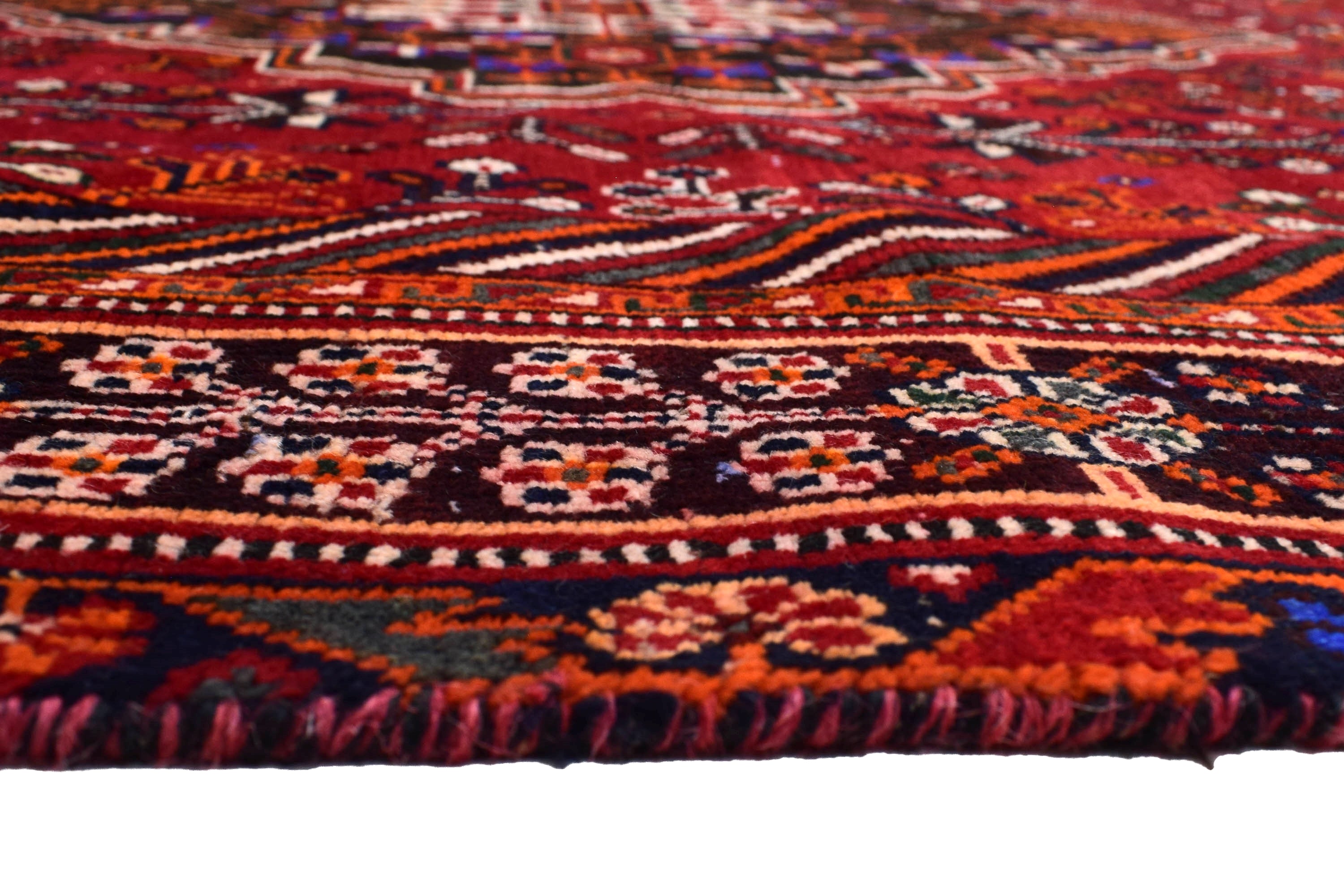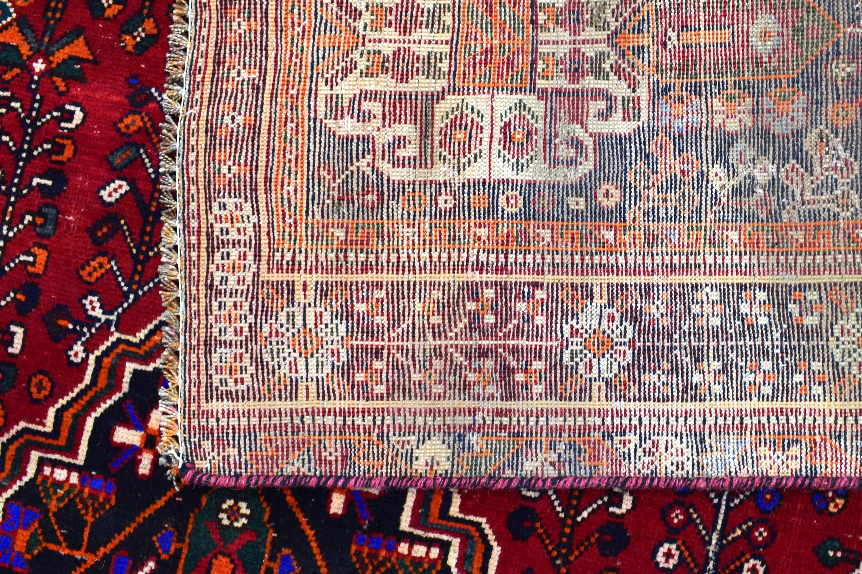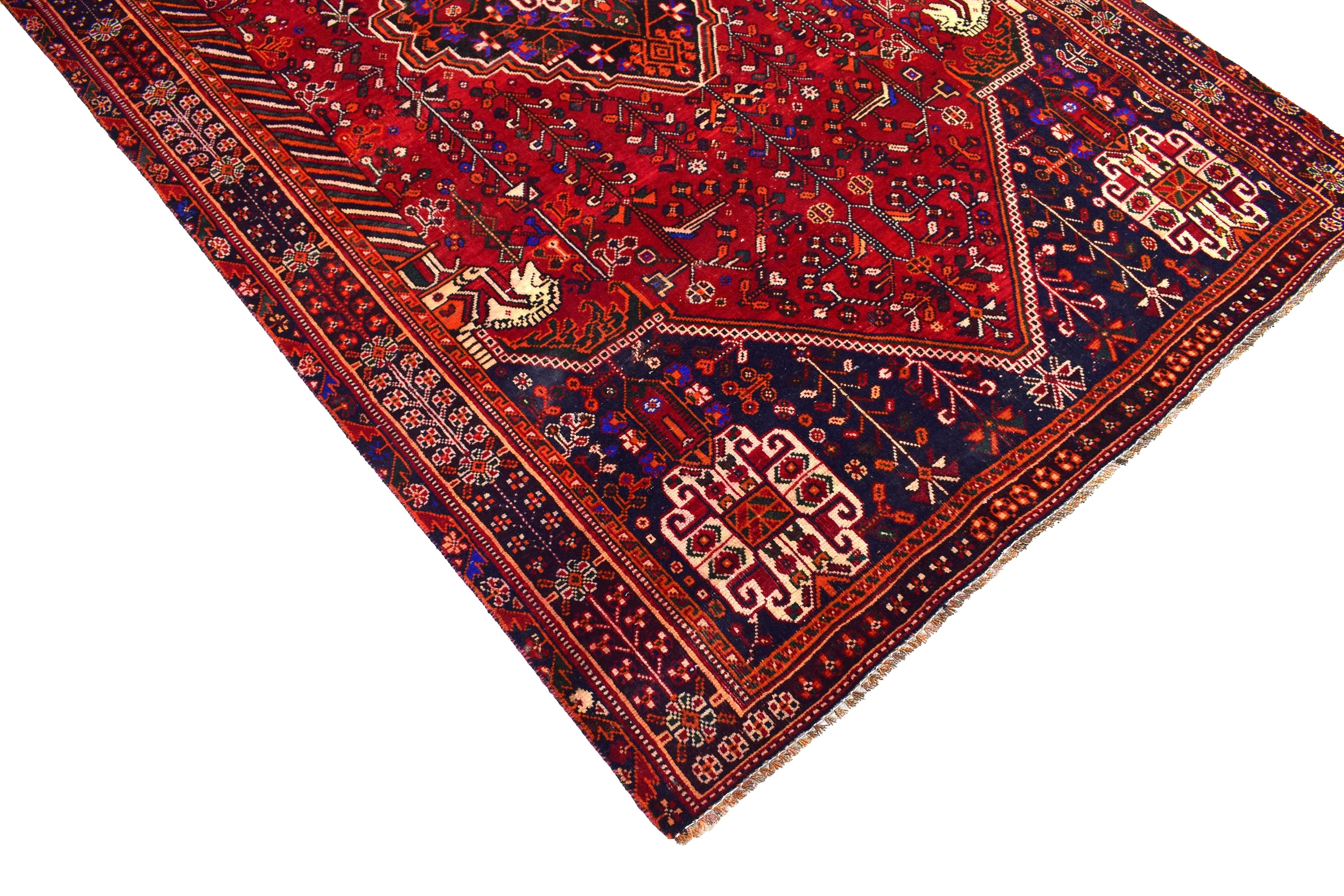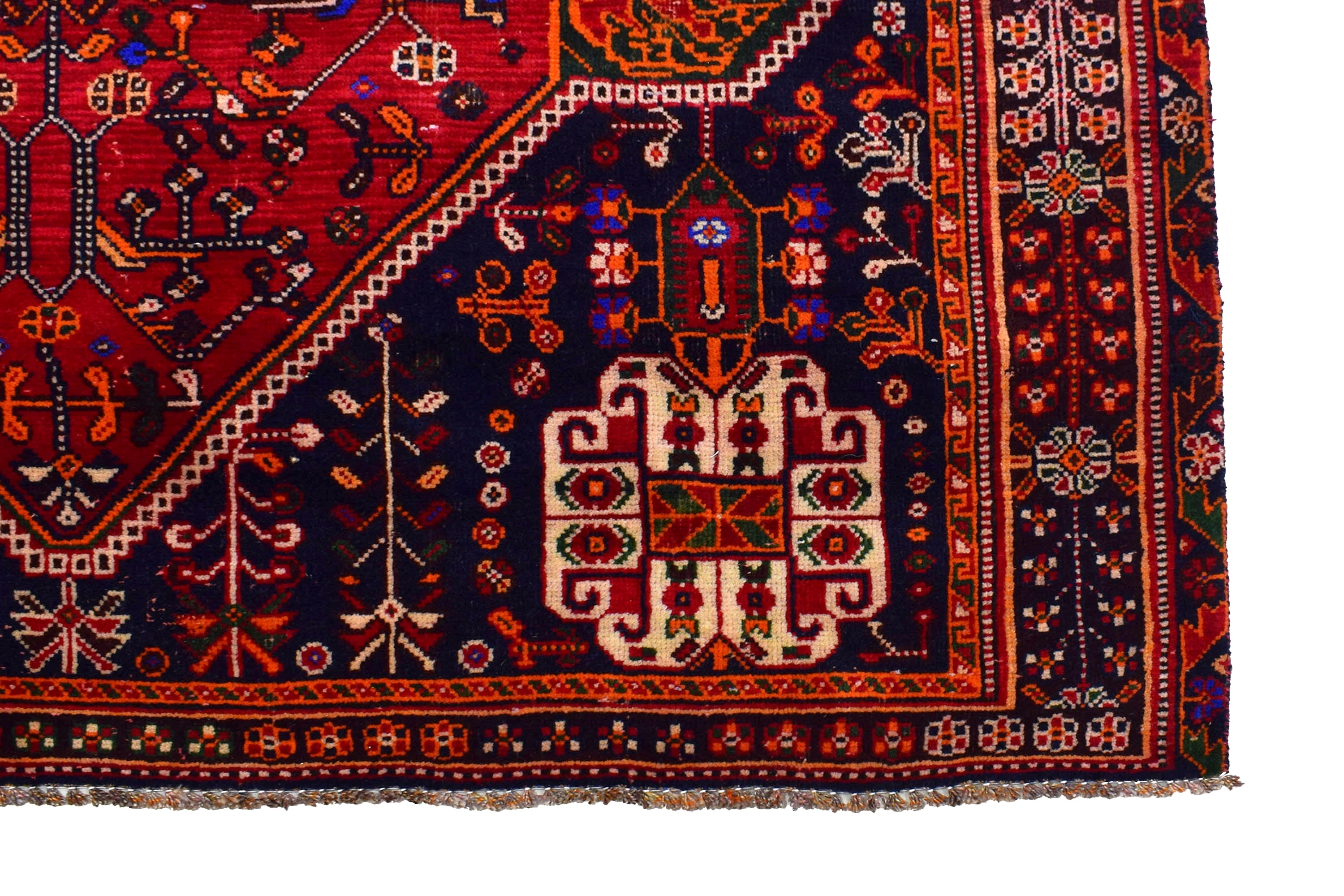 About Persian Shiraz Rug: This beautiful rug was hand-woven in Shiraz, located in the southern part of Iran. Shiraz rugs are woven on a cotton or wool foundation with a woollen pile. These nomadic rugs are geometrical in style, and extremely hard wearing with average knot count around 120 KPSI.
