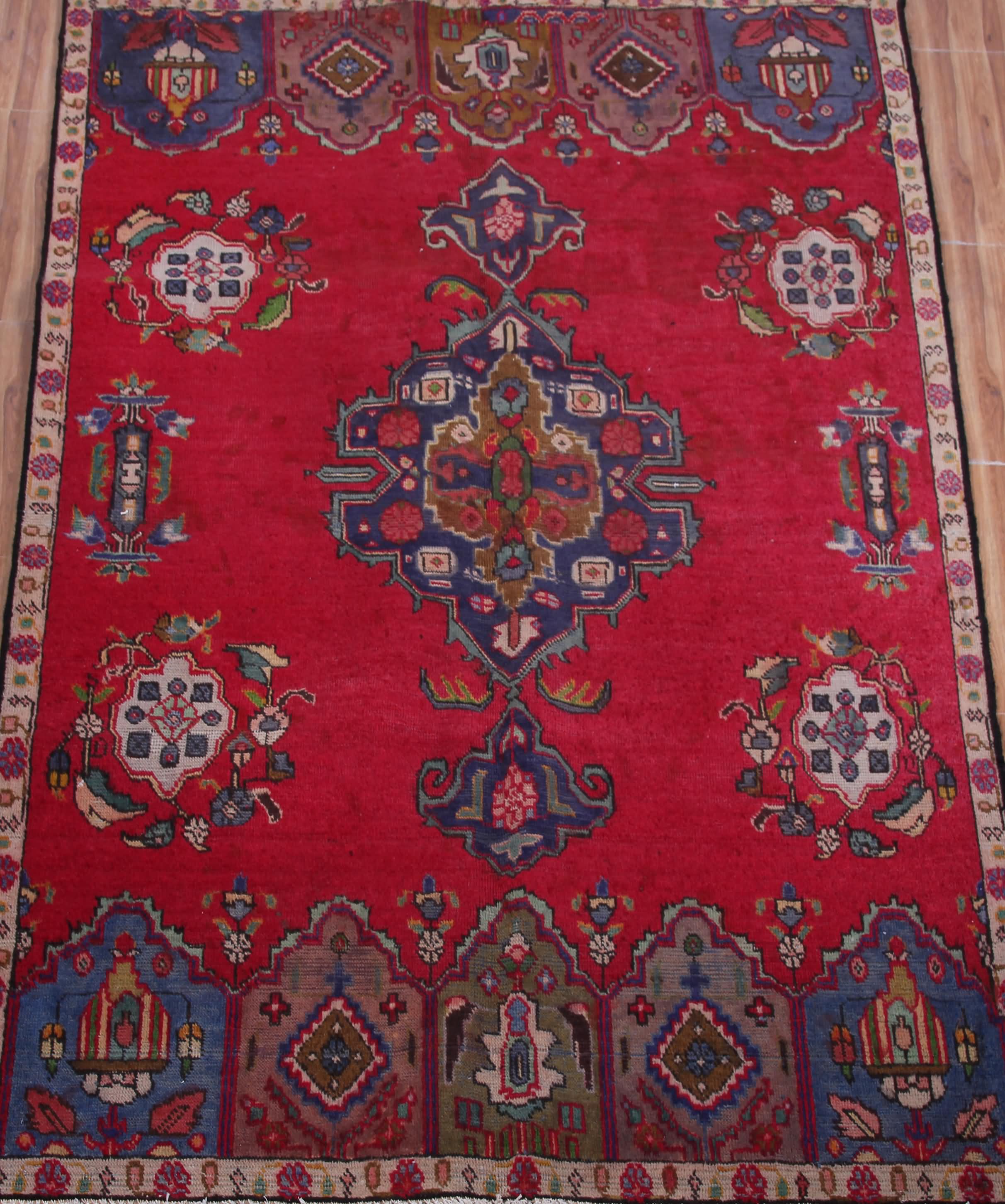 About Persian Tabriz Rug: This beautiful rug was hand-woven in Tabriz, Iran. The Tabriz rugs have an incredibly tight weave, each knot is woven again and again until the rug's base is tightly maintained. The Characteristics of these rugs are high knot density (around 100,000 - 400,000 knots/sqm), middle medallion and floral pattern.