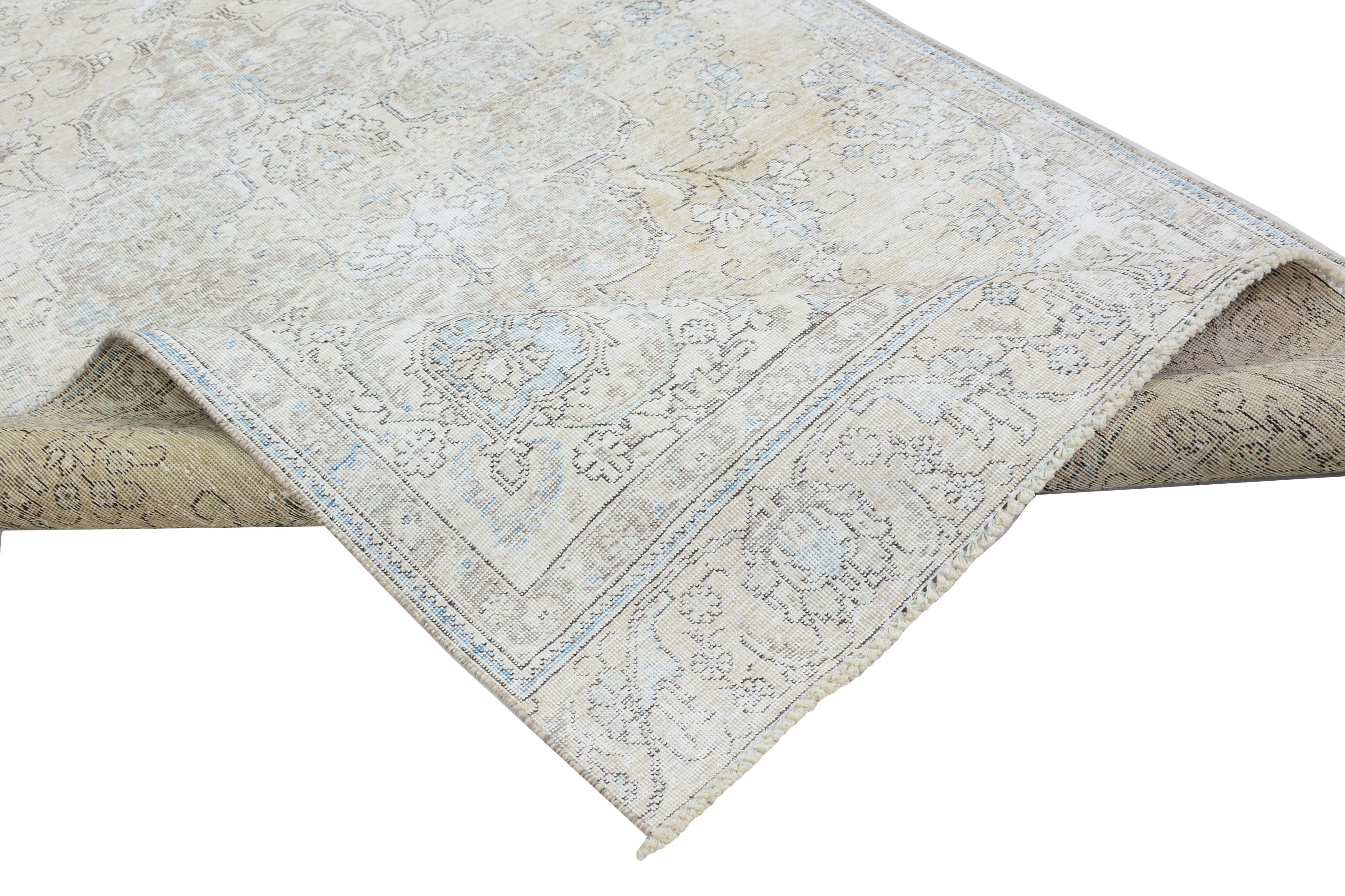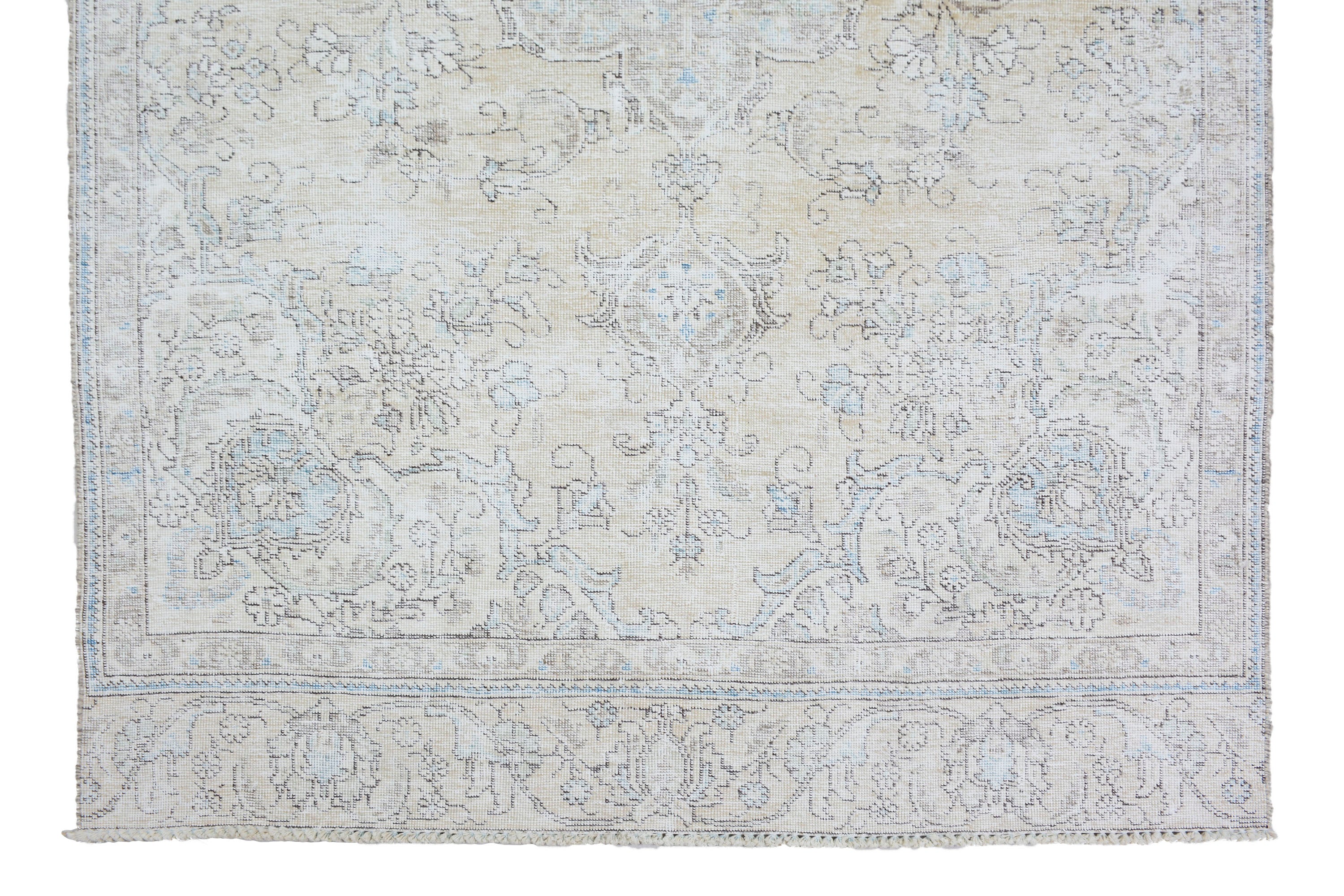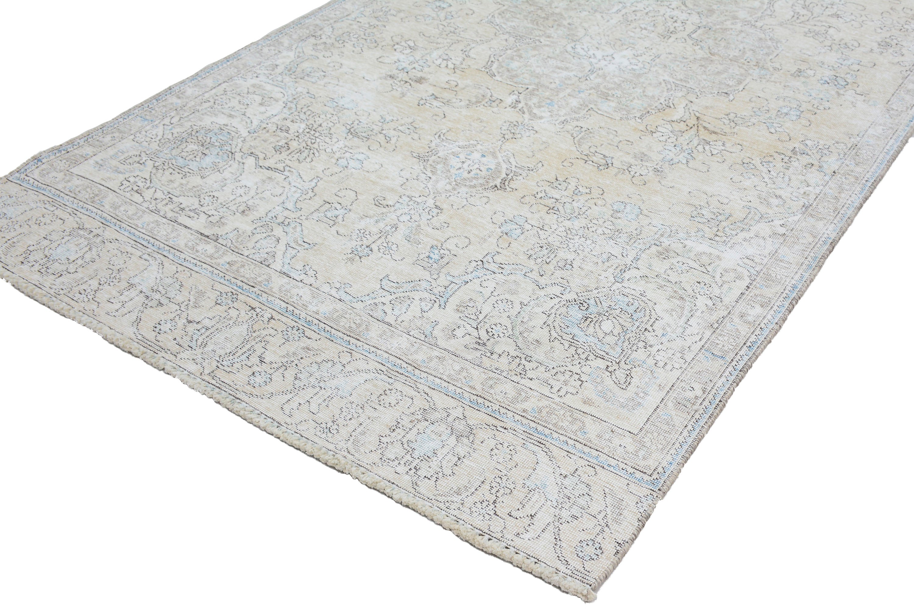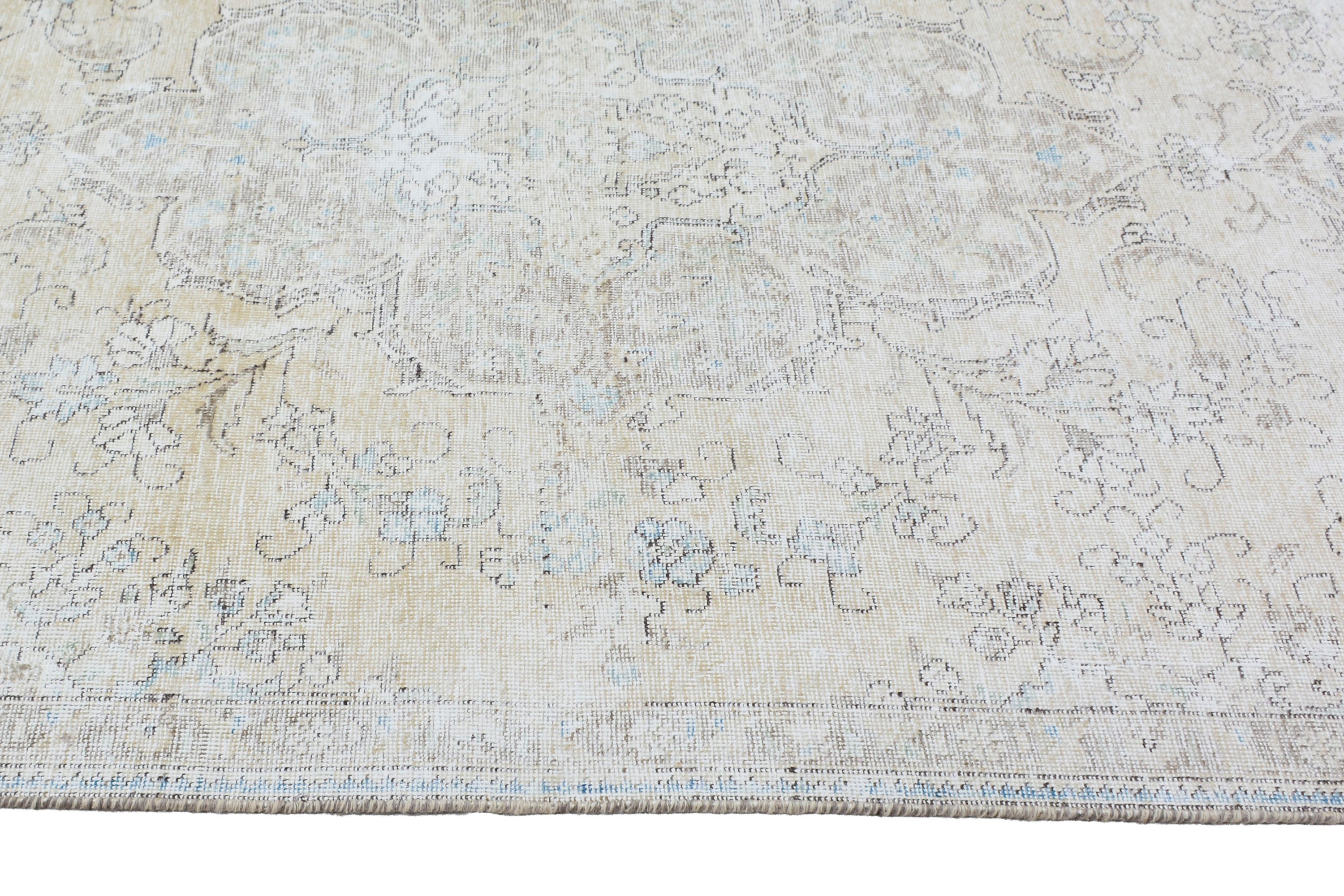 About Stone-washed Rug: This beautiful rug was hand-woven in the 1970s in Tabriz, Iran. Later, this vintage rug was shaved down to a lower pile to make it a faded rug. Stone-washed rugs represent a trend that has achieved a crossover between fashion and home décor. This new look celebrates rugs that are faded, and worn over time; rugs nestle into homes as if they’ve always been there. Stone-washed rugs are shaved rugs so they do not have a soft pile.
