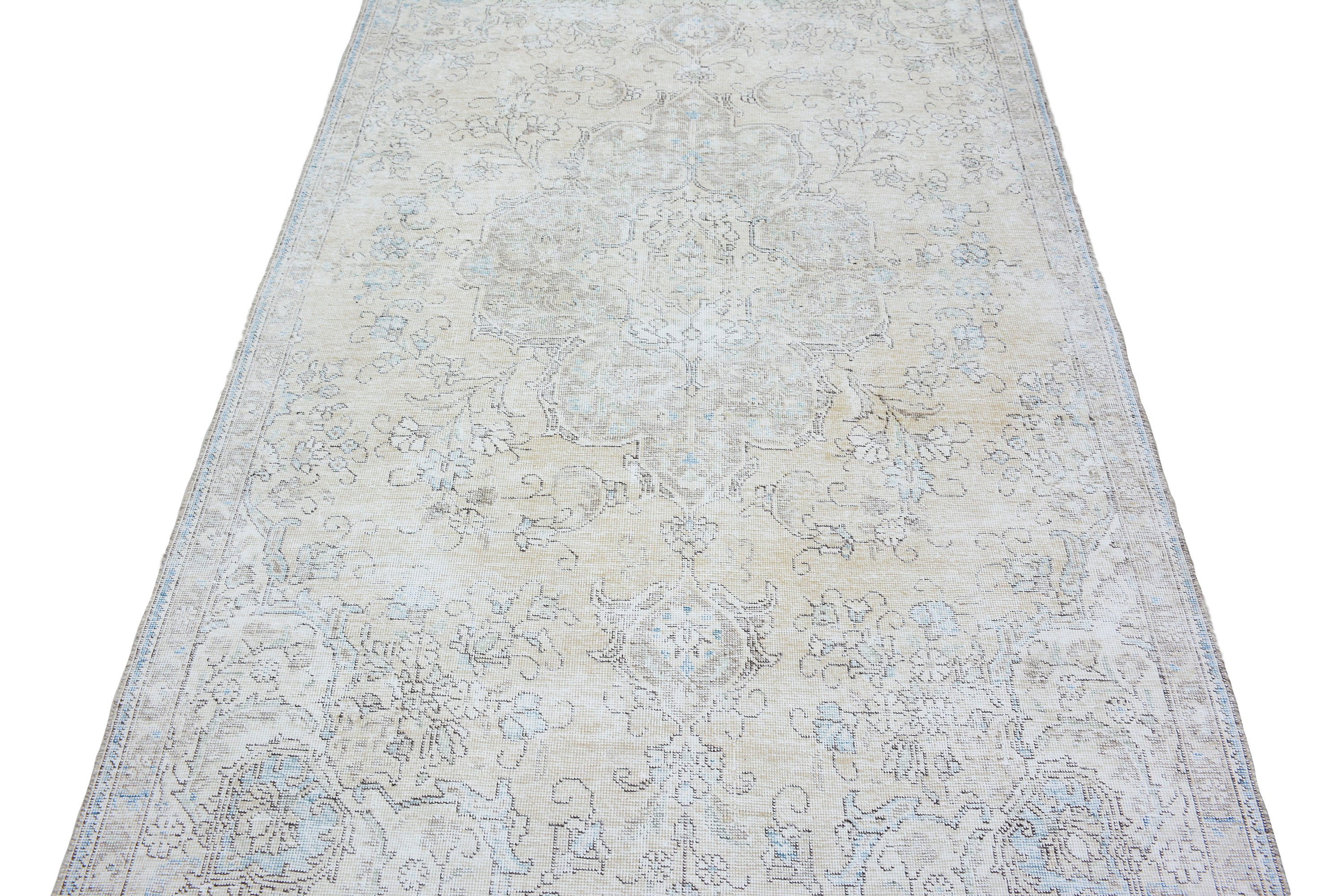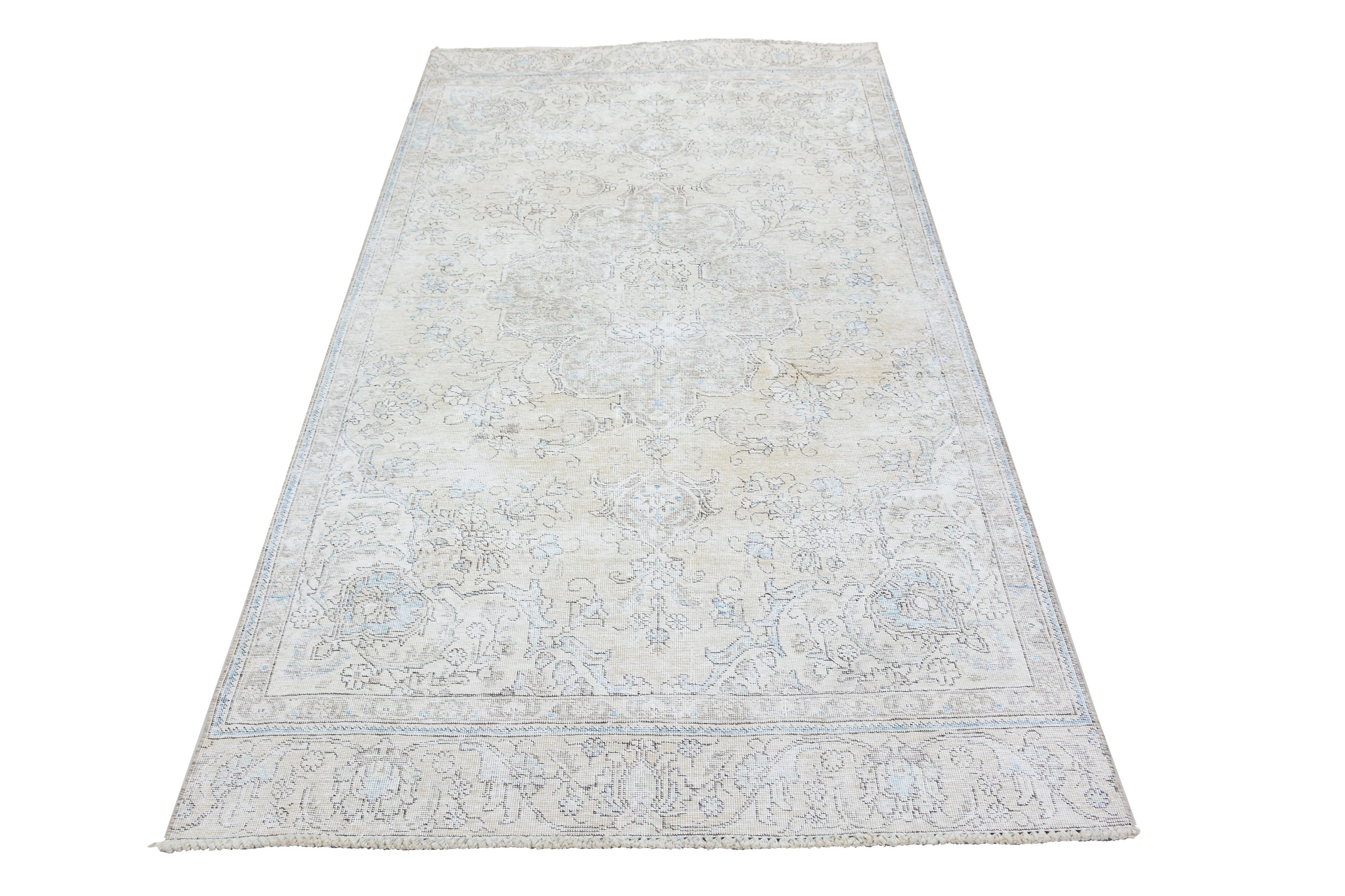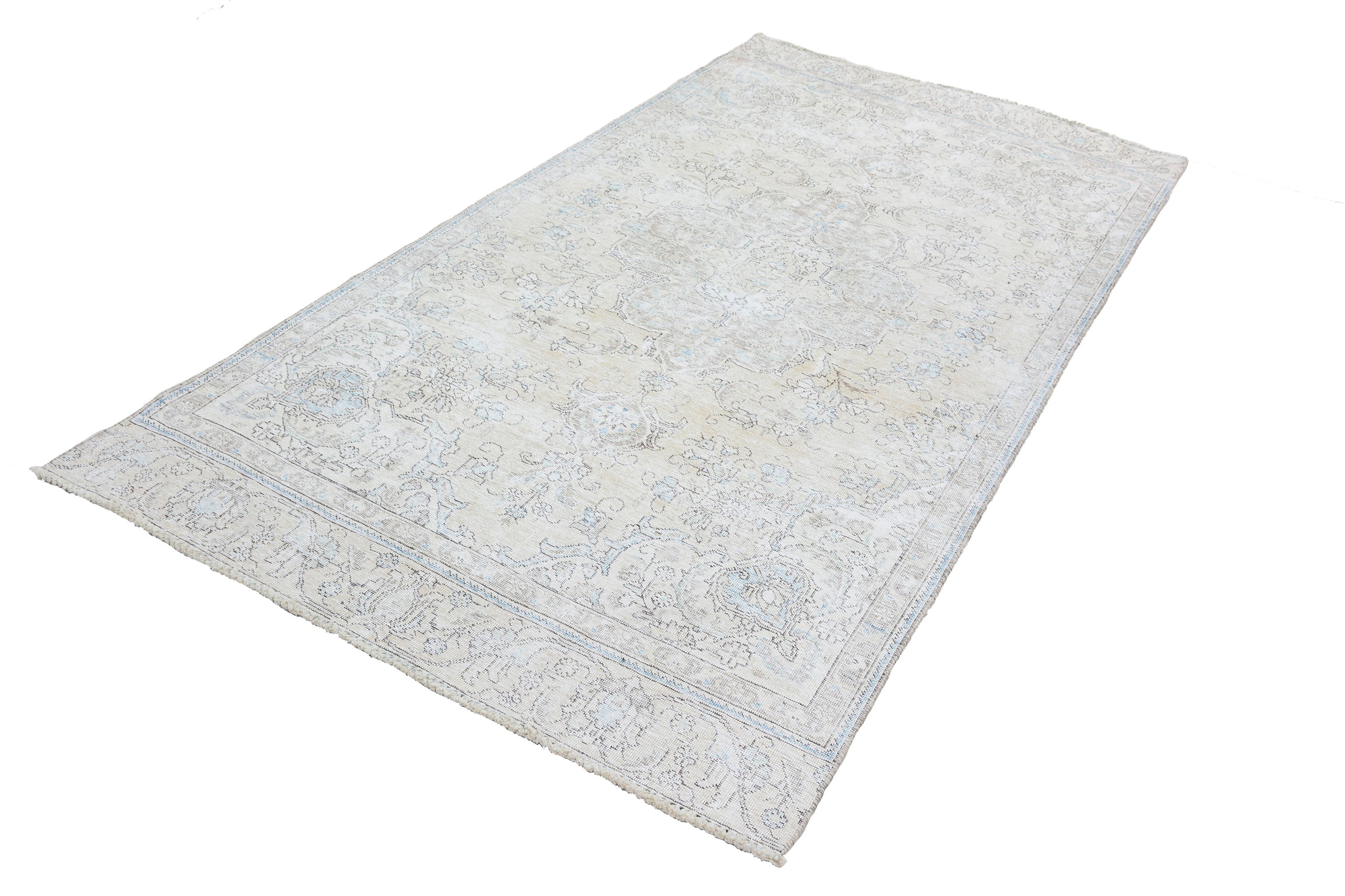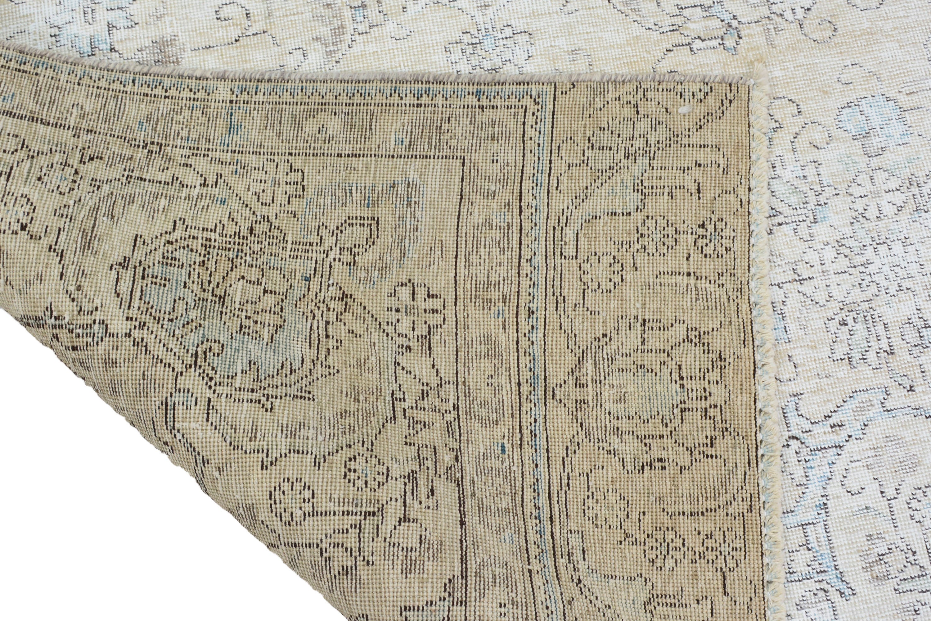 About Stone-washed Rug: This beautiful rug was hand-woven in the 1970s in Tabriz, Iran. Later, this vintage rug was shaved down to a lower pile to make it a faded rug. Stone-washed rugs represent a trend that has achieved a crossover between fashion and home décor. This new look celebrates rugs that are faded, and worn over time; rugs nestle into homes as if they’ve always been there. Stone-washed rugs are shaved rugs so they do not have a soft pile.