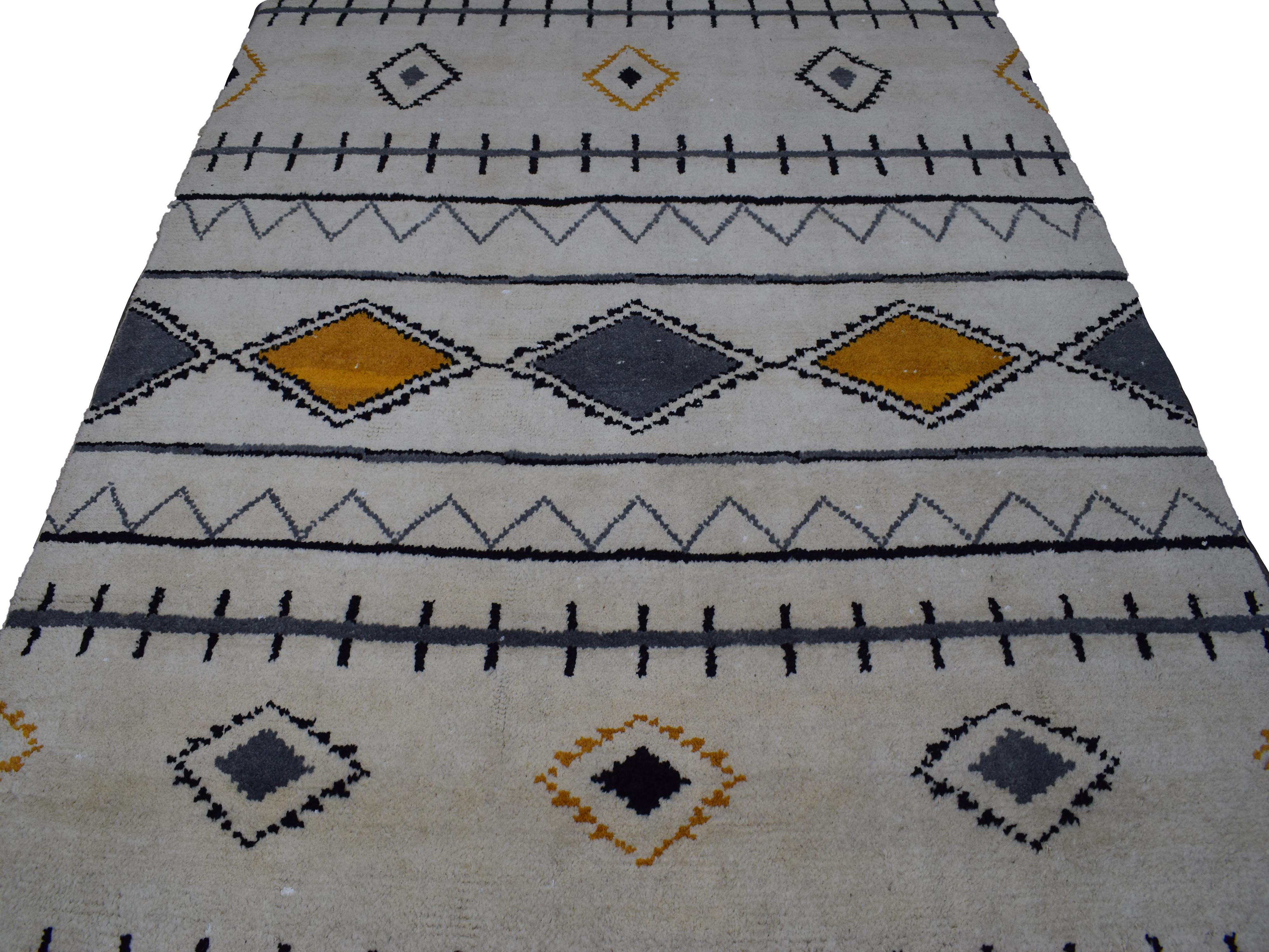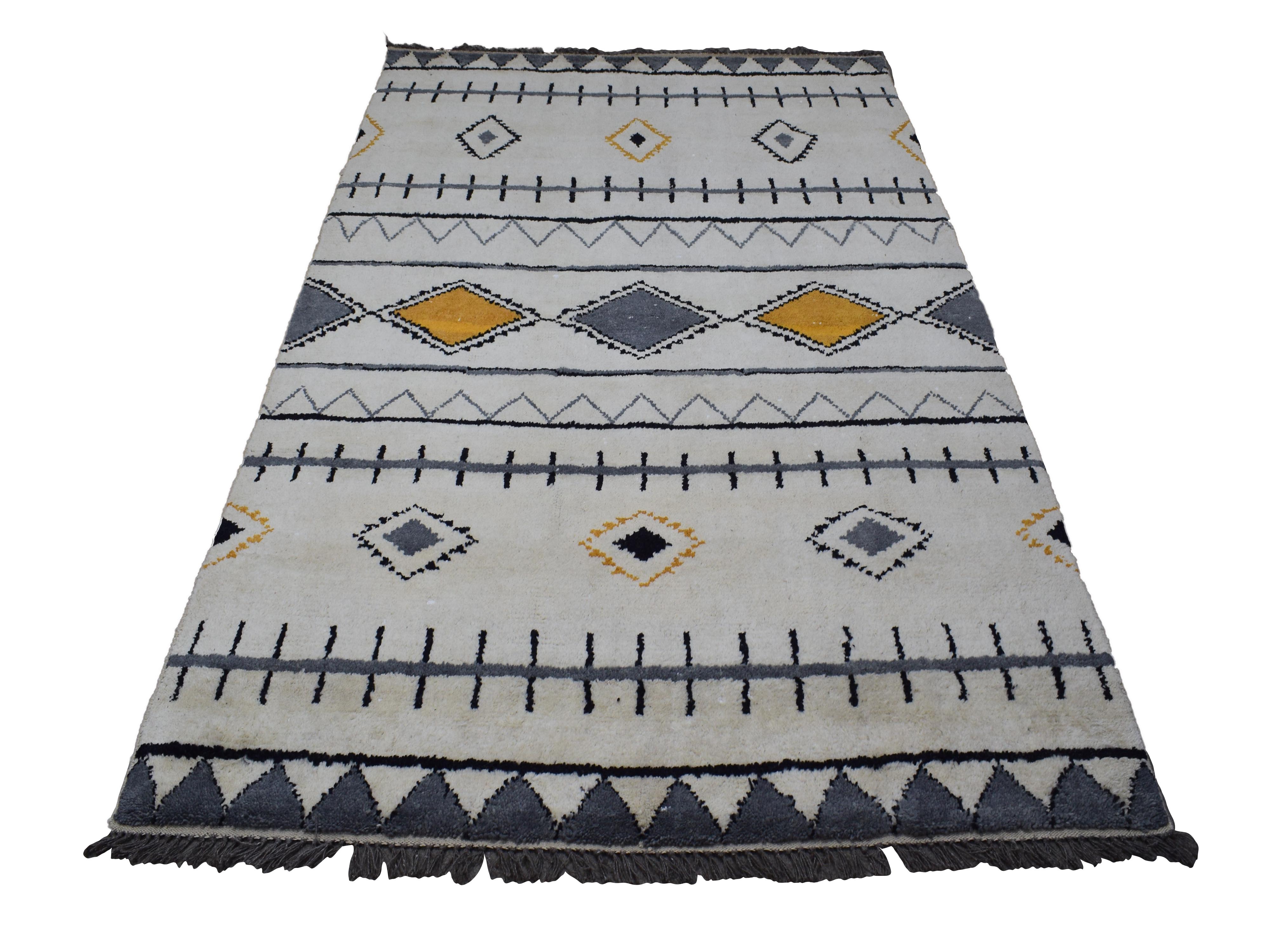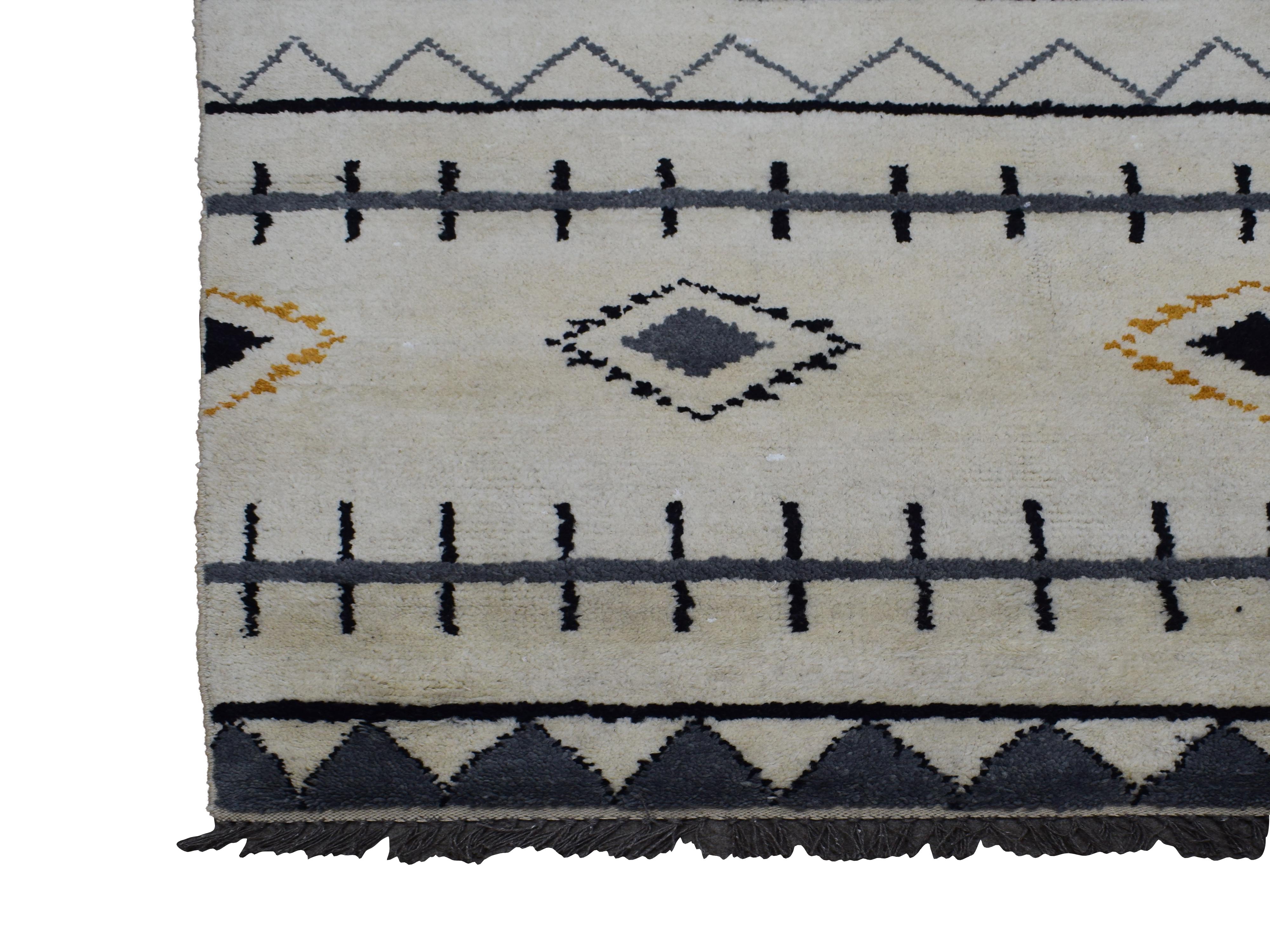 About Moroccan Rug: This Moroccan-style rug has been hand-knotted with New Zealand wool in Pakistan. Notoriously distinct for its geometric designs, the Moroccan rug features bold designs that differ from traditional Persian rugs adding an element of timelessness. Each piece is a sliver of history, a slice of true folk art, and an heirloom that may be passed down for generations.