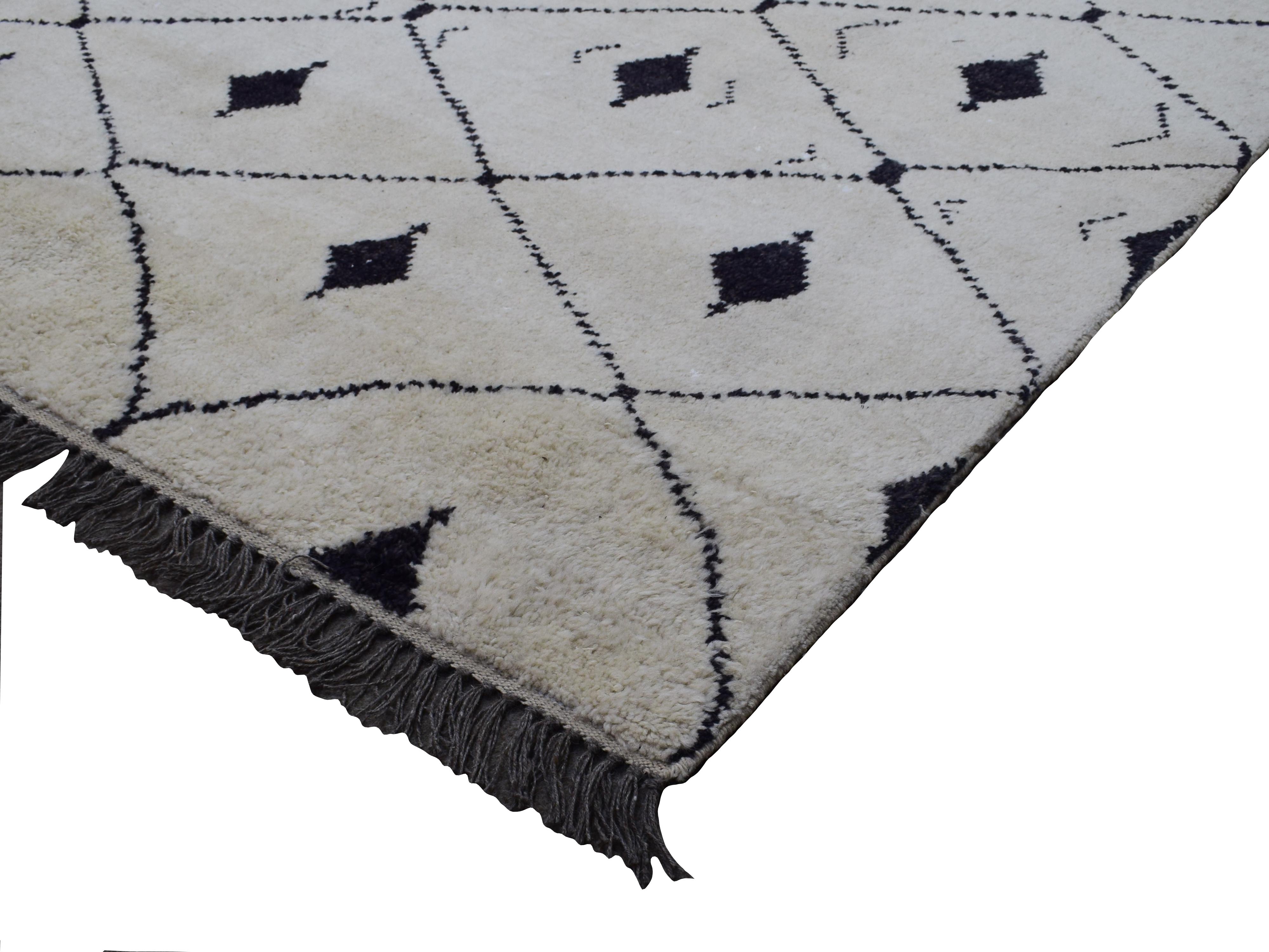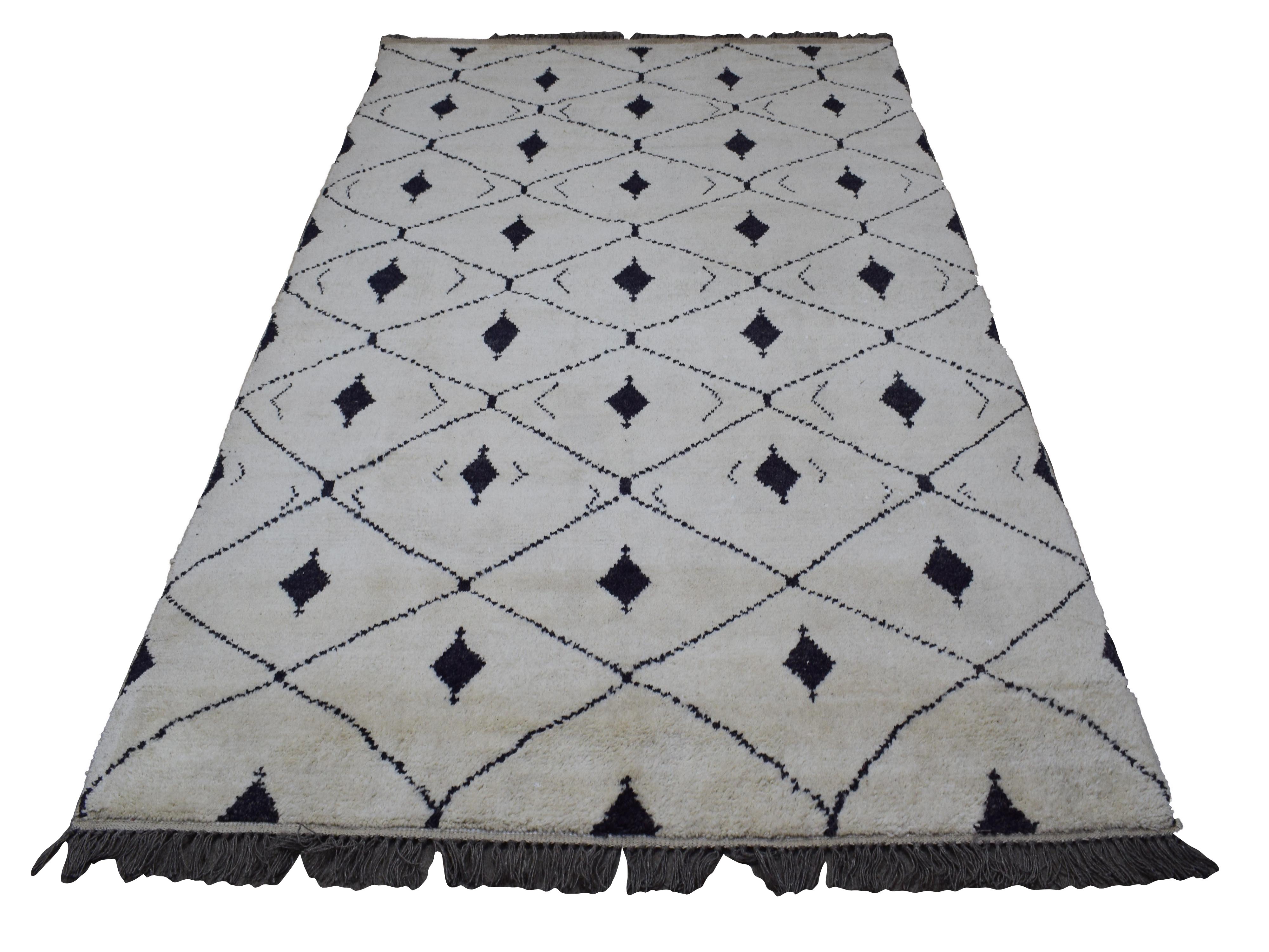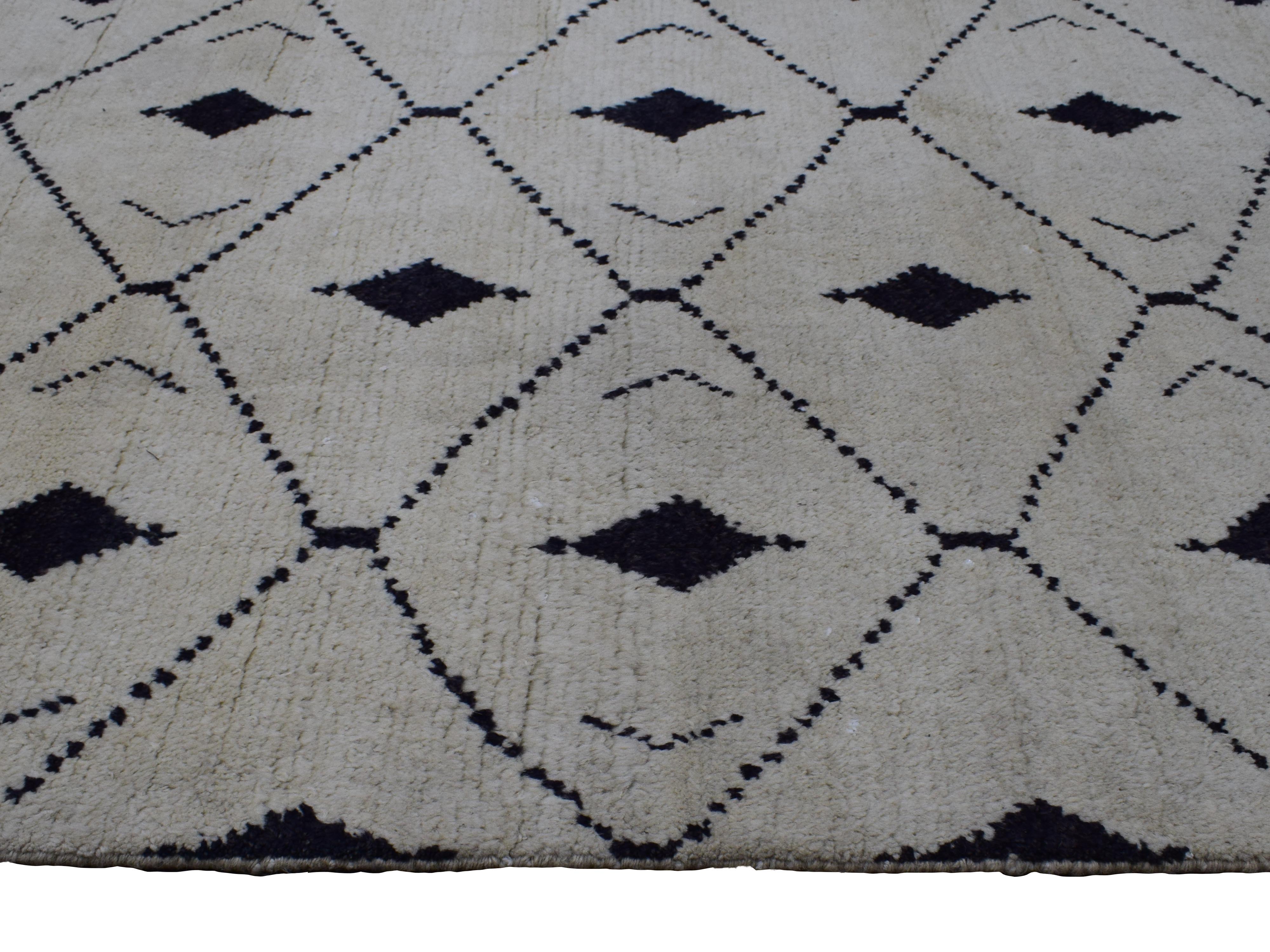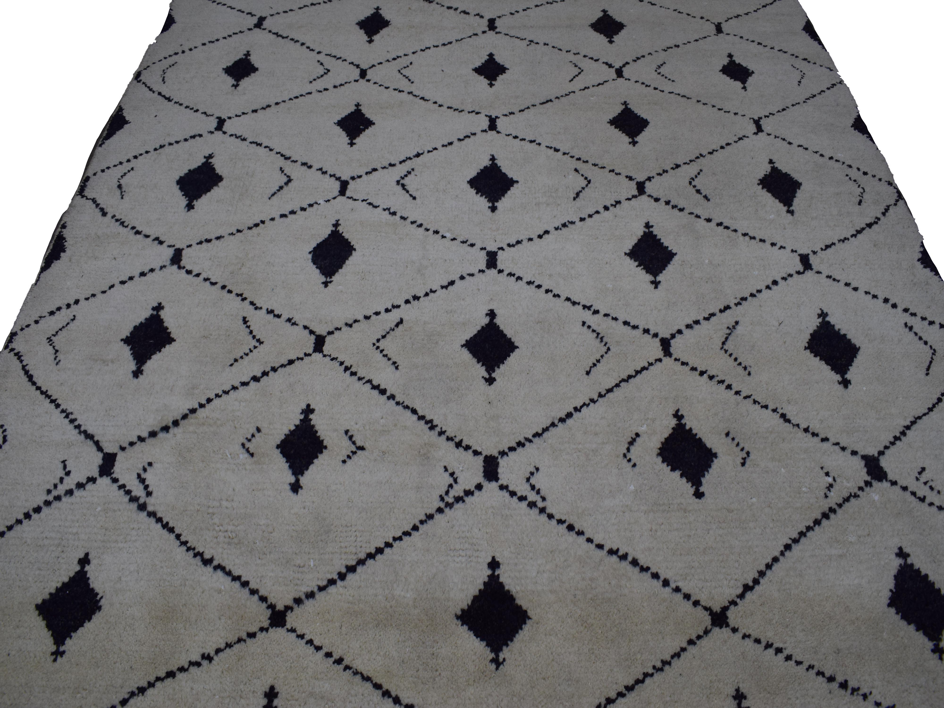 About Moroccan Rug: This Moroccan-style rug has been hand-knotted with New Zealand wool in Pakistan. Notoriously distinct for its geometric designs, the Moroccan rug features bold designs that differ from traditional Persian rugs adding an element of timelessness. Each piece is a sliver of history, a slice of true folk art, and an heirloom that may be passed down for generations.