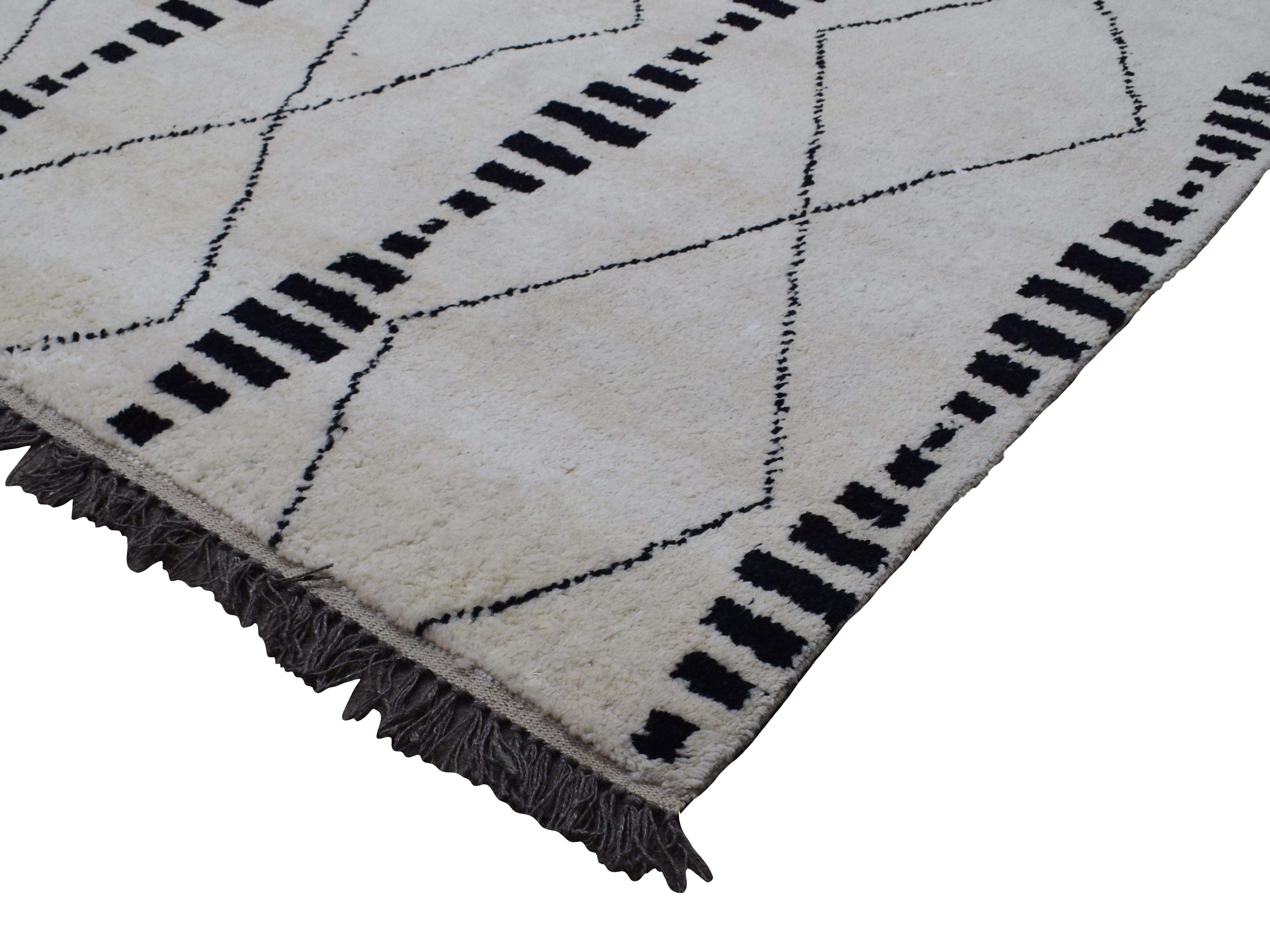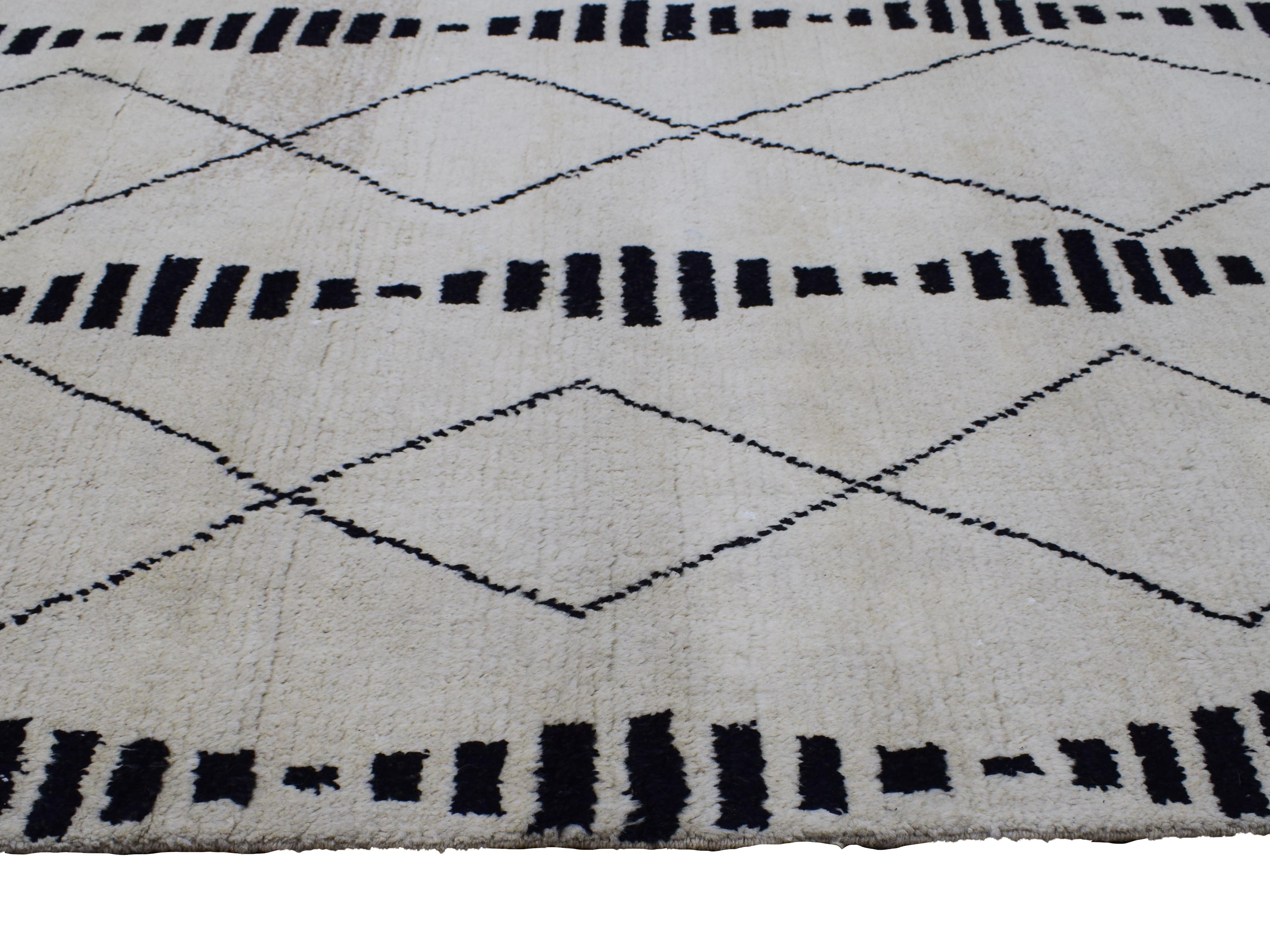 About Moroccan Rug: This Moroccan-style rug has been hand-knotted with New Zealand wool in Pakistan. Notoriously distinct for its geometric designs, the Moroccan rug features bold designs that differ from traditional Persian rugs adding an element of timelessness. Each piece is a sliver of history, a slice of true folk art, and an heirloom that may be passed down for generations.
