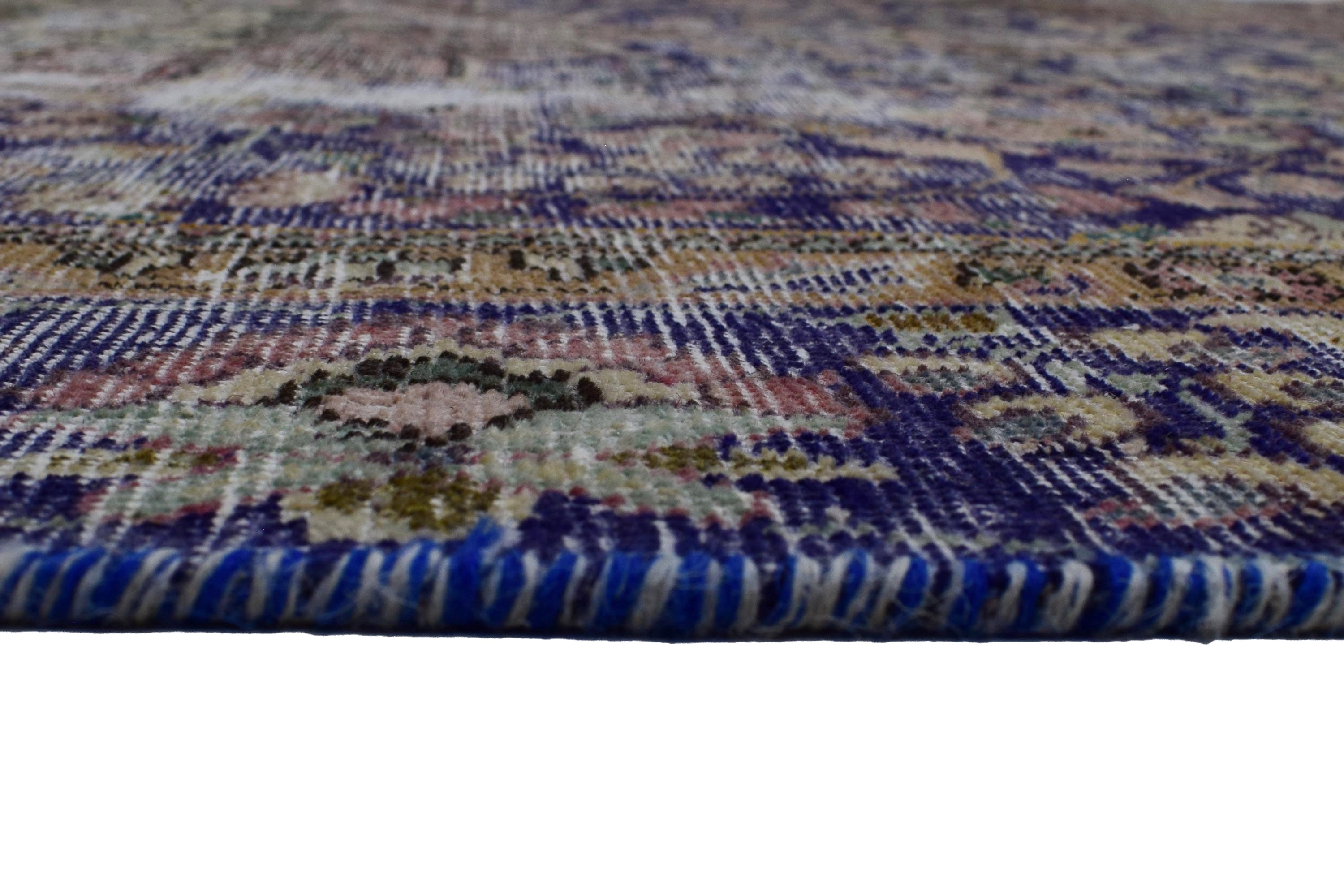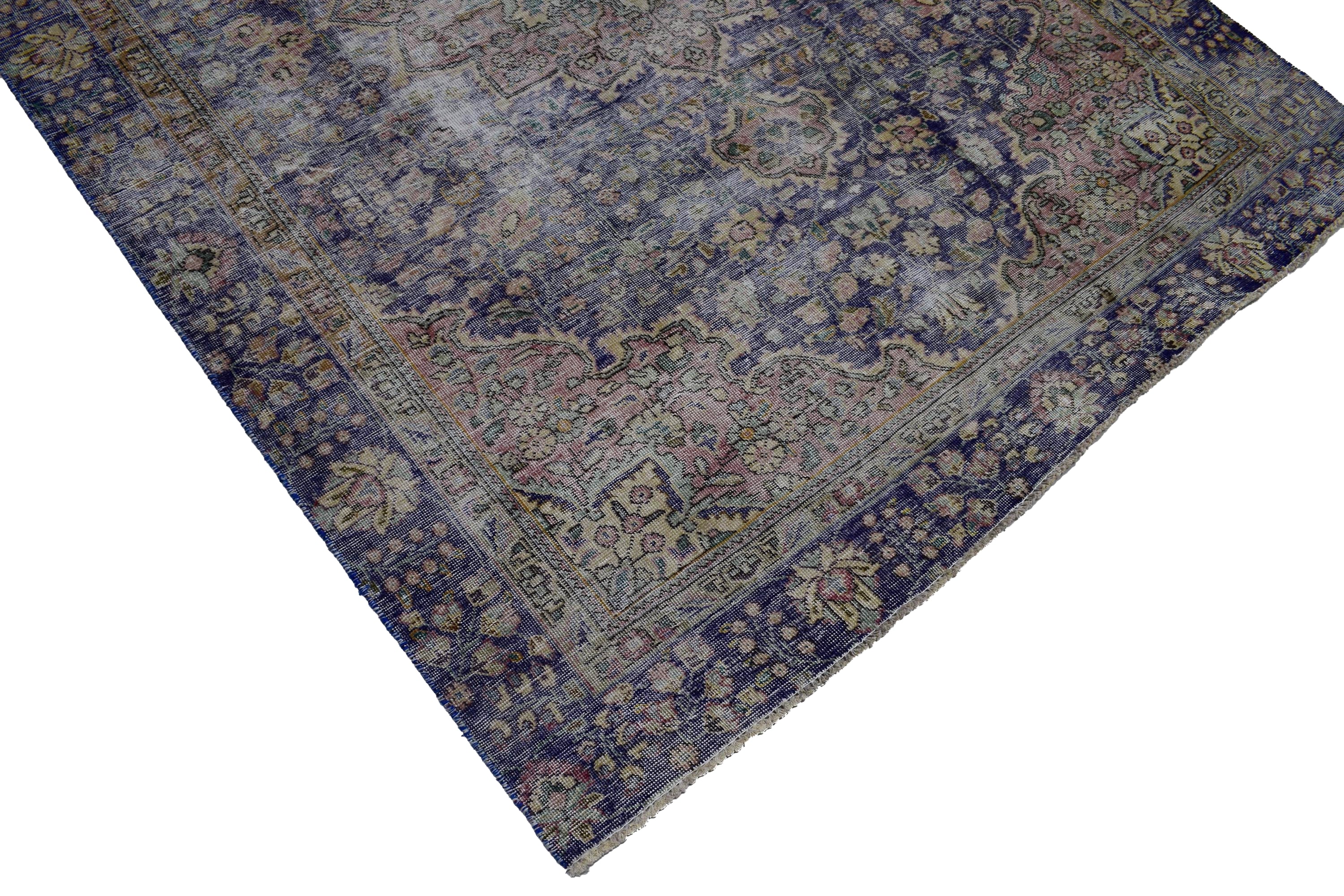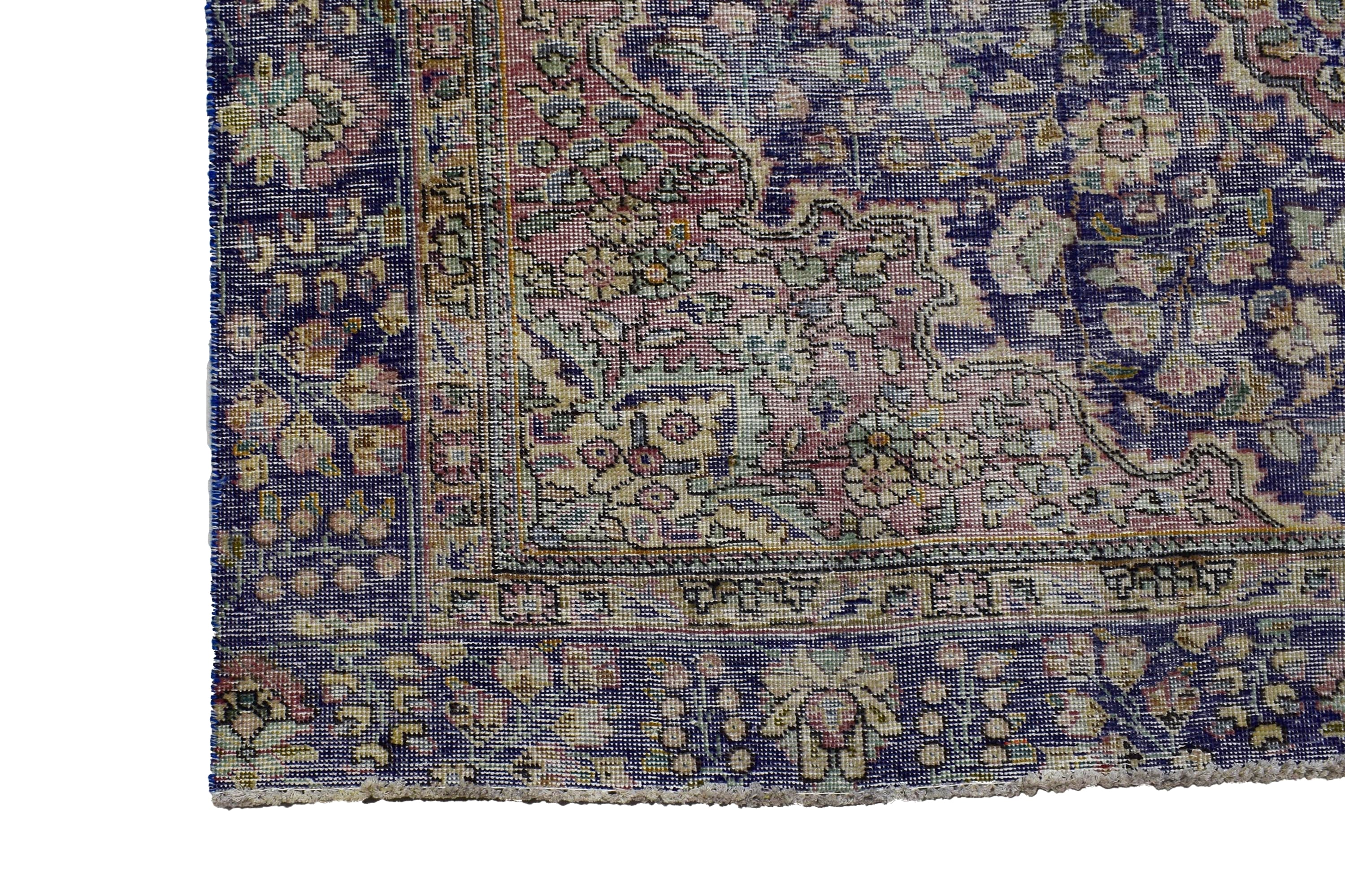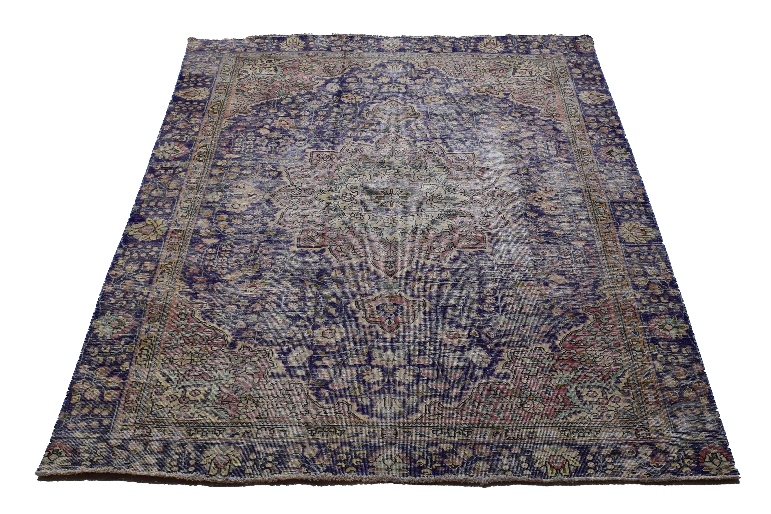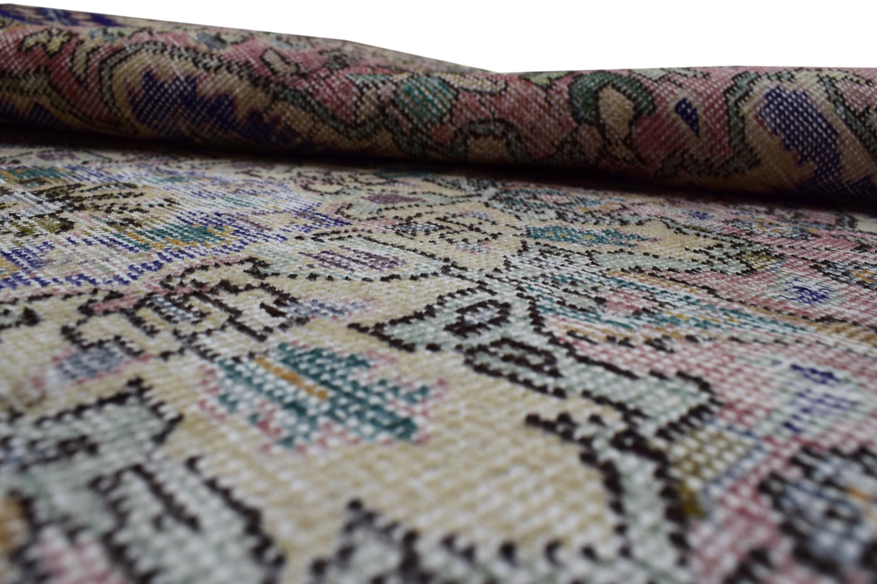 About Distressed Rug: This beautiful rug was hand-woven in 1970's in Tabriz, Iran. Later, this vintage rug has been shaved down to a lower pile to make it a faded rug on purpose. Distressed Rugs represent a trend that has achieved a crossover between fashion and home décor. This new look celebrates rugs that are faded, and worn over time; rugs that nestle into homes as if they’ve always been there. Distressed rugs are shaved rugs so they do not have a soft pile.