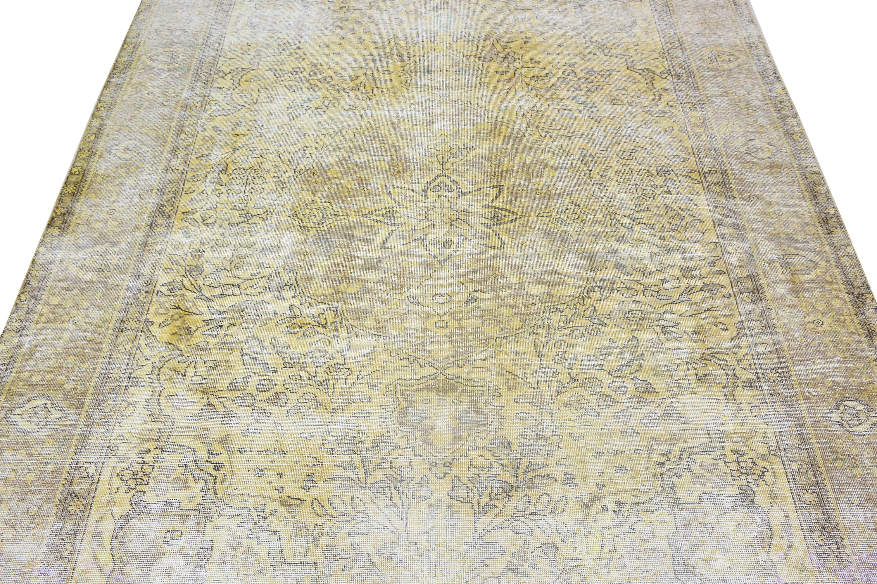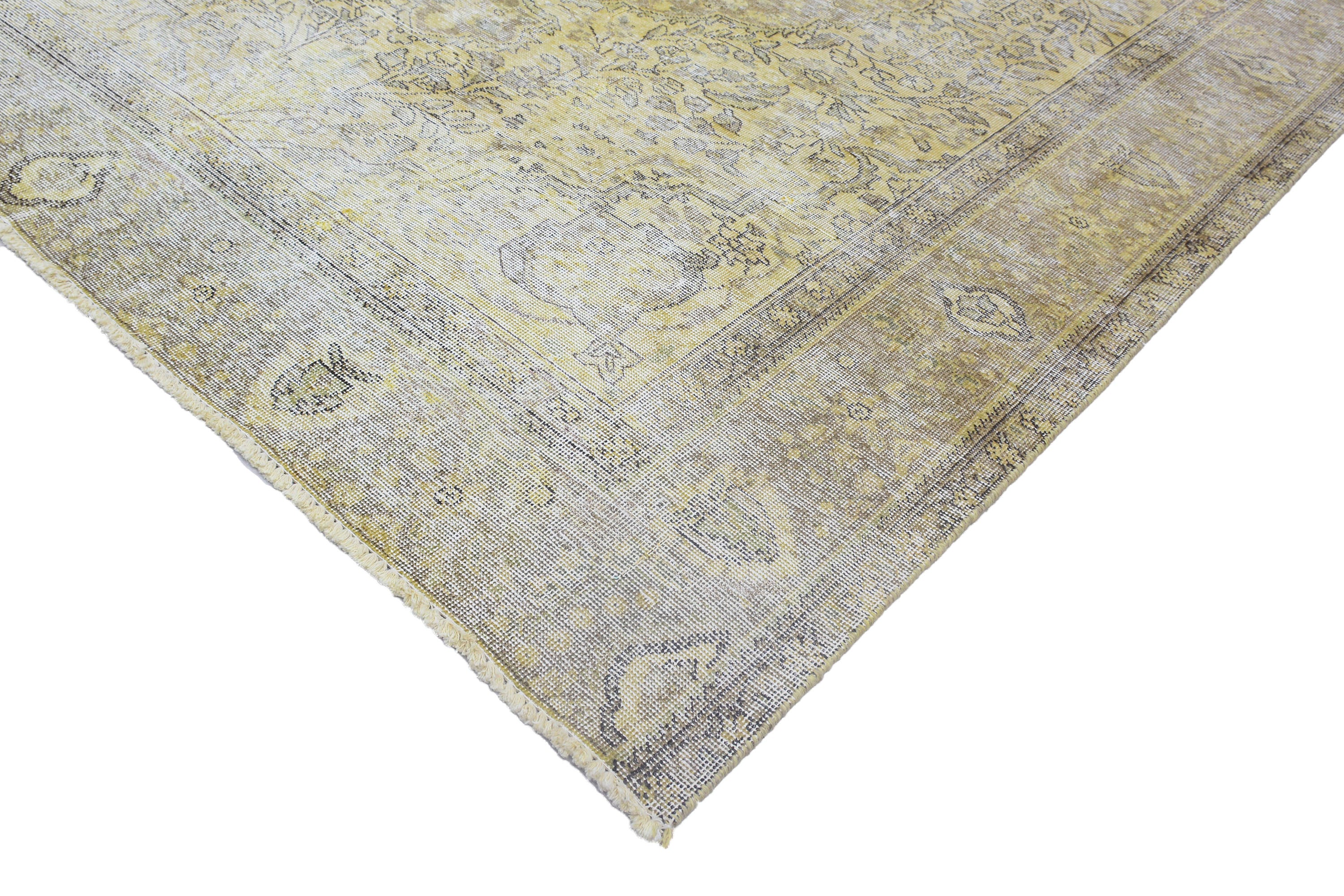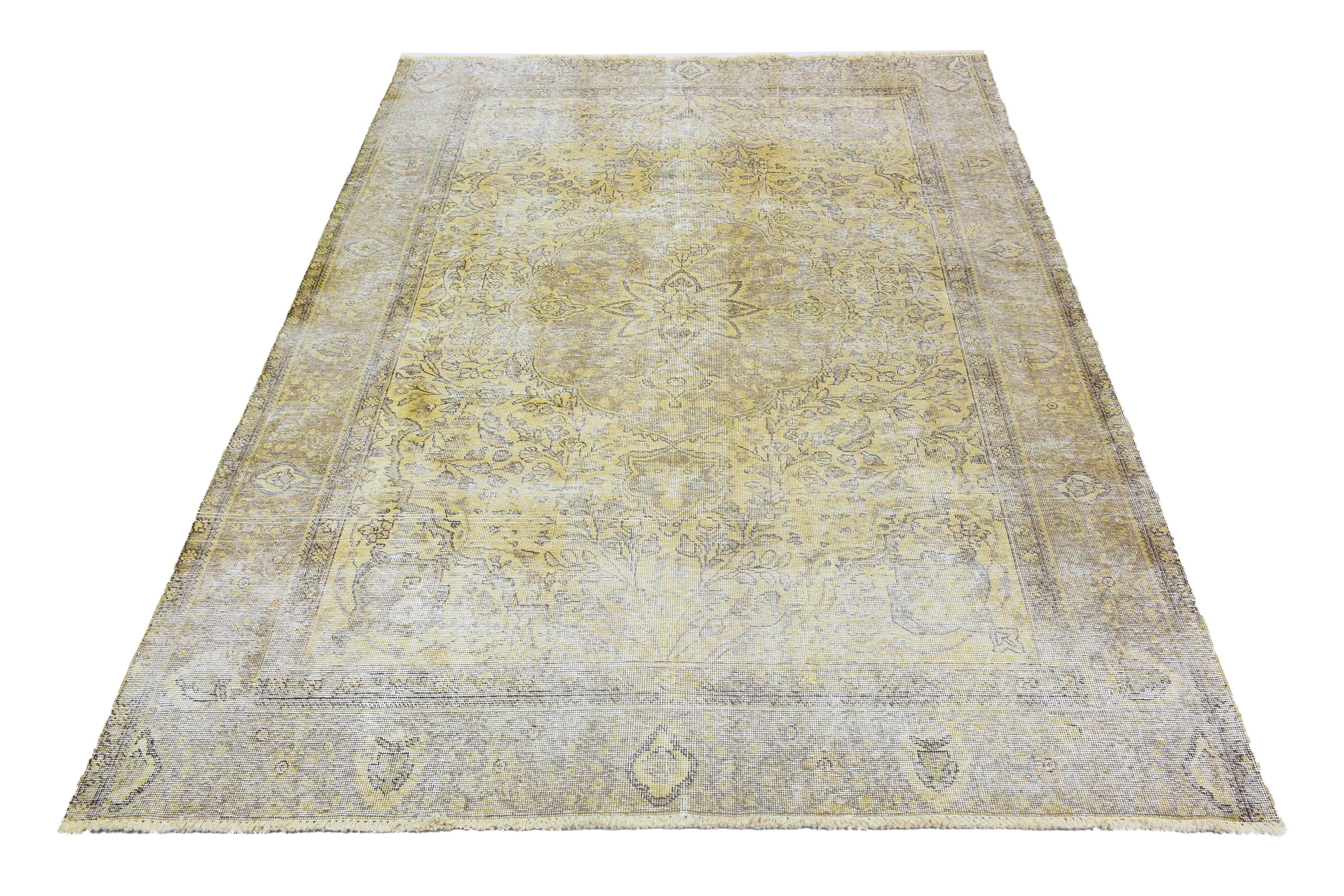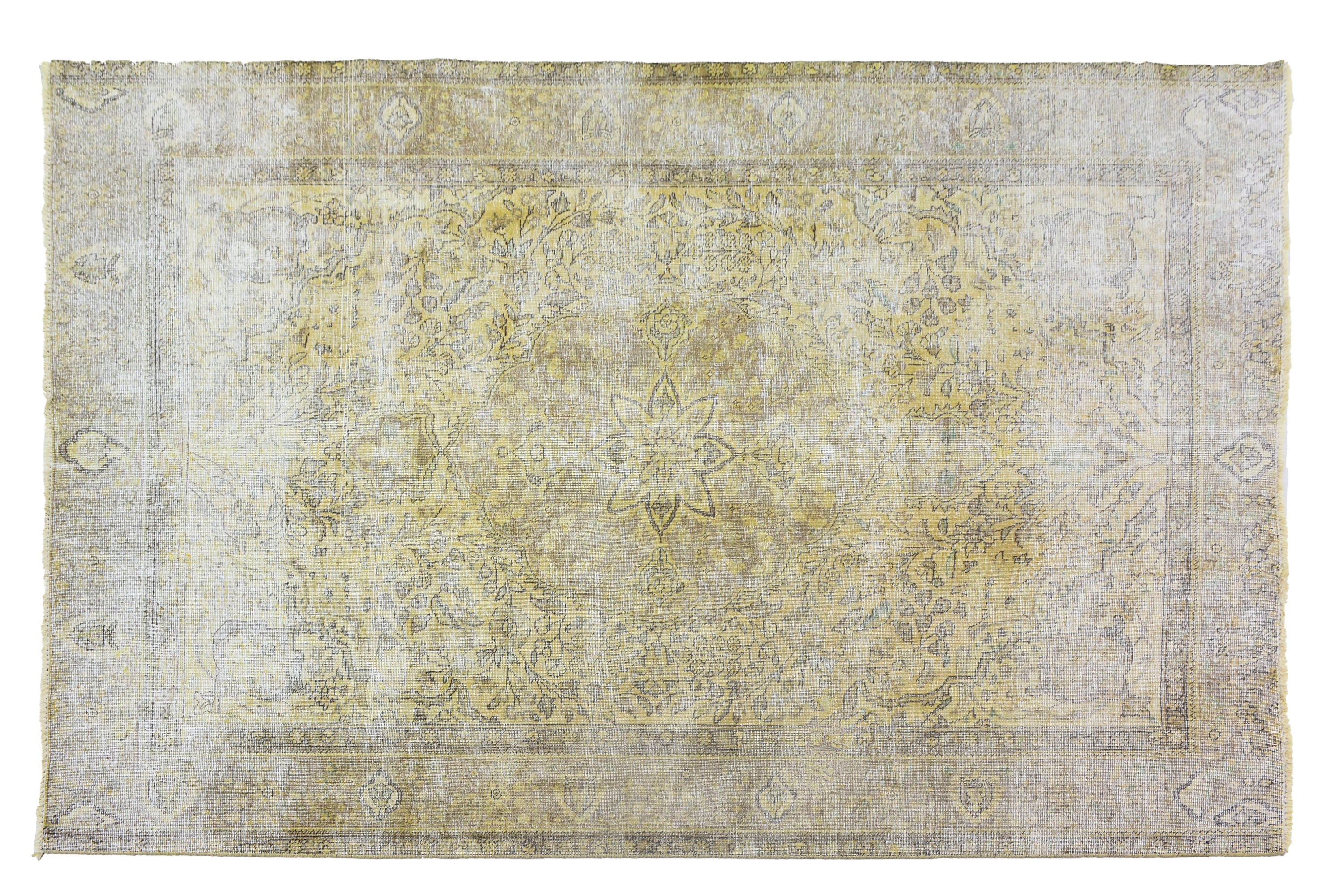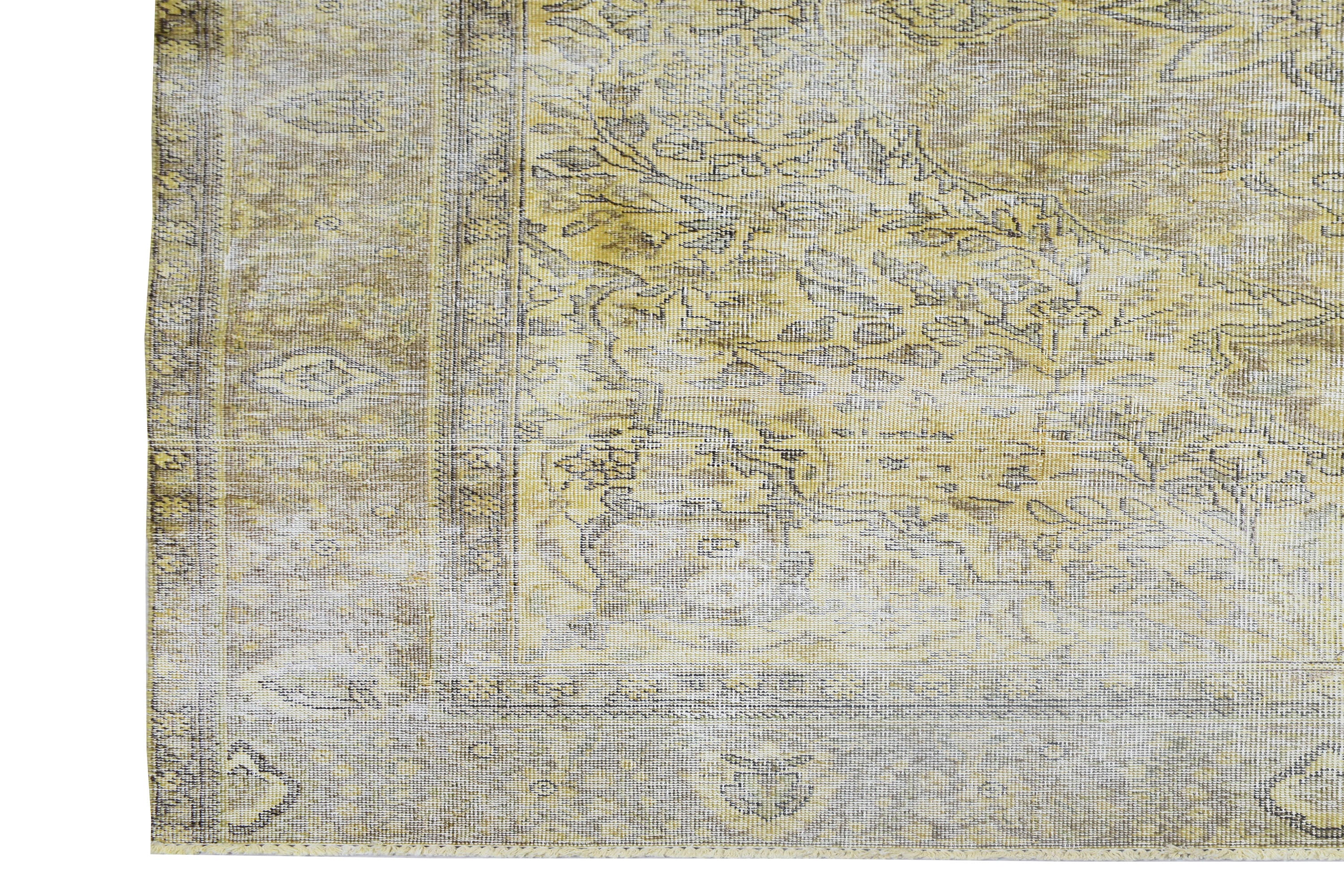 About Overdyed Rug: This beautiful rug was hand-woven in the 1970s in Tabriz, Iran. Later, this vintage rug was shaved down to a low pile, deep washed and then re-dyed (overdyed) one colour. Overdyed rugs have a low pile height. Over-dyed rugs keep the traditional style with a modern twist. Overdyed rugs are shaved rugs so they do not have a soft pile.