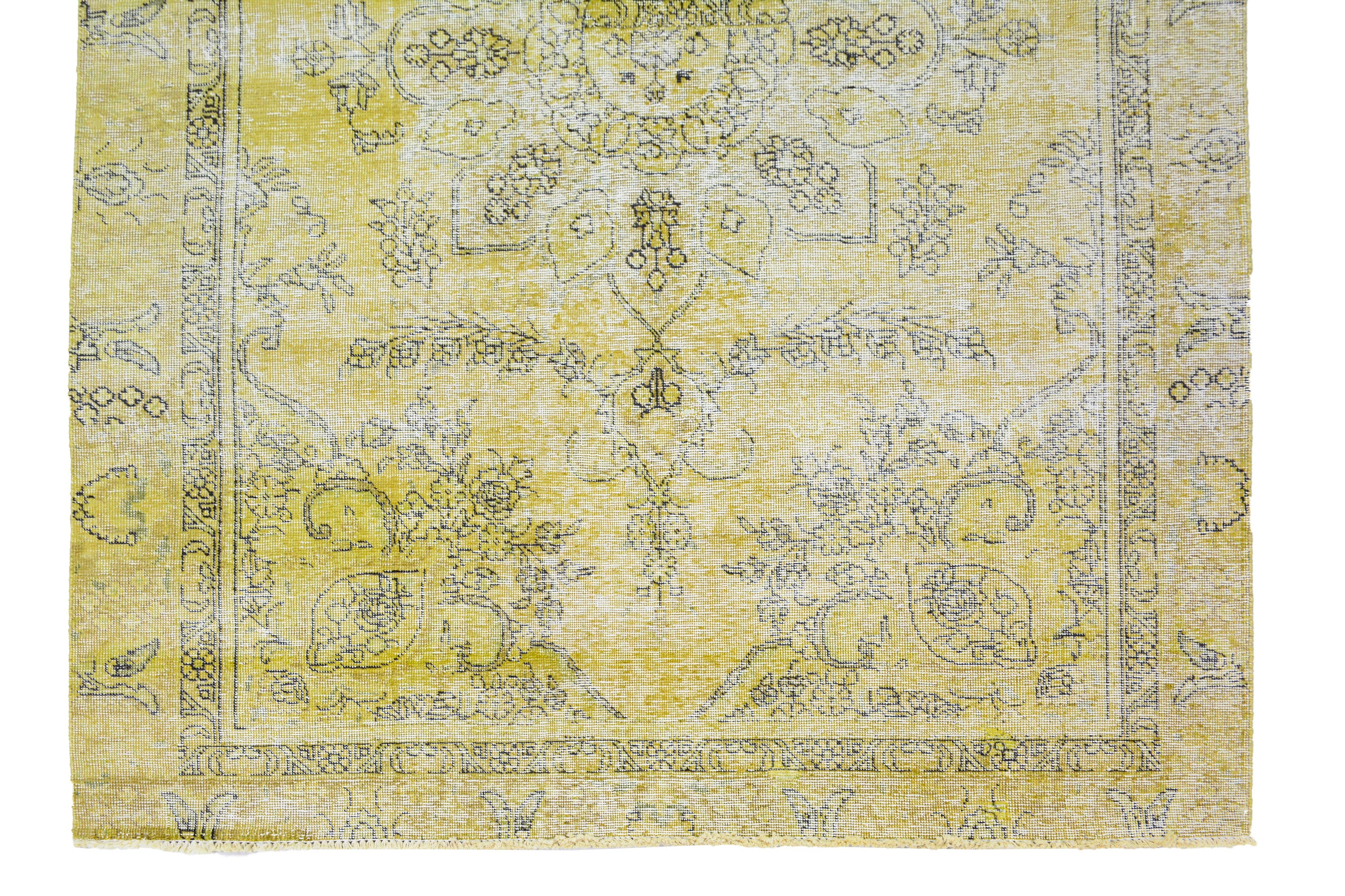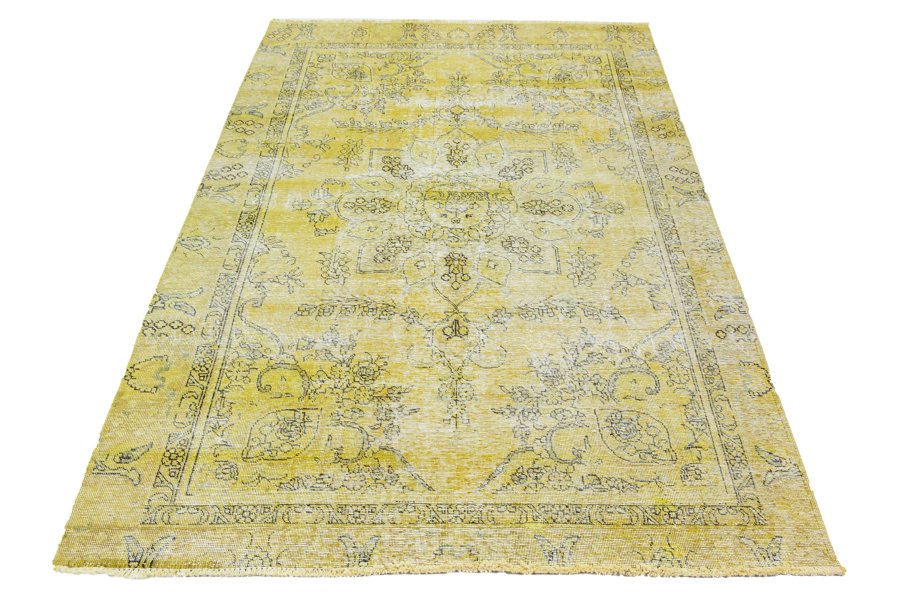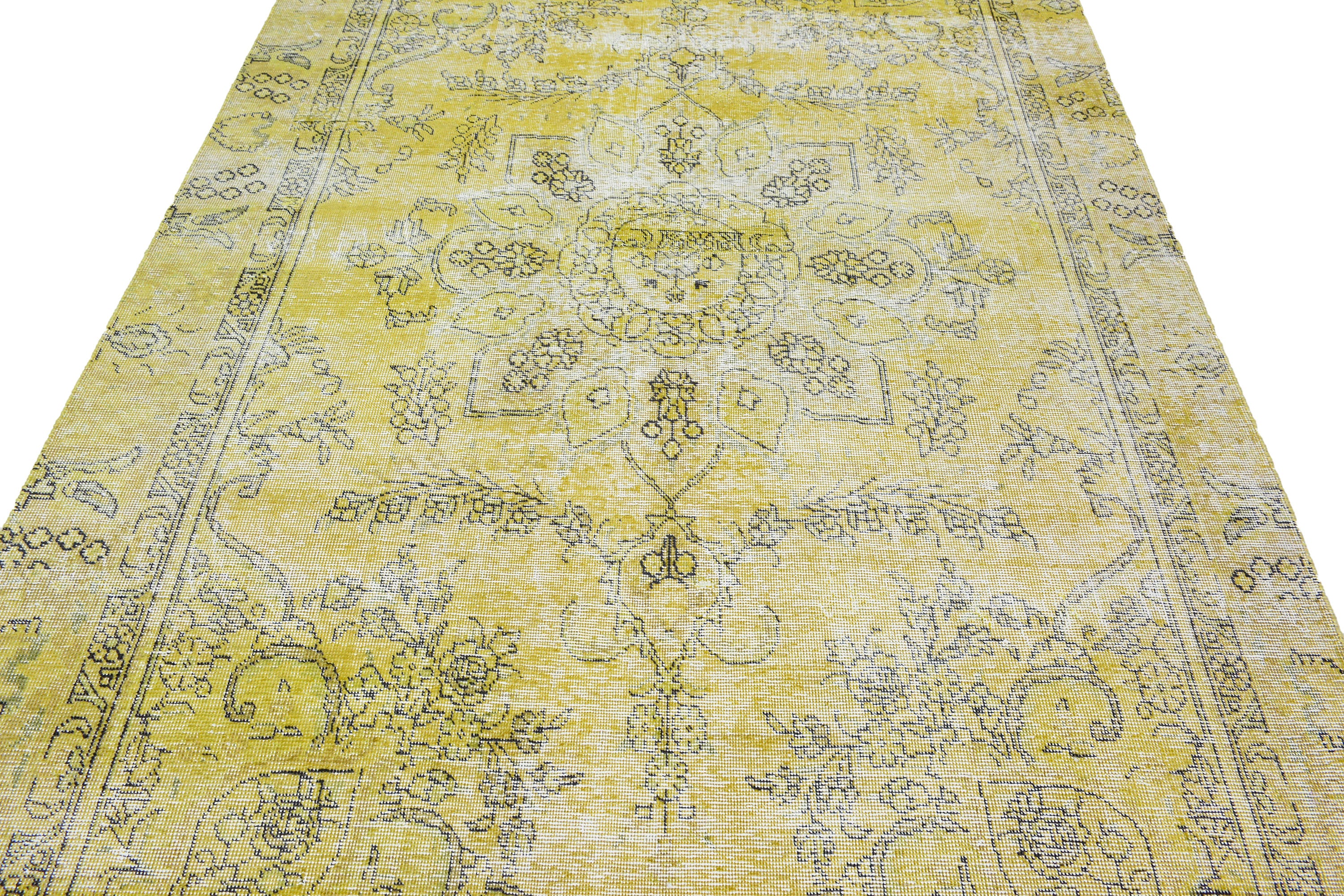 About Overdyed Rug: This beautiful rug was hand-woven in the 1970s in Tabriz, Iran. Later, this vintage rug was shaved down to a low pile, deep washed and then re-dyed (overdyed) one colour. Overdyed rugs have a low pile height. Over-dyed rugs keep the traditional style with a modern twist. Overdyed rugs are shaved rugs so they do not have a soft pile.