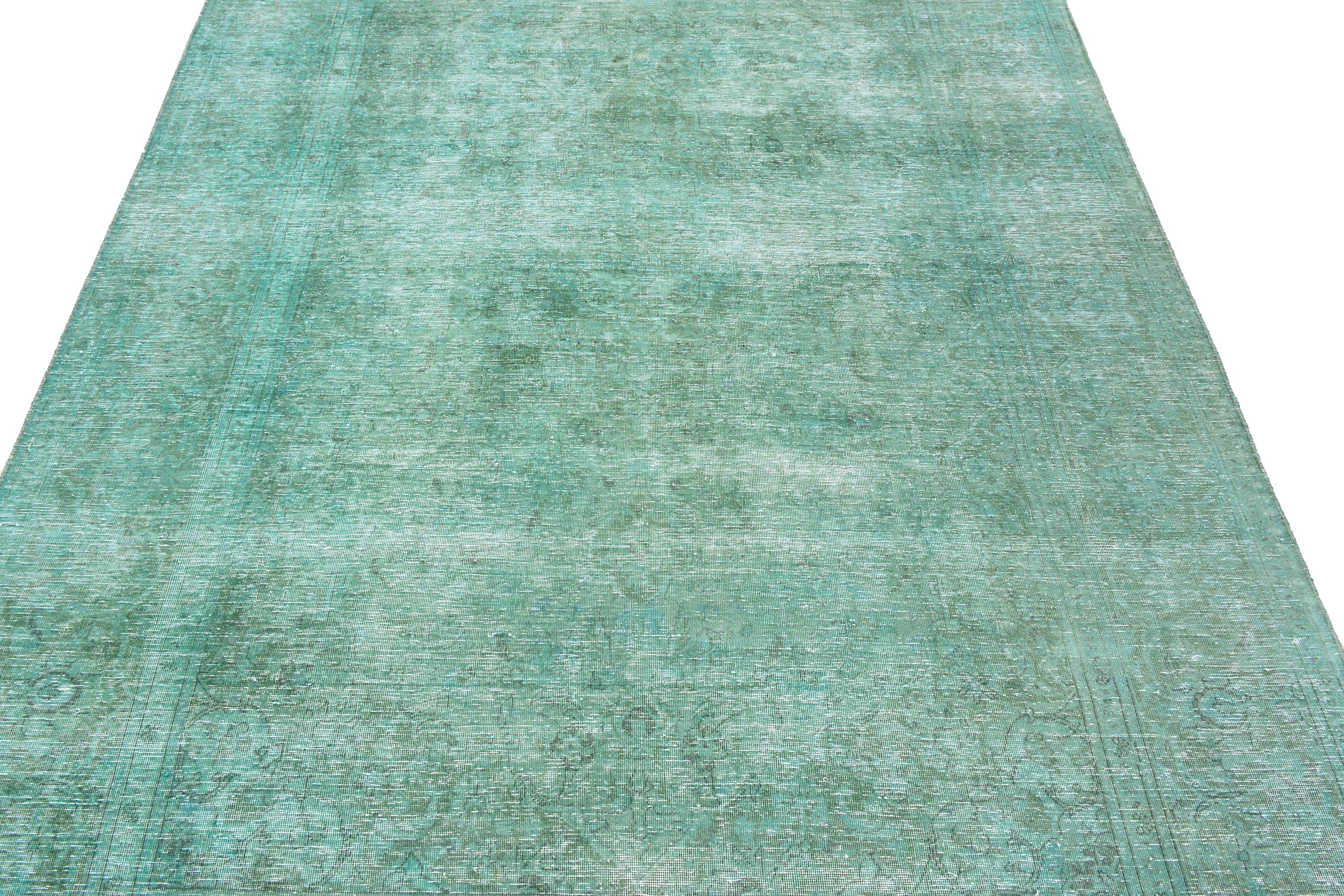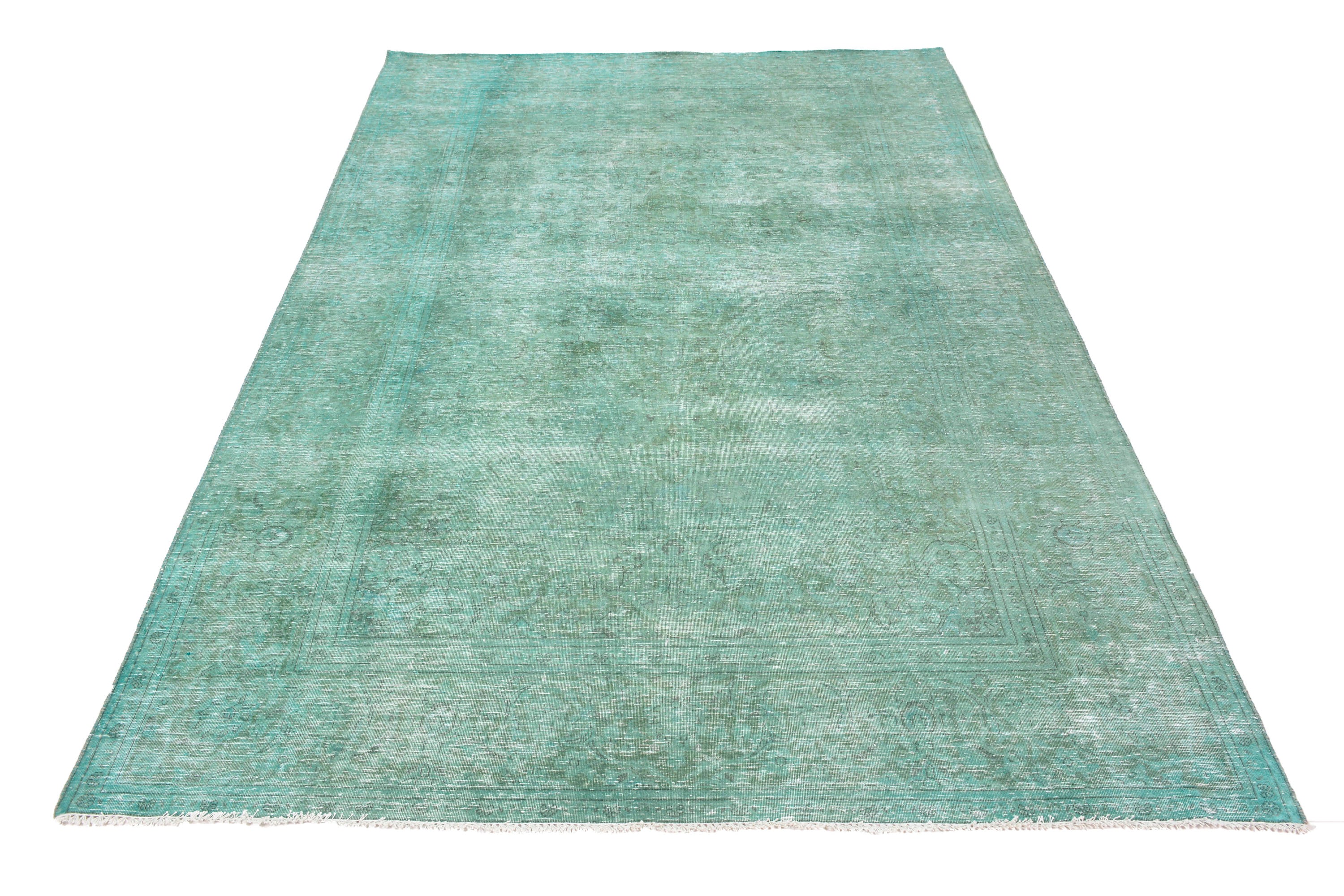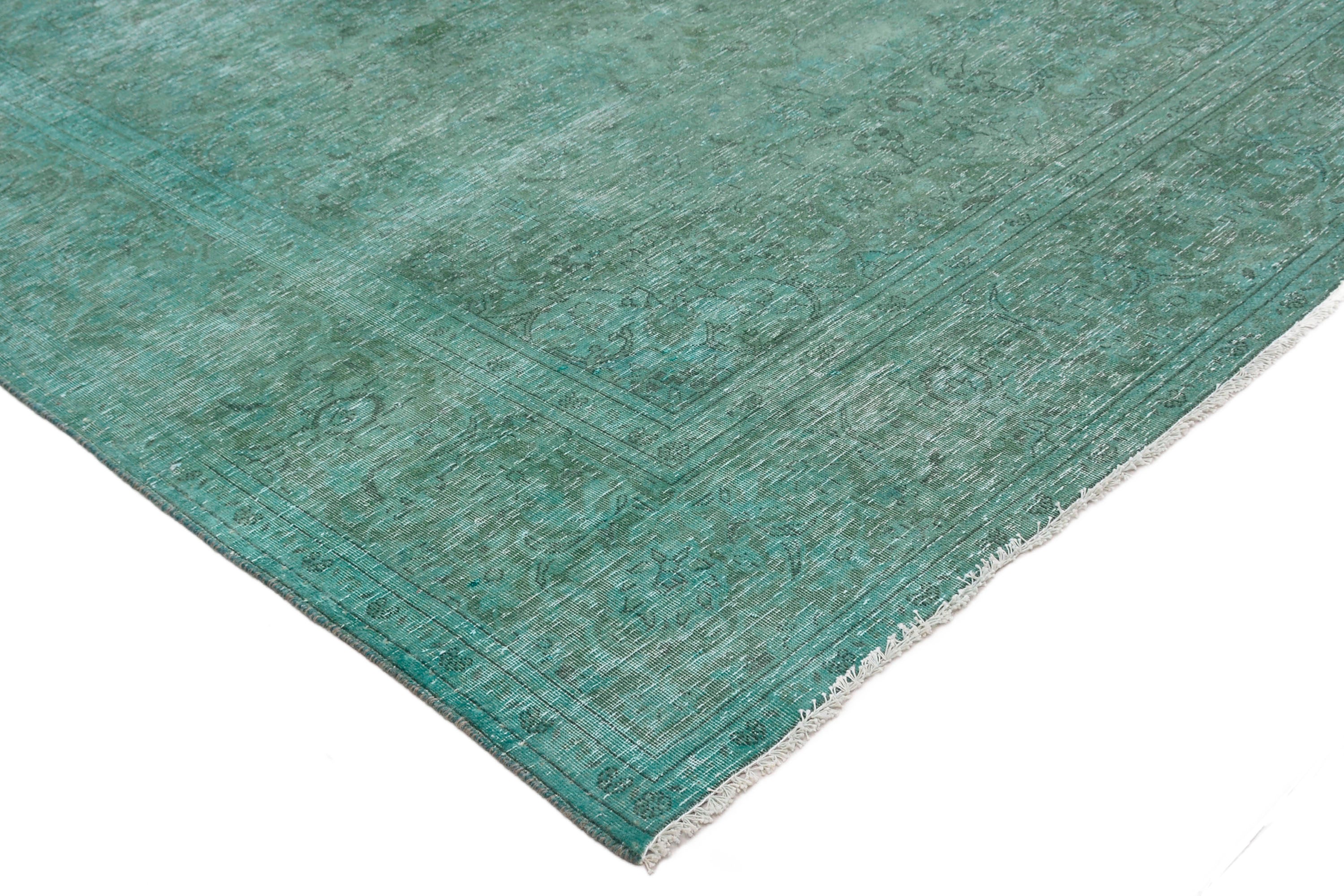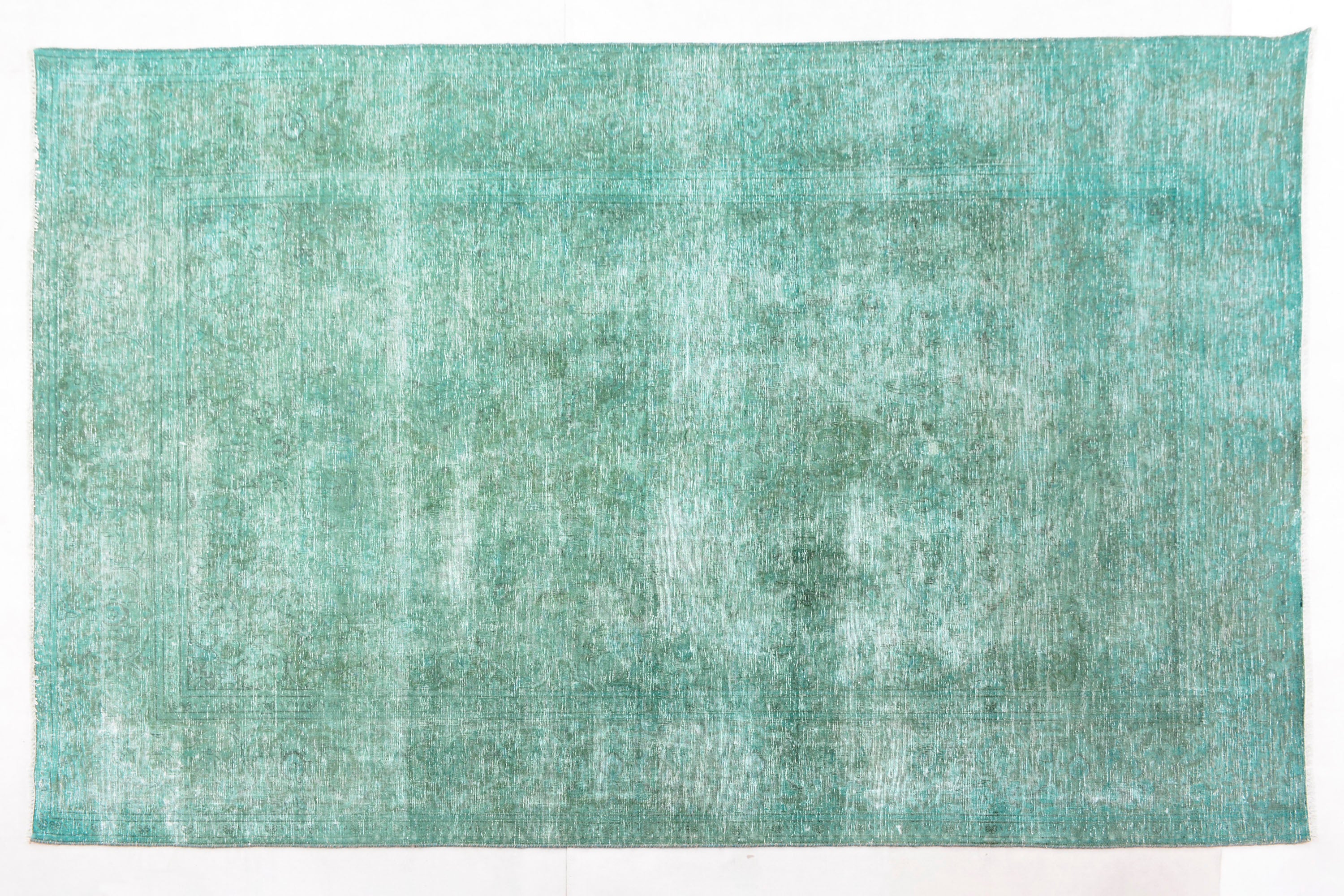 About Overdyed Rug: This beautiful rug was hand-woven in the 1970s in Tabriz, Iran. Later, this vintage rug was shaved down to a low pile, deep washed and then re-dyed (overdyed) one colour. Overdyed rugs have a low pile height. Over-dyed rugs keep the traditional style with a modern twist. Overdyed rugs are shaved rugs so they do not have a soft pile.