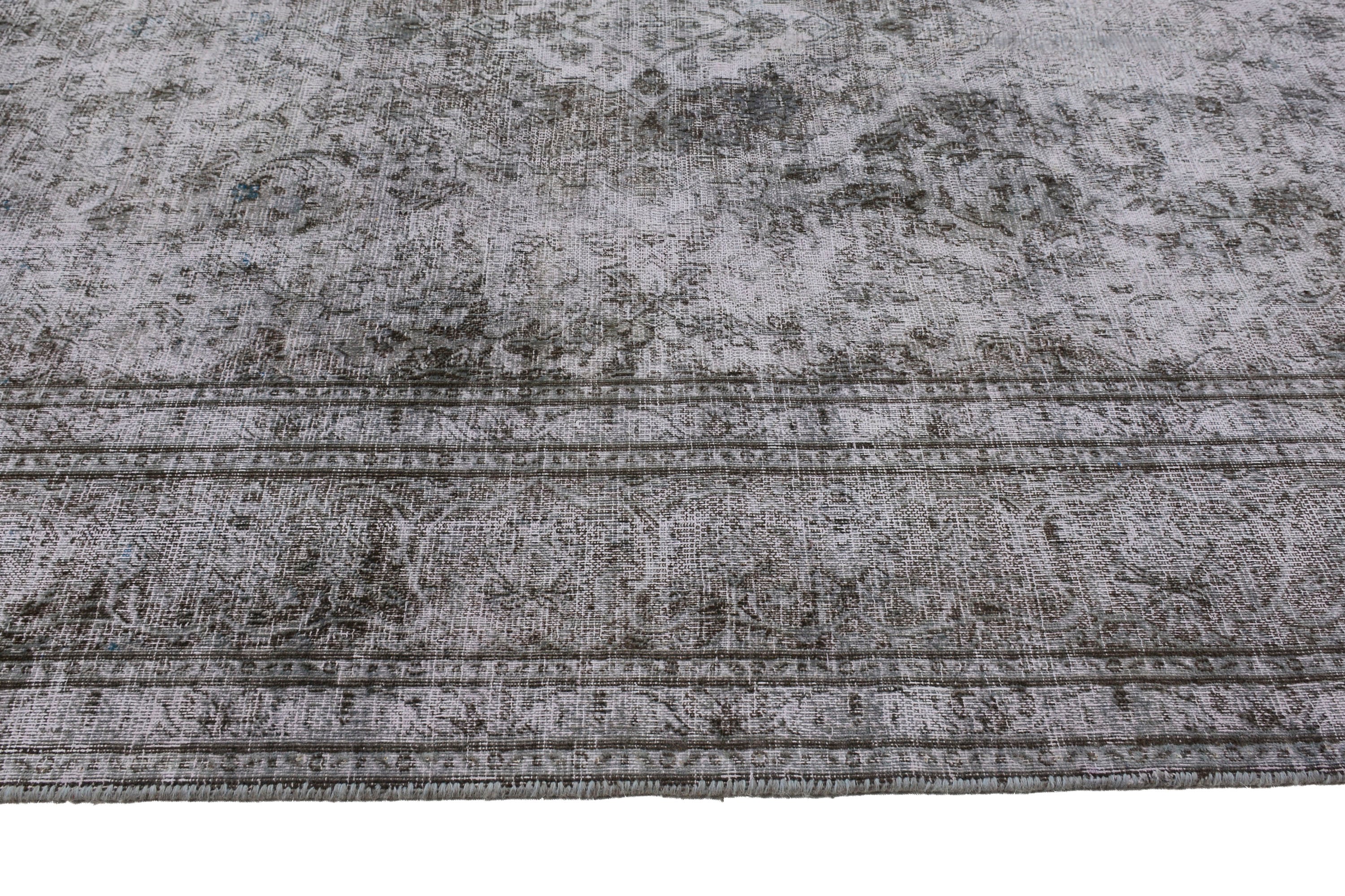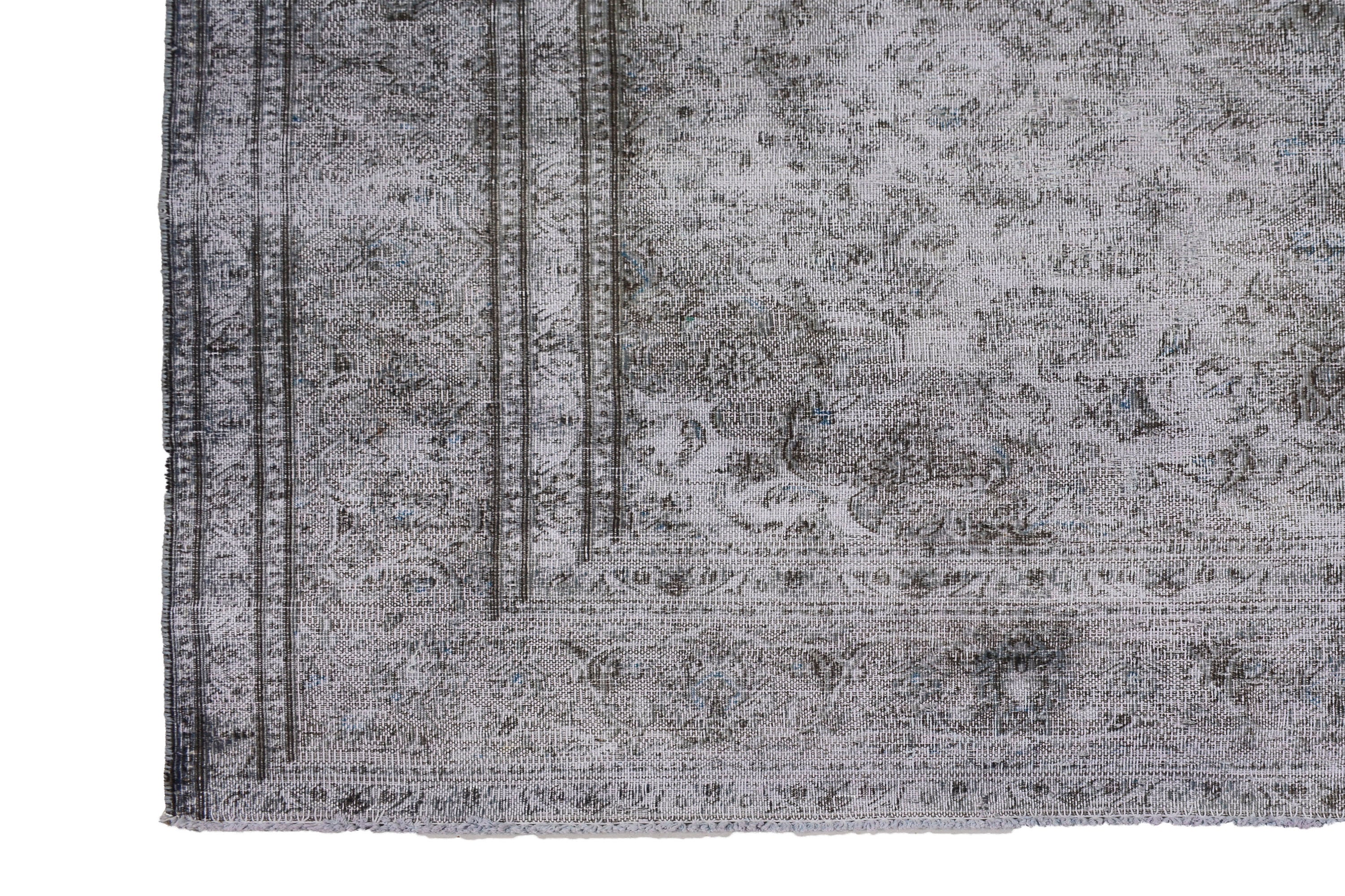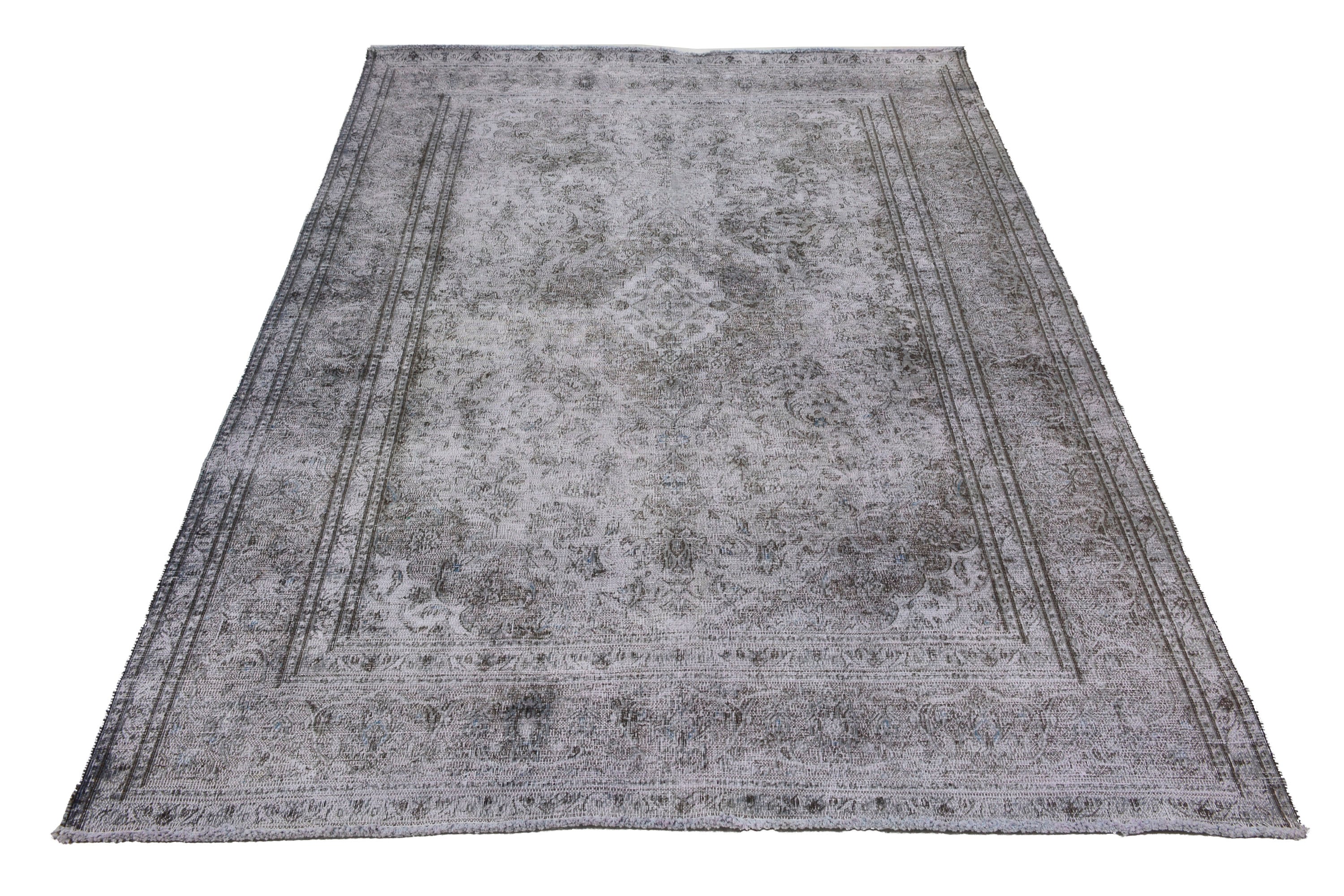 About Overdyed Rug: This beautiful rug was hand-woven in the 1970s in Tabriz, Iran. Later, this vintage rug was shaved down to a low pile, deep washed and then re-dyed (overdyed) one colour. Overdyed rugs have a low pile height. Over-dyed rugs keep the traditional style with a modern twist. Overdyed rugs are shaved rugs so they do not have a soft pile.