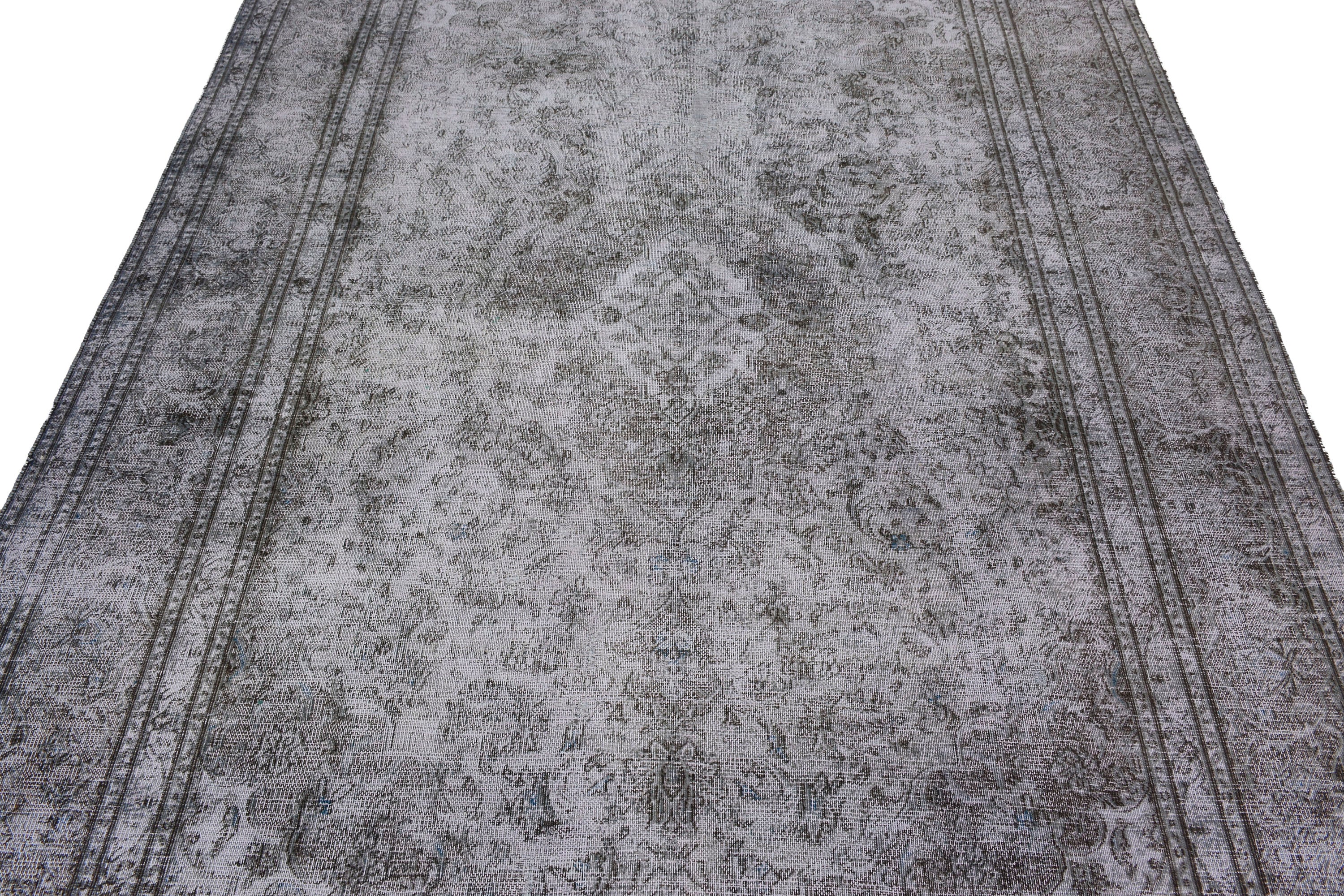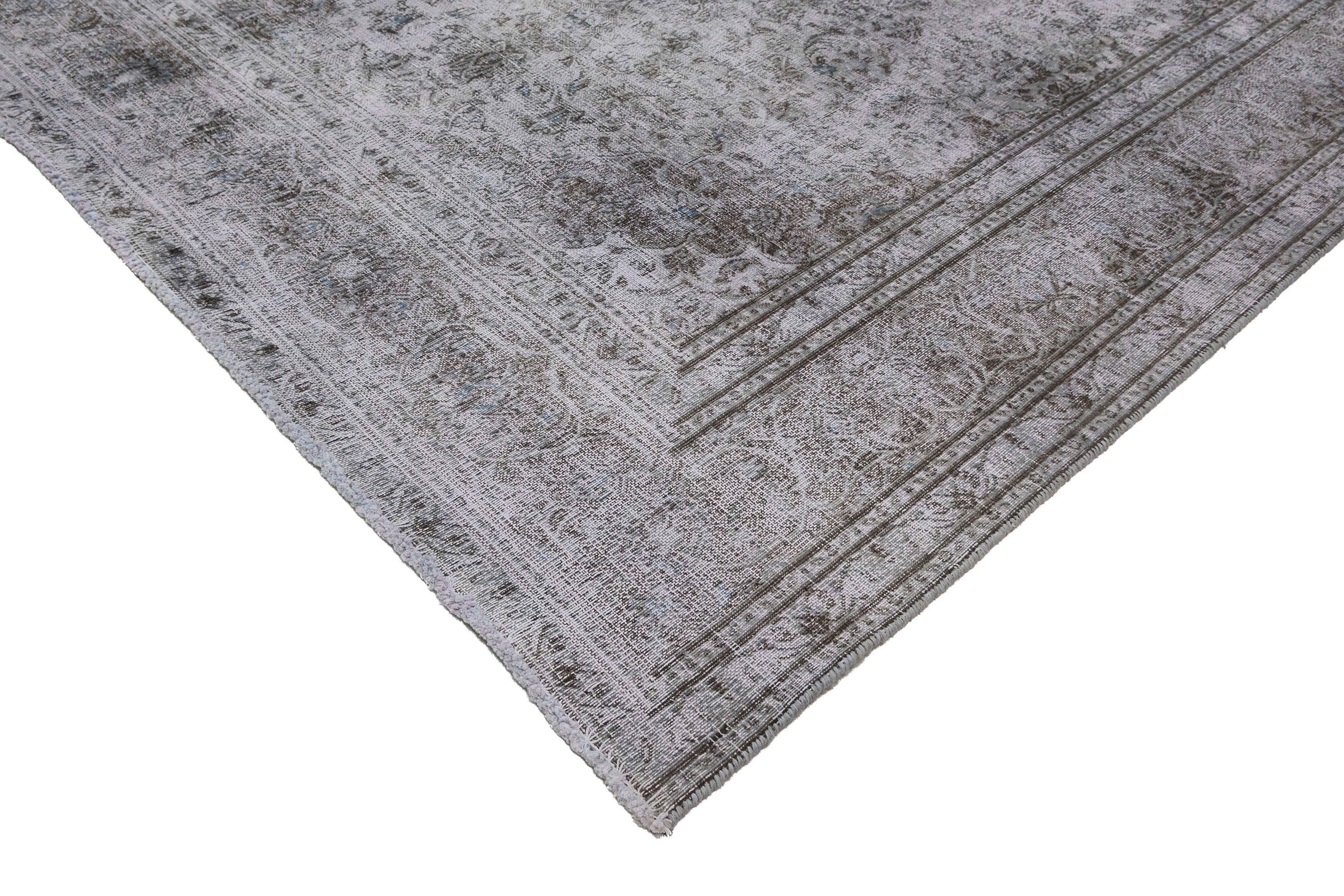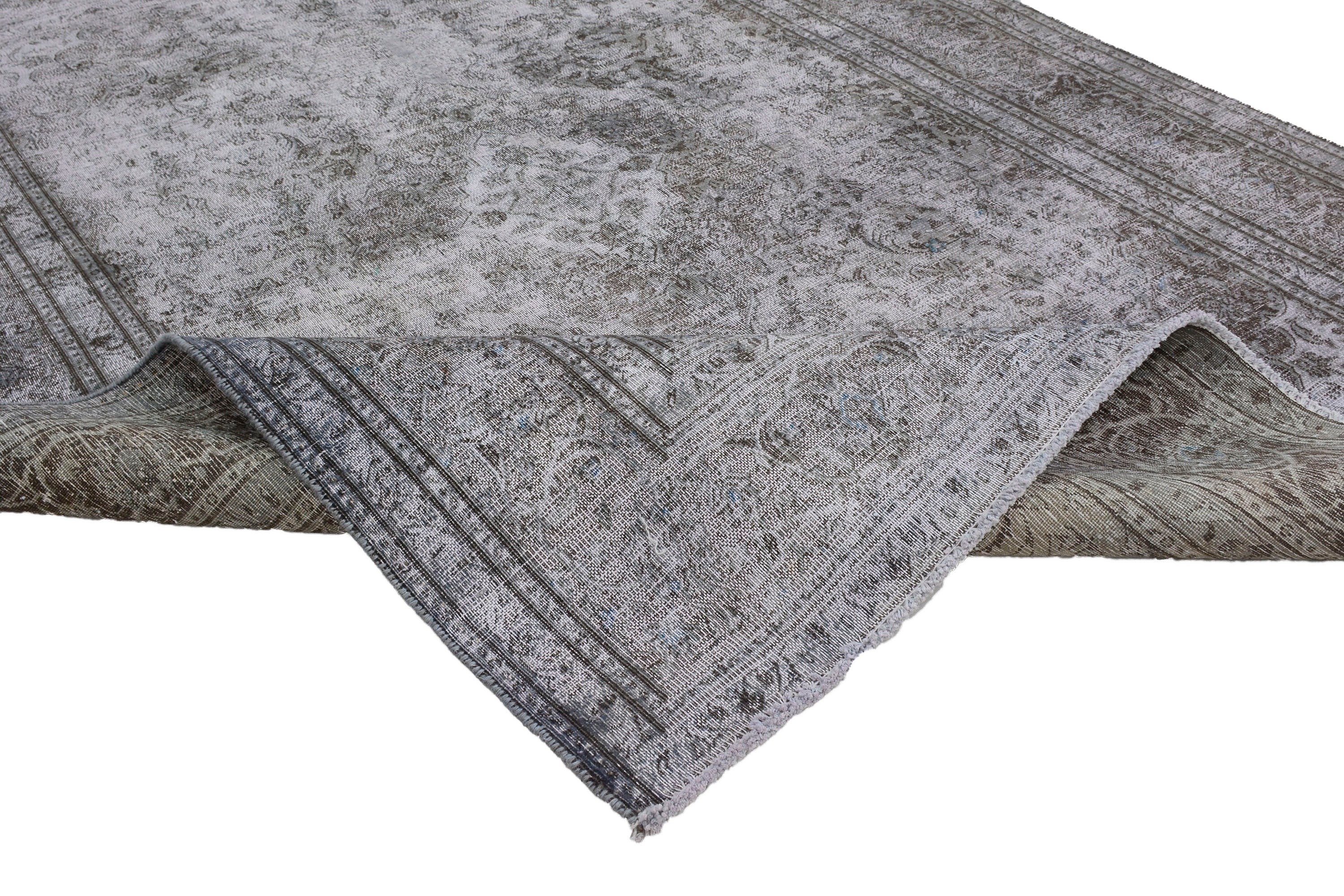 About Overdyed Rug: This beautiful rug was hand-woven in the 1970s in Tabriz, Iran. Later, this vintage rug was shaved down to a low pile, deep washed and then re-dyed (overdyed) one colour. Overdyed rugs have a low pile height. Over-dyed rugs keep the traditional style with a modern twist. Overdyed rugs are shaved rugs so they do not have a soft pile.