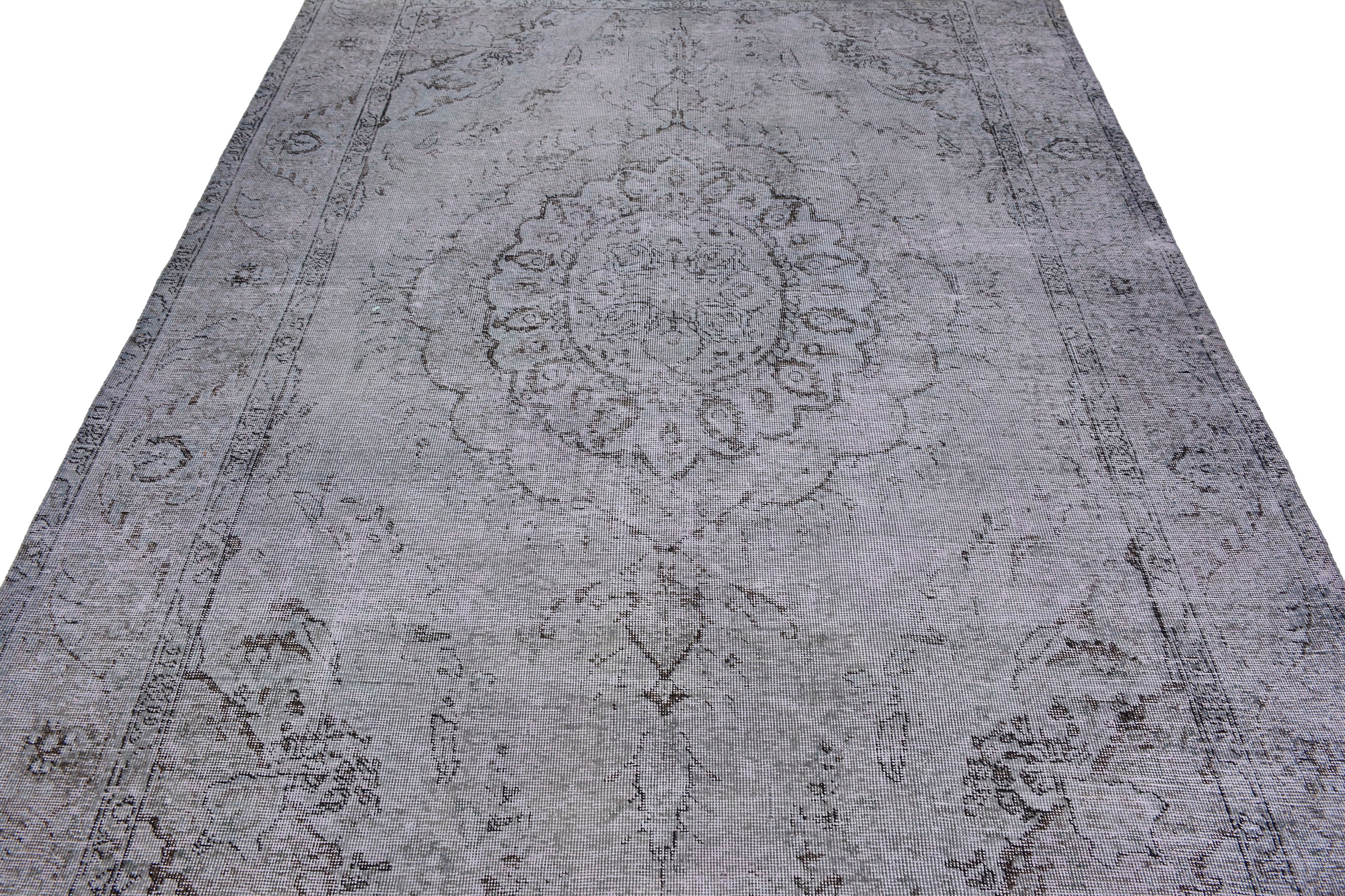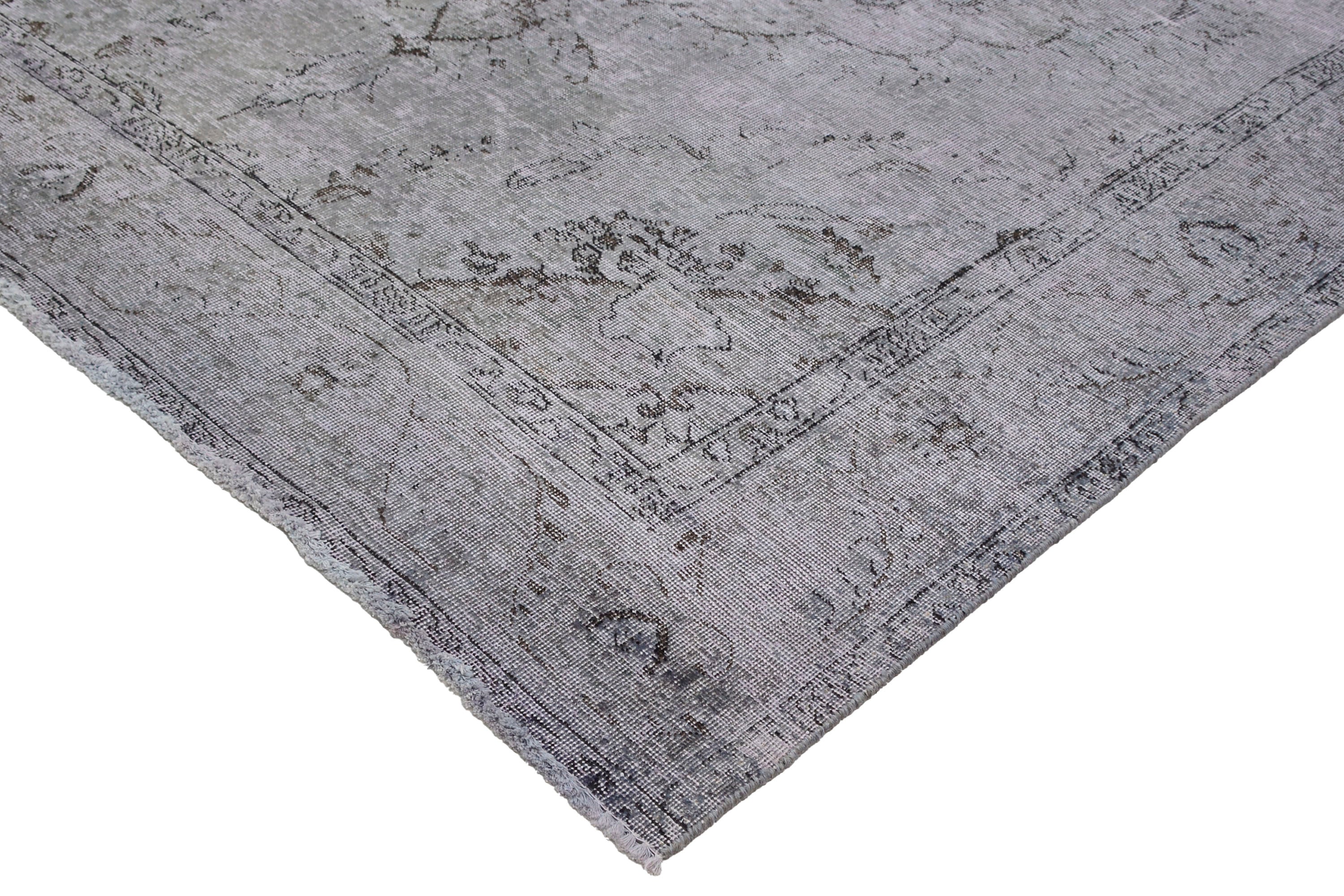 About Overdyed Rug: This beautiful rug was hand-woven in the 1970s in Tabriz, Iran. Later, this vintage rug was shaved down to a low pile, deep washed and then re-dyed (overdyed) one colour. Overdyed rugs have a low pile height. Over-dyed rugs keep the traditional style with a modern twist. Overdyed rugs are shaved rugs so they do not have a soft pile.