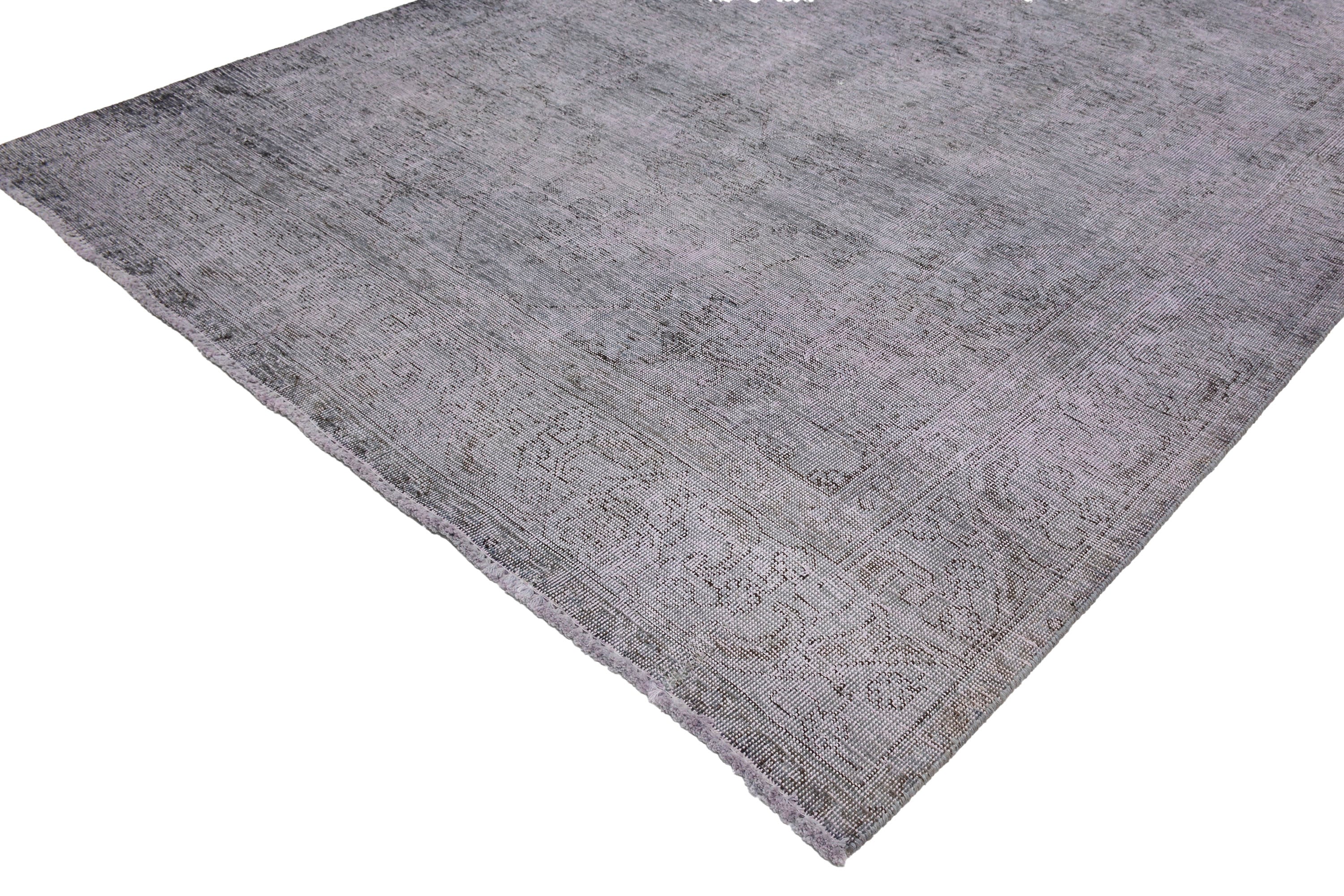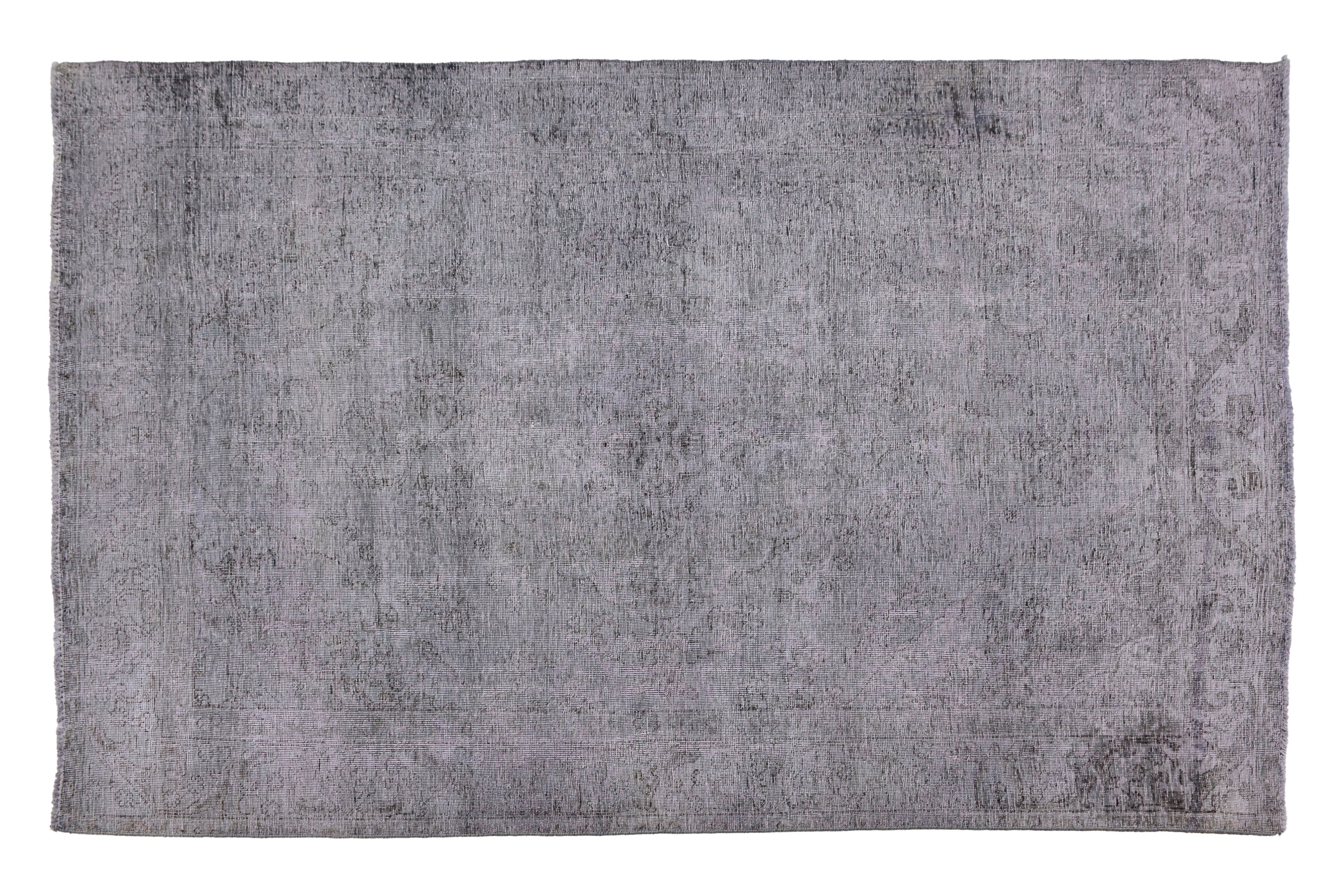 About Overdyed Rug: This beautiful rug was hand-woven in the 1970s in Tabriz, Iran. Later, this vintage rug was shaved down to a low pile, deep washed and then re-dyed (overdyed) one colour. Overdyed rugs have a low pile height. Over-dyed rugs keep the traditional style with a modern twist. Overdyed rugs are shaved rugs so they do not have a soft pile.