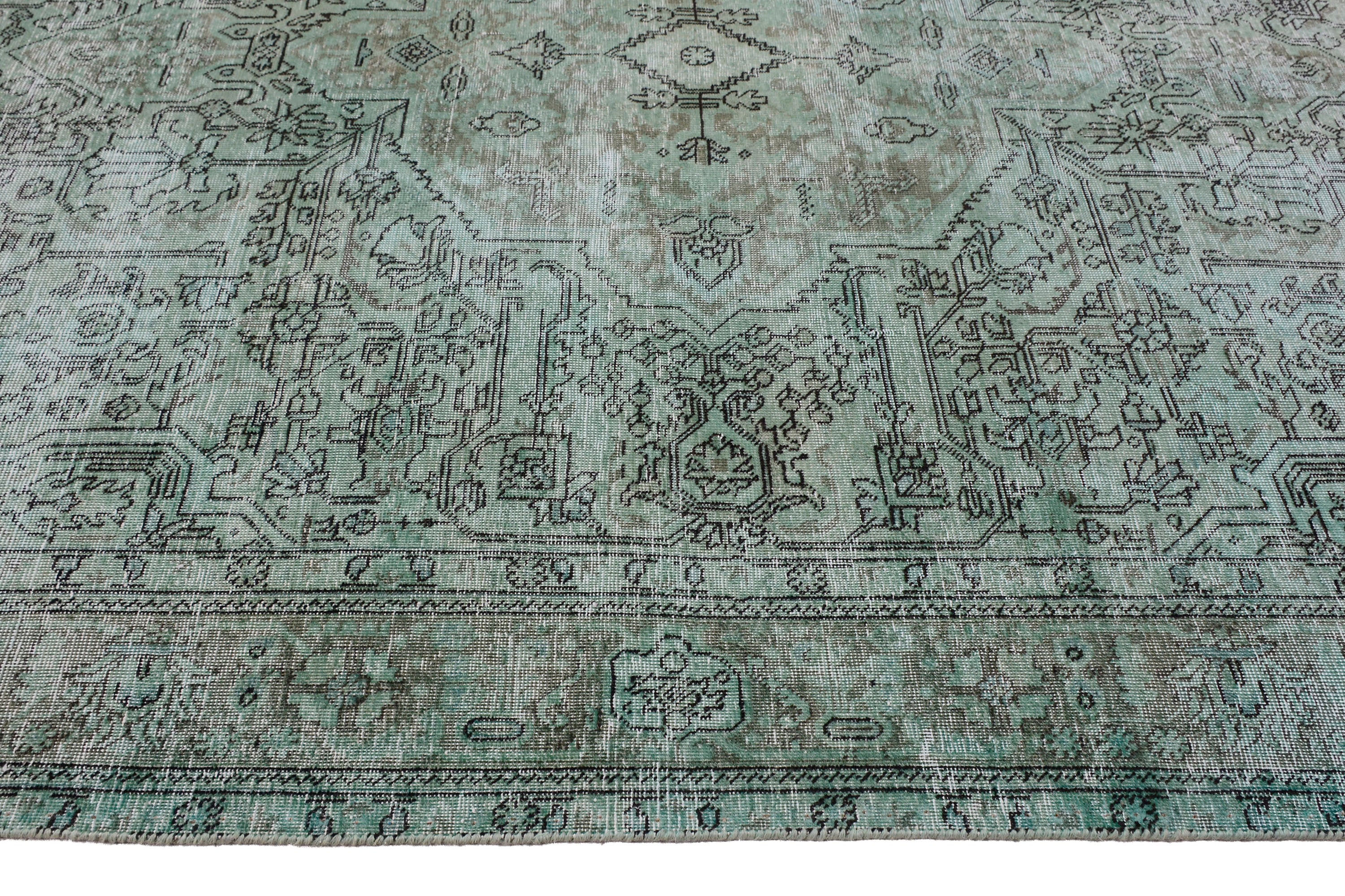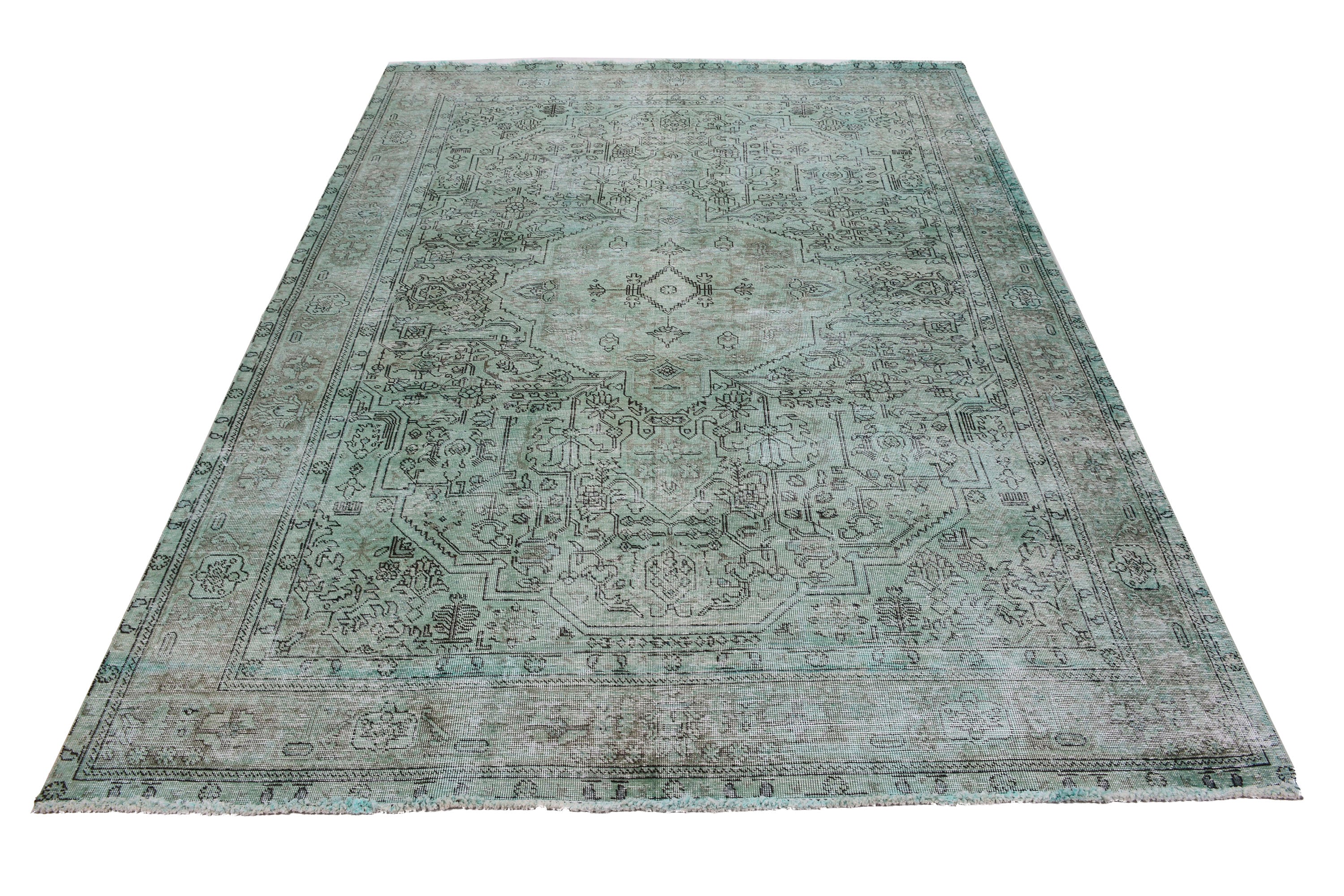 About Overdyed Rug: This beautiful rug was hand-woven in the 1970s in Tabriz, Iran. Later, this vintage rug was shaved down to a low pile, deep washed and then re-dyed (overdyed) one colour. Overdyed rugs have a low pile height. Over-dyed rugs keep the traditional style with a modern twist. Overdyed rugs are shaved rugs so they do not have a soft pile.