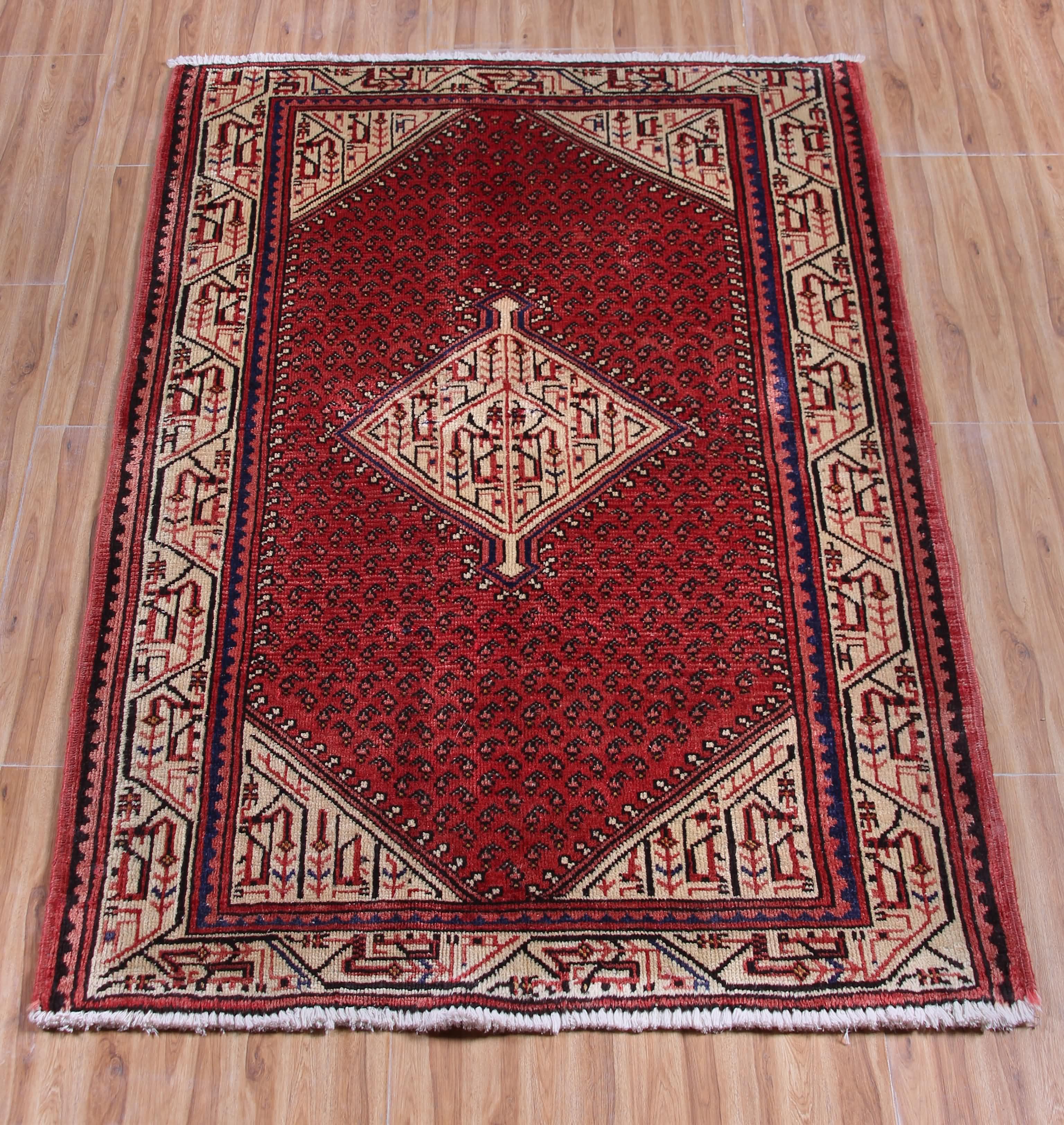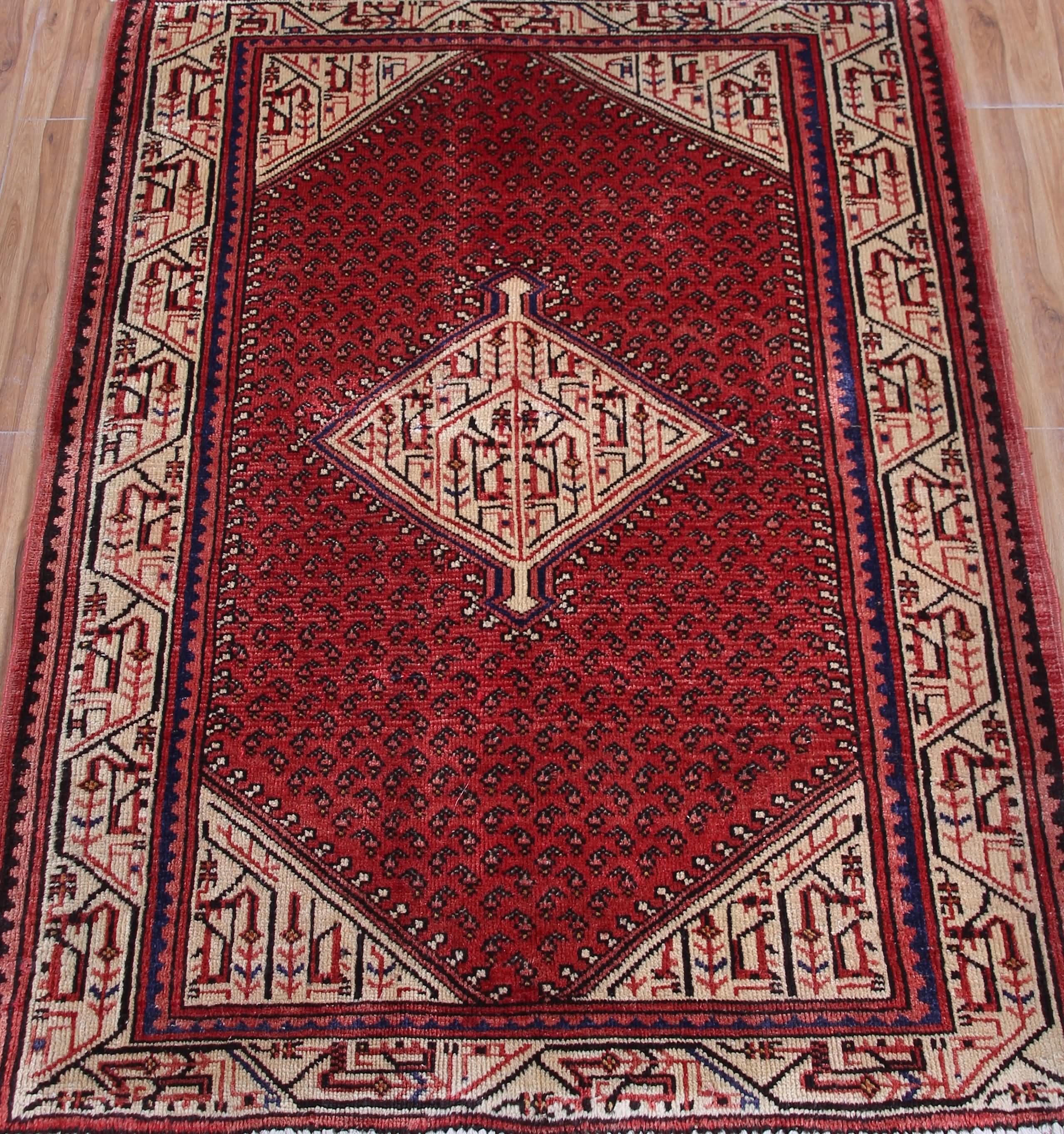 All vintage & antique rugs that we are selling were produced years ago with love by nomads and are treasures of the past. They have been professionally washed, cleaned and restored. Due to the vintage/antique nature of our rugs, there may be imperfections and signs of wear which rather enhance the feel and beauty of these rugs.