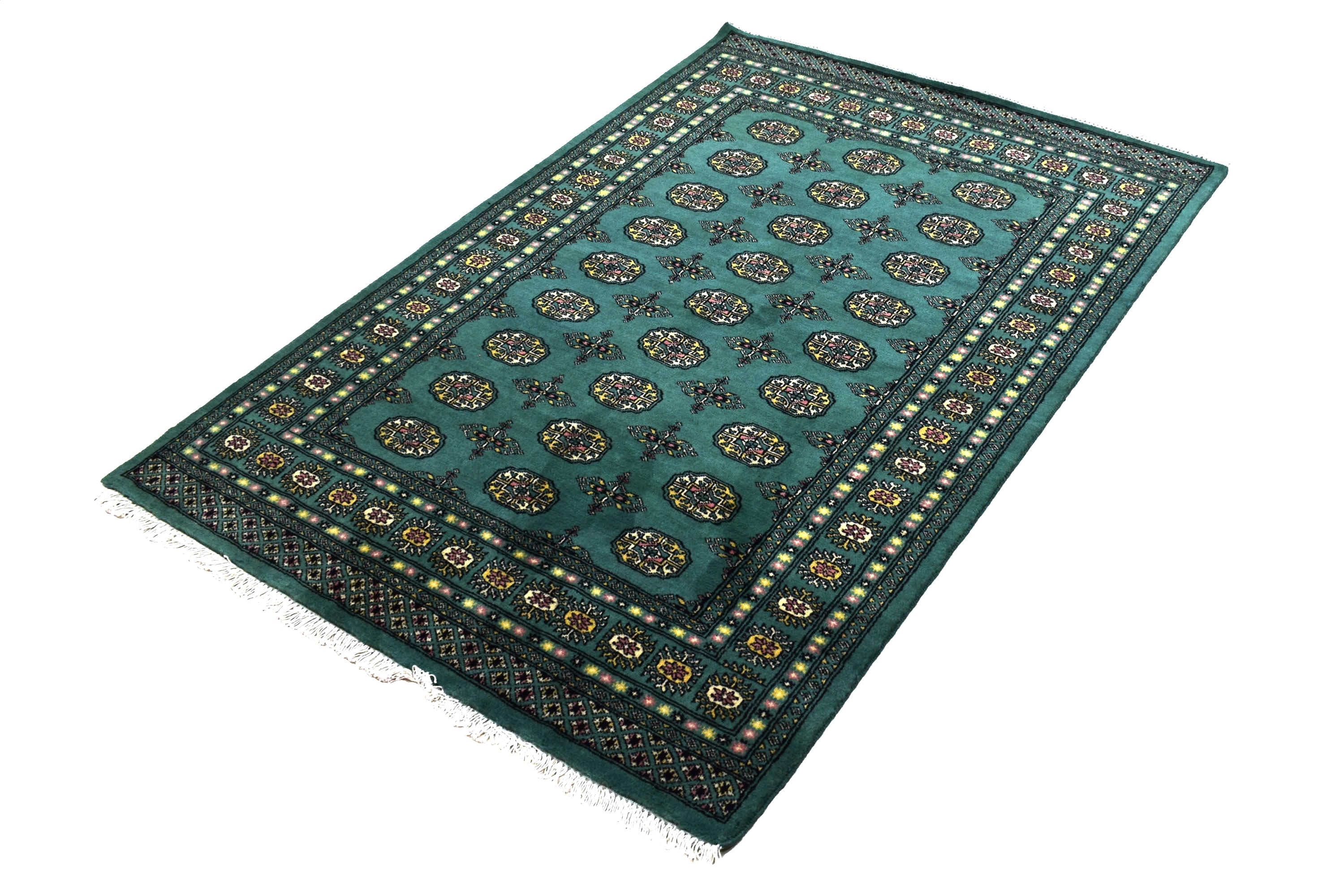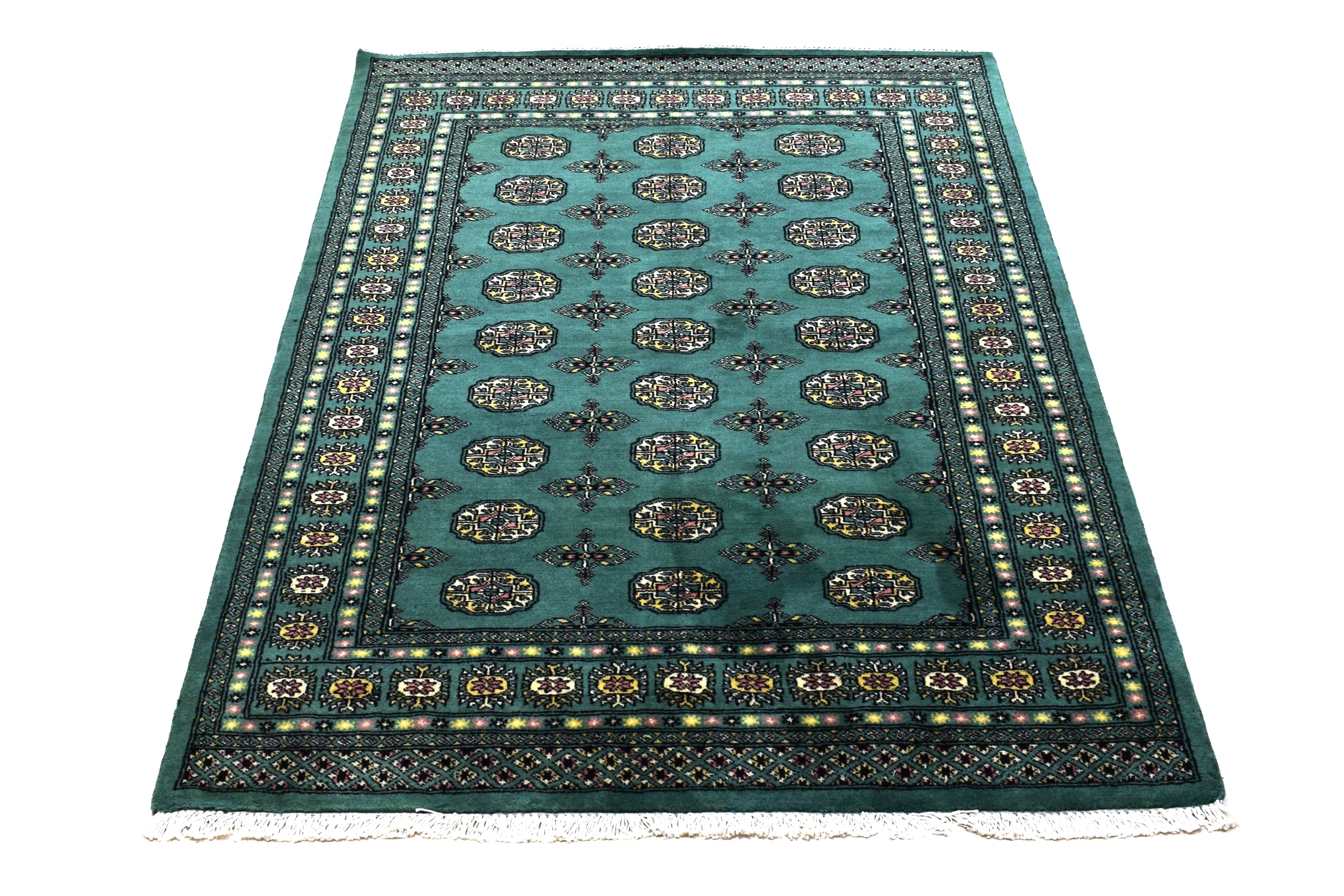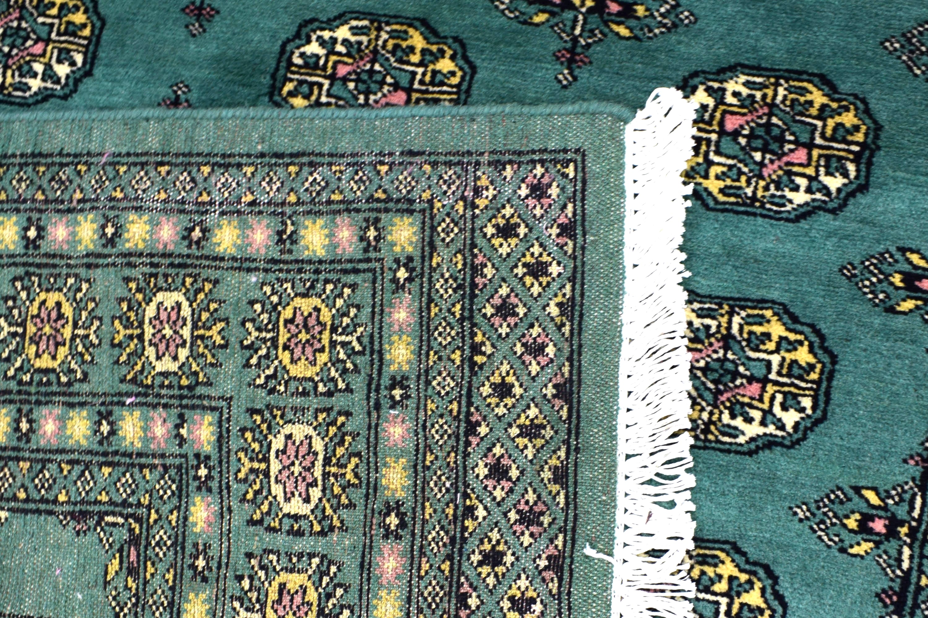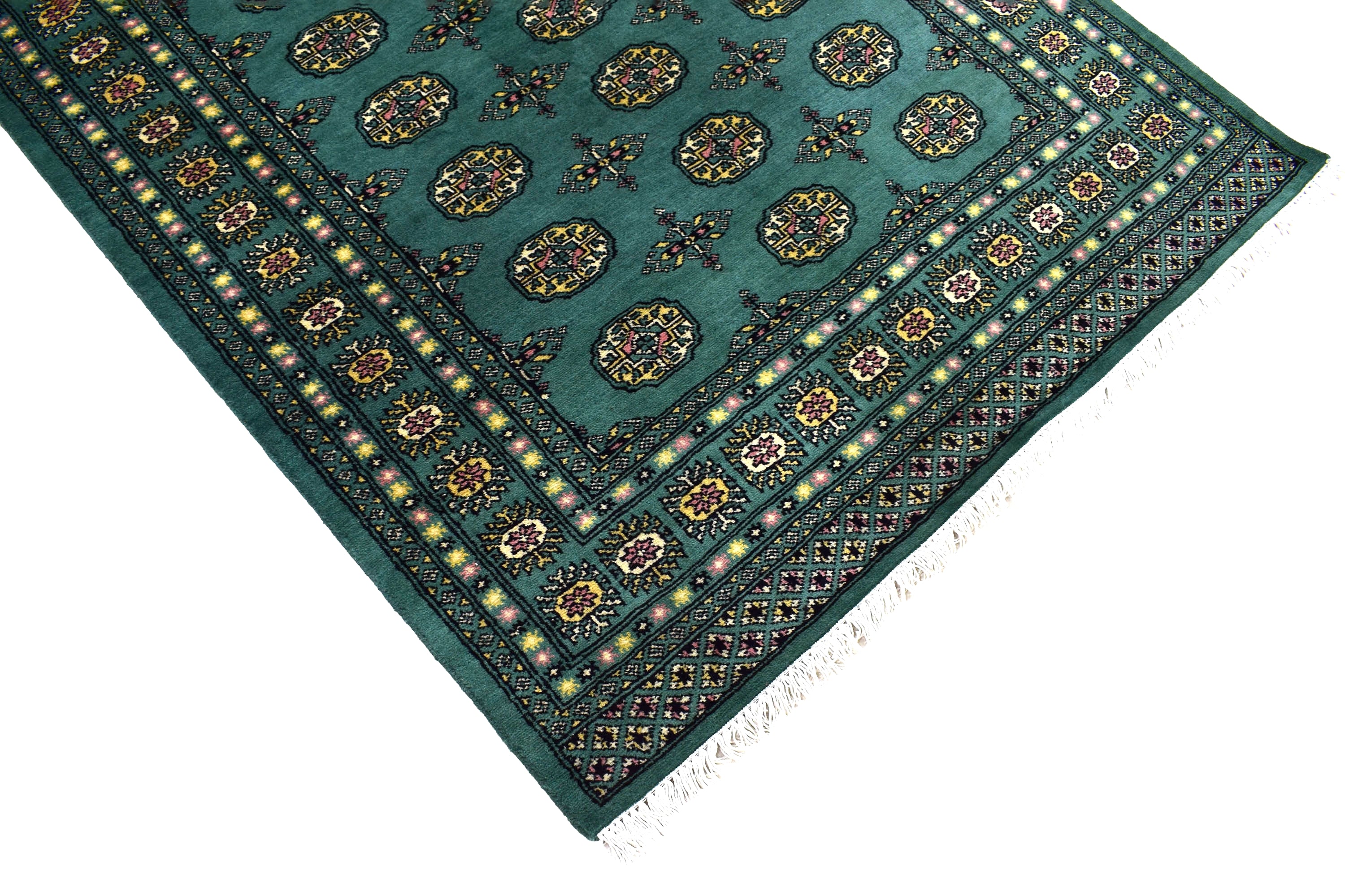 About Bukhara Rug: This beautiful rug has been hand-knotted in the Kashmir/Peshawar region by skilled artisan weavers. Bokhara rugs are some of the finest rugs manufactured in Pakistan. Using a combination of NZ and local Pakistani wool on a cotton base, the Pakistani Bokhara has an incredibly soft and thick pile with average high knot count (approx. 150~200 KPSI). These stunning Bokhara rugs have small, repeating geometric designs