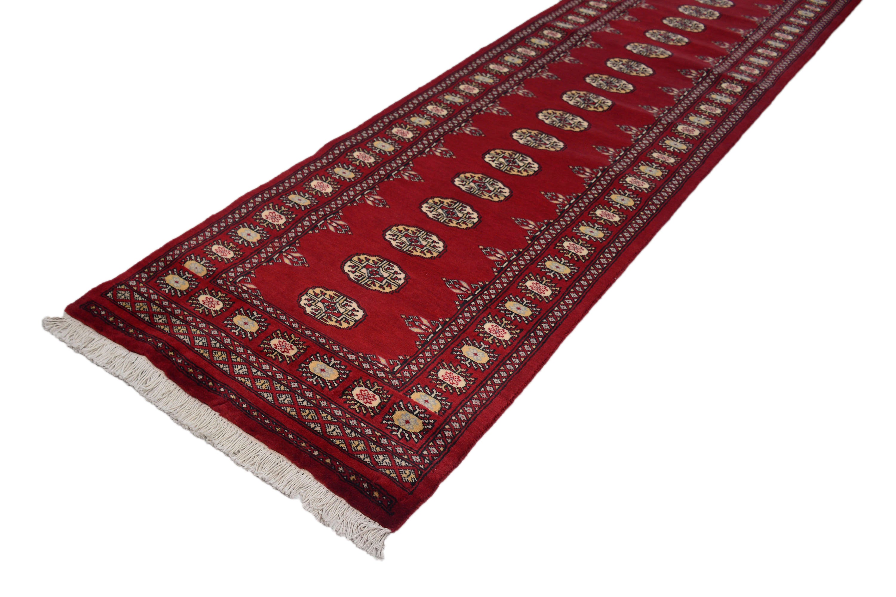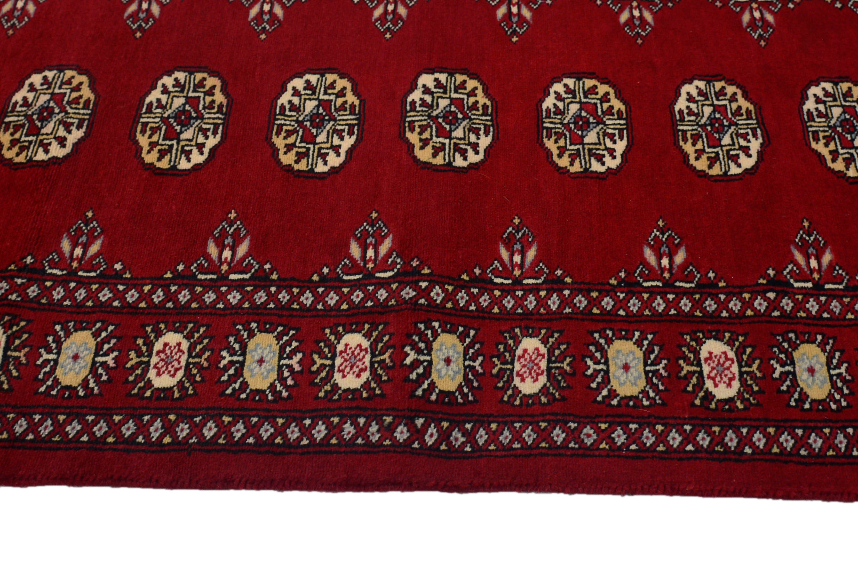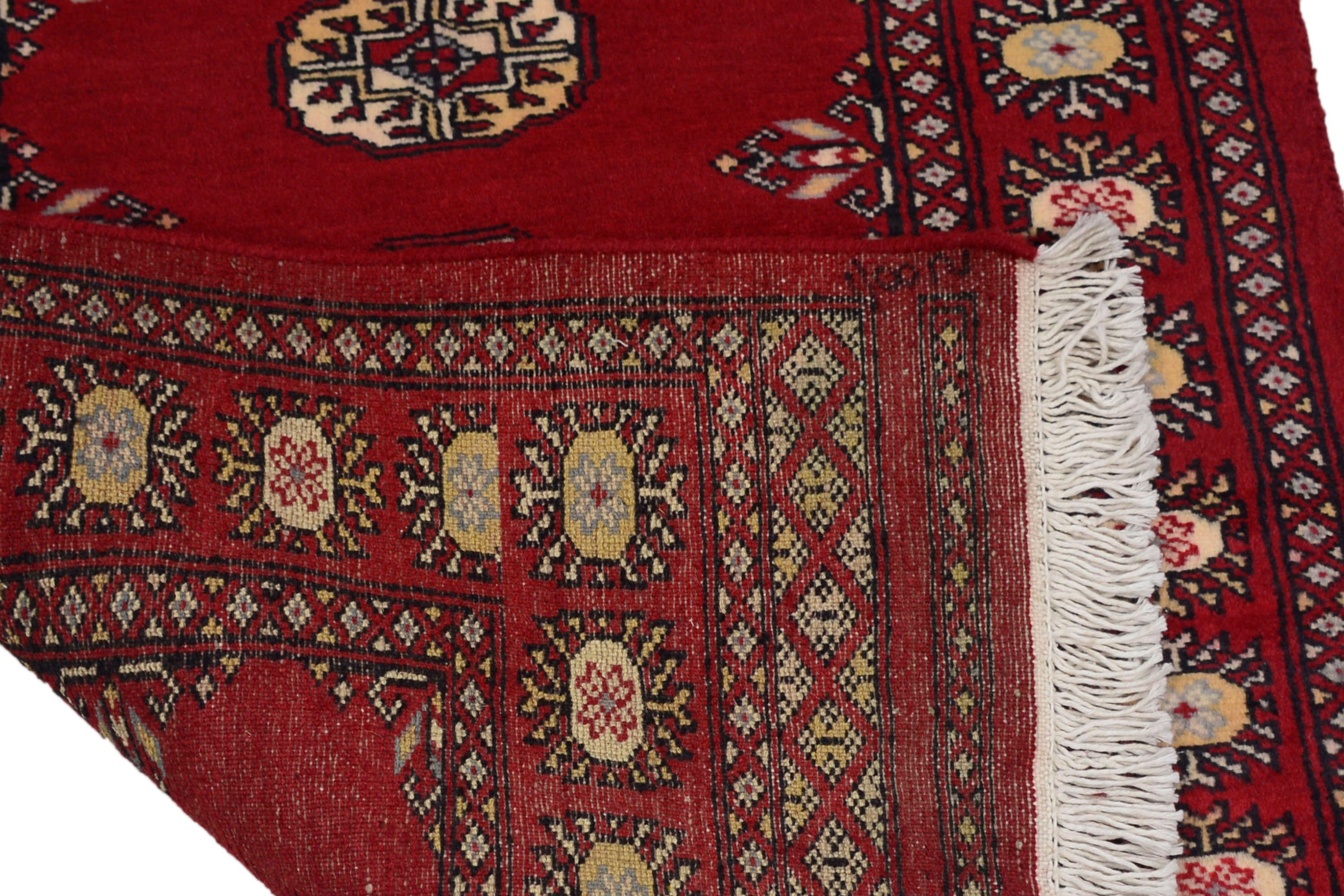 About Bukhara Rug: This beautiful rug has been hand-knotted in the Kashmir/Peshawar region by skilled artisan weavers. Bokhara rugs are some of the finest rugs manufactured in Pakistan. Using a combination of NZ and local Pakistani wool on a cotton base, the Pakistani Bokhara has an incredibly soft and thick pile with an average high knot count (approx. 150~200 KPSI). These stunning Bokhara rugs have small, repeating geometric designs.