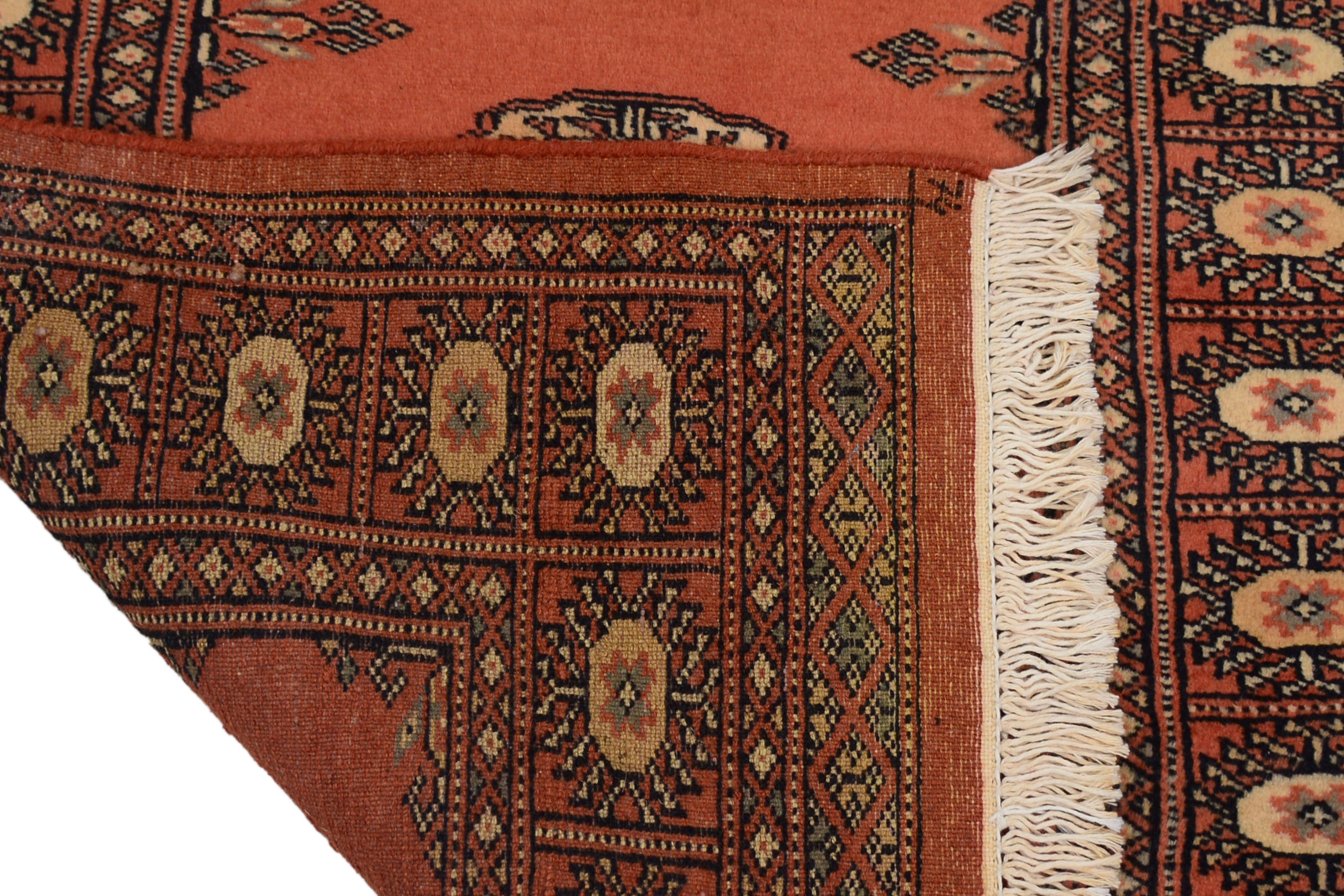 About Bukhara Rug: This beautiful rug has been hand-knotted in the Kashmir/Peshawar region by skilled artisan weavers. Bokhara rugs are some of the finest rugs manufactured in Pakistan. Using a combination of NZ and local Pakistani wool on a cotton base, the Pakistani Bokhara has an incredibly soft and thick pile with an average high knot count (approx. 150~200 KPSI). These stunning Bokhara rugs have small, repeating geometric designs.