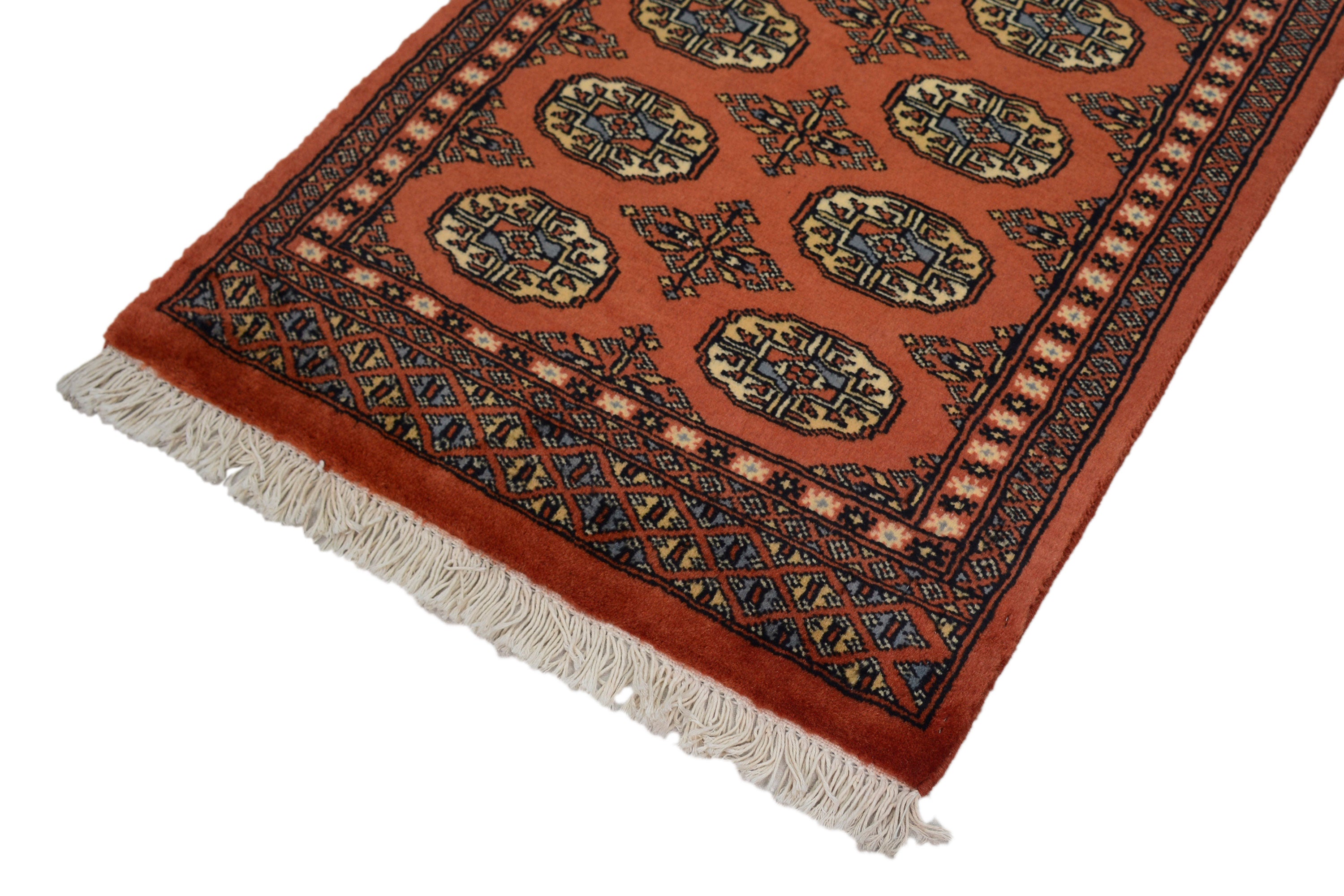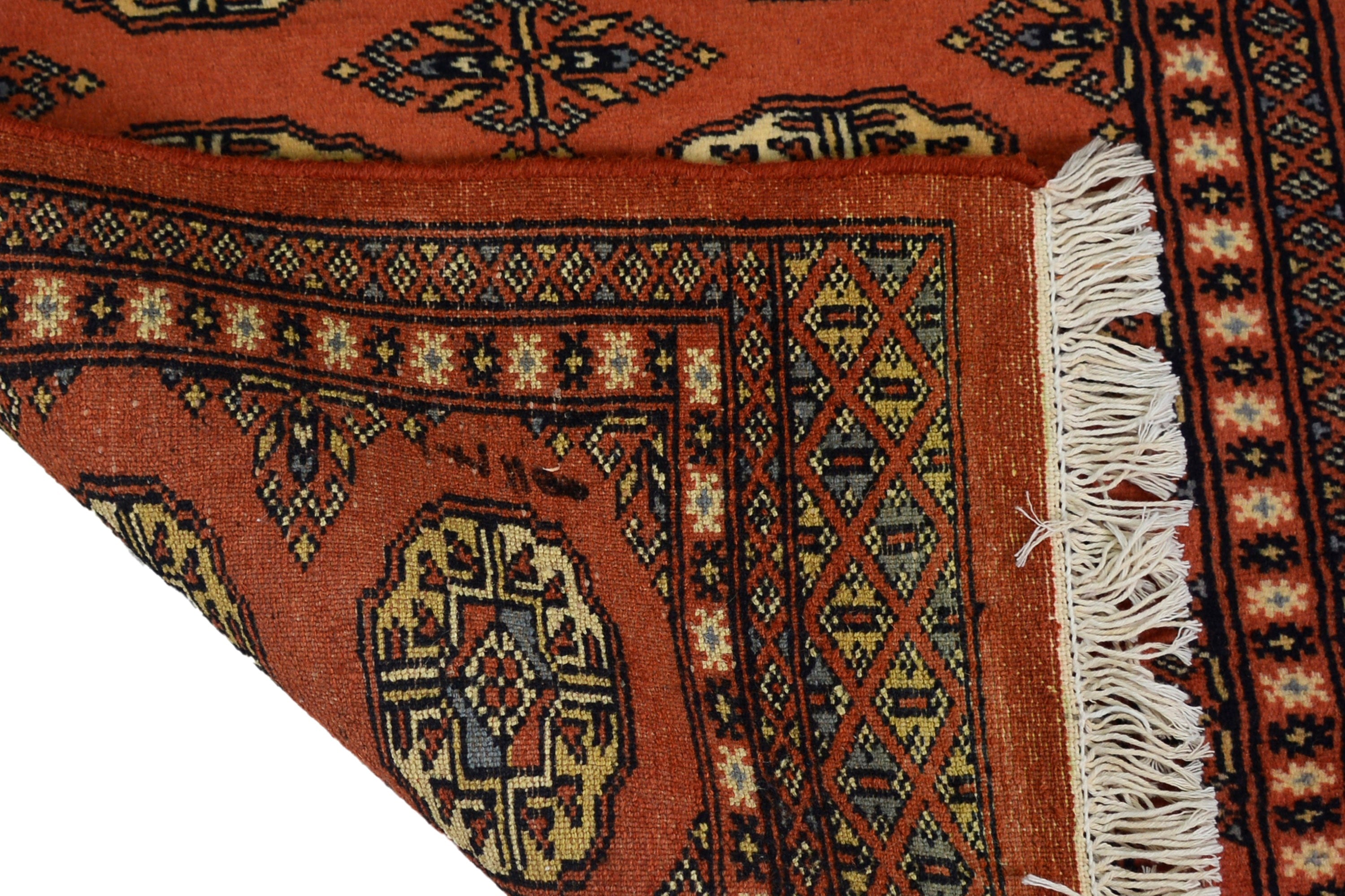 About Bukhara Rug: This beautiful mini rug has been hand-knotted in the Kashmir/Peshawar region by skilled artisan weavers. Bokhara rugs are some of the finest rugs manufactured in Pakistan. Using a combination of NZ and local Pakistani wool on a cotton base, the Pakistani Bokhara has an incredibly soft and thick pile with an average high knot count (approx. 150~200 KPSI). These stunning Bokhara rugs have small, repeating geometric designs. Mini rug dresses up spaces like foyers, kitchens, offices, and laundry rooms, and can also enhance the aesthetic of walls or tables.