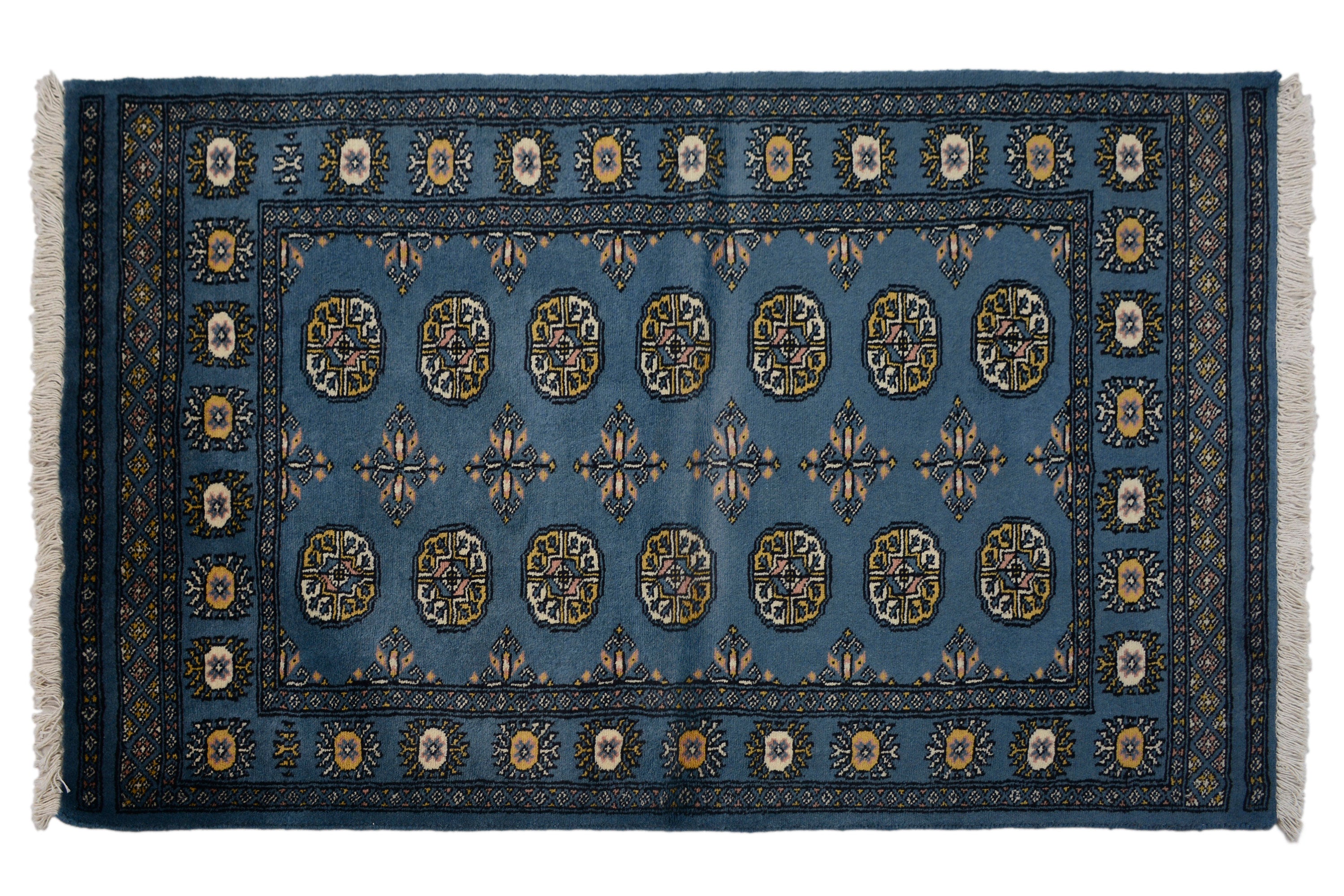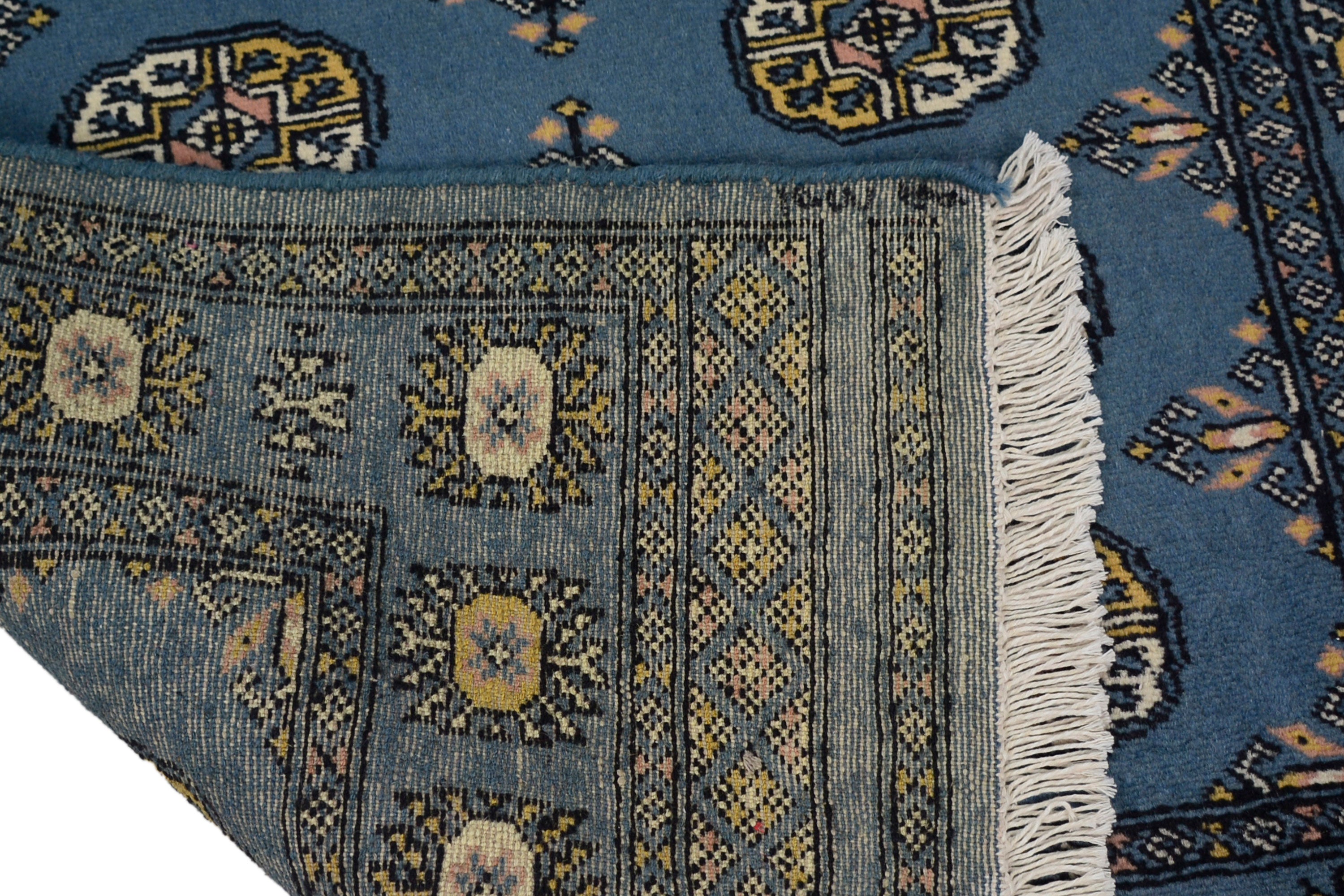 About Bukhara Rug: This beautiful rug has been hand-knotted in the Kashmir/Peshawar region by skilled artisan weavers. Bokhara rugs are some of the finest rugs manufactured in Pakistan. Using a combination of NZ and local Pakistani wool on a cotton base, the Pakistani Bokhara has an incredibly soft and thick pile with an average high knot count (approx. 150~200 KPSI). These stunning Bokhara rugs have small, repeating geometric designs. Mini rug dresses up spaces like foyers, kitchens, offices, and laundry rooms, and can also enhance the aesthetic of walls or tables.
