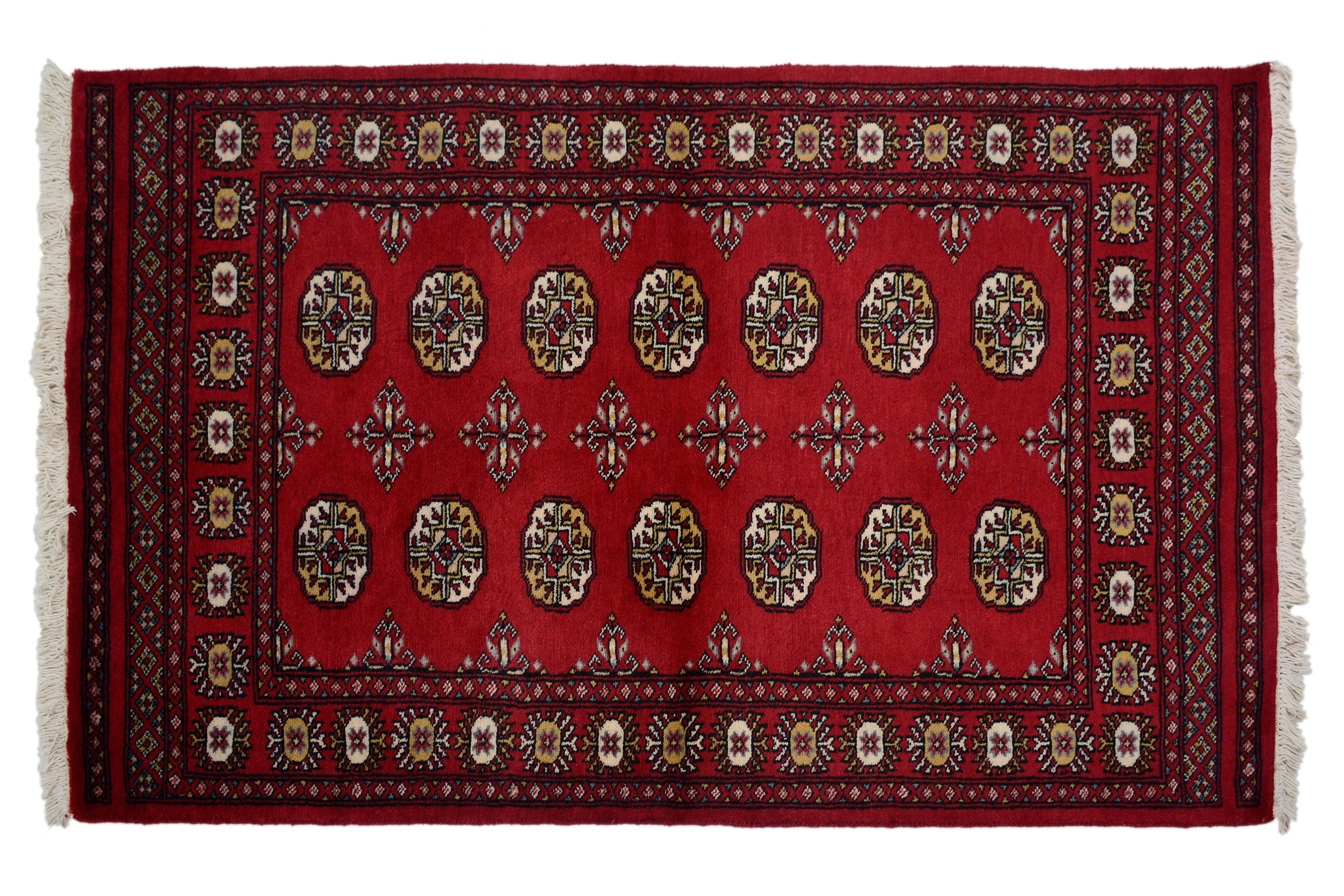 About Bukhara Rug: This beautiful rug has been hand-knotted in the Kashmir/Peshawar region by skilled artisan weavers. Bokhara rugs are some of the finest rugs manufactured in Pakistan. Using a combination of NZ and local Pakistani wool on a cotton base, the Pakistani Bokhara has an incredibly soft and thick pile with an average high knot count (approx. 150~200 KPSI). These stunning Bokhara rugs have small, repeating geometric designs. Mini rug dresses up spaces like foyers, kitchens, offices, and laundry rooms, and can also enhance the aesthetic of walls or tables.