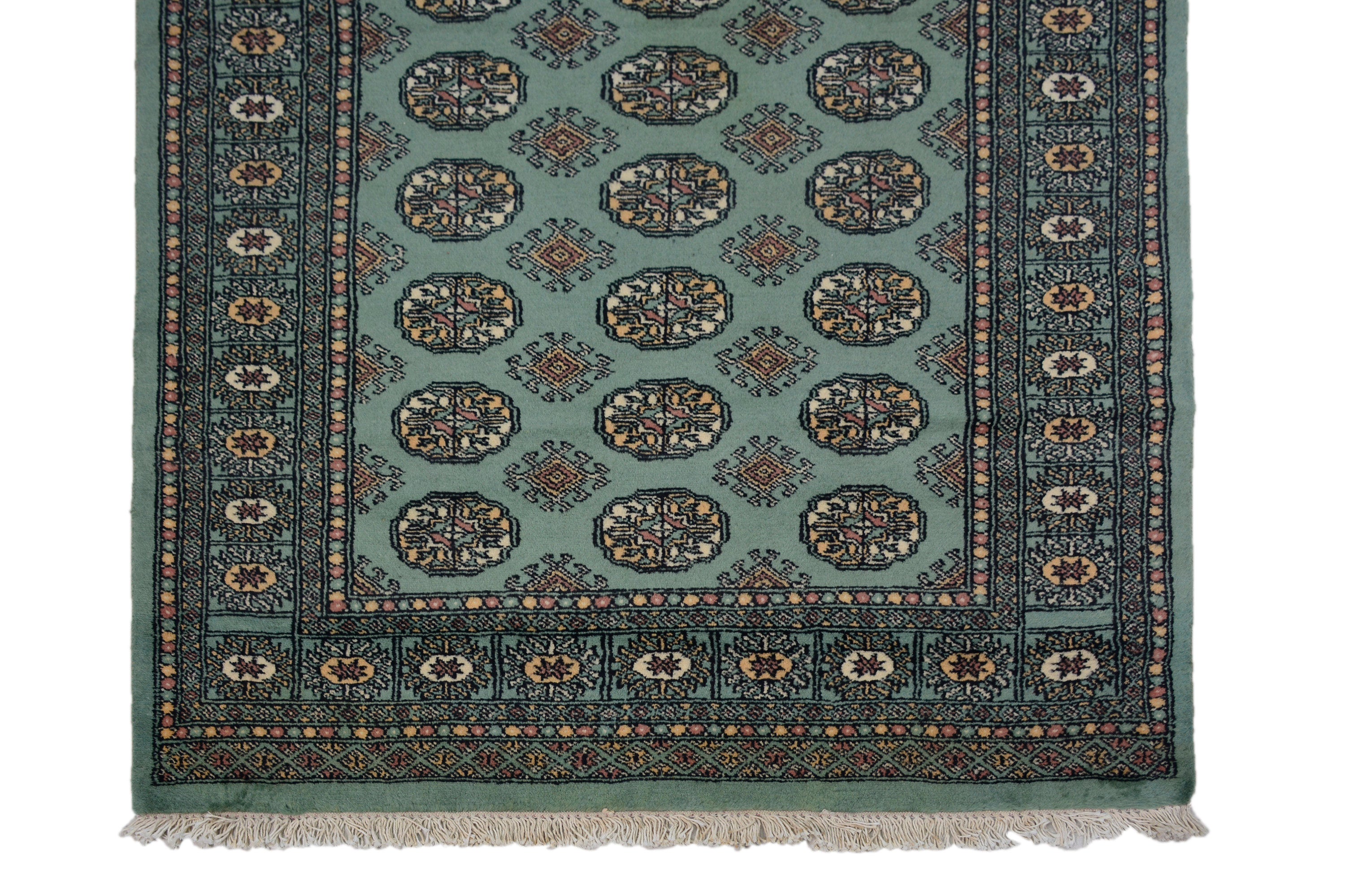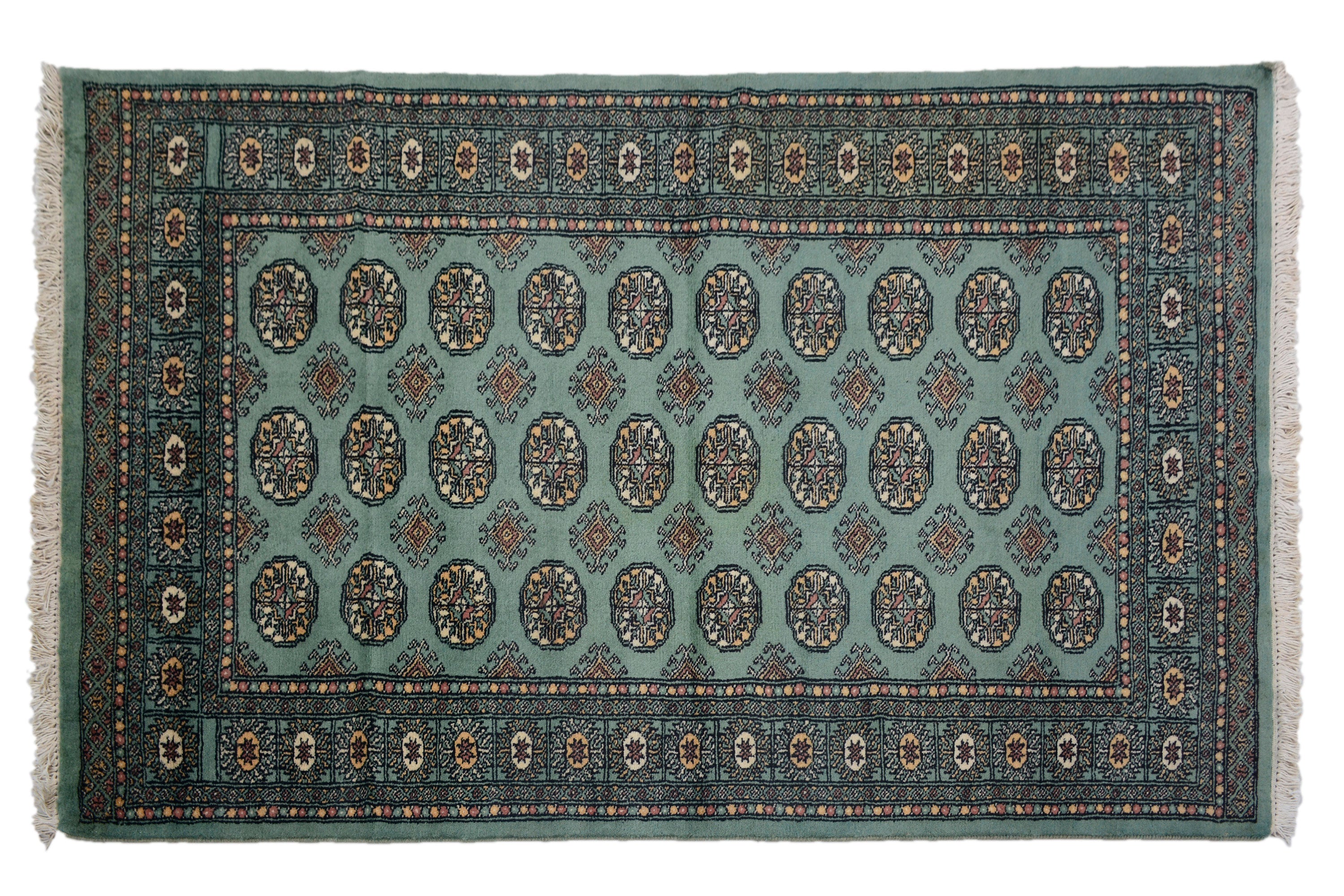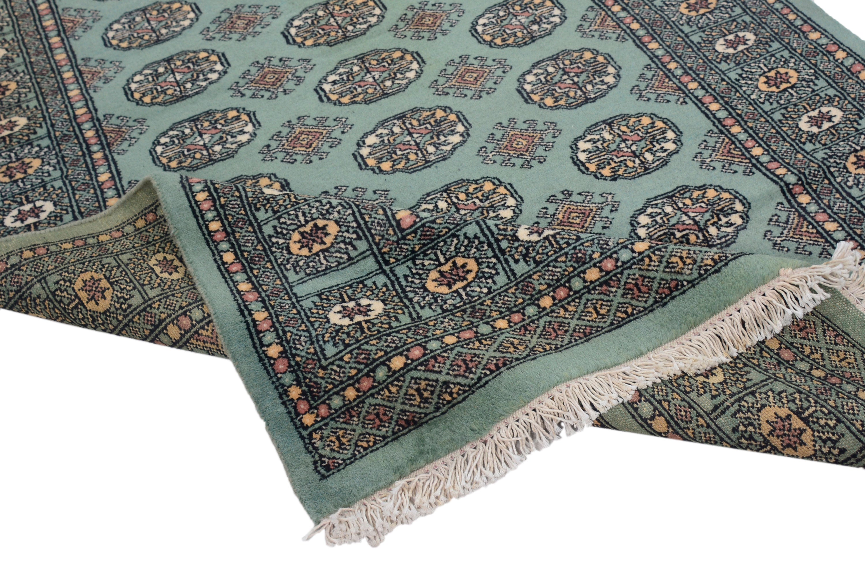 About Bukhara Rug: This beautiful rug has been hand-knotted in the Kashmir/Peshawar region by skilled artisan weavers. Bokhara rugs are some of the finest rugs manufactured in Pakistan. Using a combination of NZ and local Pakistani wool on a cotton base, the Pakistani Bokhara has an incredibly soft and thick pile with an average high knot count (approx. 150~200 KPSI). These stunning Bokhara rugs have small, repeating geometric designs.
