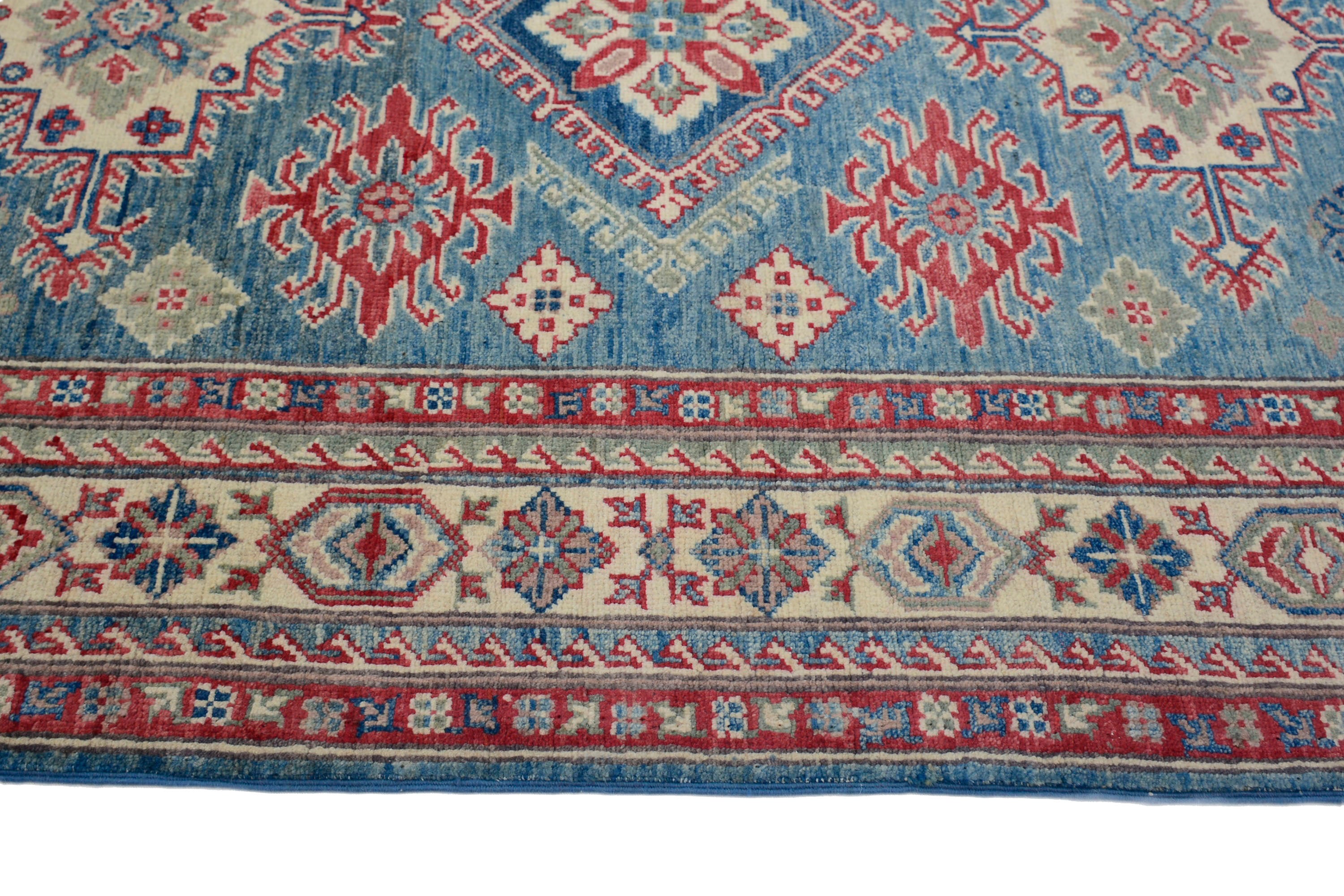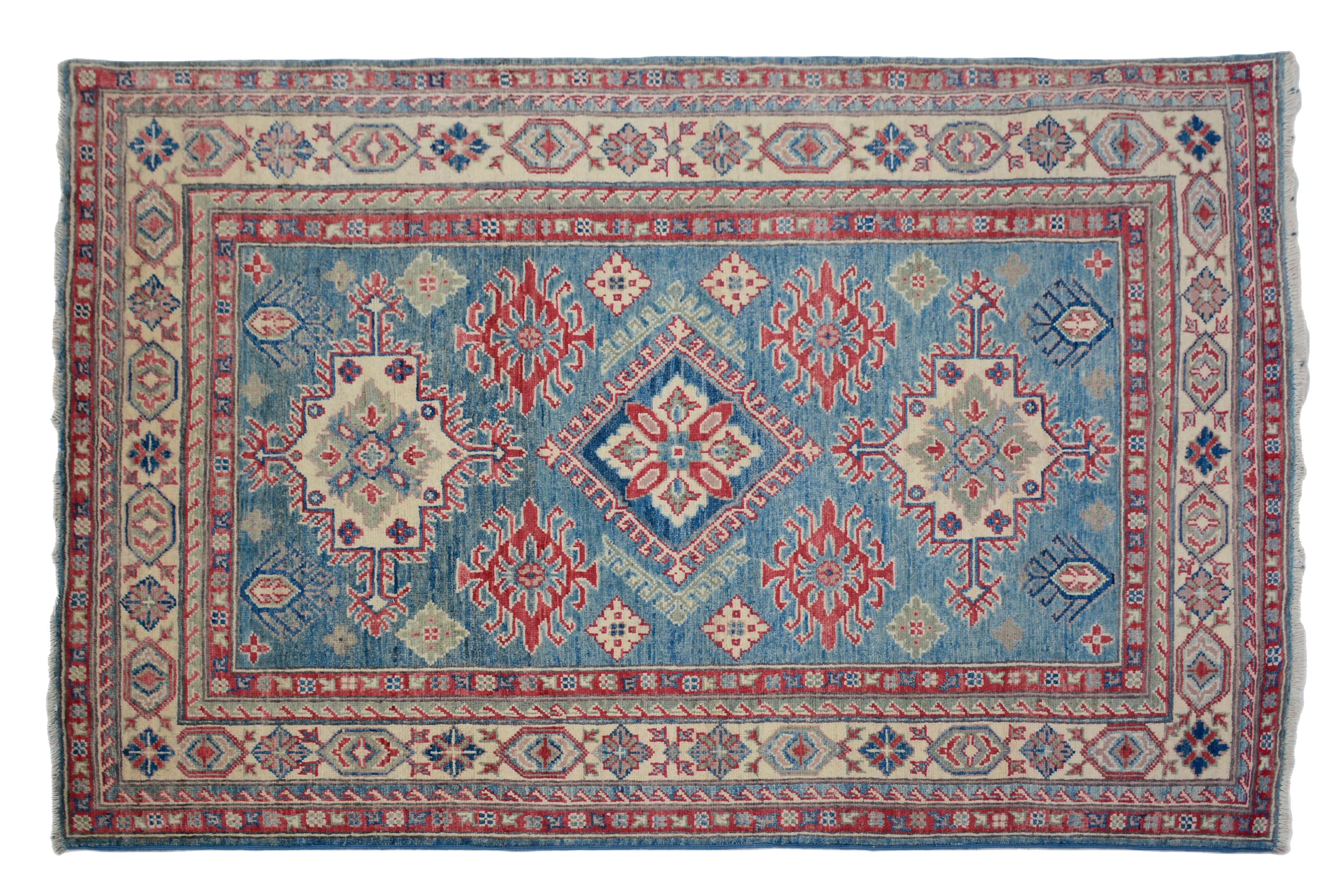 About Kazak Rug: Kazak rugs originated from the western area of the Caucasus and are now mainly made by Kazakhs in Afghanistan and Pakistan. Kazak rugs should not be confused with the state of Kazakstan. Kazak rugs, like many Caucasian designs, are dominated by highly stylized floral motifs. Kazak rugs are durable, with a relatively short pile, and easily fit into modern decor. Kazak rugs with unique geometric patterns, balanced colours and exceptional craftsmanship will create a captivating and culturally rich atmosphere in your space.