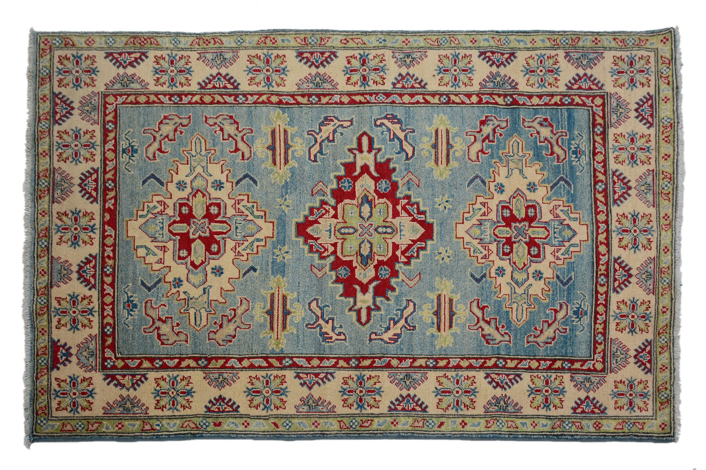 About Kazak Rug: Kazak rugs originated from the western area of the Caucasus and are now mainly made by Kazakhs in Afghanistan and Pakistan. Kazak rugs should not be confused with the state of Kazakstan. Kazak rugs, like many Caucasian designs, are dominated by highly stylized floral motifs. Kazak rugs are durable, with a relatively short pile, and easily fit into modern decor. Kazak rugs with unique geometric patterns, balanced colours and exceptional craftsmanship will create a captivating and culturally rich atmosphere in your space.