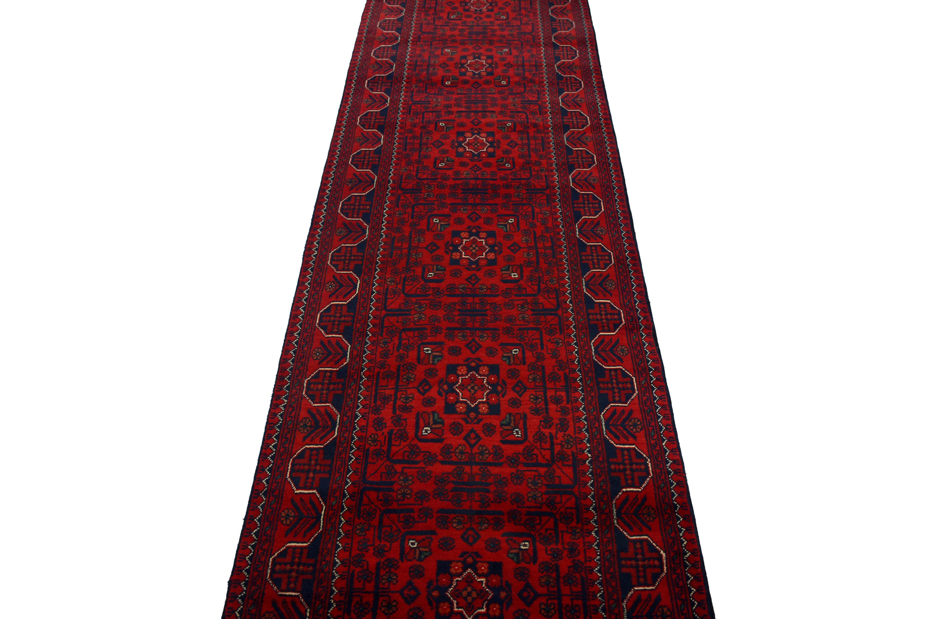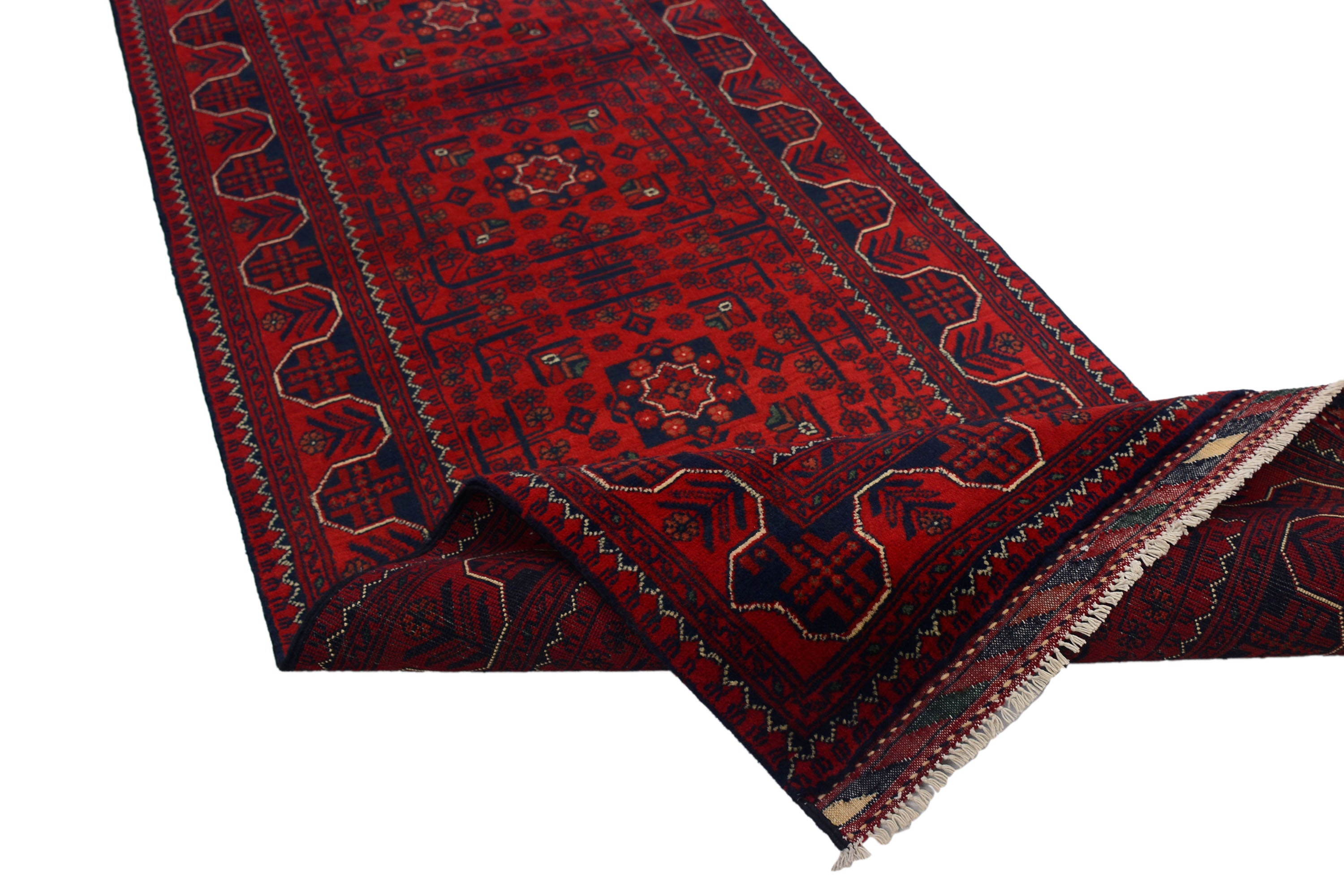 About Khal Mohammadi Rug: This beautiful rug has been hand-knotted in or around the town of Kunduz in the north of Afghanistan. Khal Mohammadi rugs are named after their creator, who developed the deep red tones that characterise this style. This rug is made using high-quality wool sourced from local Afghan sheep, known for its durability and natural sheen. This wool is hand-spun, adding a distinctive texture and character to each rug. Khal Mohammadi rugs often feature geometric patterns, stylised floral motifs, and elements inspired by nature.