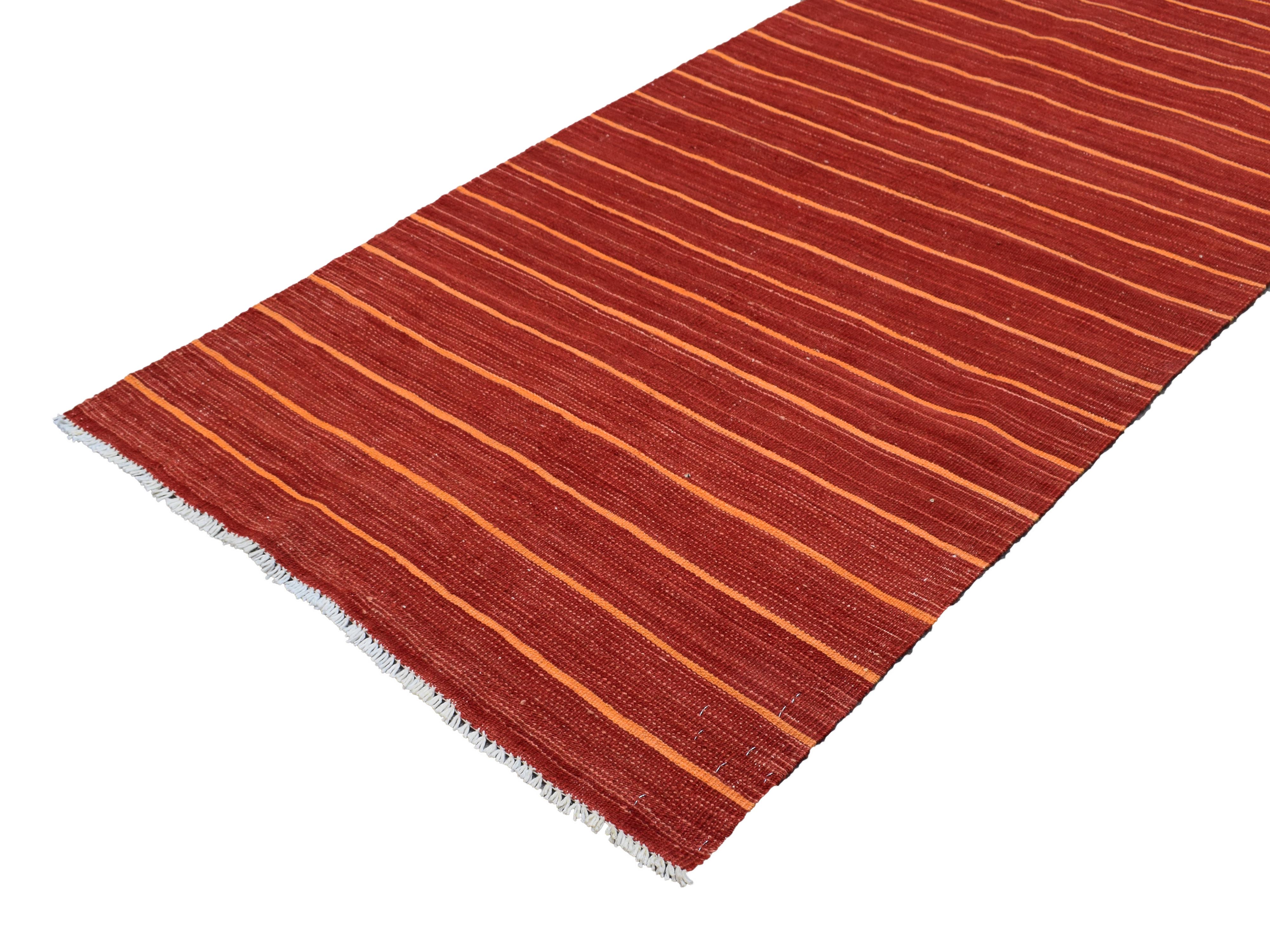 About Chobi Kilim: The word kilim simply means a flat woven rug, or rug without a knotted pile. Kilims are not knotted, instead the thread or yarn is woven in a flat manner on the warp strings, so they don’t have a pile which means you can use both sides.