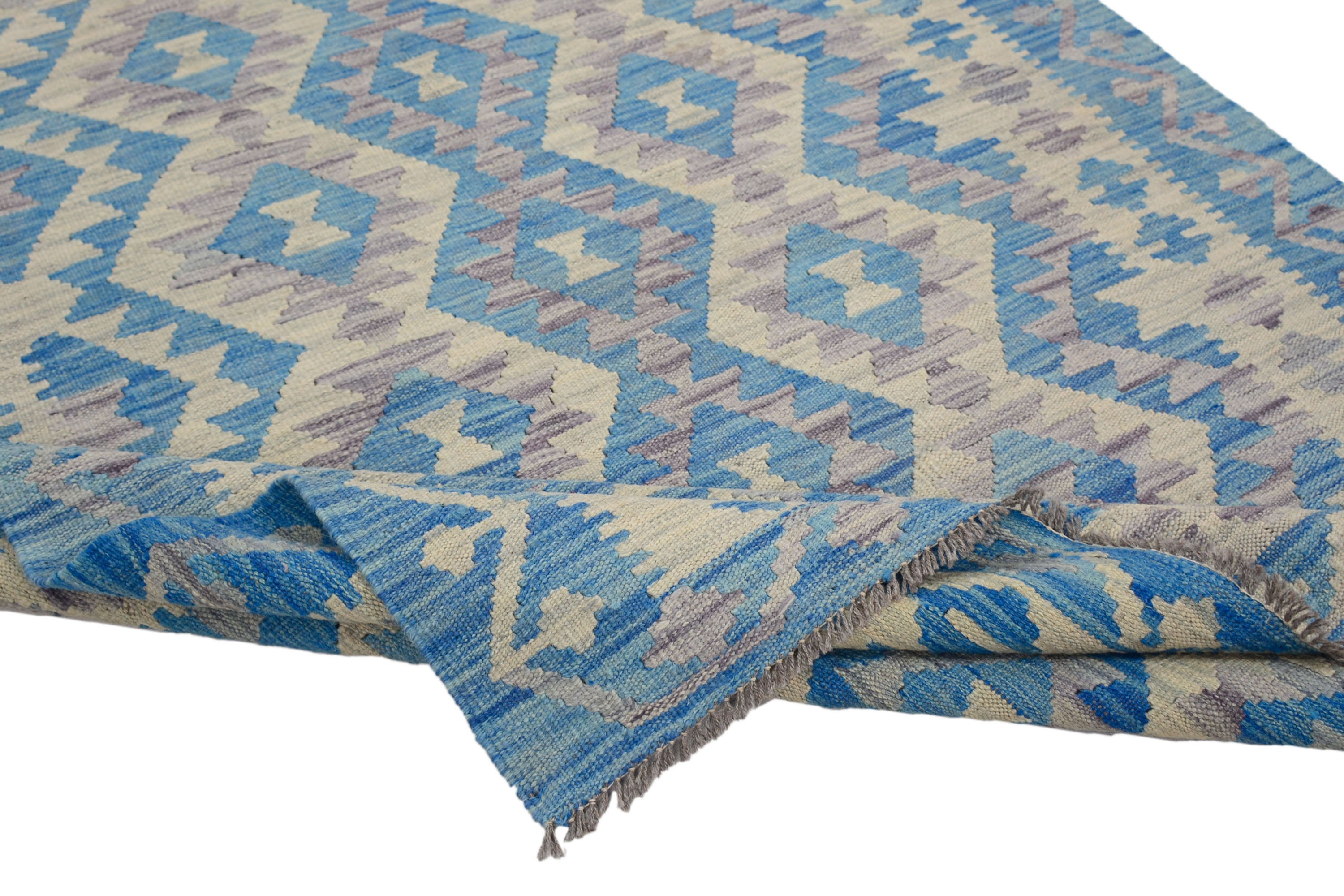 About Chobi Kilim: The word kilim simply means a flat woven rug, or rug without a knotted pile. Kilims are not knotted, instead, the thread or yarn is woven in a flat manner on the warp strings, so they don’t have a pile which means you can use both sides. This is a highly popular, intricately flat woven Kilim from the Turkoman tribes of the Maimana region of Faryab, Afghanistan, known for its design, quality and workmanship. This Kilim is woven from 100% wool incorporating vegetable dyes.