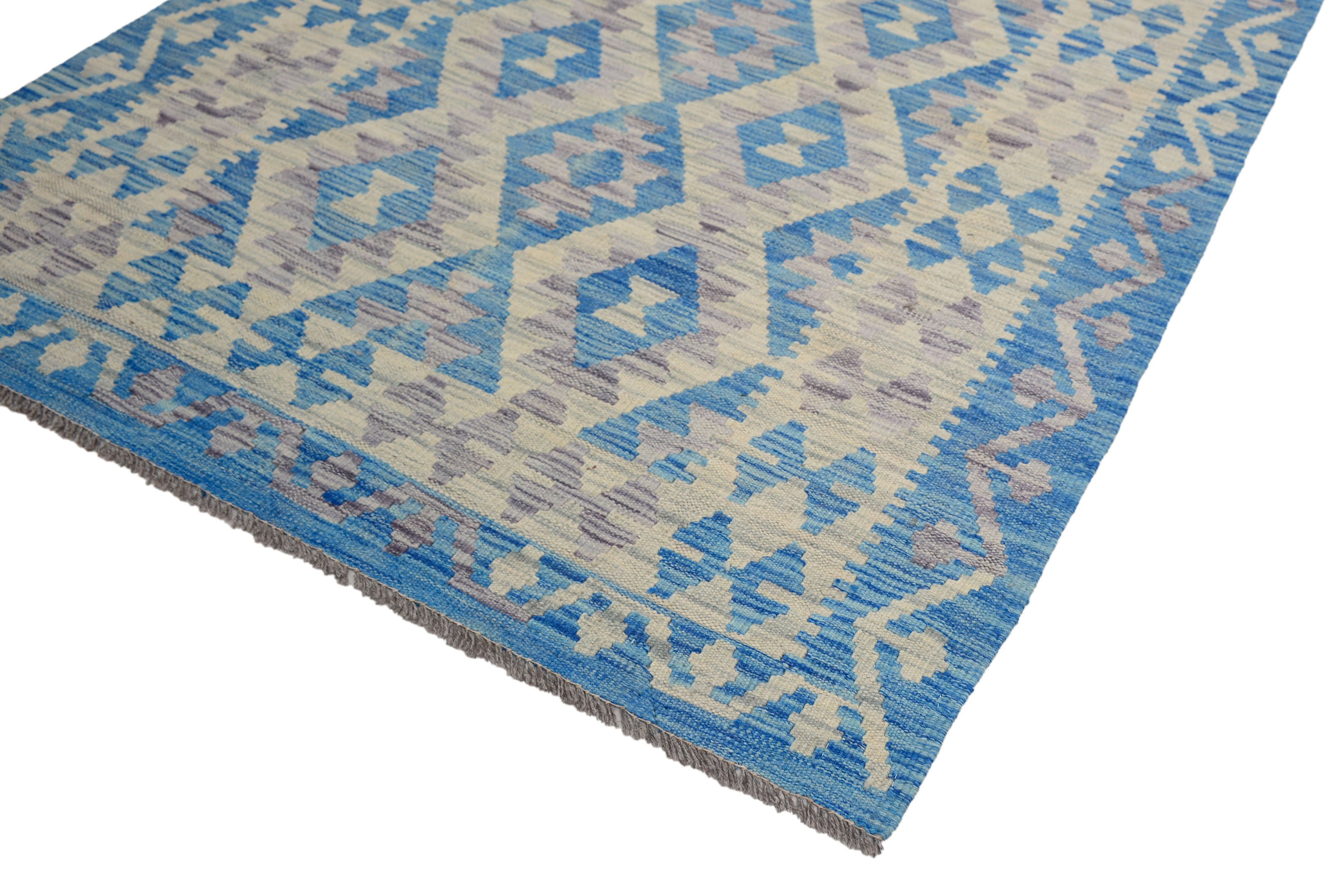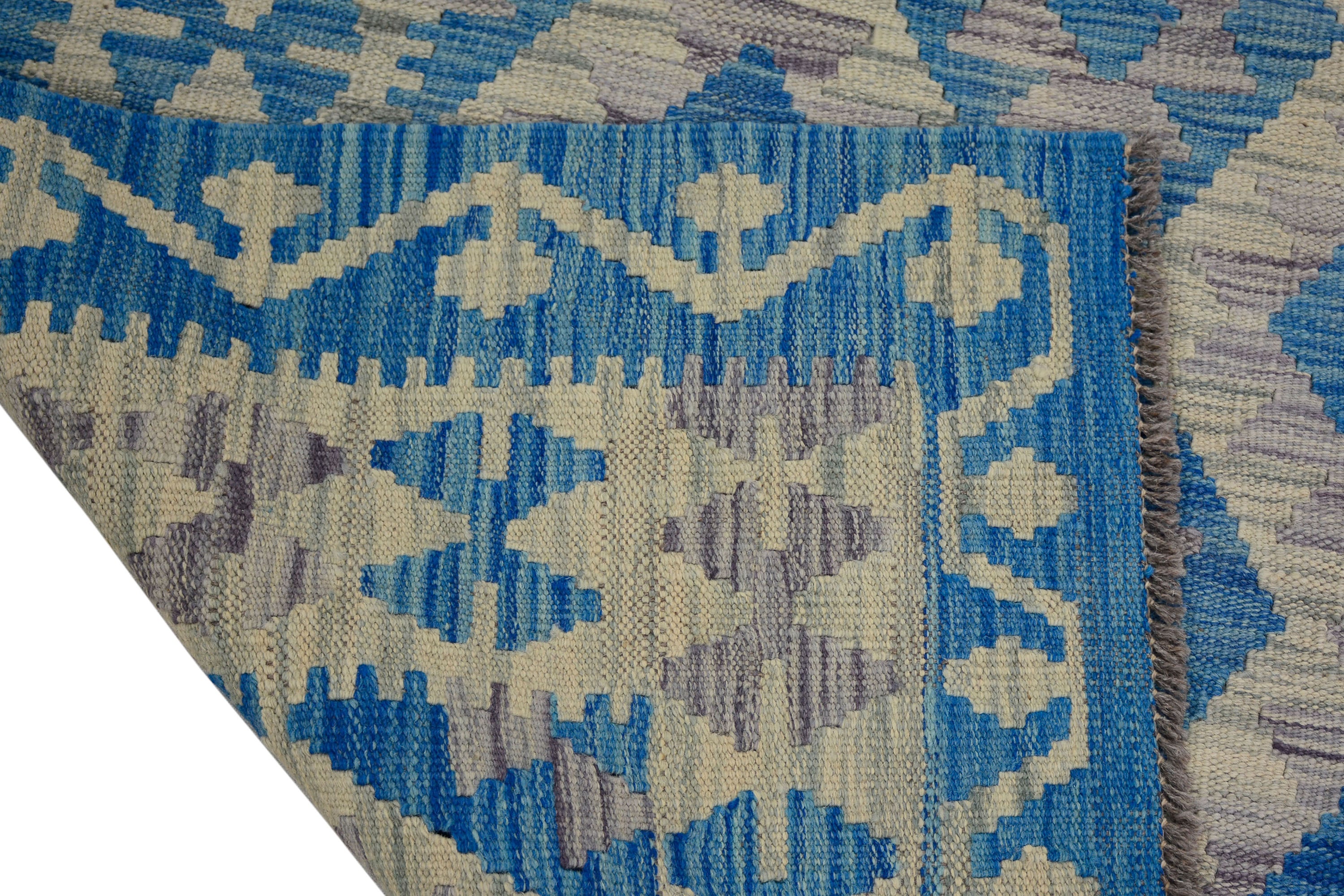 About Chobi Kilim: The word kilim simply means a flat woven rug, or rug without a knotted pile. Kilims are not knotted, instead, the thread or yarn is woven in a flat manner on the warp strings, so they don’t have a pile which means you can use both sides. This is a highly popular, intricately flat woven Kilim from the Turkoman tribes of the Maimana region of Faryab, Afghanistan, known for its design, quality and workmanship. This Kilim is woven from 100% wool incorporating vegetable dyes.
