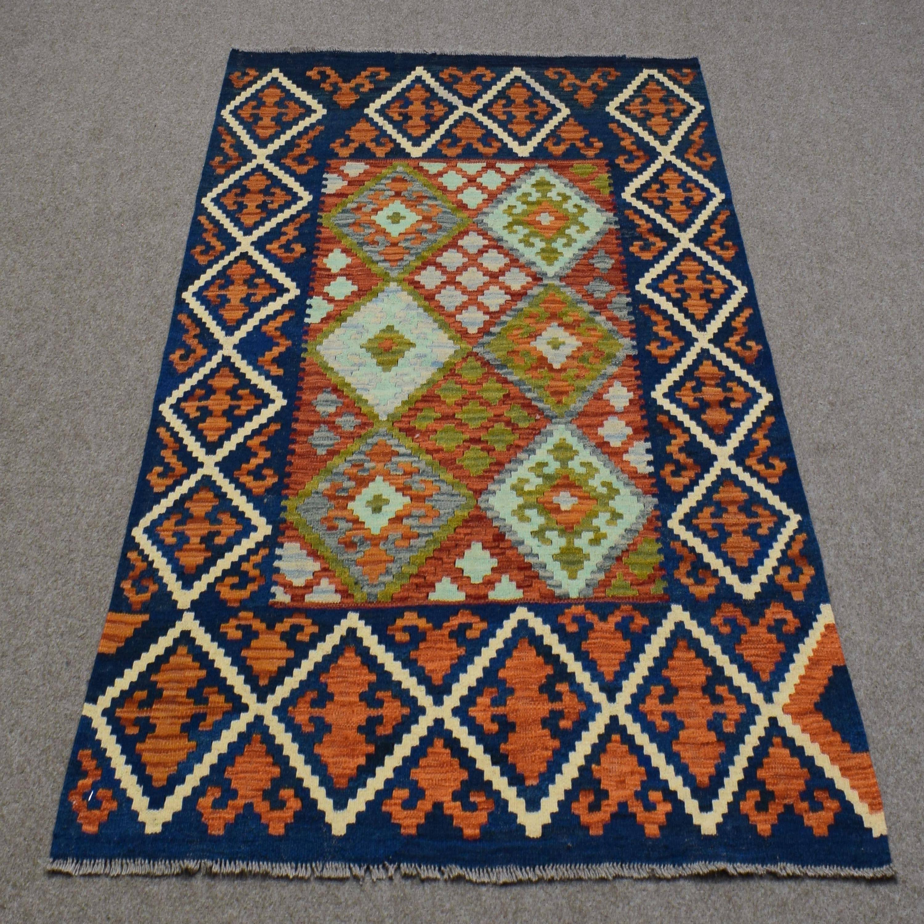 This is a highly popular, intricately-flat woven Kilim from the Turkoman tribes of Maimana region of Faryab, Afghanistan, known for their design, quality and workmanship. This Kilim is woven from 100% wool incorporating vegetable dyes.