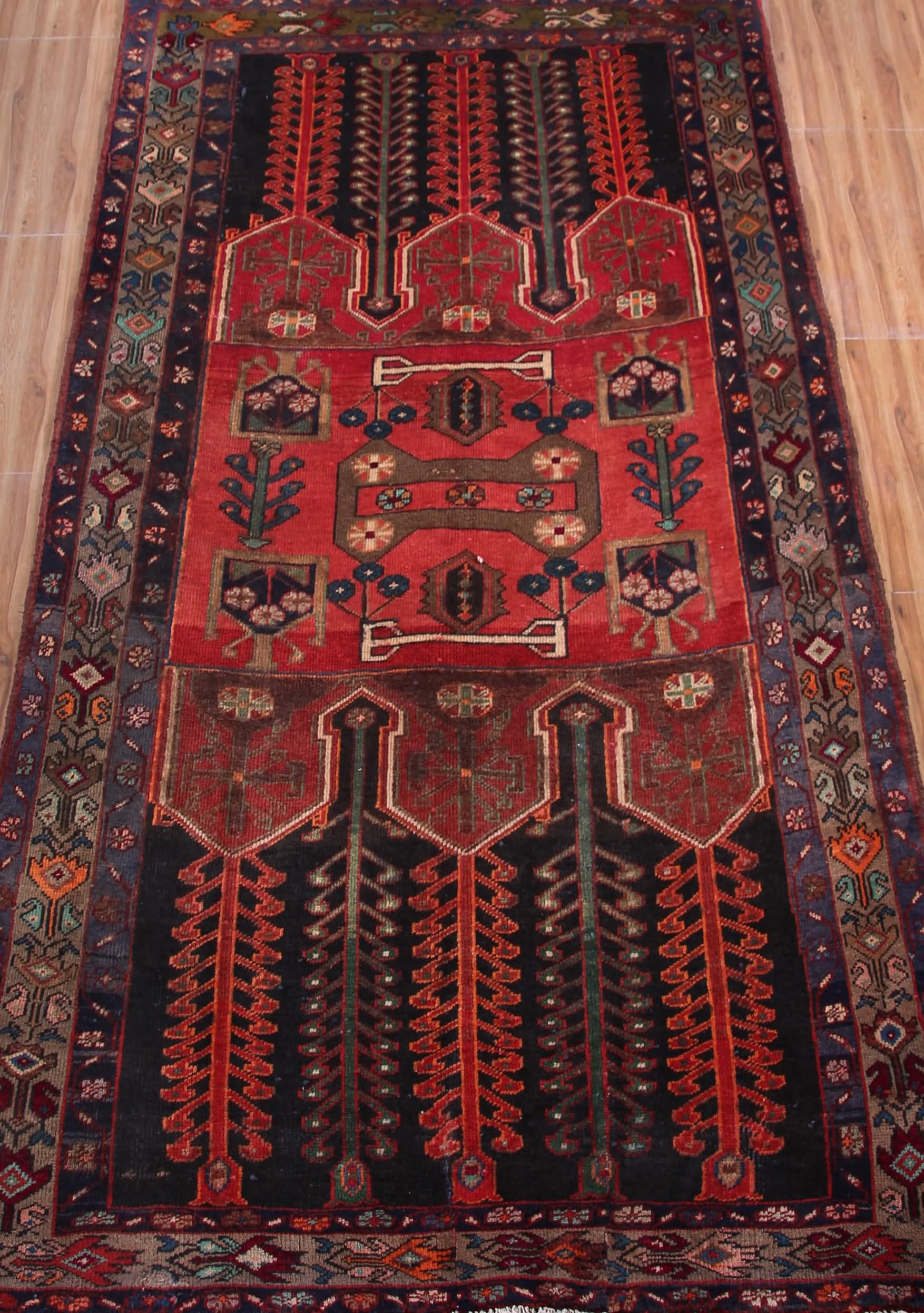 All vintage & antique rugs that we are selling were produced years ago with love by nomads and are treasures of the past. They have been professionally washed, cleaned and restored. Due to the vintage/antique nature of our rugs, there may be imperfections and signs of wear which rather enhance the feel and beauty of these rugs.