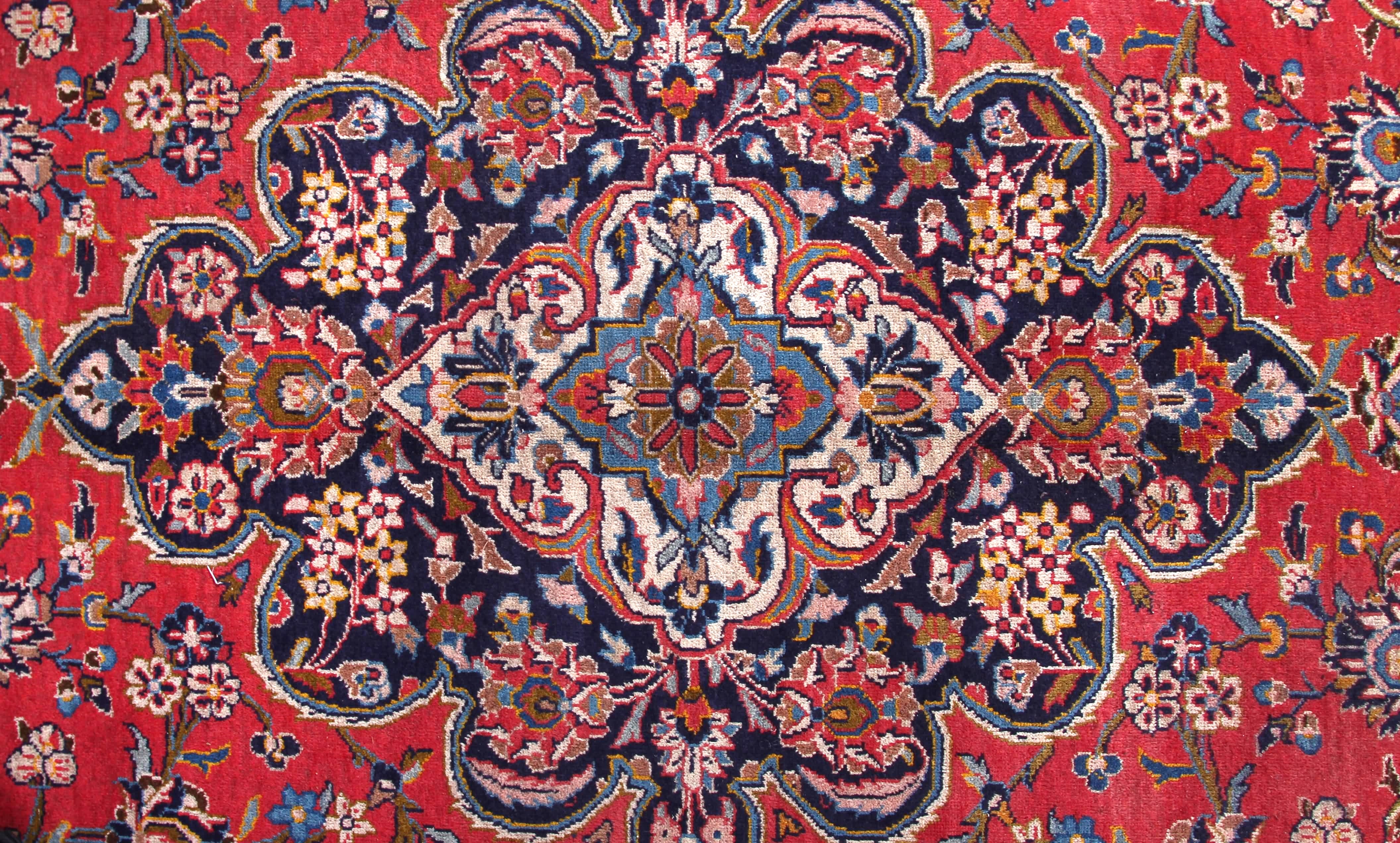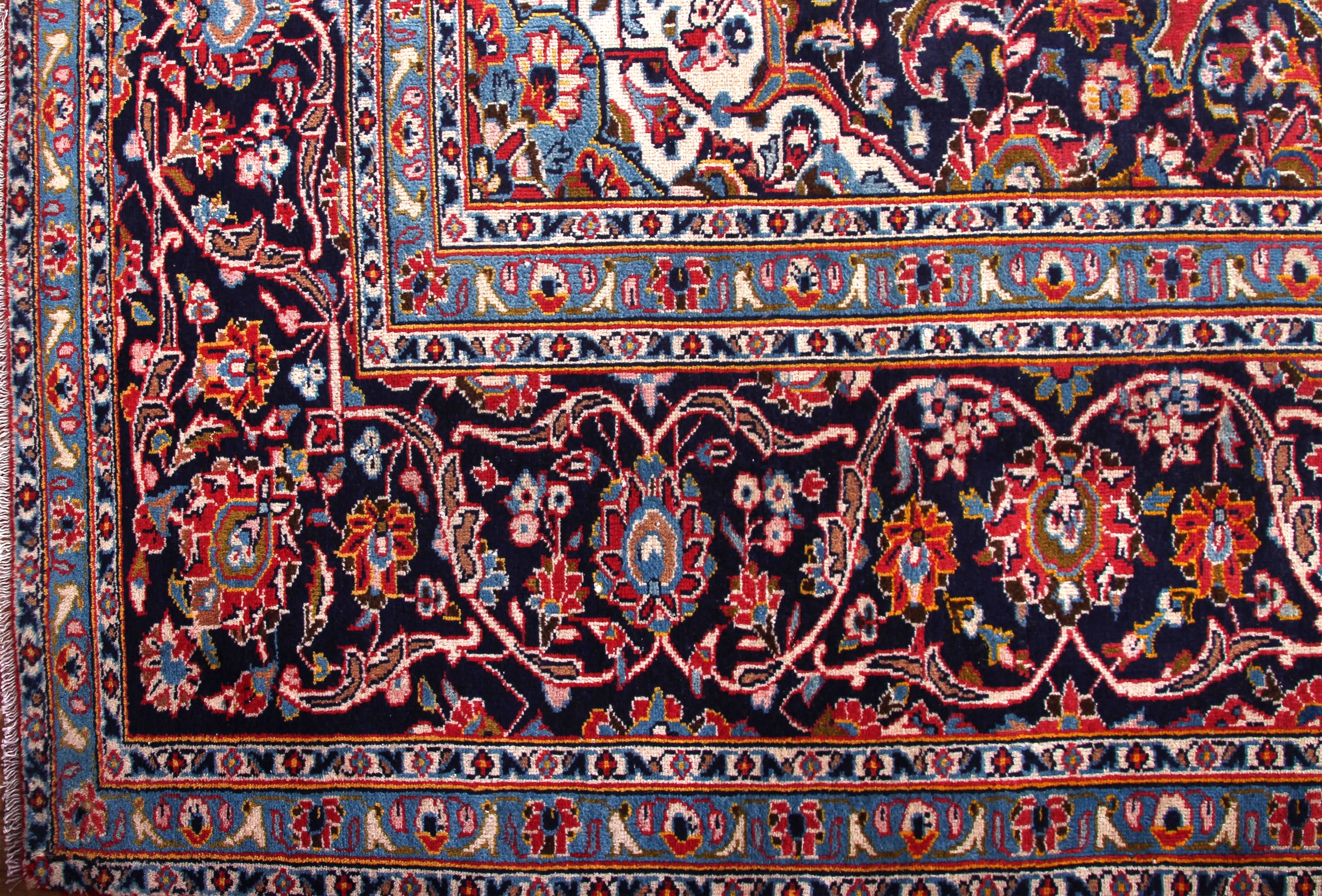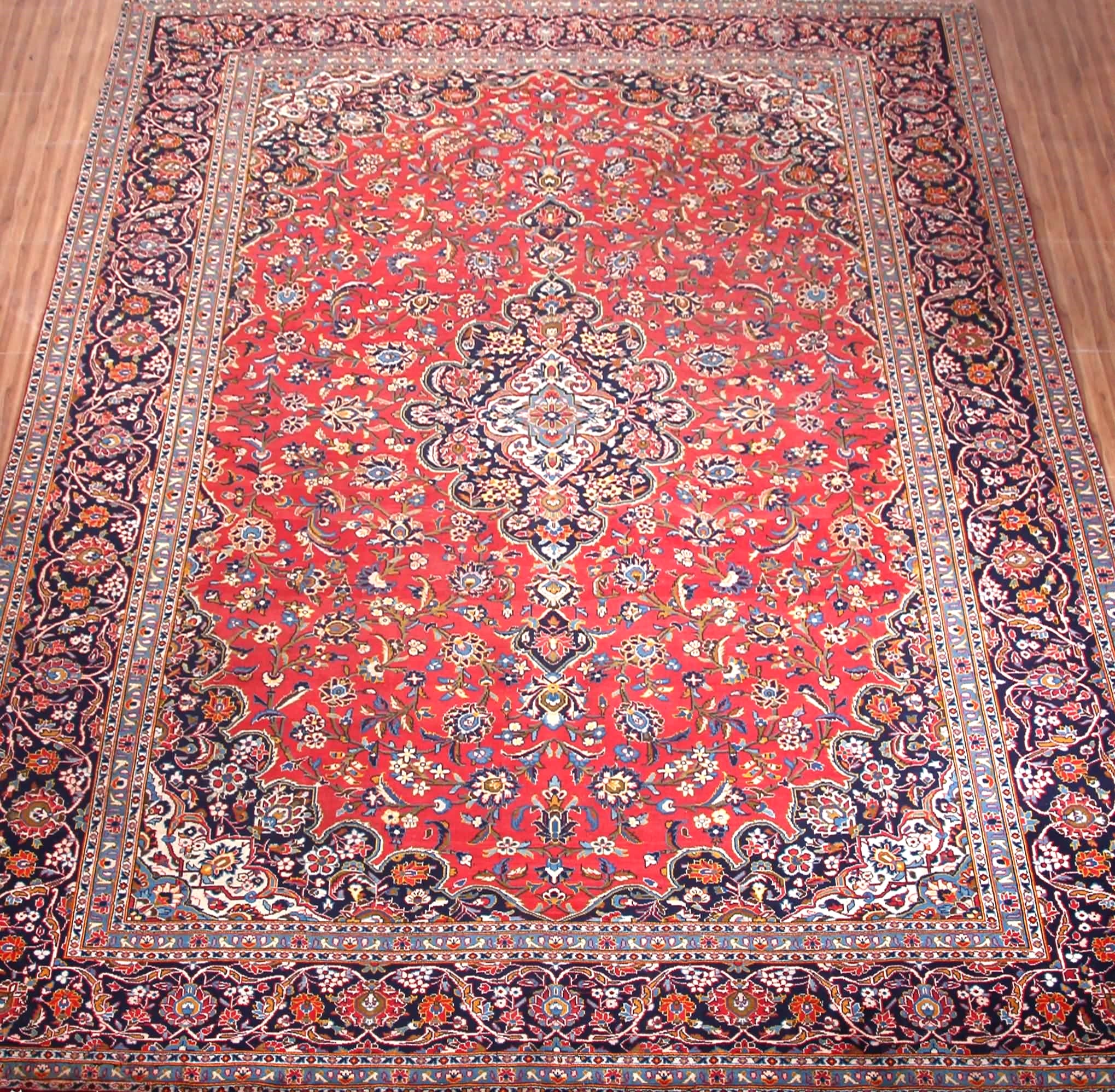 About Persian Kashan Rug: This beautiful rug was hand-woven in Kashan, Iran. Kashan carpets are mostly knotted from incredibly good wool. Warp and weft are usually made of cotton and the pile is made of high-quality sheep's wool. The dense knotting with Persian knots creates carpets that owners will enjoy for a long time. Typical knot density of Kashan rug can be 100,000 – 400,000 sqm.