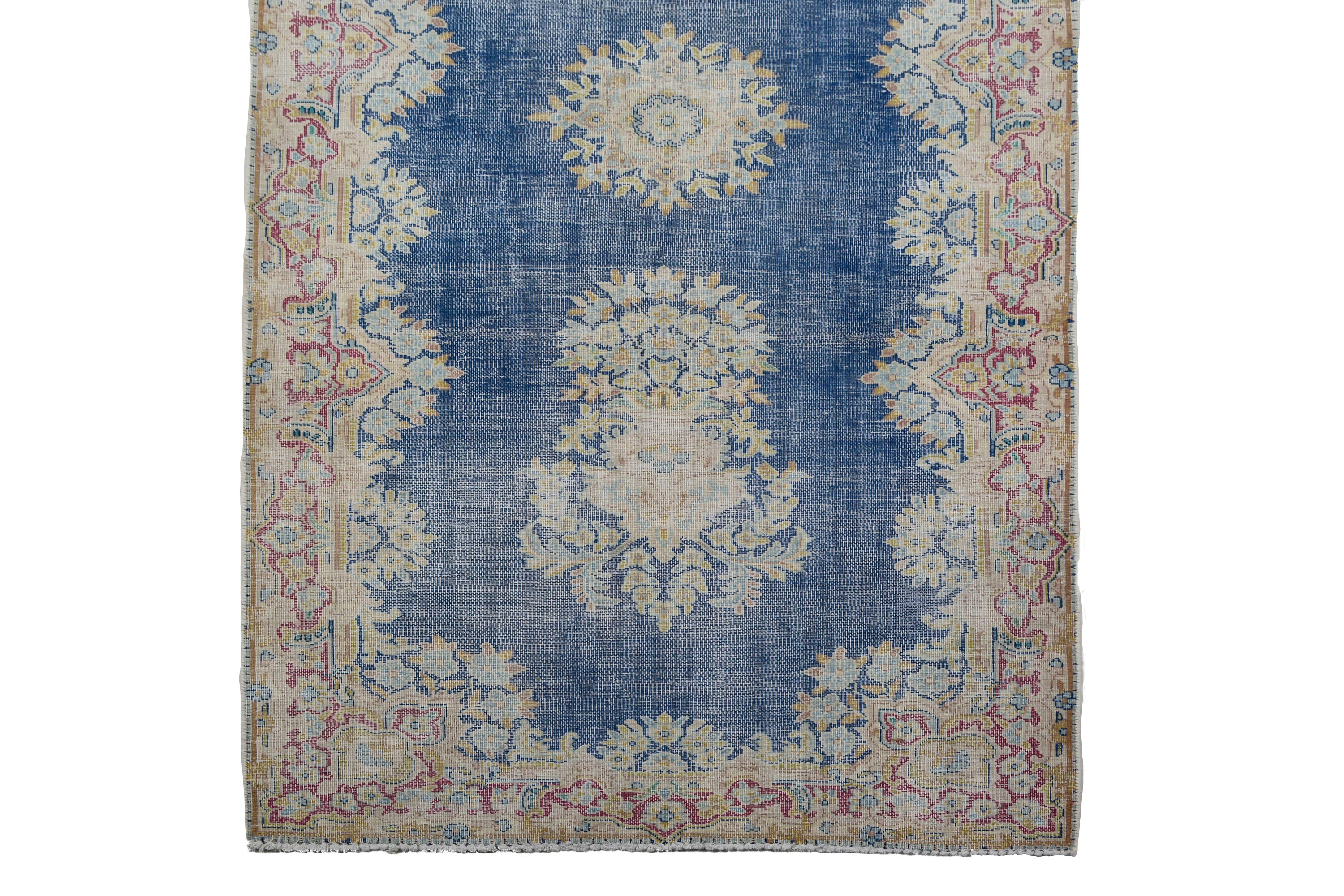 About Distressed Rug: This beautiful rug was hand-woven in the 1970s in Kerman, Iran. Later, this vintage rug was shaved down to a lower pile to make it a faded rug on purpose. Distressed Rugs represent a trend that has achieved a crossover between fashion and home décor. This new look celebrates rugs that are faded, and worn over time; rugs that nestle into homes as if they’ve always been there. Distressed rugs are shaved rugs so they do not have a soft pile.
