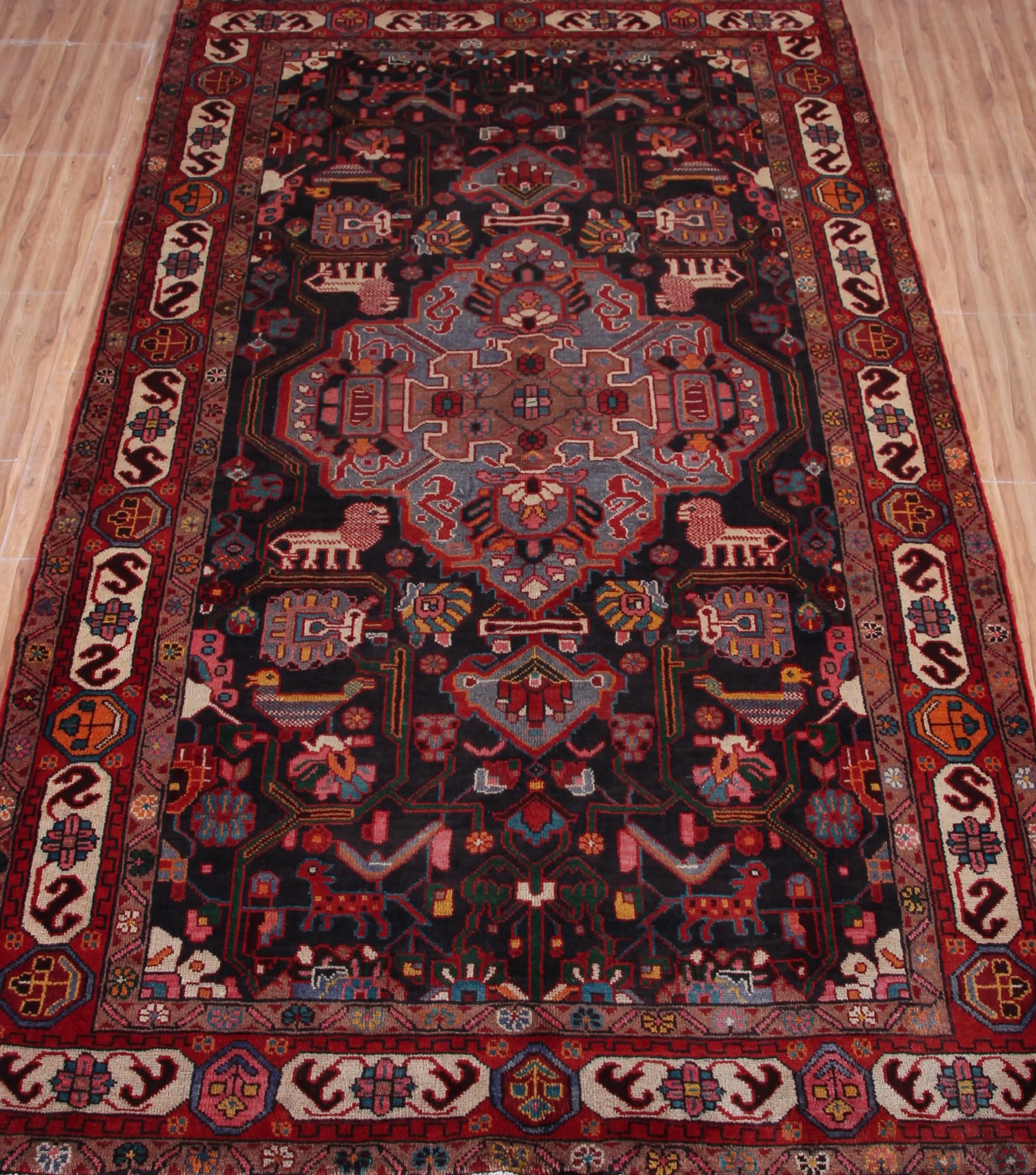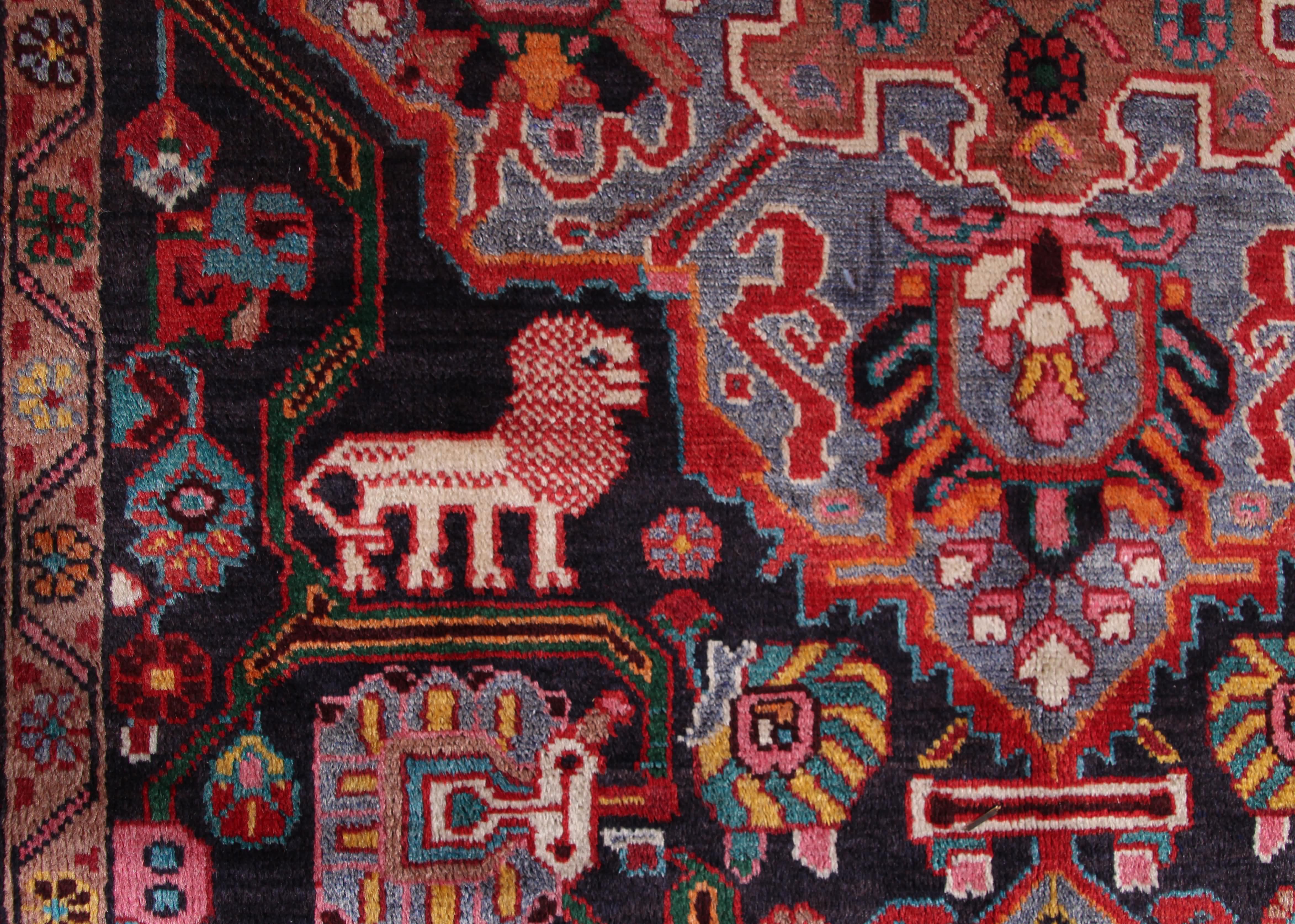 About Persian Nahavand Rug: This beautiful rug was hand knotted in Nahavand, Iran. It produces high quality Persian rugs, which have a very good reputation. Nahavand rugs are noticeable due to the softness but more importantly, the sheen, from their wool. The pattern usually encapsulates a large single central medallion with smaller nomadic motifs surrounding it. The colours used are a beautiful blend, normally utilising rusty reds and khakis on a dark blue background but may vary from rug to rug. These are beautiful rugs of high quality and are well sought after. Typical knot density of Nahavand rugs is 90,000 – 170,000 knots / sqm.
