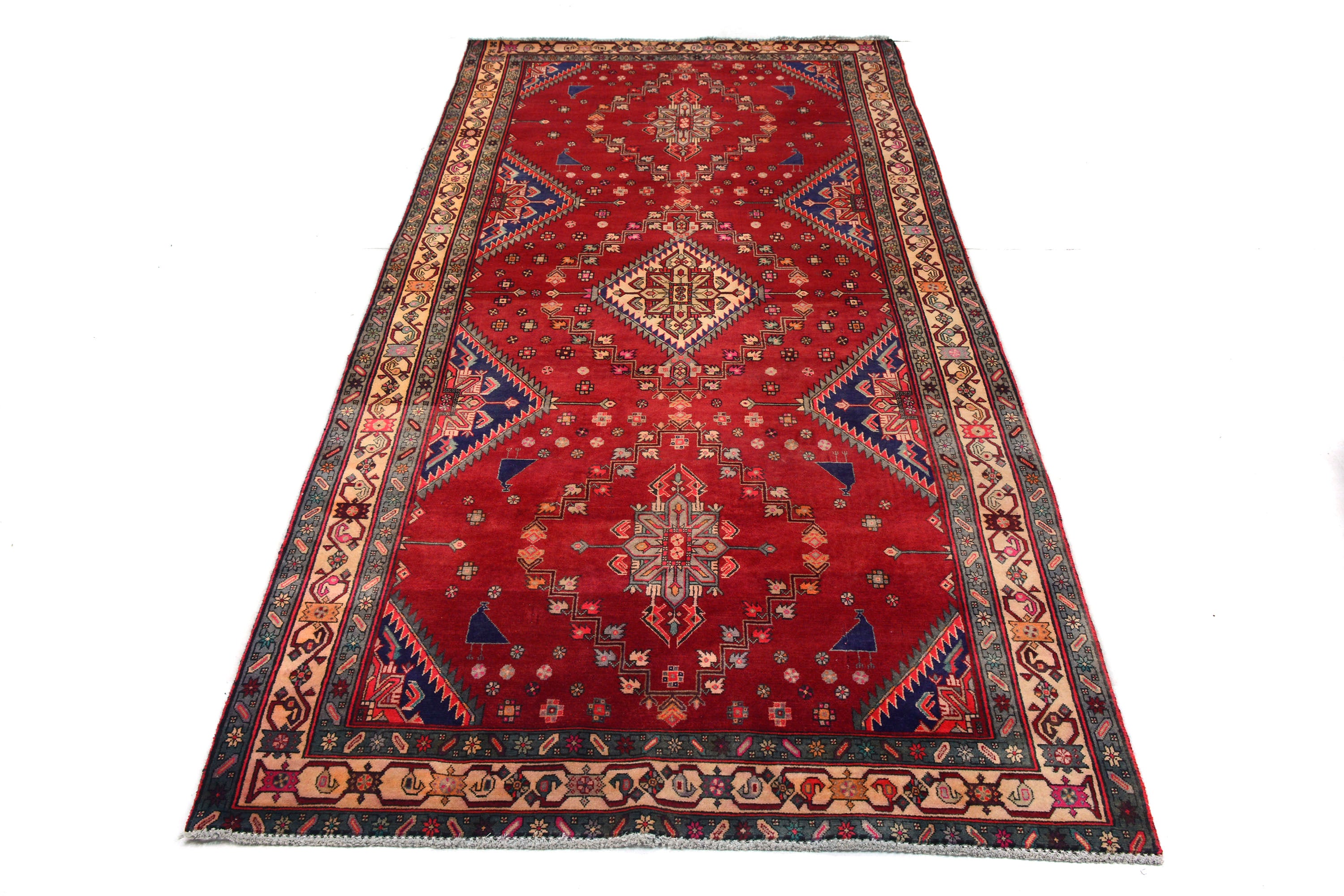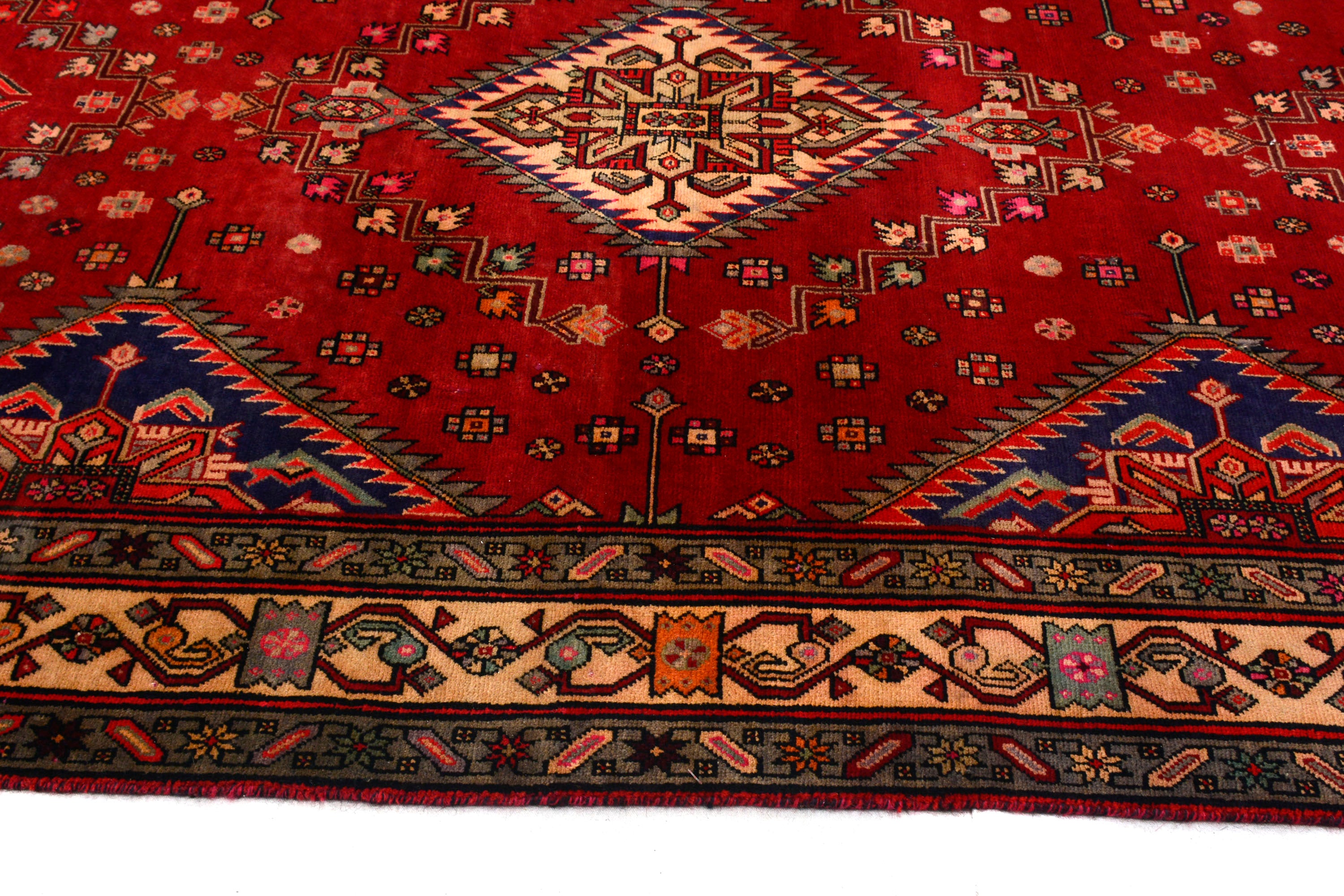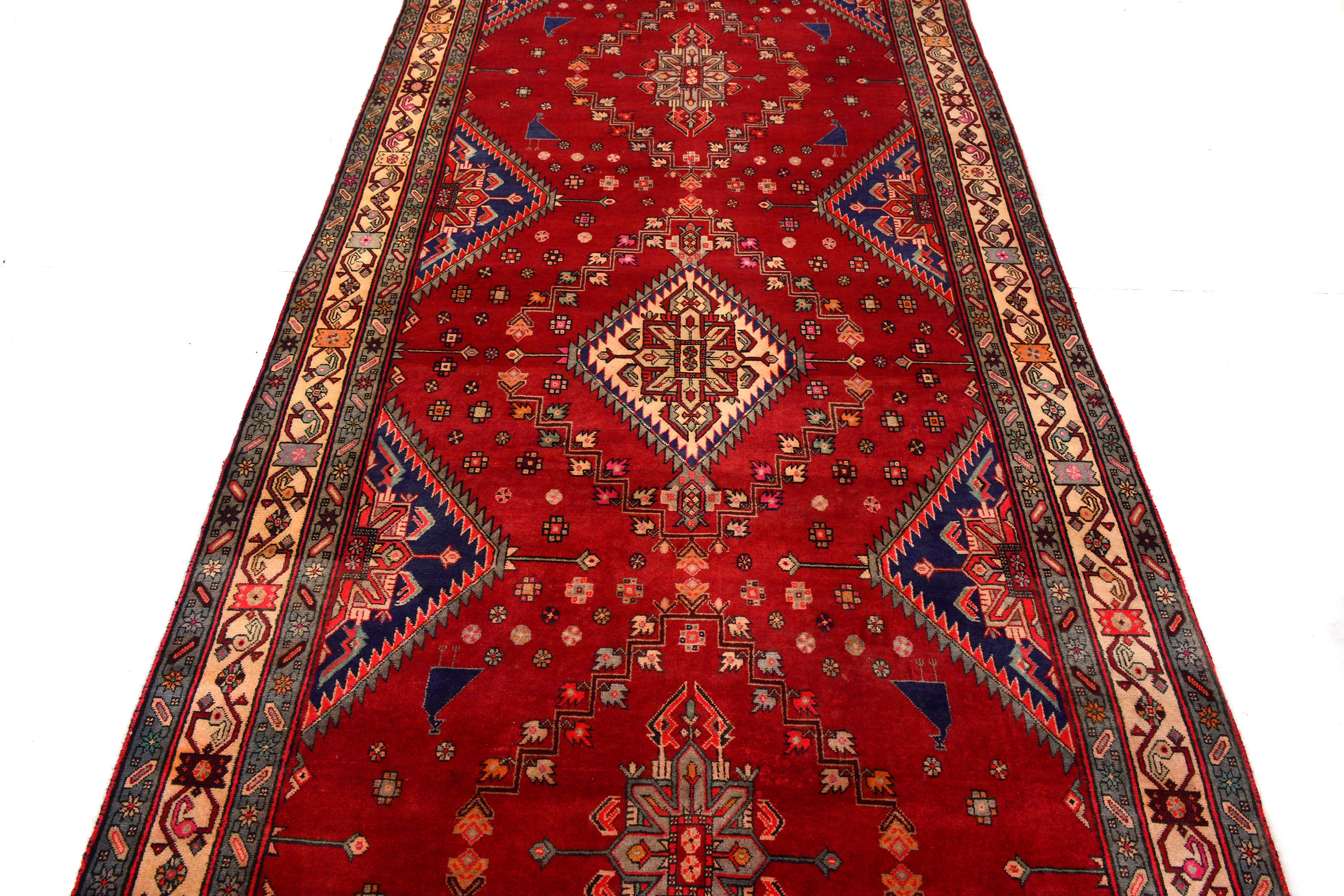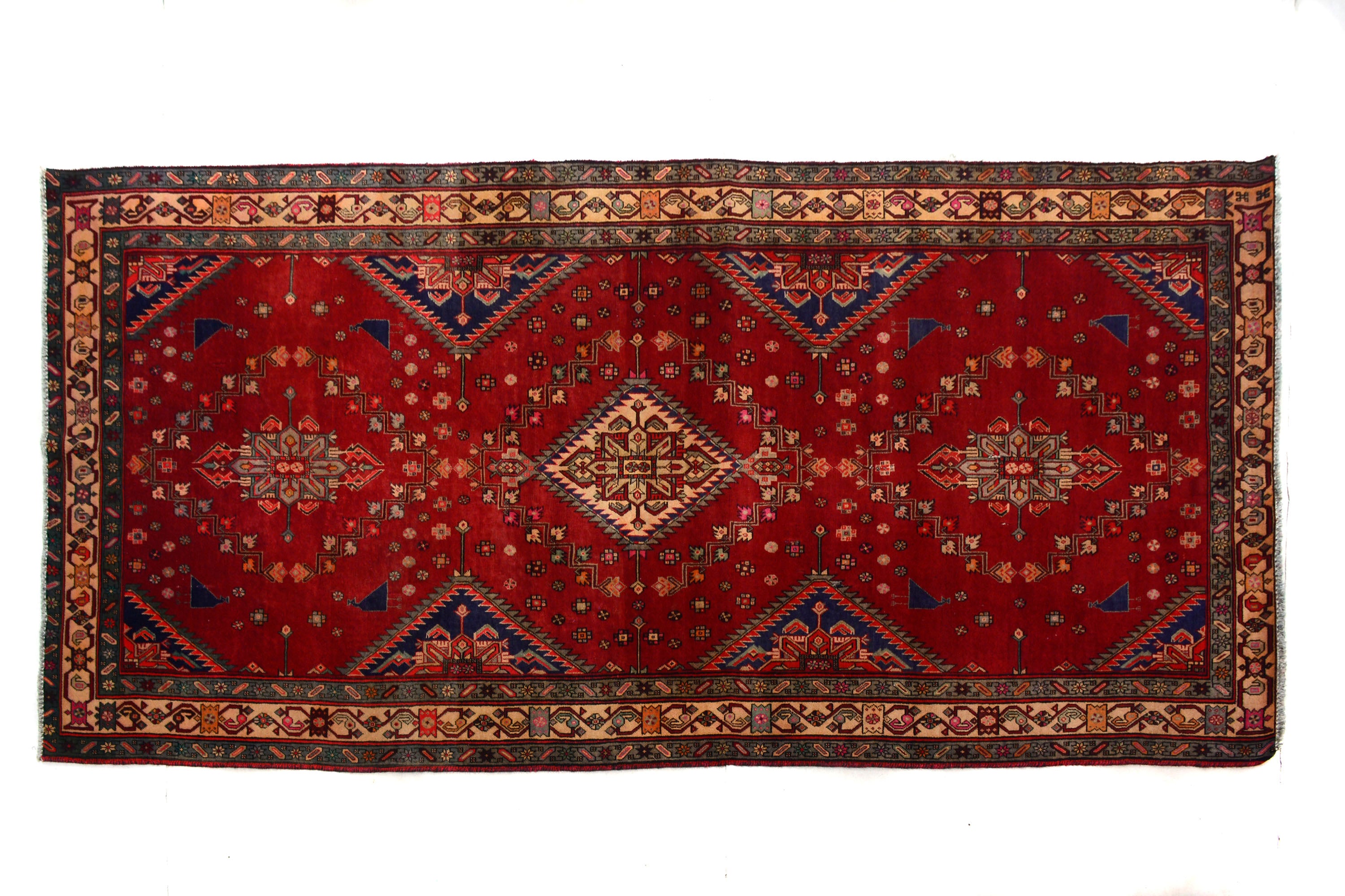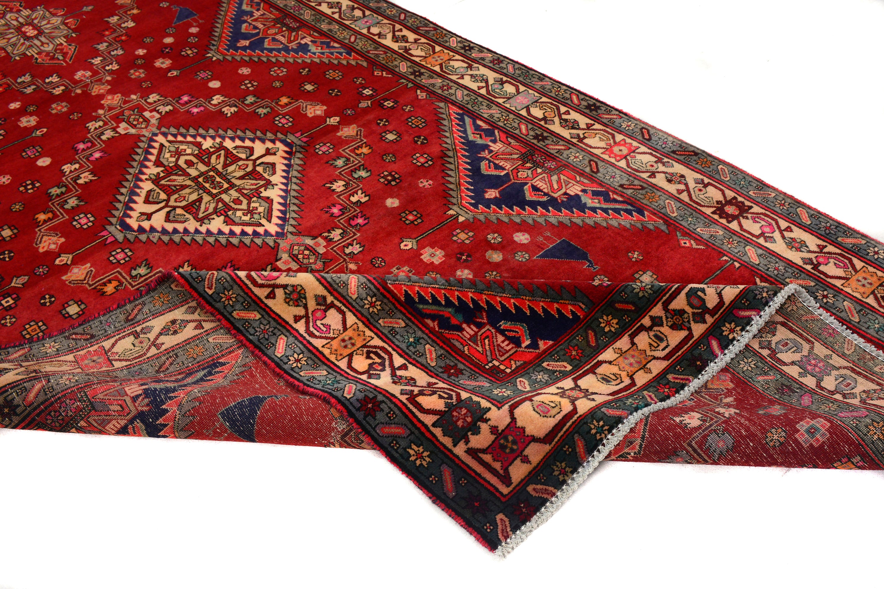 All vintage & antique rugs that we are selling were produced years ago with love by nomads and are treasures of the past. They have been professionally washed, cleaned and restored. Due to the vintage/antique nature of our rugs, there may be imperfections and signs of wear that enhance the feel and beauty of these rugs.