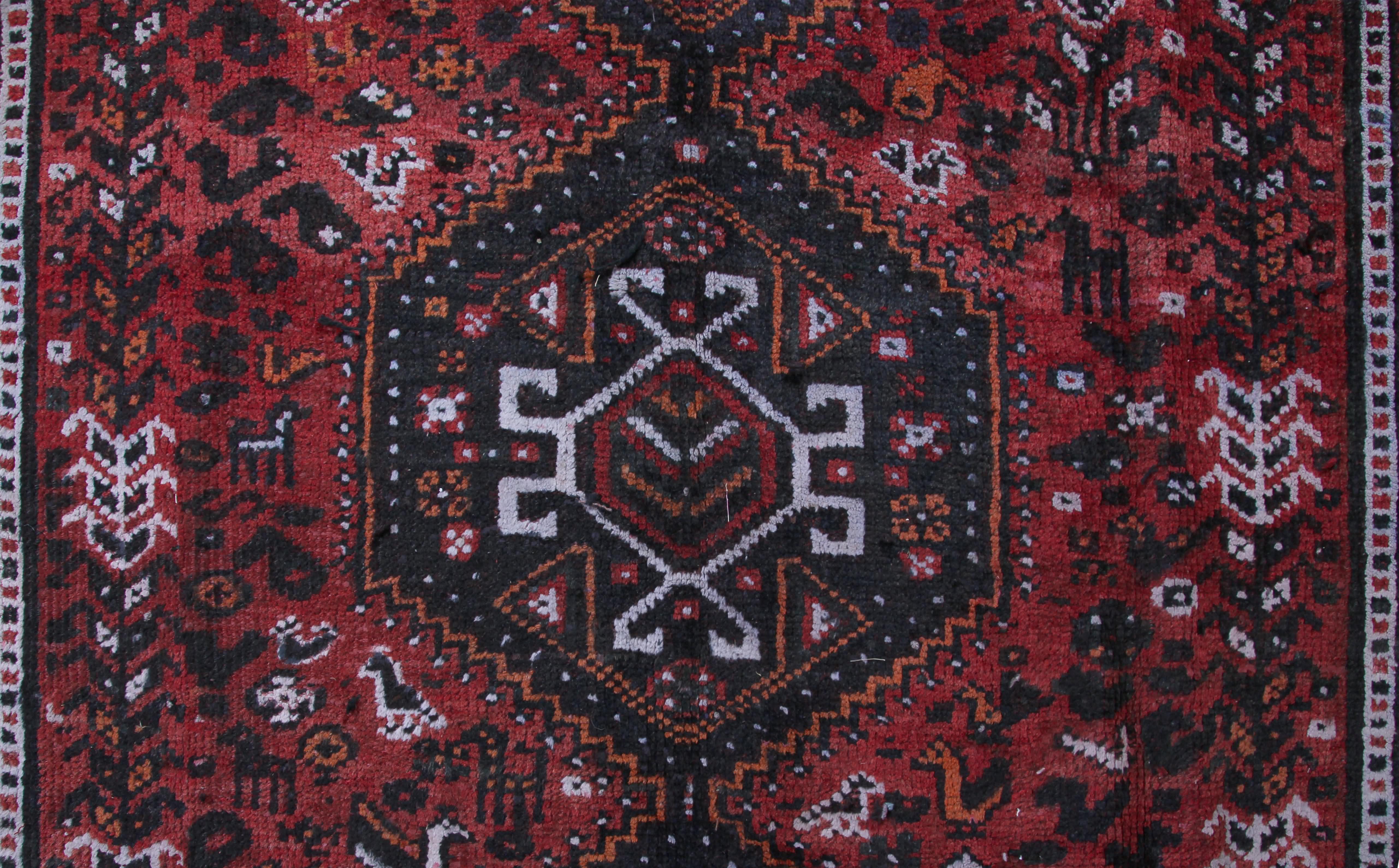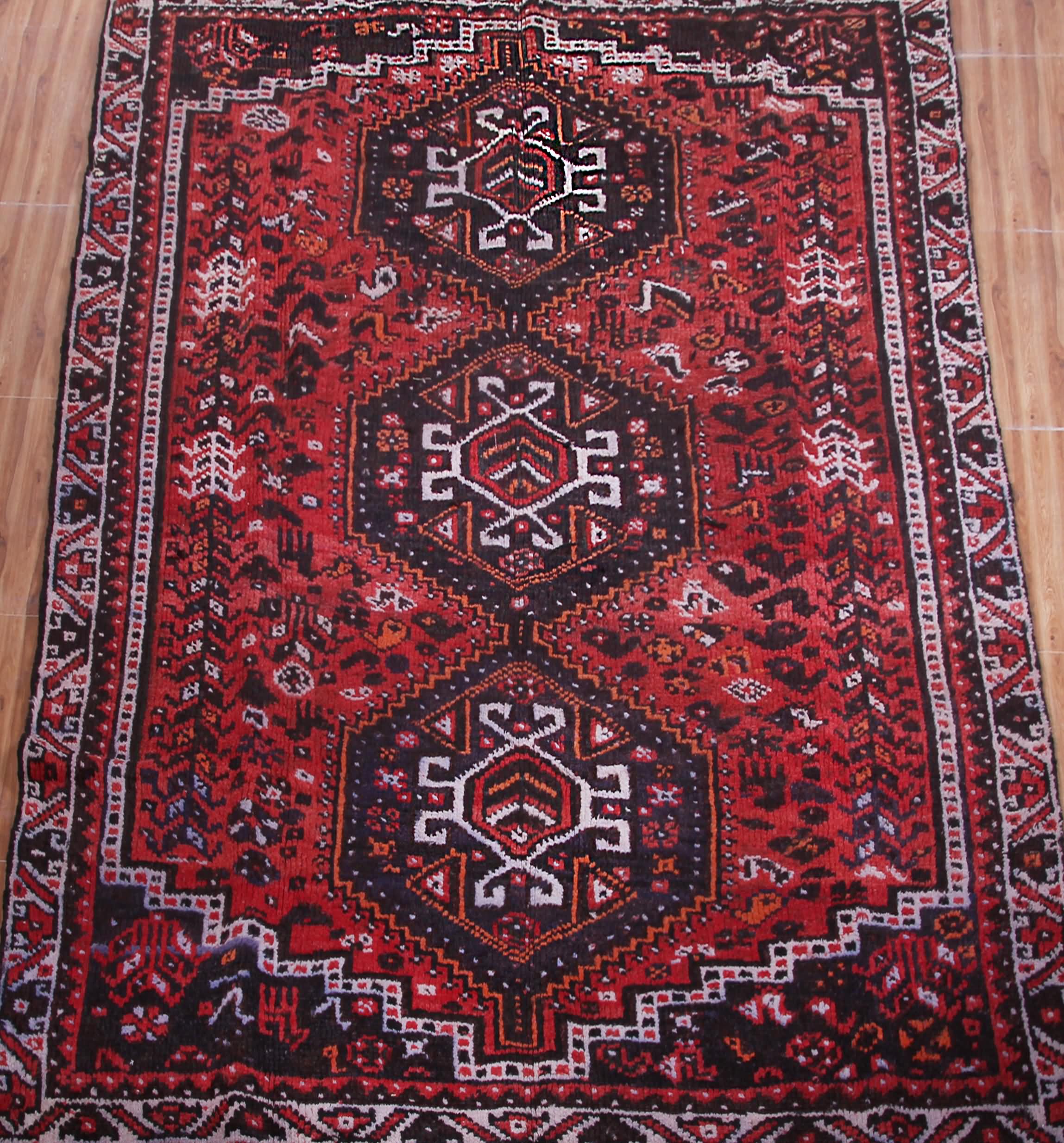 About Persian Shiraz Rug: This beautiful rug was hand-woven in Shiraz, located in the southern part of Iran. Shiraz rugs are woven on a cotton or wool foundation with a woollen pile. These nomadic rugs are geometrical in style, and extremely hard wearing with average knot count around 120 KPSI.