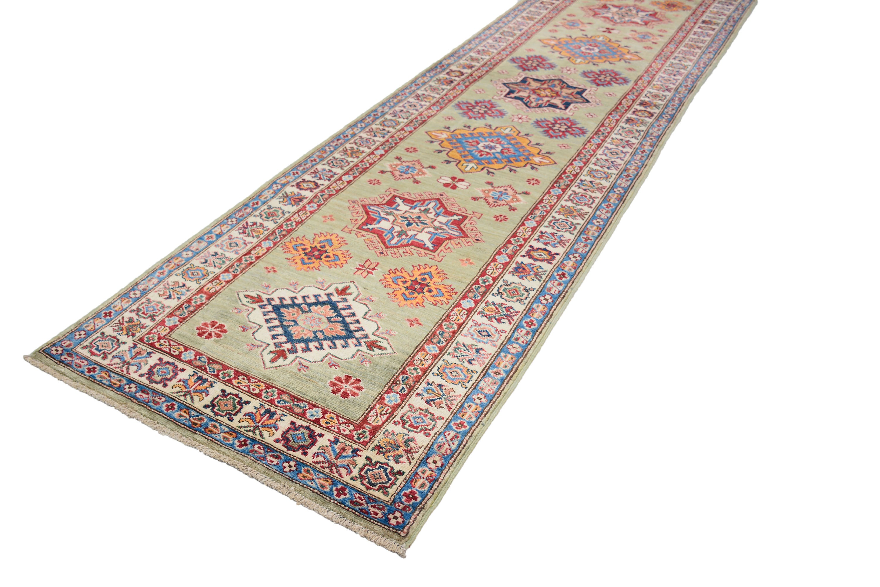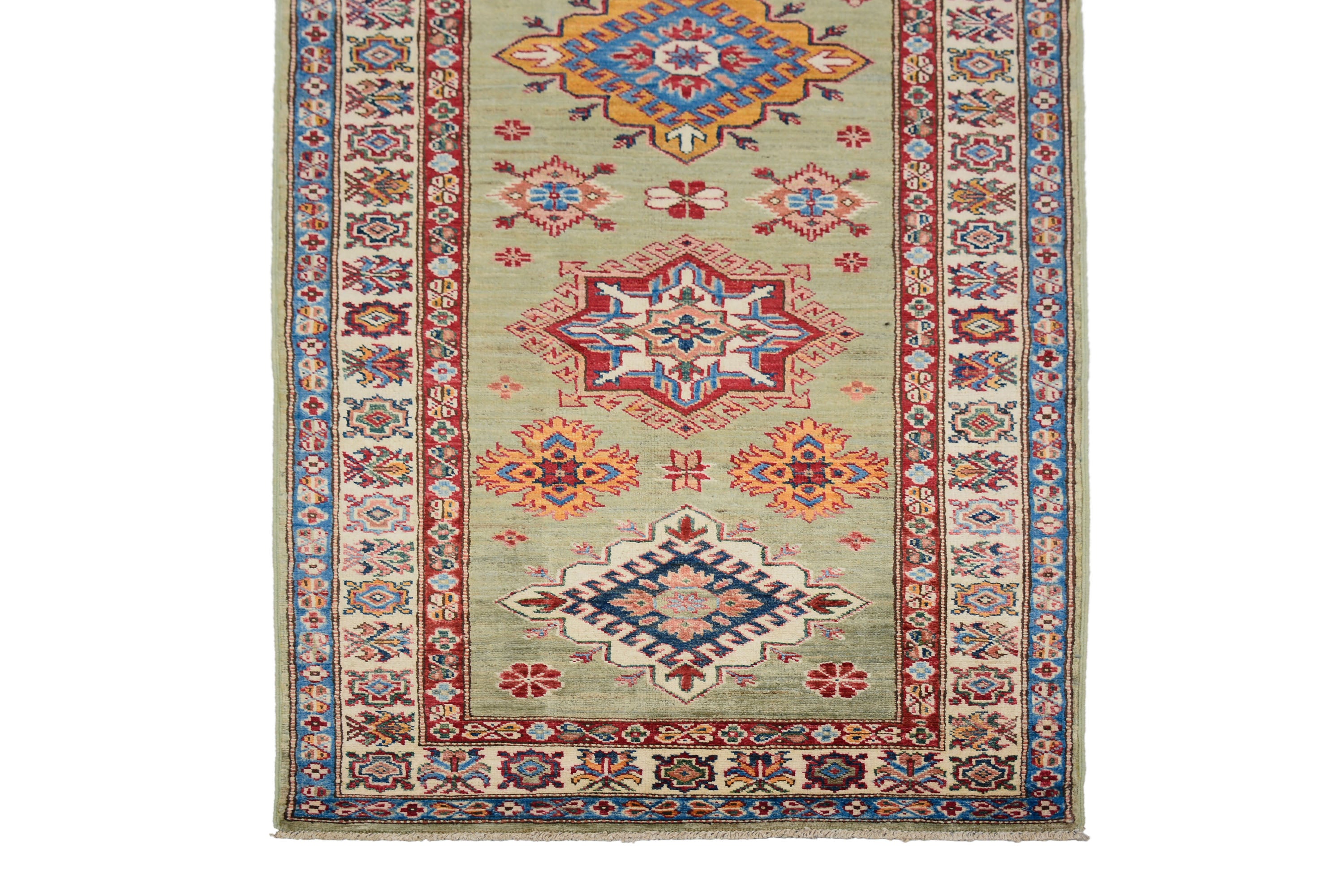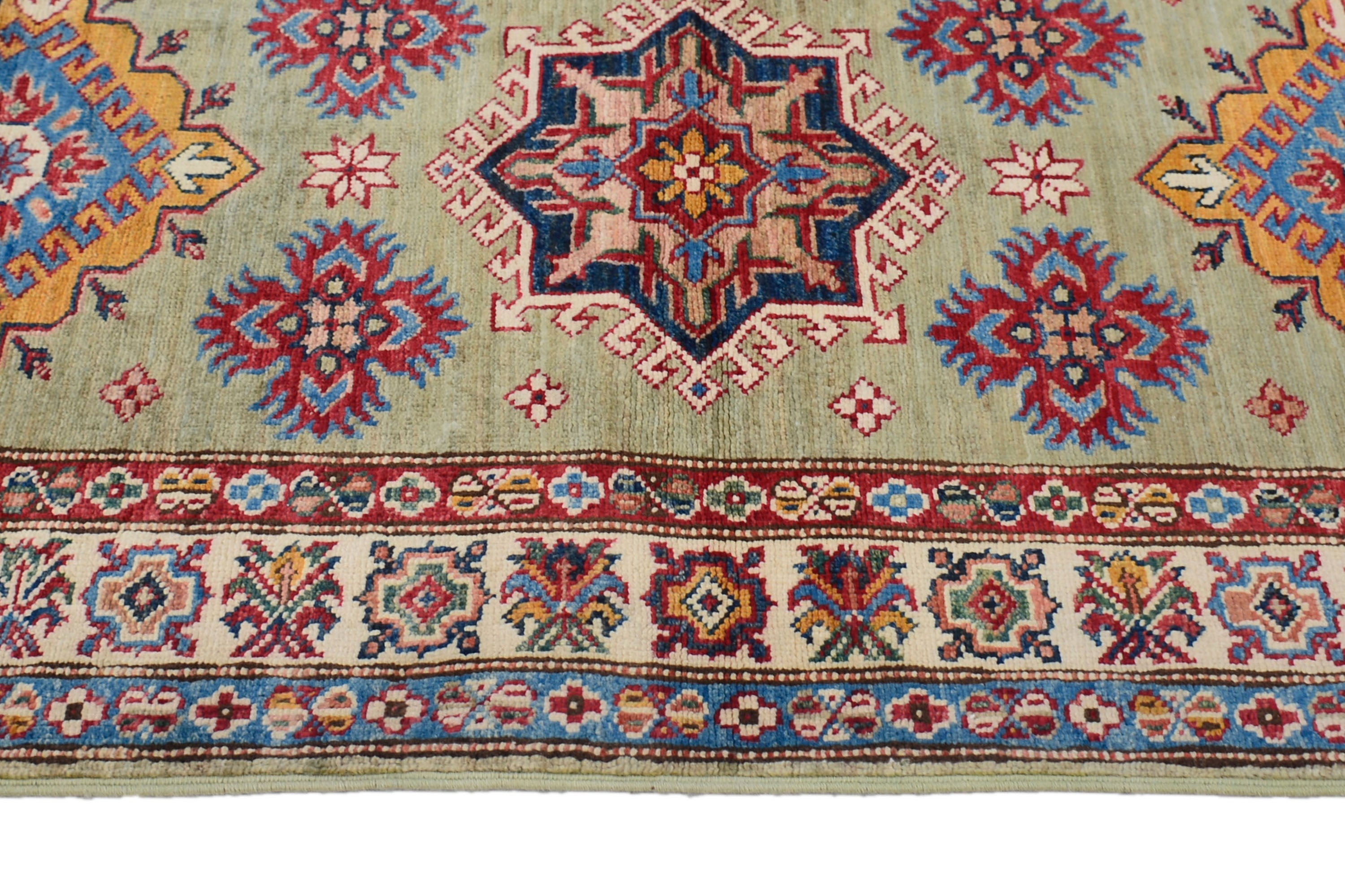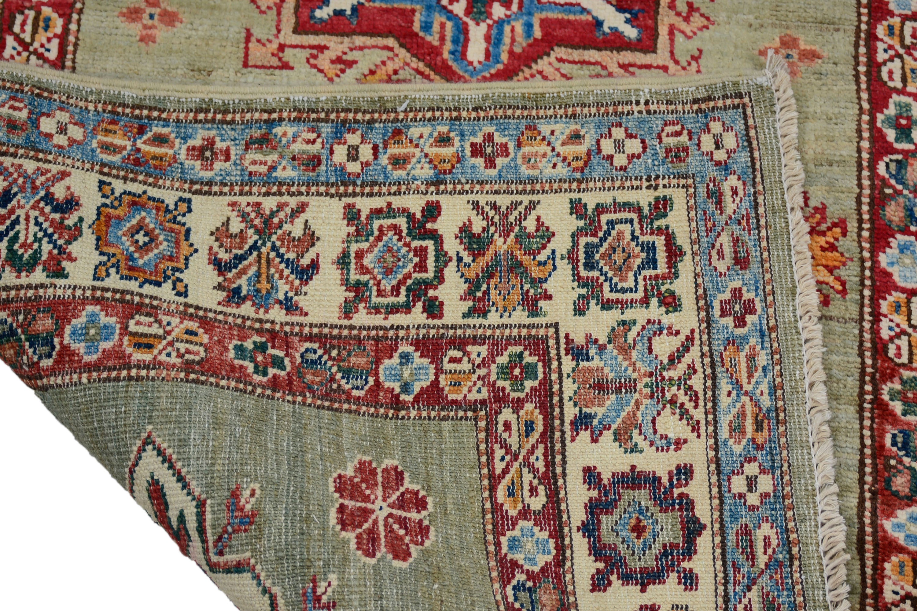 About Kazak Rug: Kazak rugs originated from the western area of the Caucasus and are now mainly made by Kazakhs in Afghanistan and Pakistan. Kazak rugs should not be confused with the state of Kazakstan. Kazak rugs, like many Caucasian designs, are dominated by highly stylized floral motifs. Kazak rugs are durable, with a relatively short pile, and easily fit into modern decor. Kazak rugs with unique geometric patterns, balanced colours and exceptional craftsmanship will create a captivating and culturally rich atmosphere in your space.