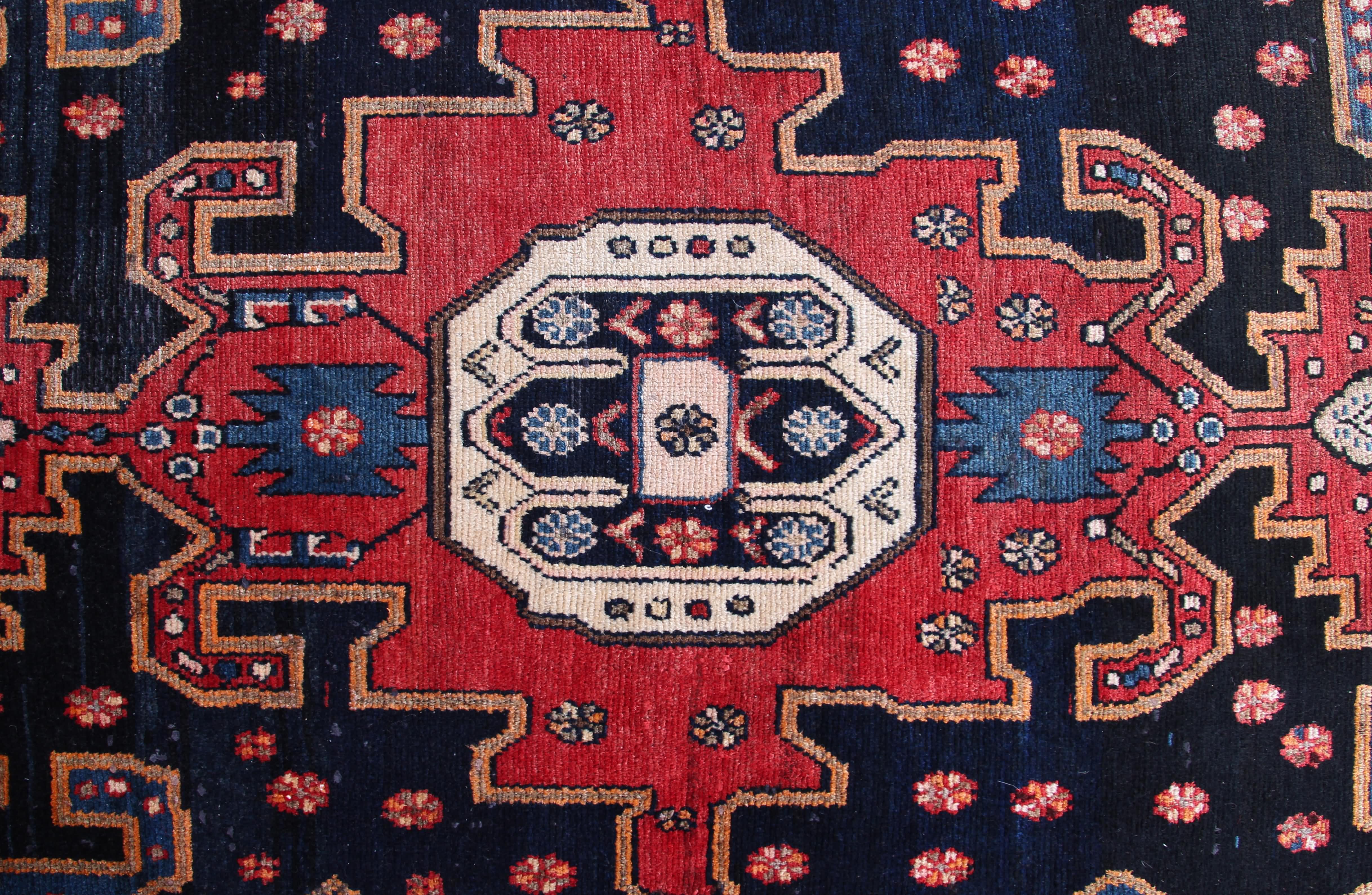 All vintage & antique rugs that we are selling were produced years ago with love by nomads and are treasures of the past. They have been professionally washed, cleaned and restored. Due to the vintage/antique nature of our rugs, there may be imperfections and signs of wear which rather enhance the feel and beauty of these rugs.