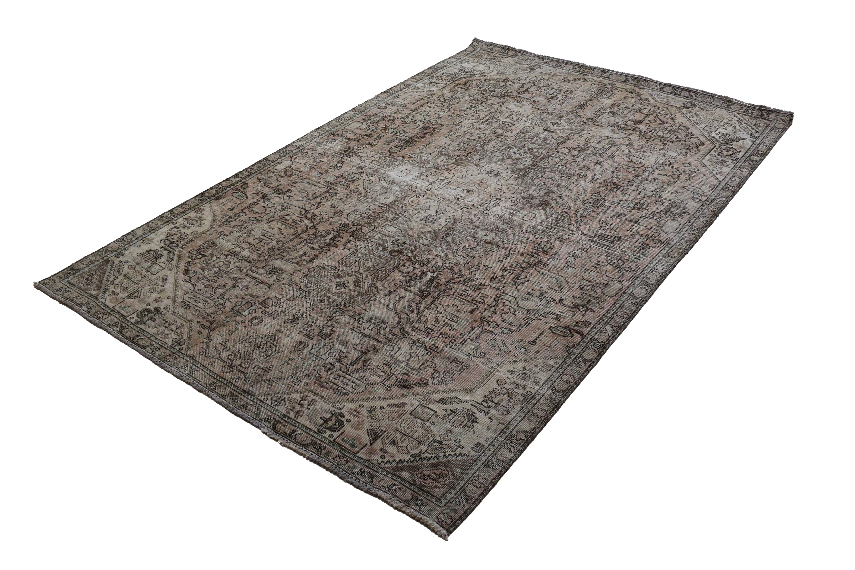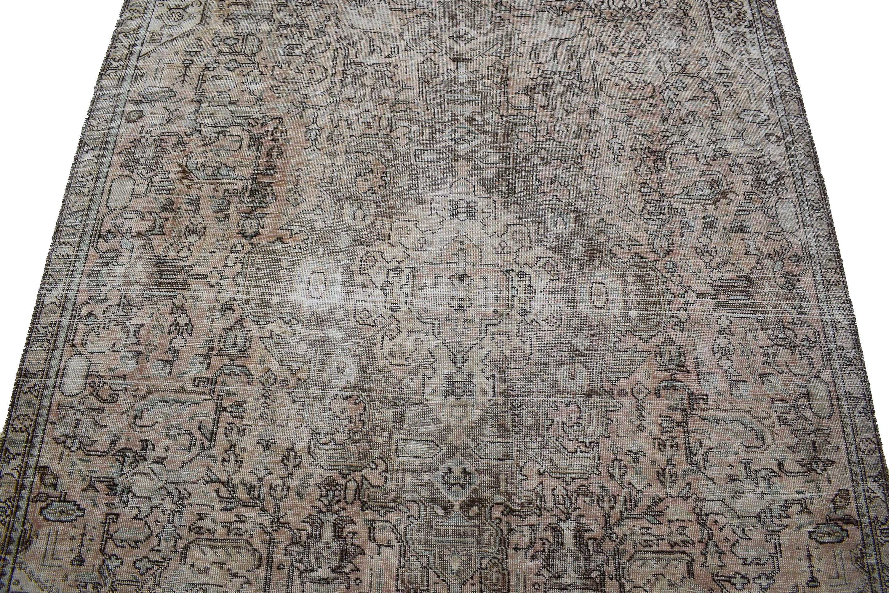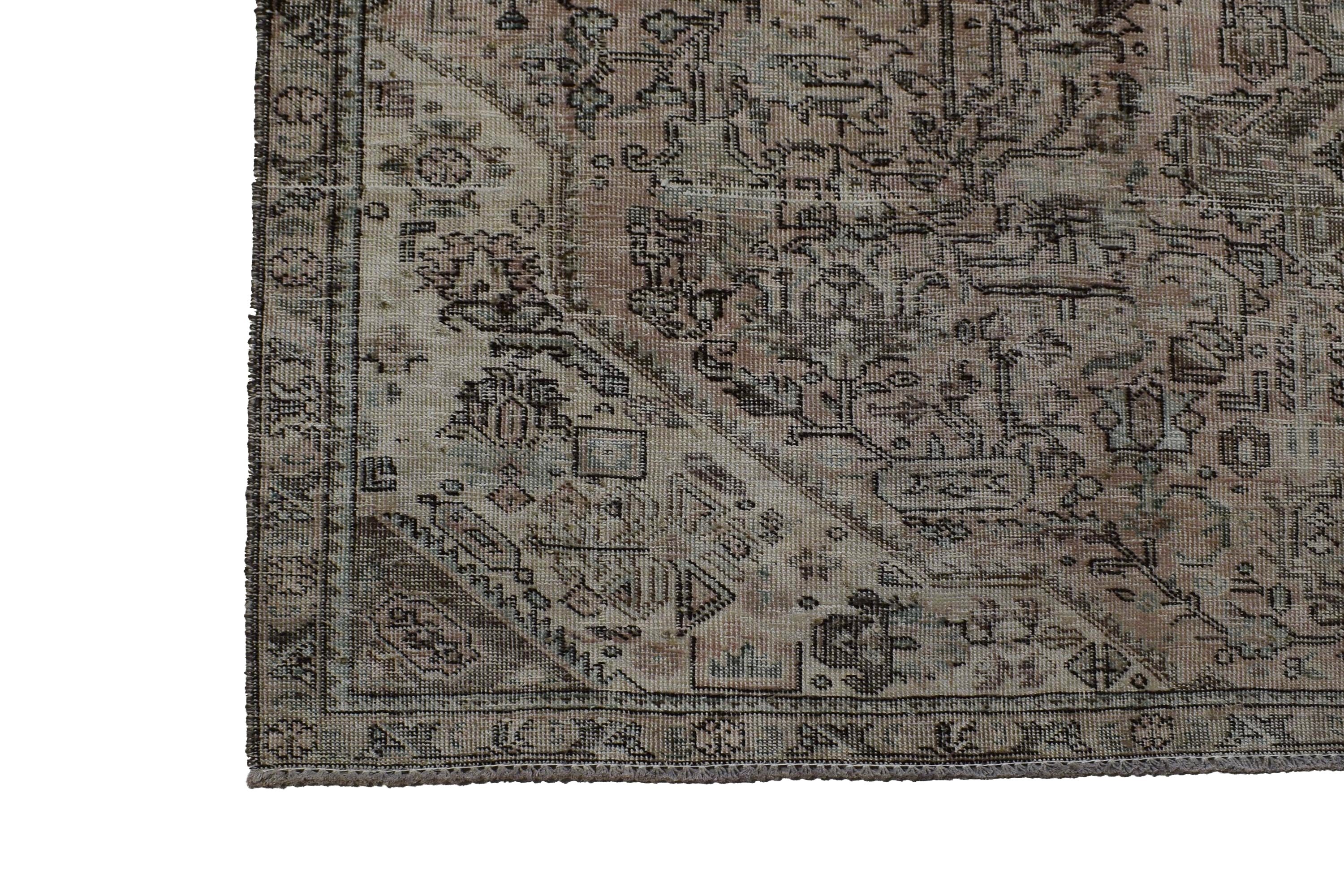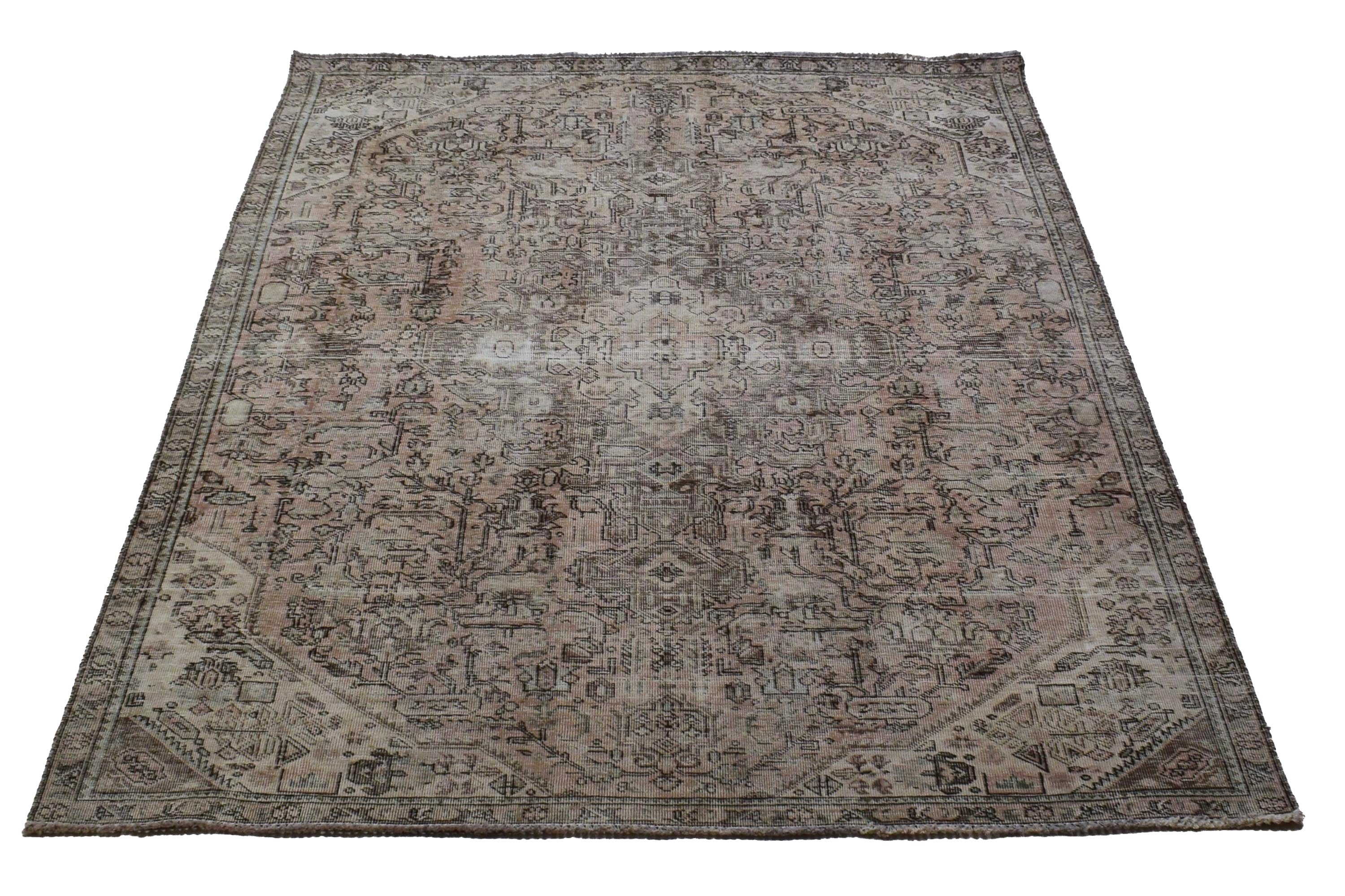 About Distressed Rug: This beautiful rug was hand-woven in 1970's in Tabriz, Iran. Later, this vintage rug has been shaved down to a lower pile to make it a faded rug on purpose. Distressed Rugs represent a trend that has achieved a crossover between fashion and home décor. This new look celebrates rugs that are faded, and worn over time; rugs that nestle into homes as if they’ve always been there. Distressed rugs are shaved rugs so they do not have a soft pile.