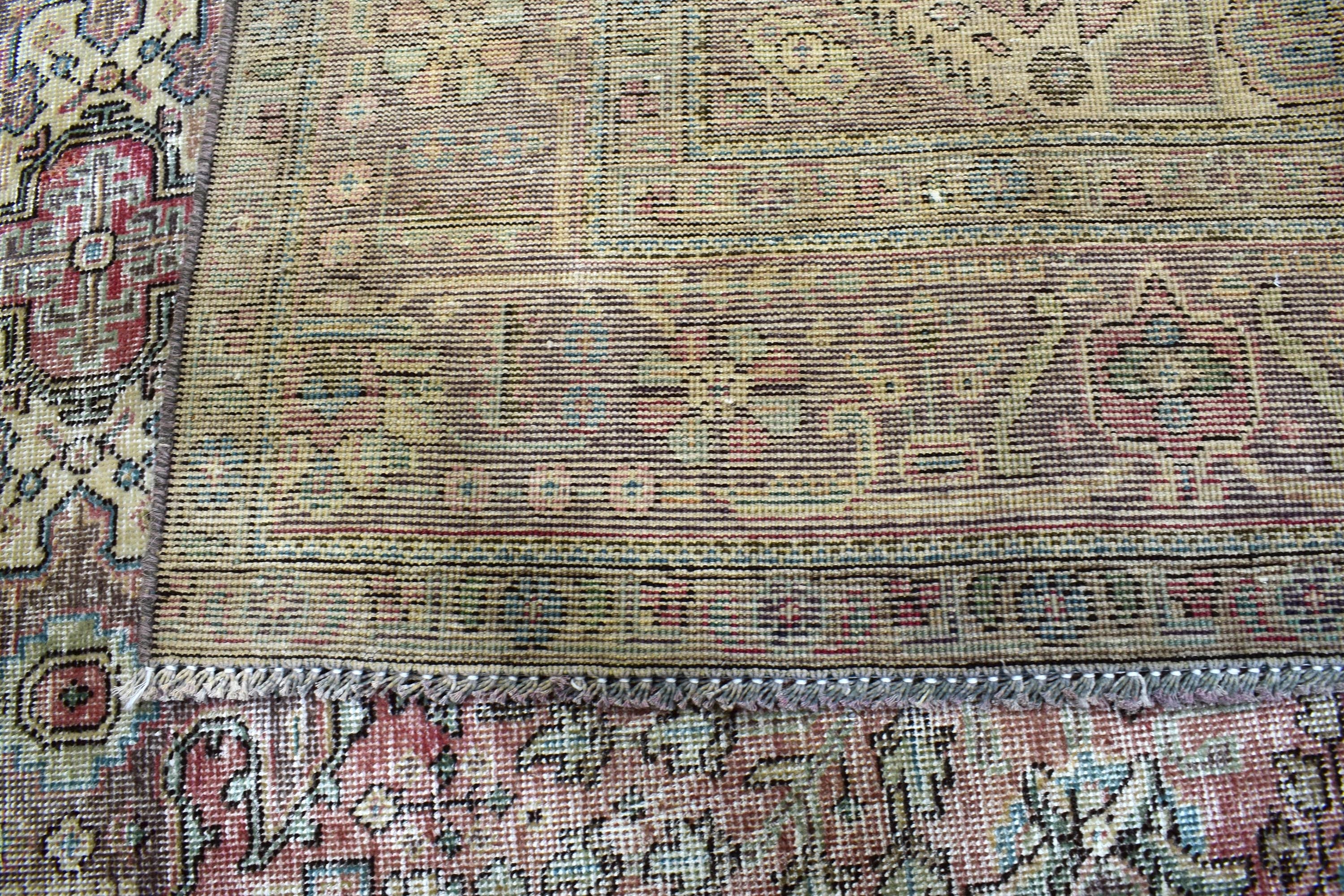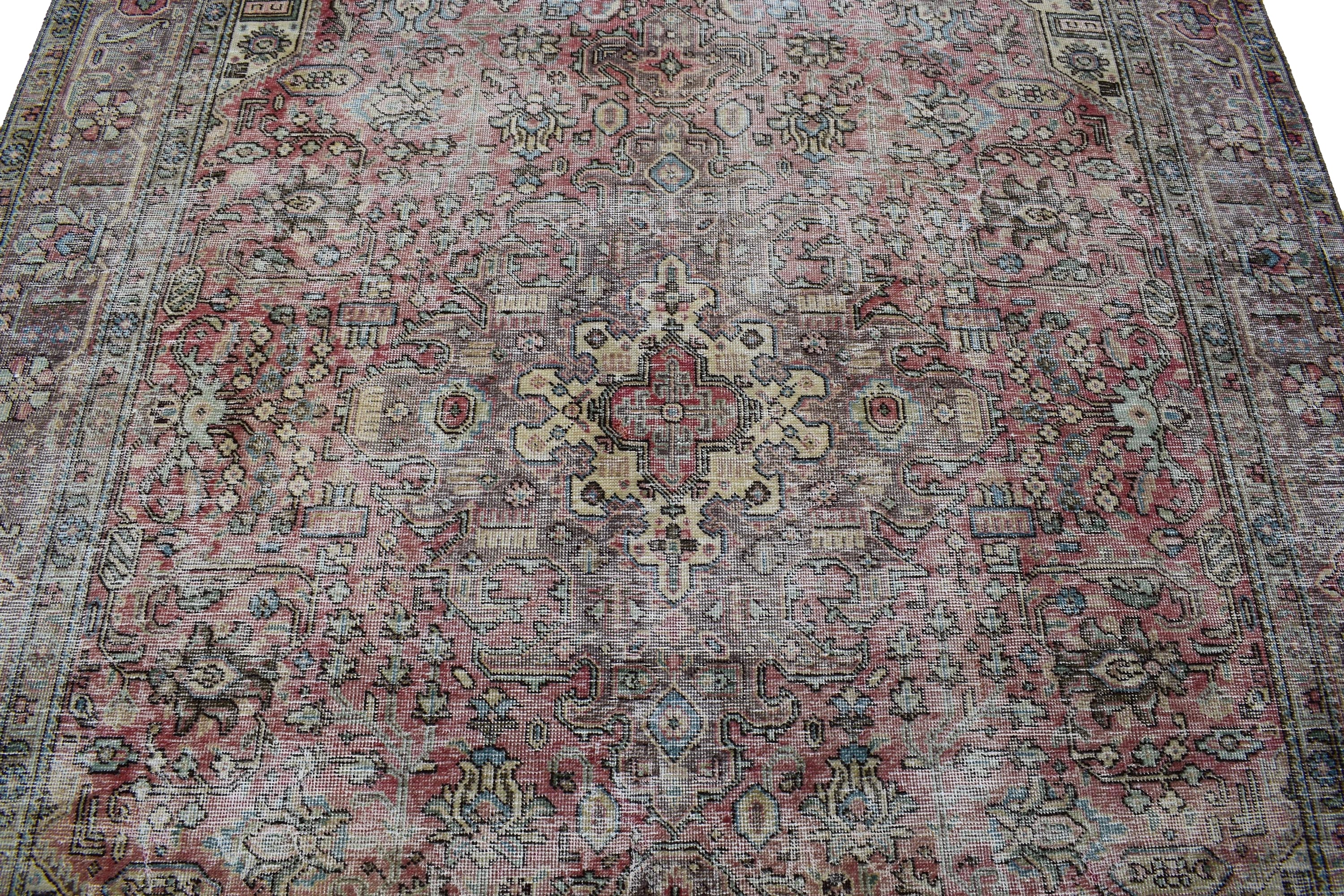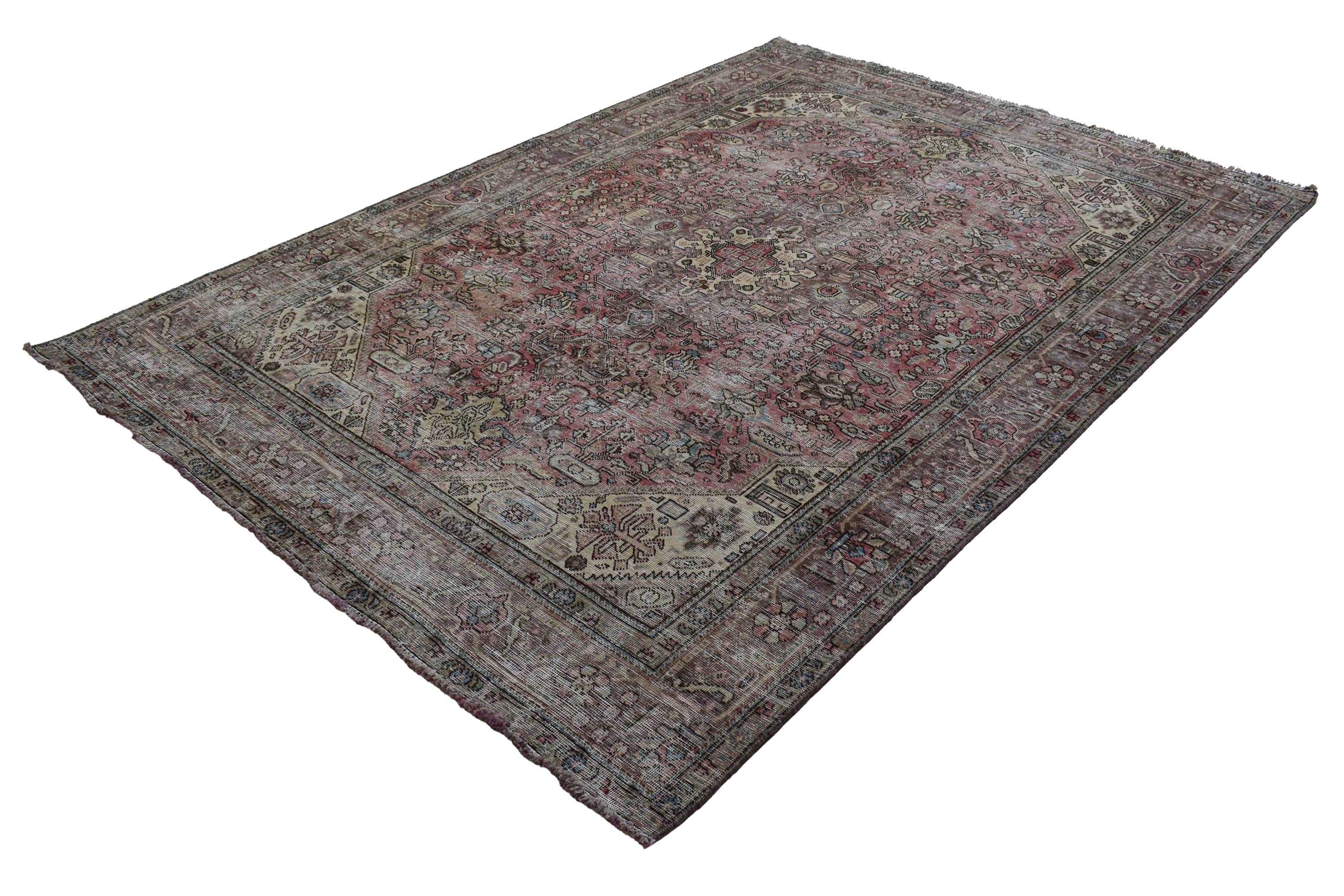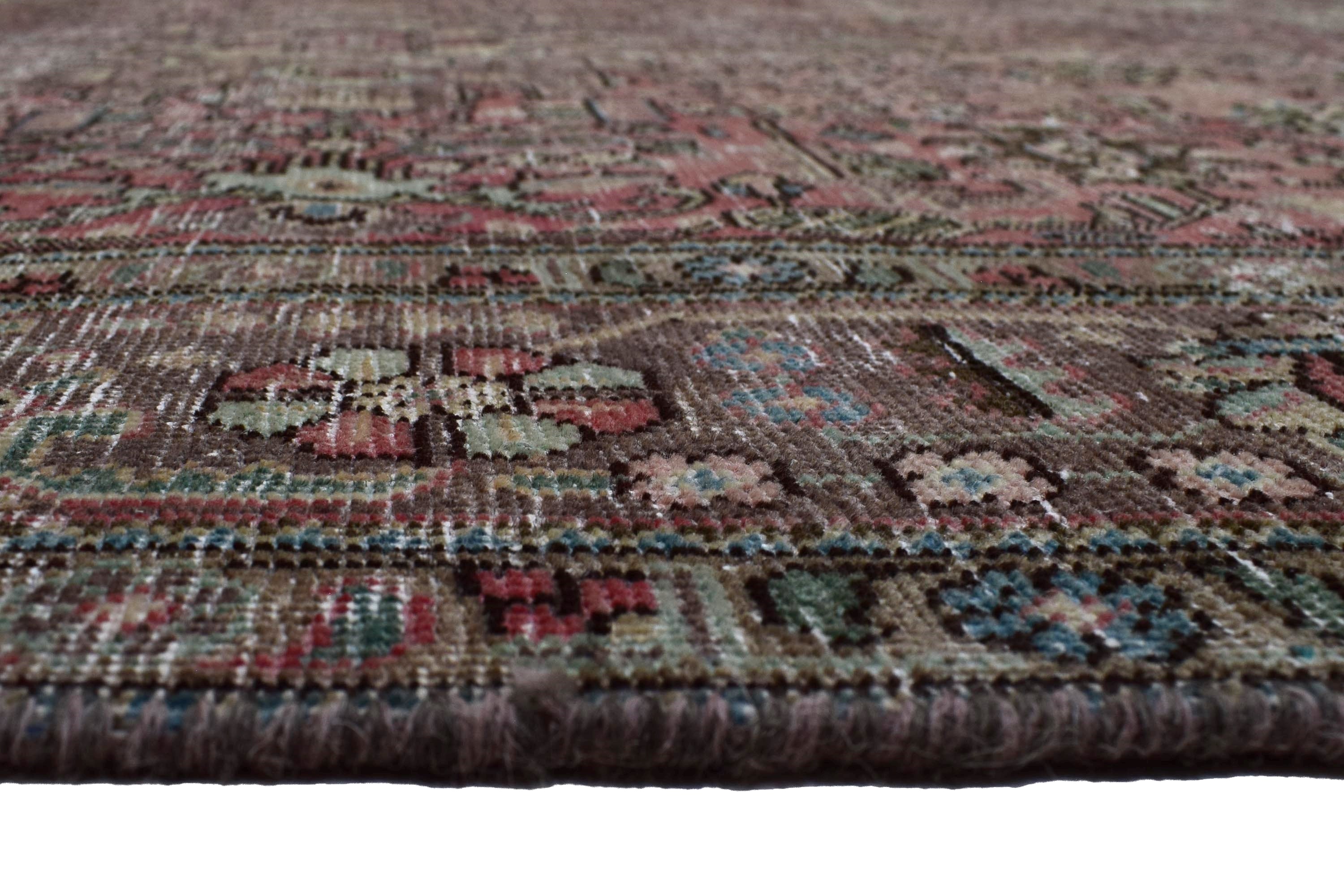 About Distressed Rug: This beautiful rug was hand-woven in 1970's in Tabriz, Iran. Later, this vintage rug has been shaved down to a lower pile to make it a faded rug on purpose. Distressed Rugs represent a trend that has achieved a crossover between fashion and home décor. This new look celebrates rugs that are faded, and worn over time; rugs that nestle into homes as if they’ve always been there. Distressed rugs are shaved rugs so they do not have a soft pile.