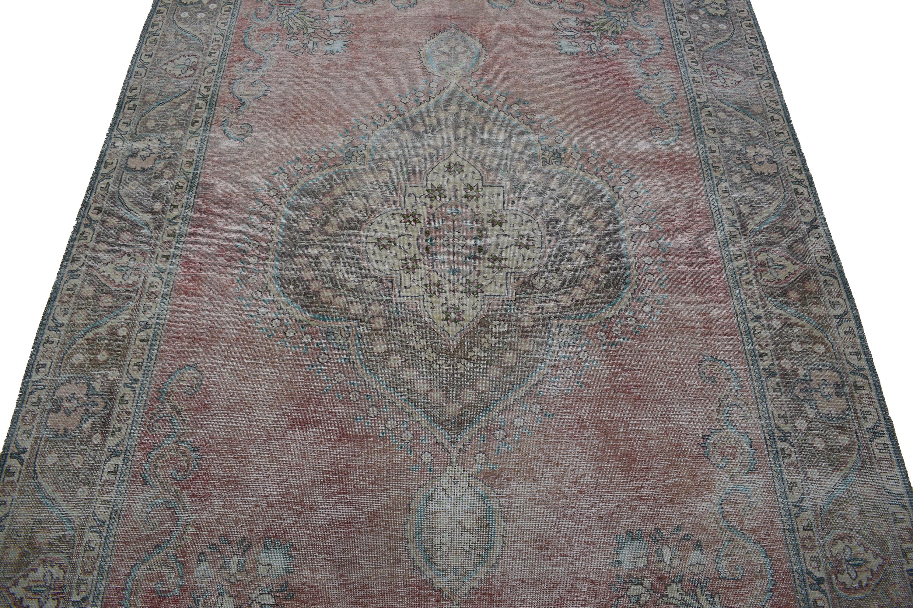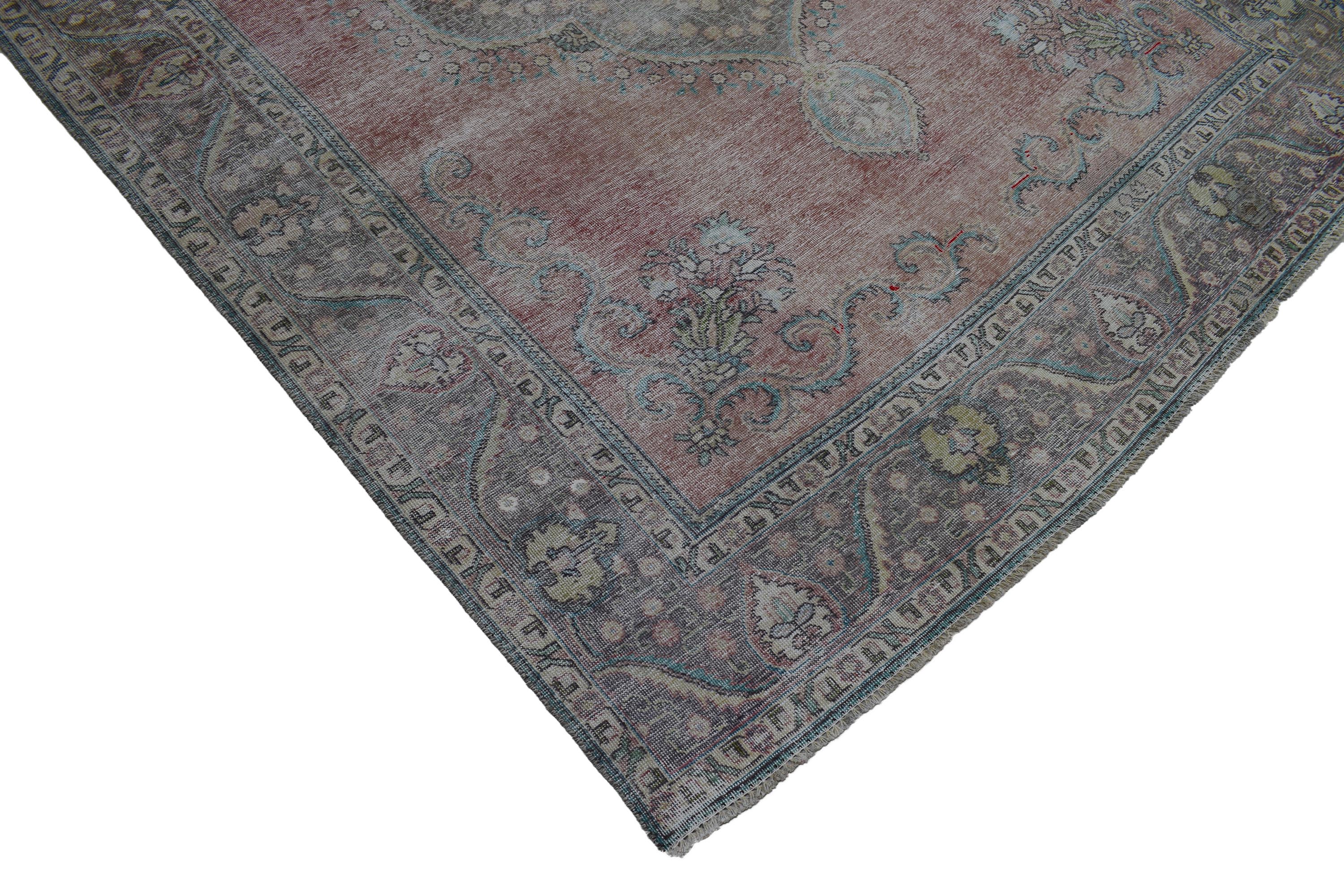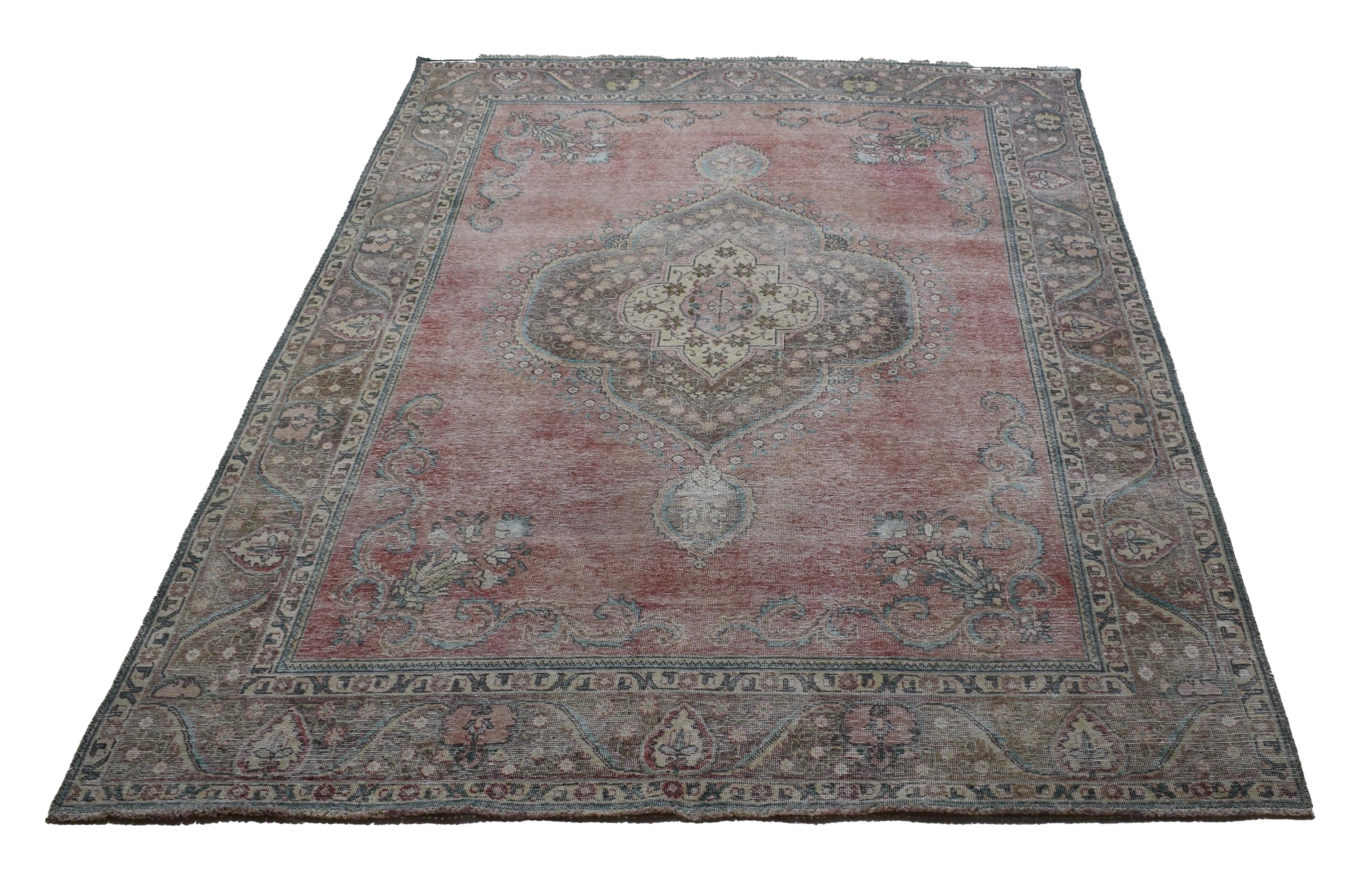 About Distressed Rug: This beautiful rug was hand-woven in 1970's in Tabriz, Iran. Later, this vintage rug has been shaved down to a lower pile to make it a faded rug on purpose. Distressed Rugs represent a trend that has achieved a crossover between fashion and home décor. This new look celebrates rugs that are faded, and worn over time; rugs that nestle into homes as if they’ve always been there. Distressed rugs are shaved rugs so they do not have a soft pile.