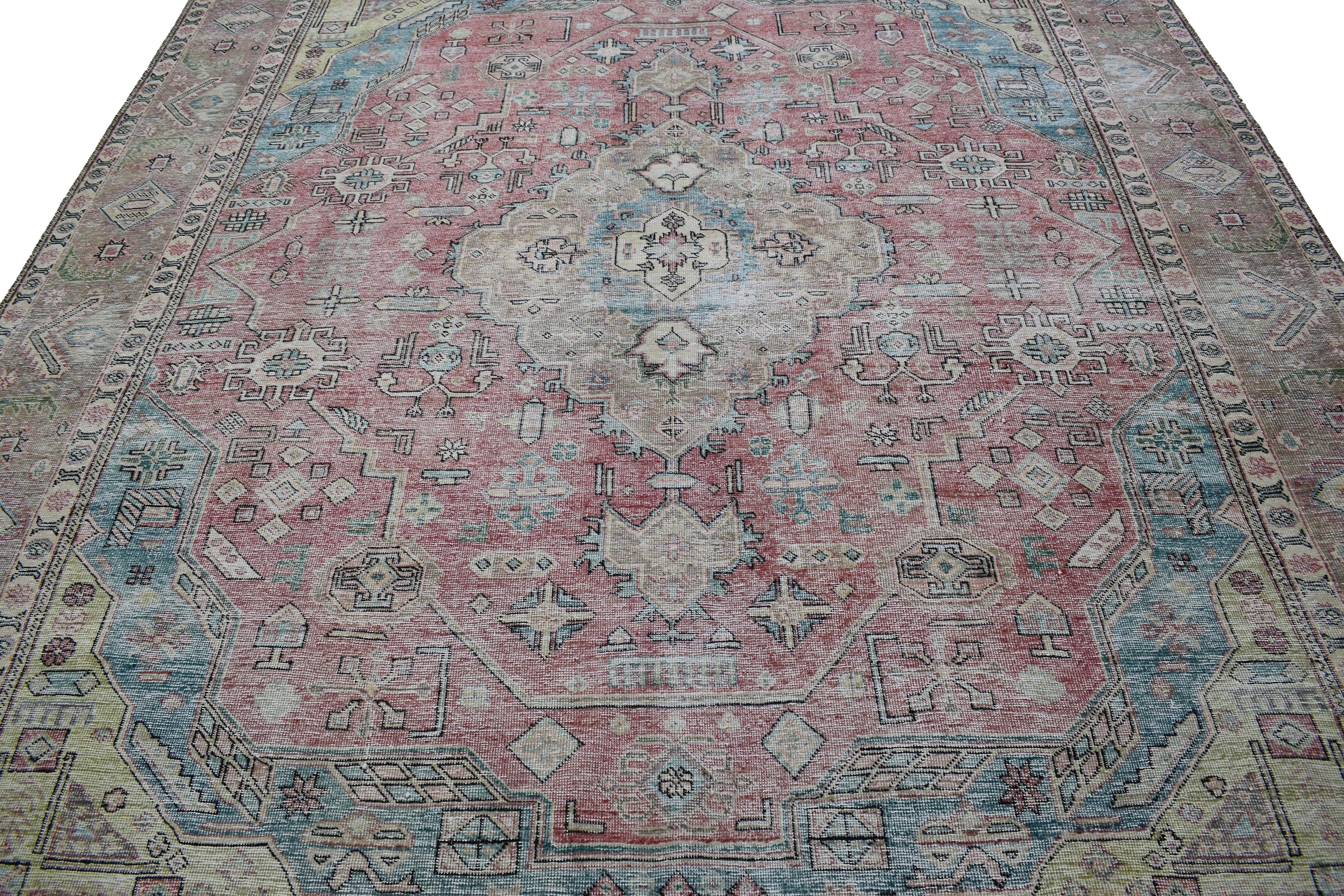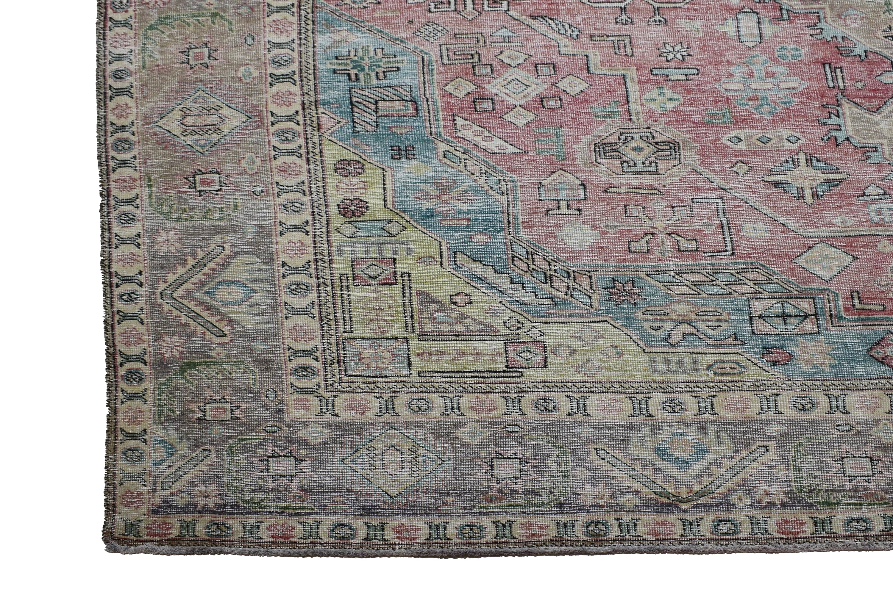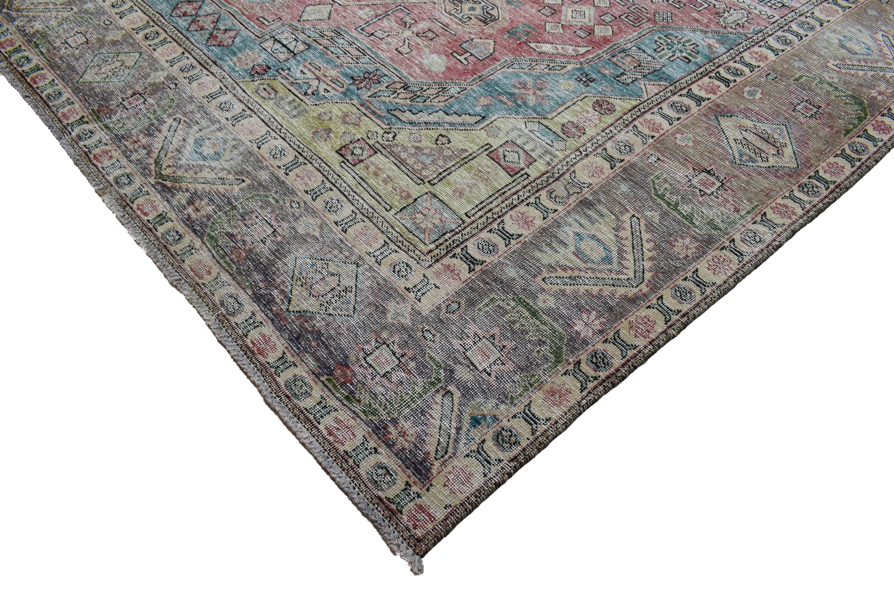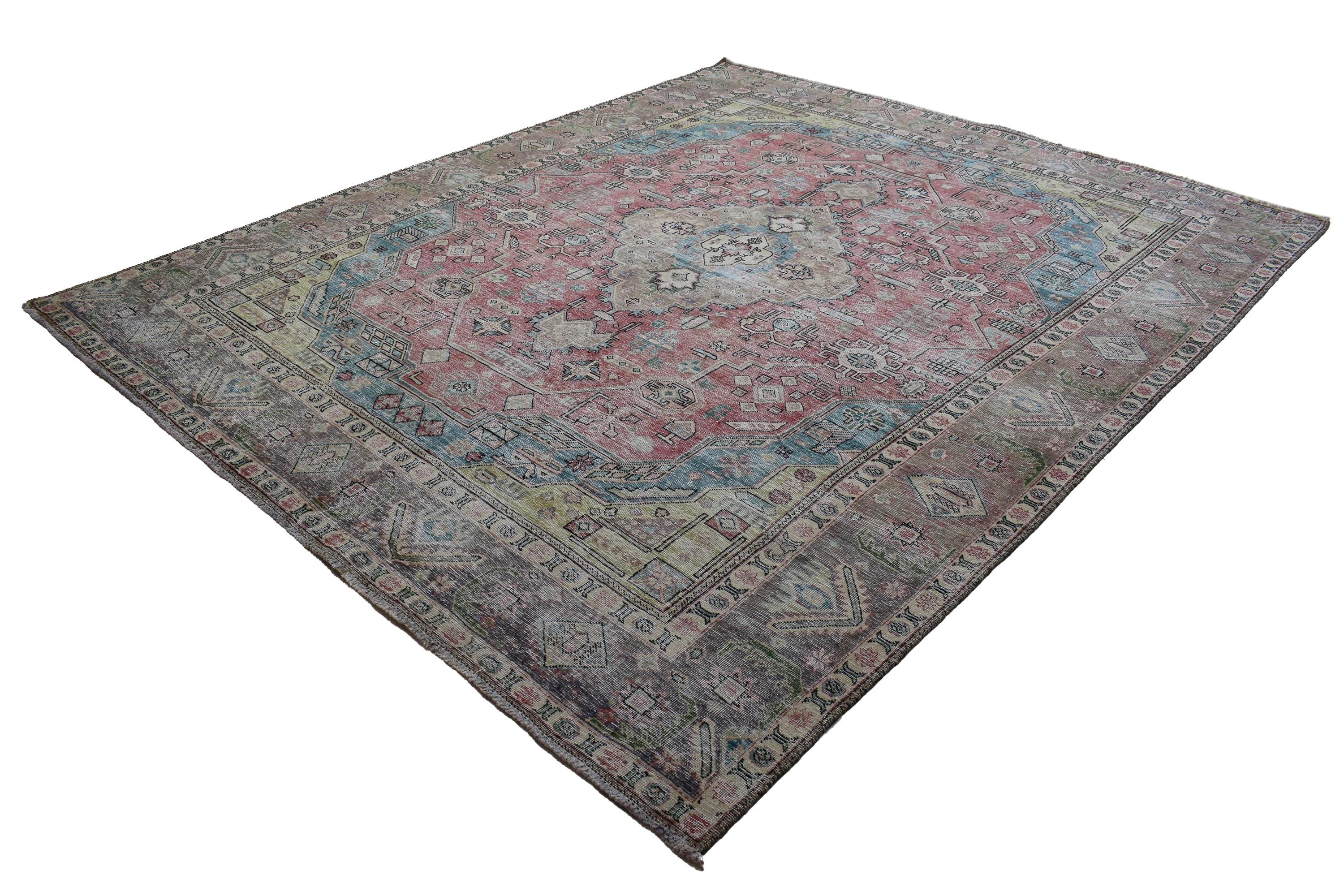 About Distressed Rug: This beautiful rug was hand-woven in 1970's in Tabriz, Iran. Later, this vintage rug has been shaved down to a lower pile to make it a faded rug on purpose. Distressed Rugs represent a trend that has achieved a crossover between fashion and home décor. This new look celebrates rugs that are faded, and worn over time; rugs that nestle into homes as if they’ve always been there. Distressed rugs are shaved rugs so they do not have a soft pile.