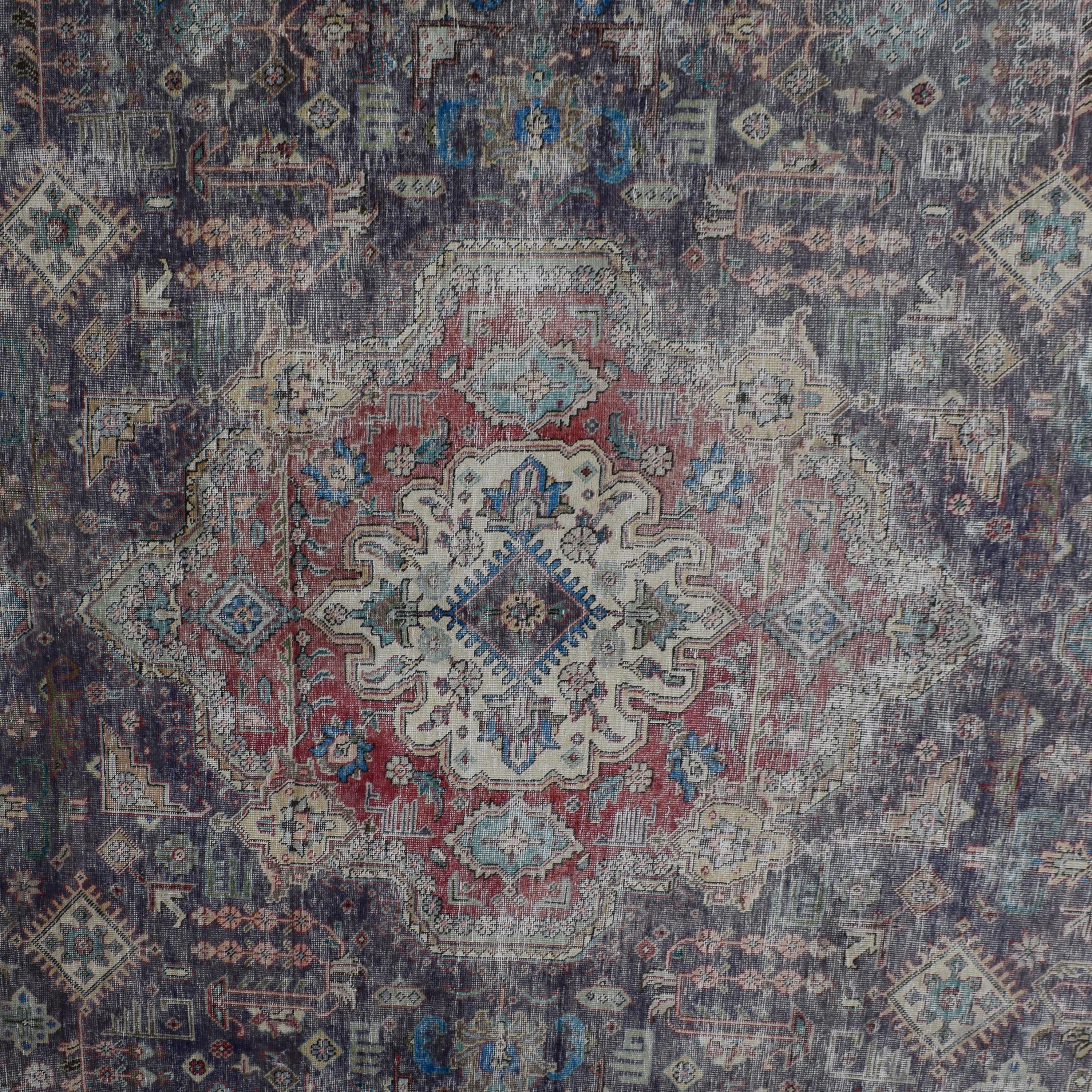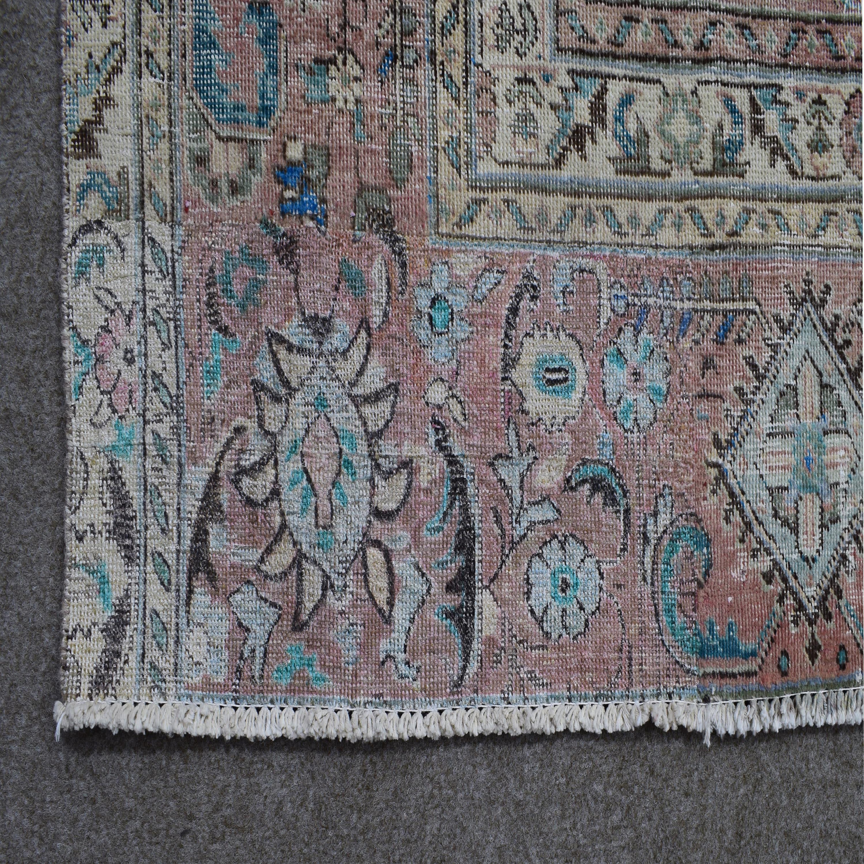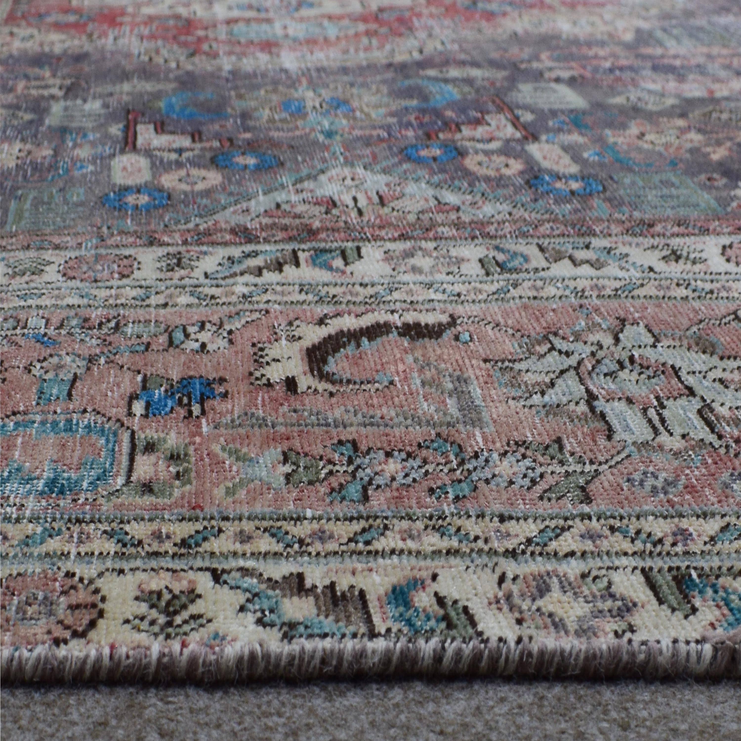 About Distressed Rug: This beautiful rug was hand-woven in 1970's in Tabriz, Iran. Later, this vintage rug has been shaved down to a lower pile to make it a faded rug on purpose. Distressed Rugs represent a trend that has achieved a crossover between fashion and home décor. This new look celebrates rugs that are faded, and worn over time; rugs that nestle into homes as if they’ve always been there. Distressed rugs are shaved rugs so they do not have a soft pile.
