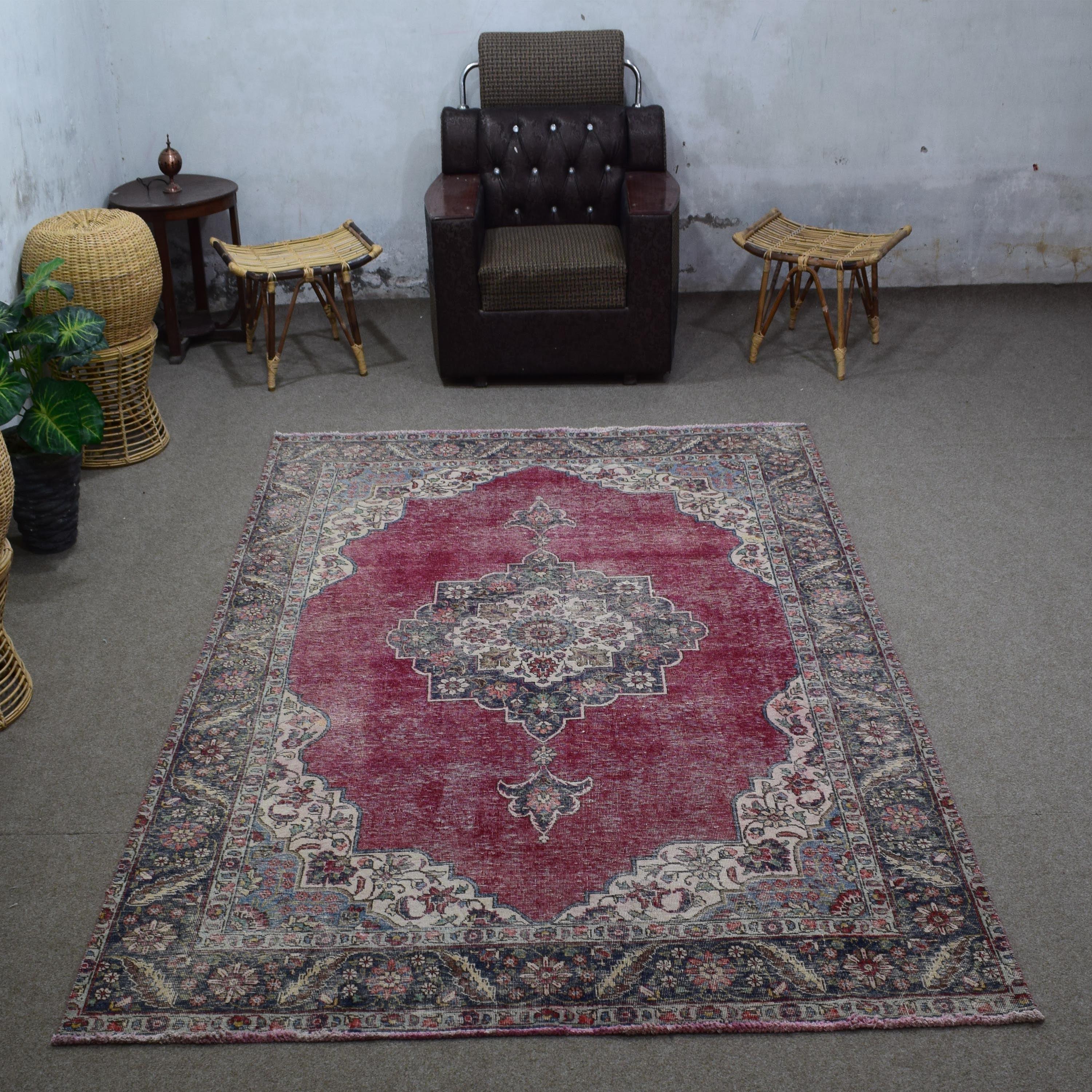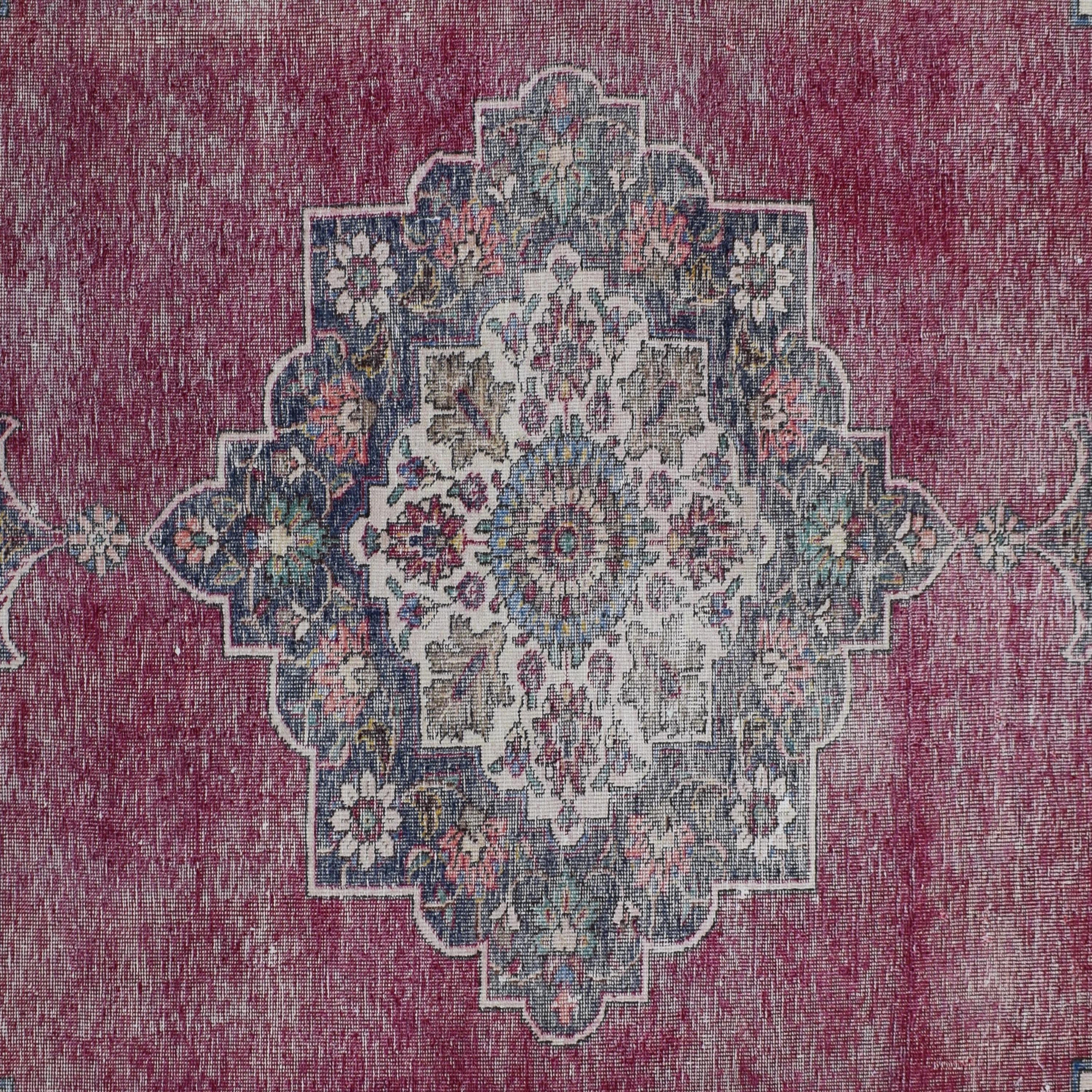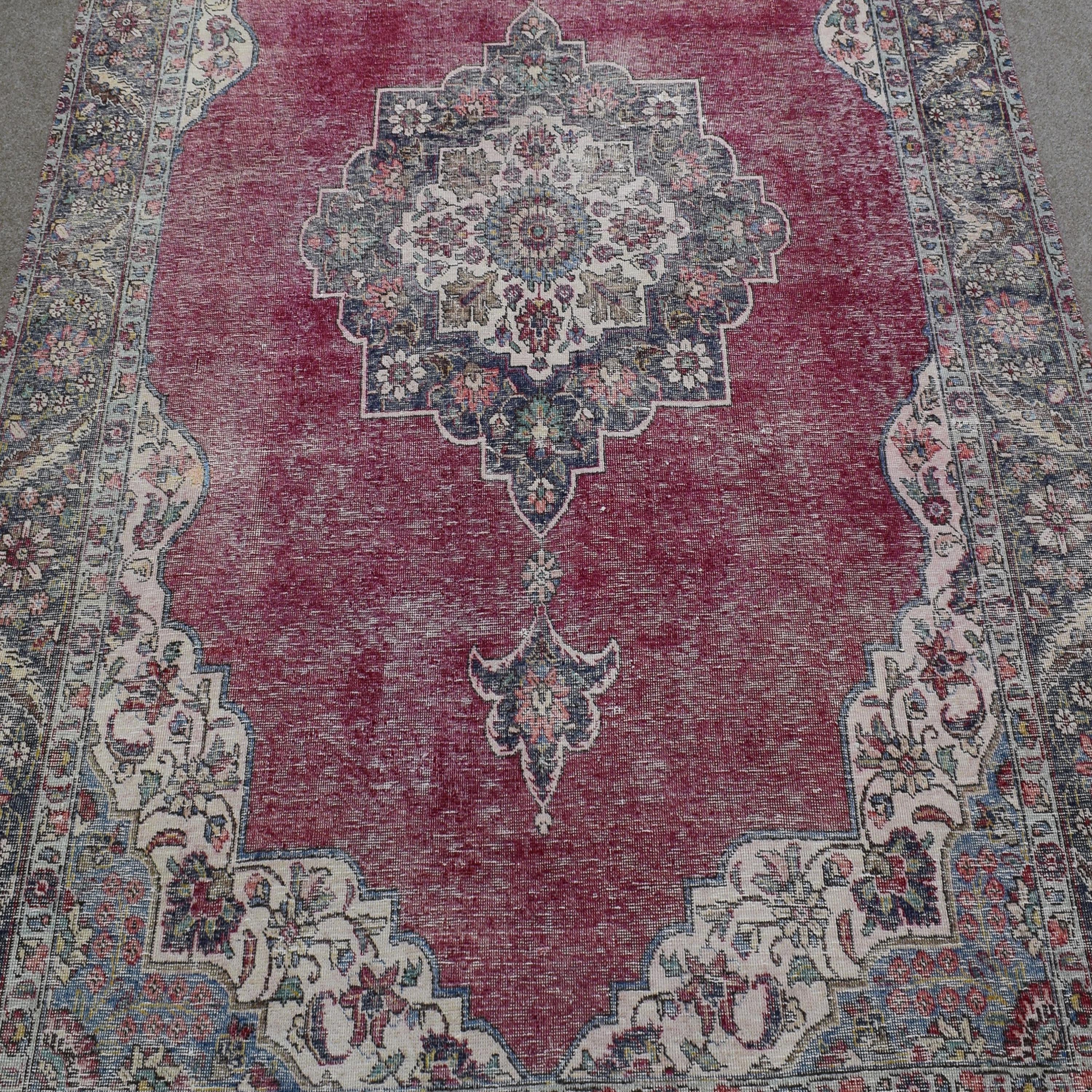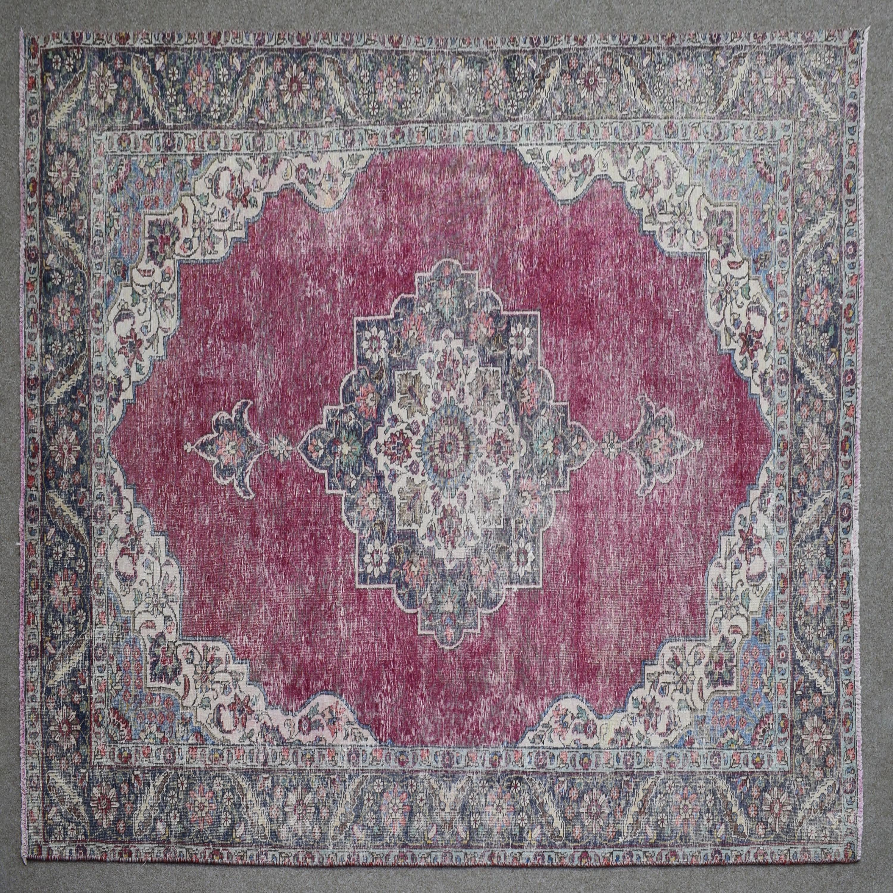 About Distressed Rug: This beautiful rug was hand-woven in 1970's in Tabriz, Iran. Later, this vintage rug has been shaved down to a lower pile to make it a faded rug on purpose. Distressed Rugs represent a trend that has achieved a crossover between fashion and home décor. This new look celebrates rugs that are faded, and worn over time; rugs that nestle into homes as if they’ve always been there. Distressed rugs are shaved rugs so they do not have a soft pile.