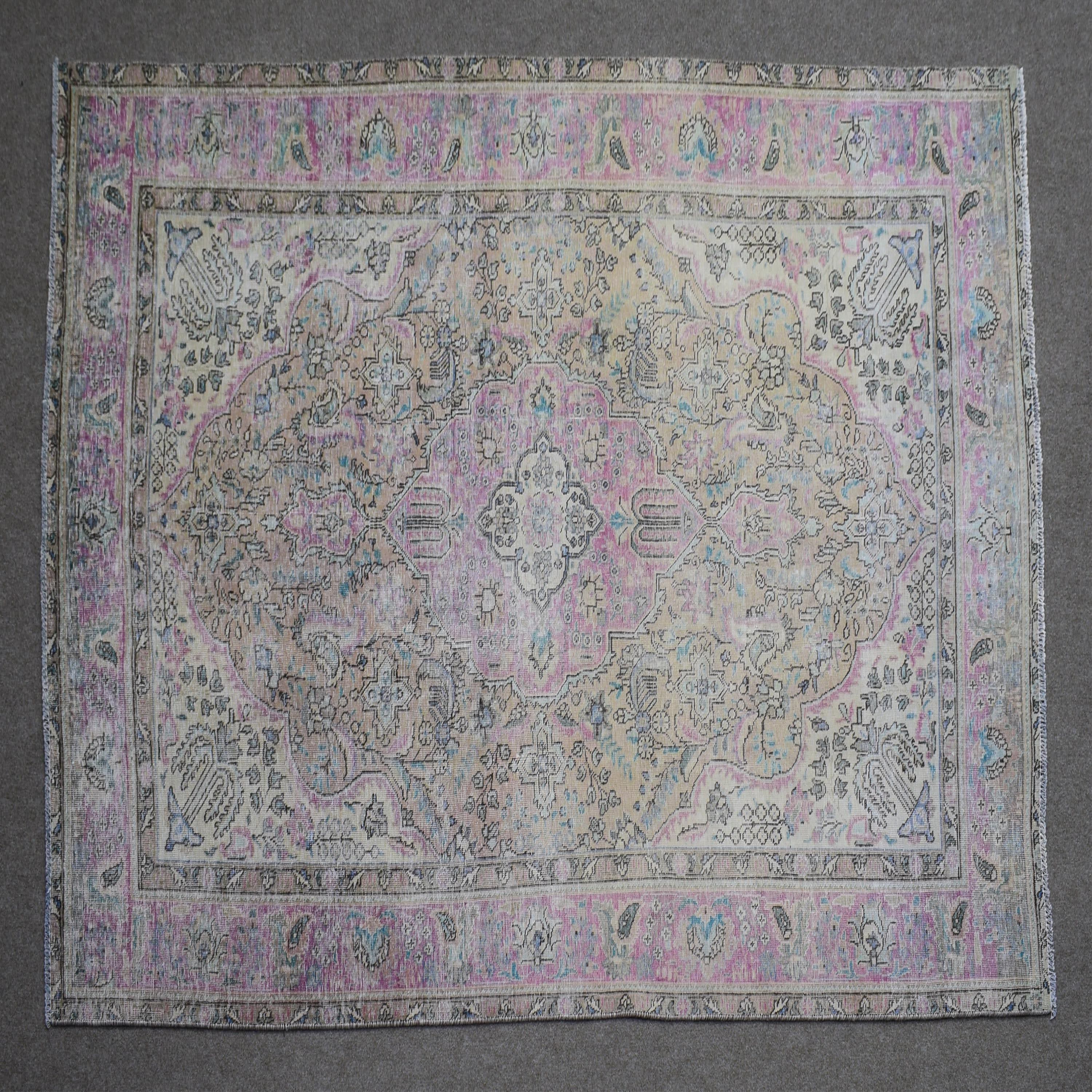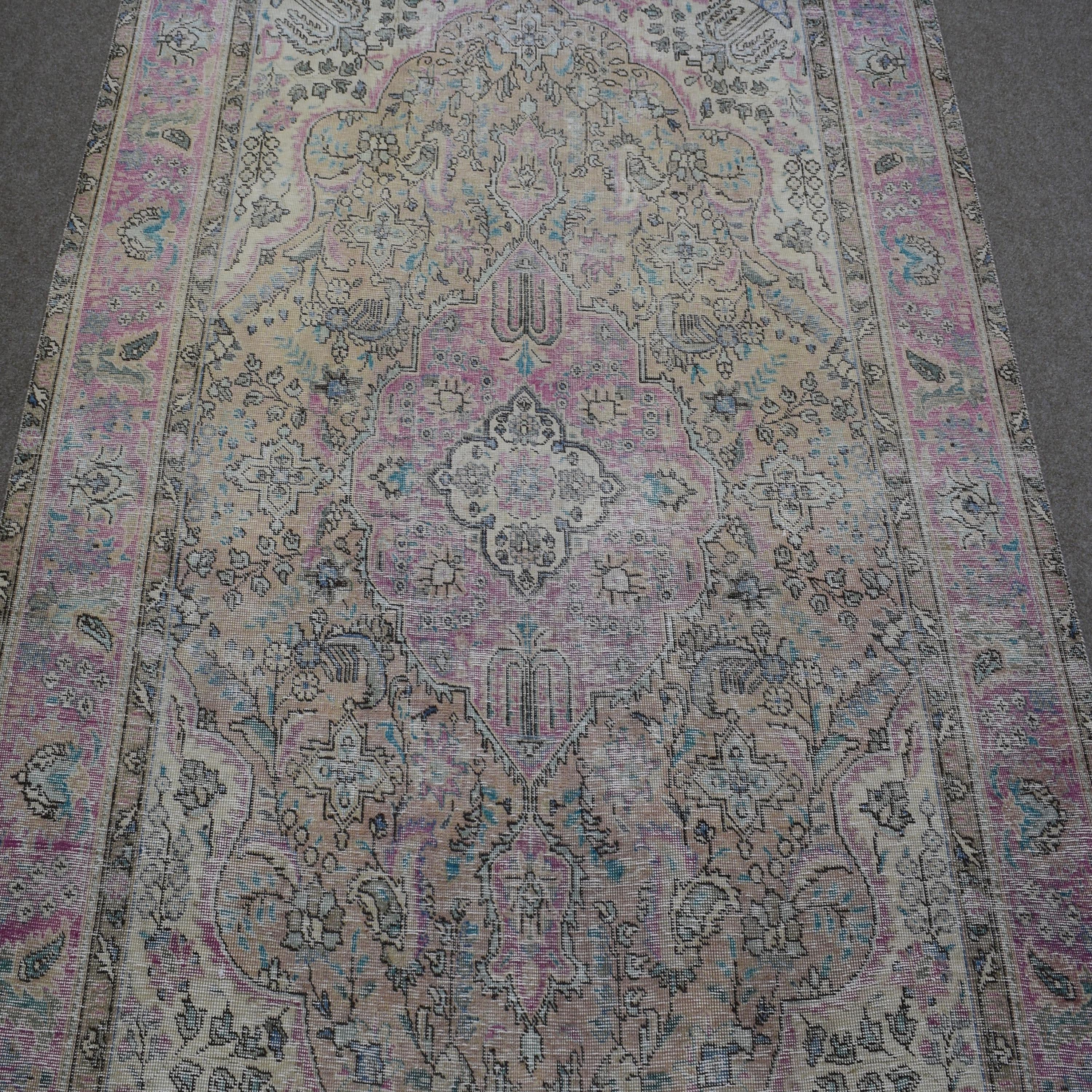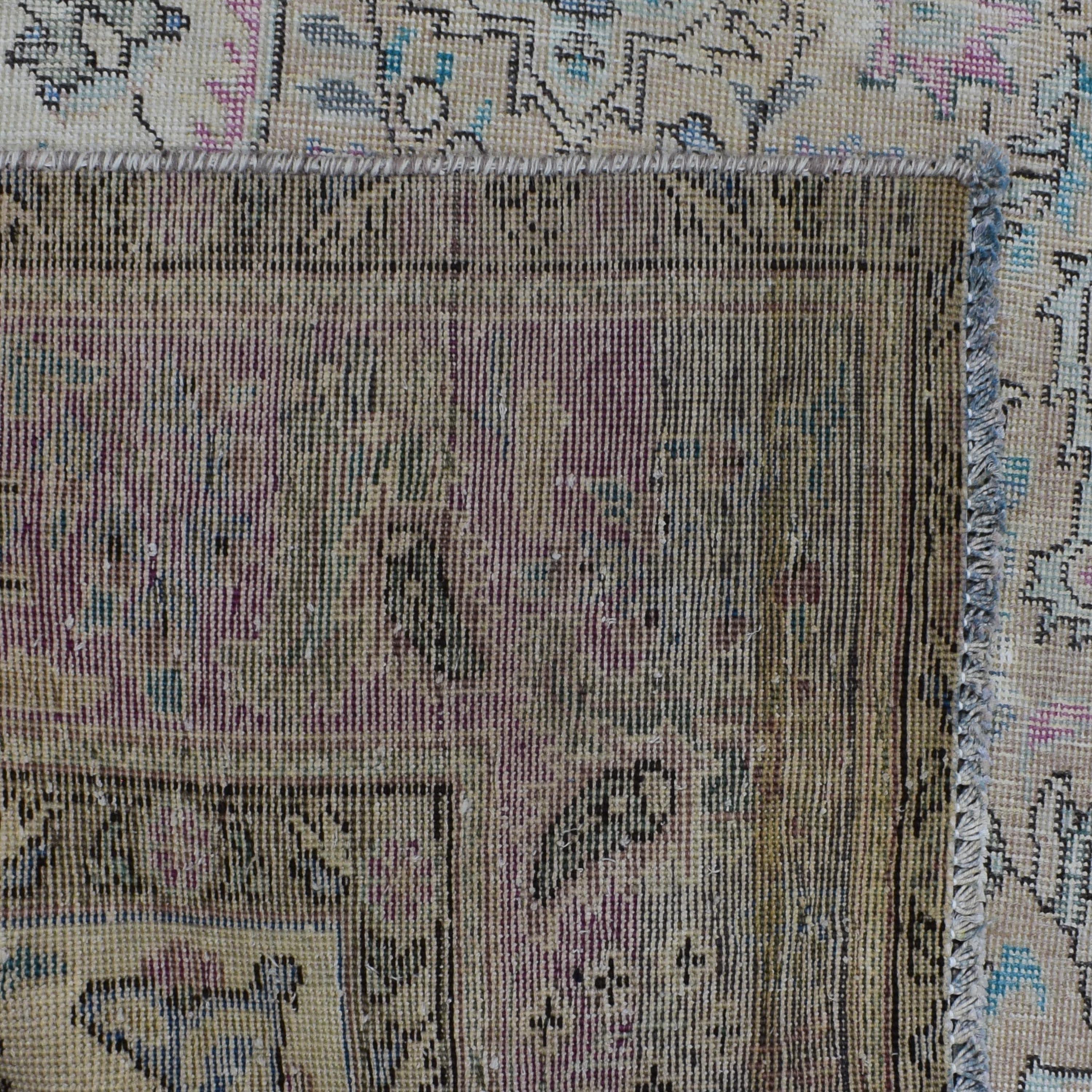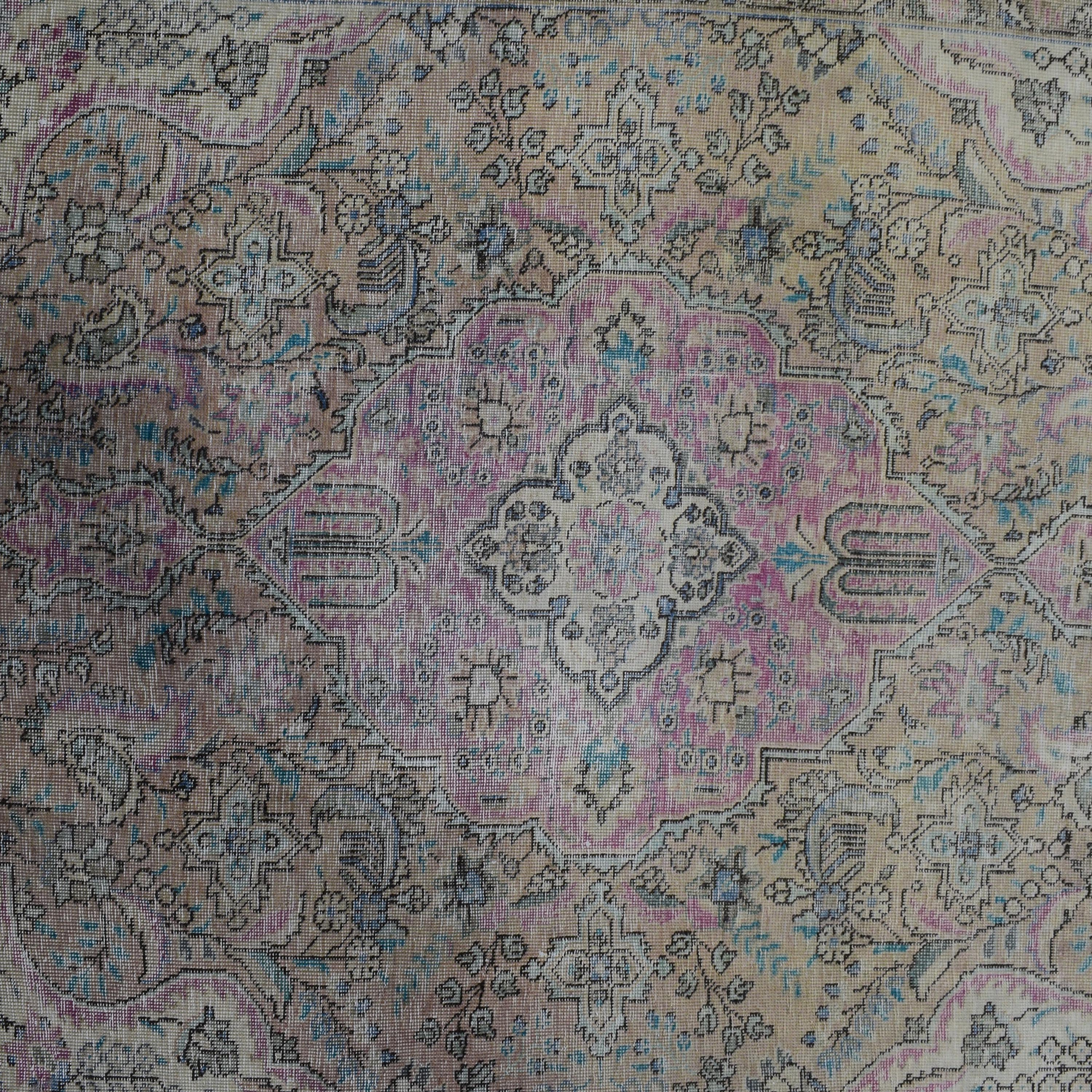 About Distressed Rug: This beautiful rug was hand-woven in 1970's in Tabriz, Iran. Later, this vintage rug has been shaved down to a lower pile to make it a faded rug on purpose. Distressed Rugs represent a trend that has achieved a crossover between fashion and home décor. This new look celebrates rugs that are faded, and worn over time; rugs that nestle into homes as if they’ve always been there. Distressed rugs are shaved rugs so they do not have a soft pile.