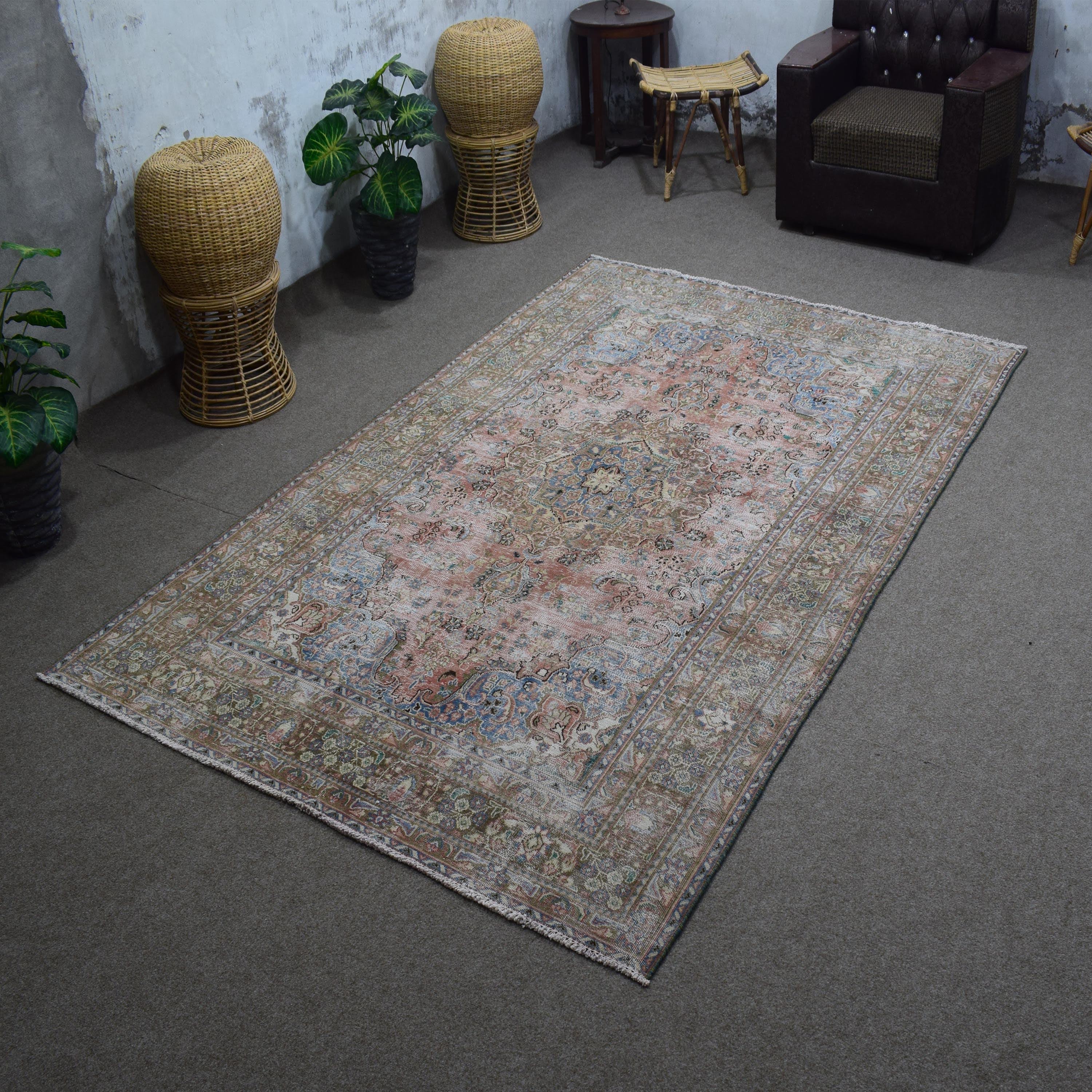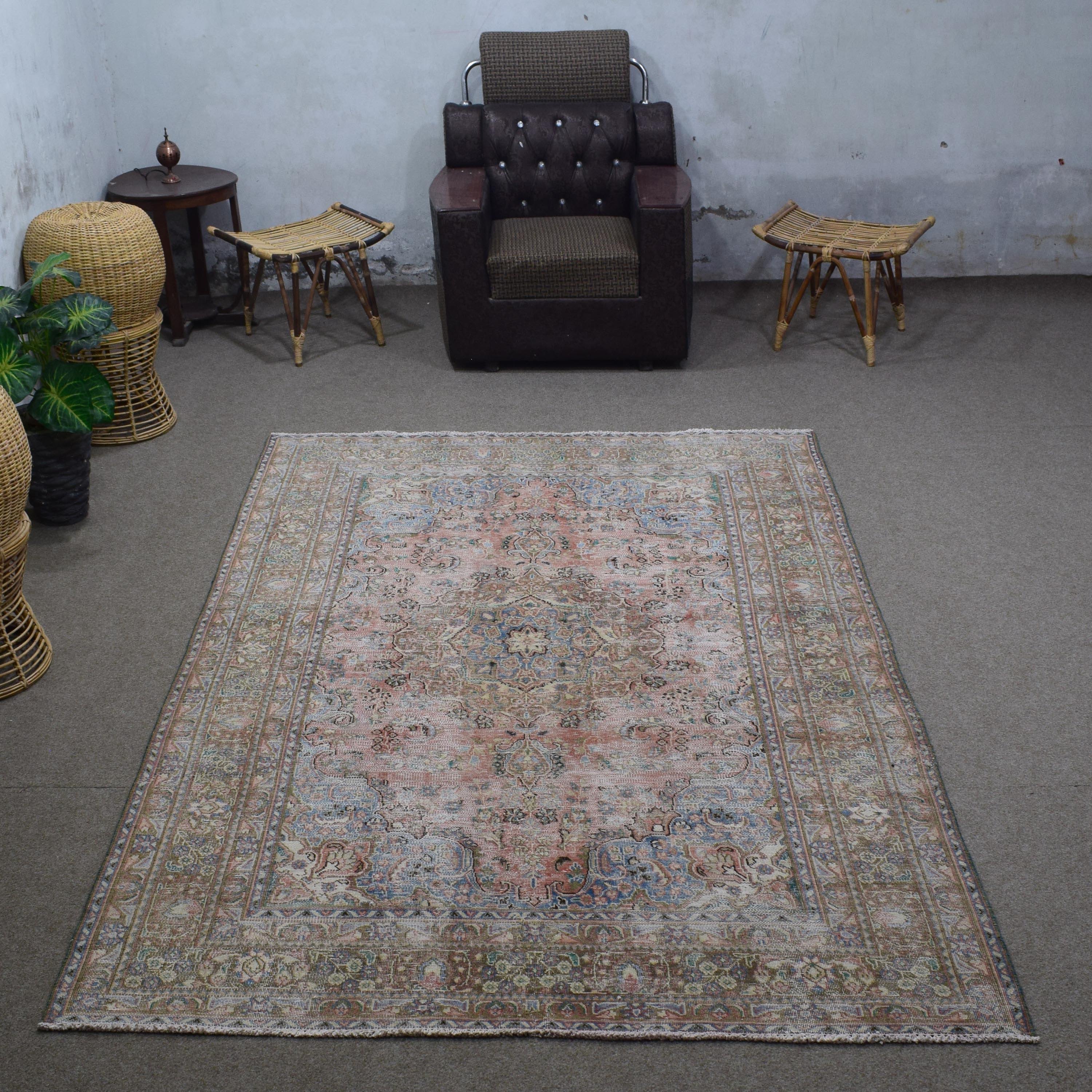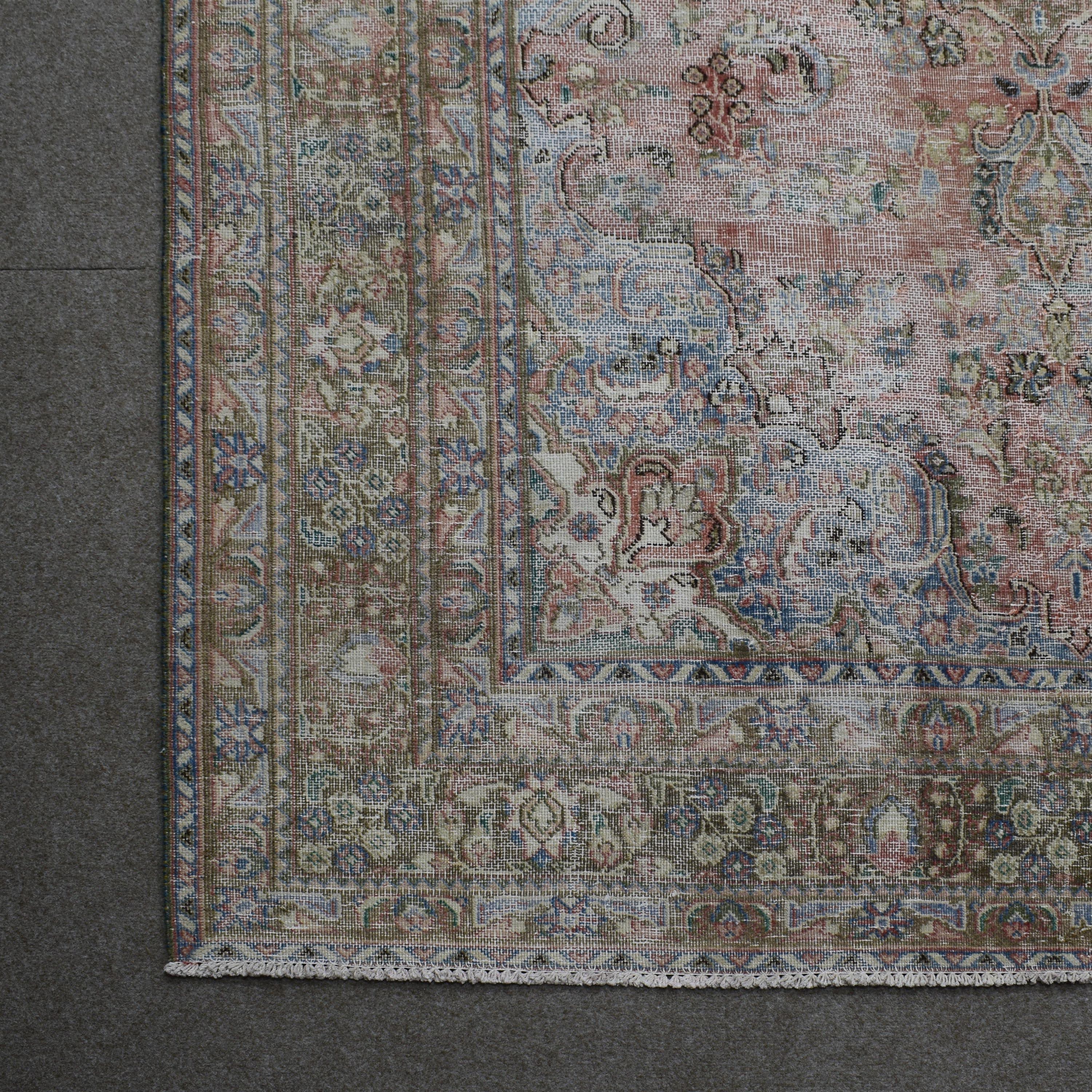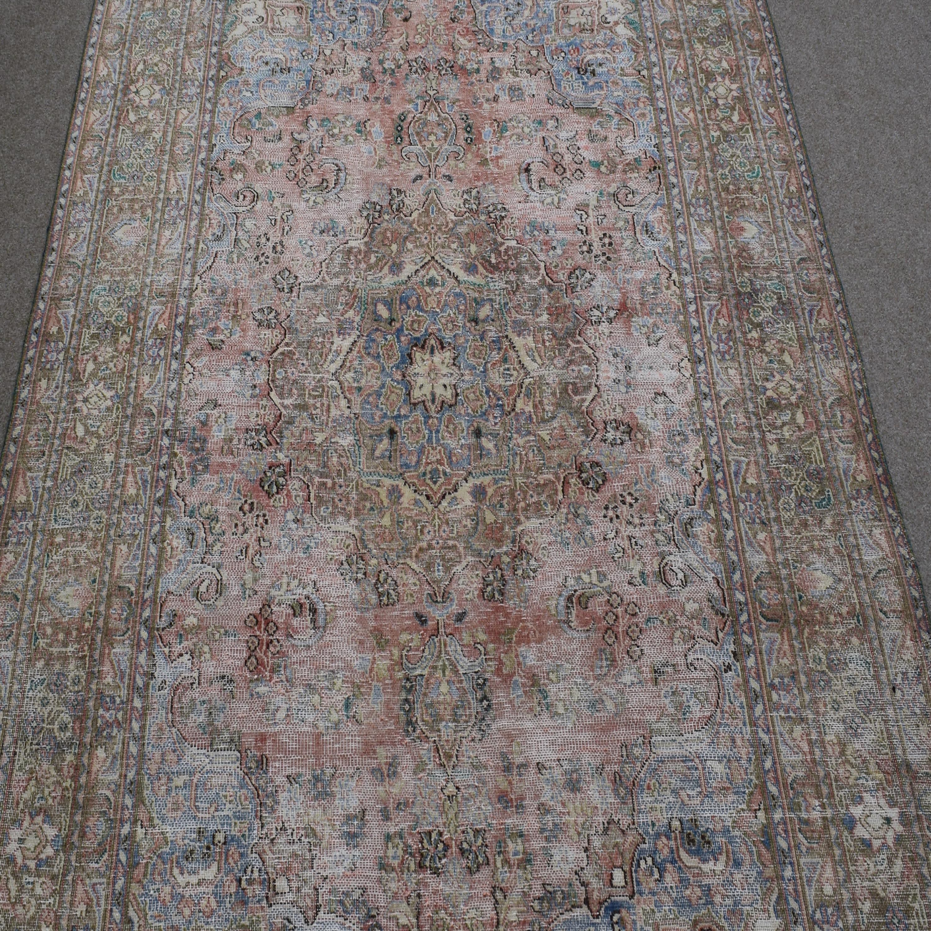 About Distressed Rug: This beautiful rug was hand-woven in 1970's in Tabriz, Iran. Later, this vintage rug has been shaved down to a lower pile to make it a faded rug on purpose. Distressed Rugs represent a trend that has achieved a crossover between fashion and home décor. This new look celebrates rugs that are faded, and worn over time; rugs that nestle into homes as if they’ve always been there. Distressed rugs are shaved rugs so they do not have a soft pile.